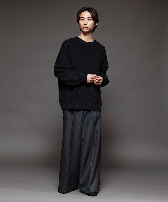 寬大的衣身寬度和容易讓人產生下墜感的羅紋規格給這款產品帶來了輕鬆的氛圍。