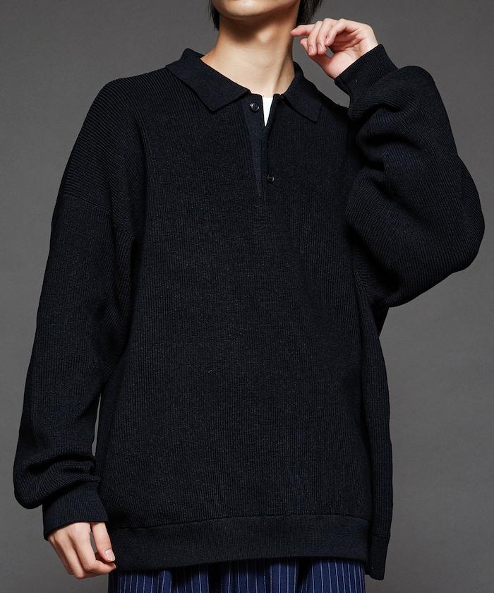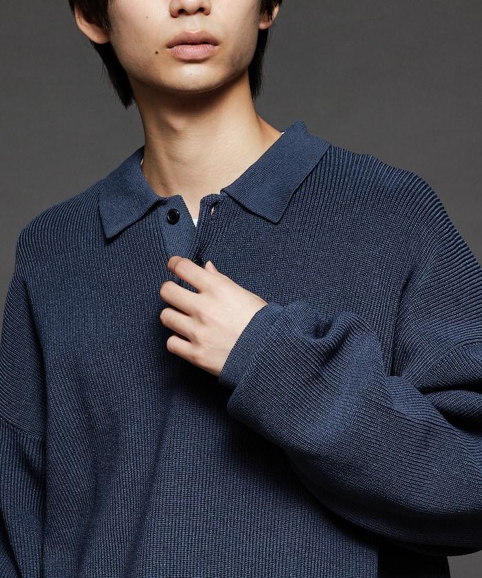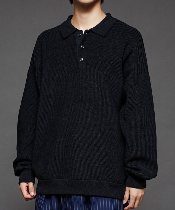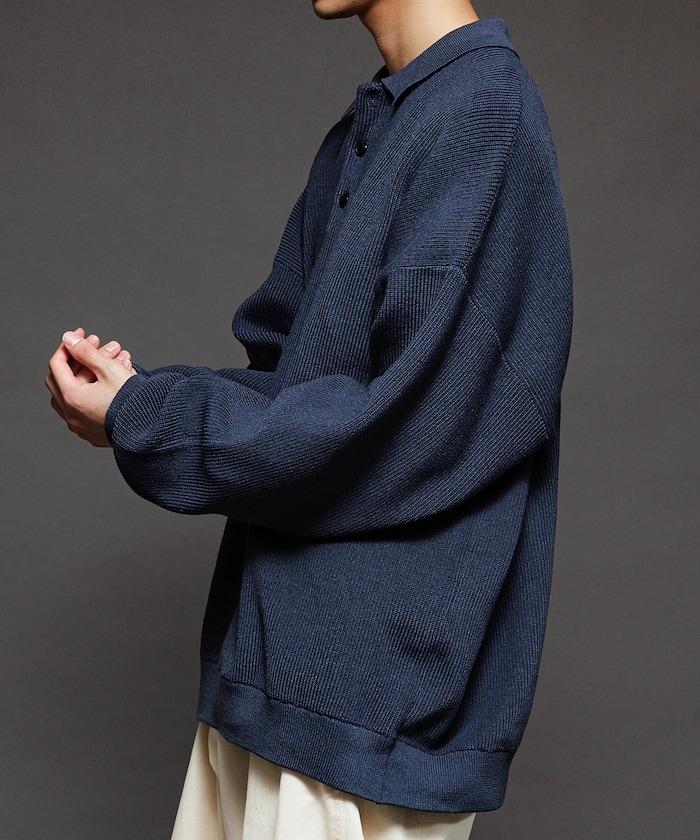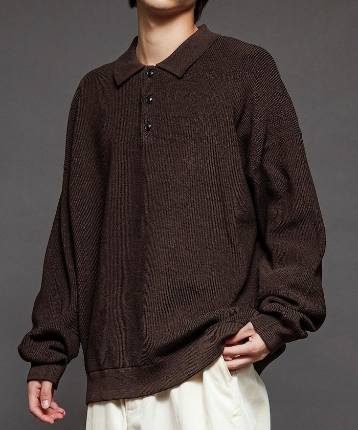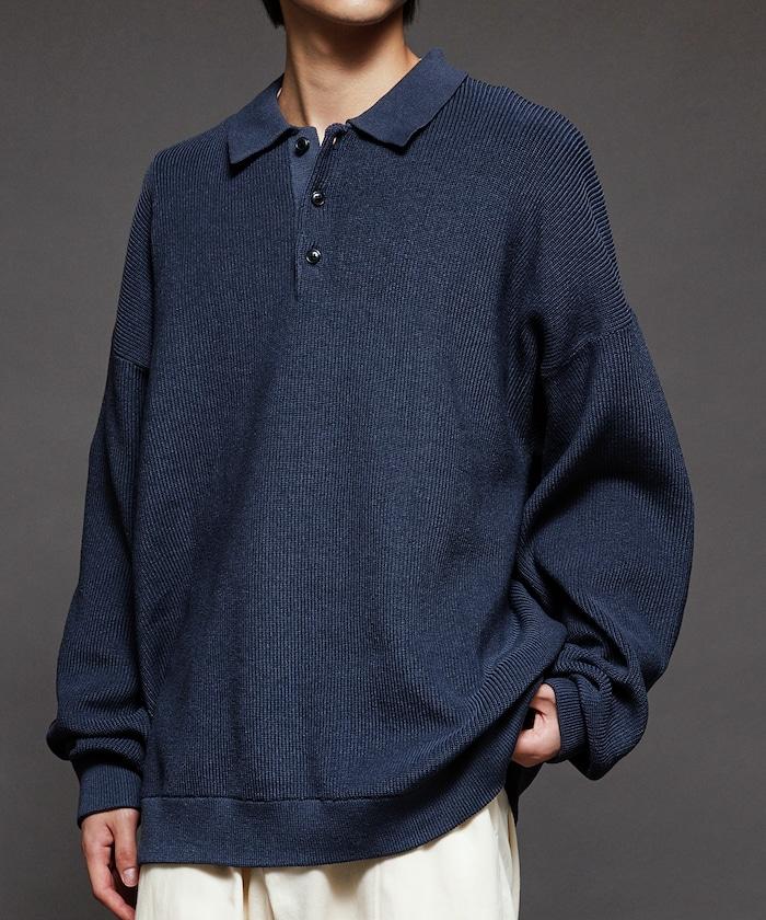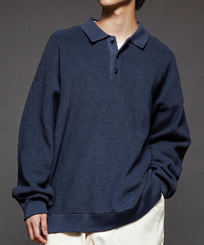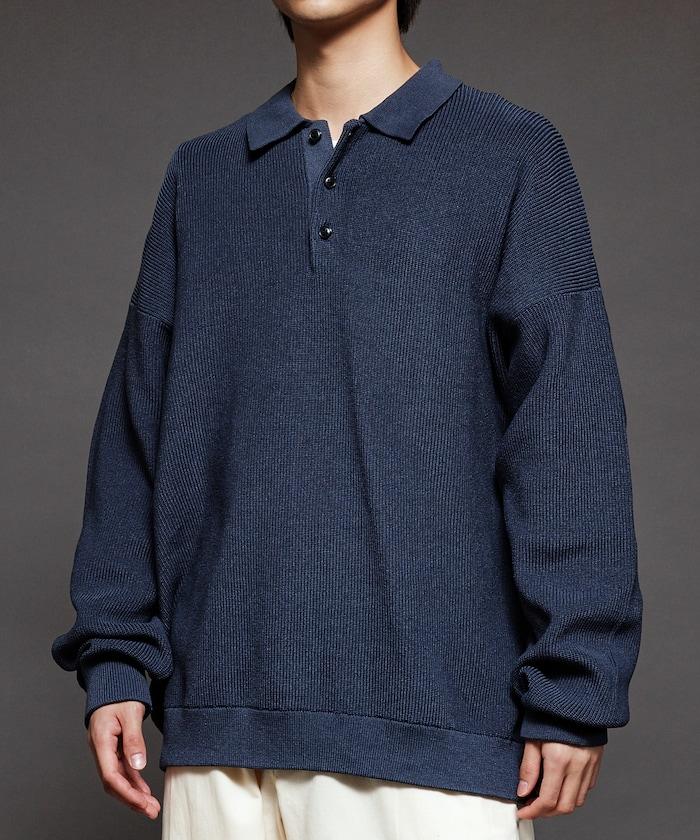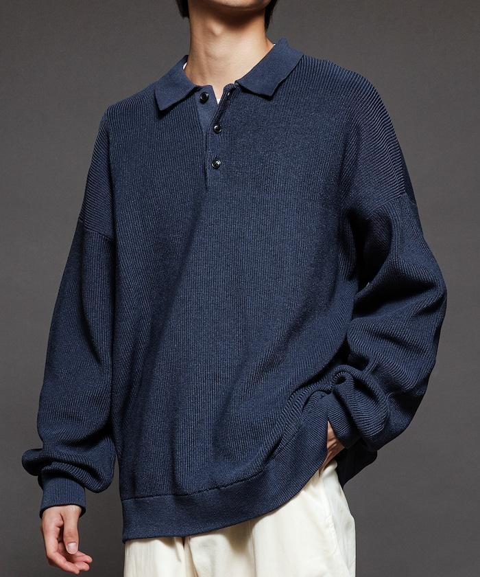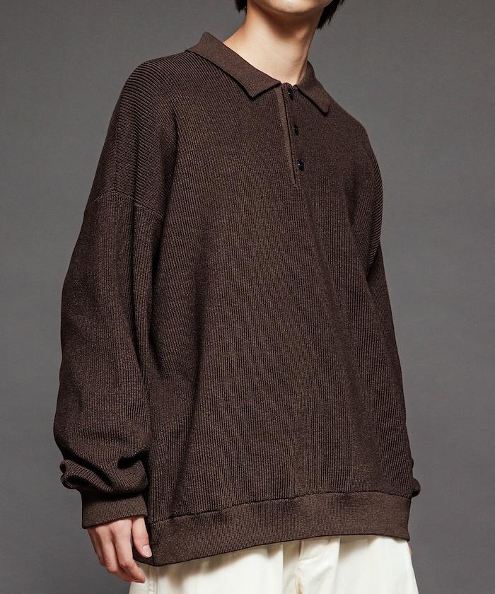 寬鬆版型 單面羅紋編織 POLO領 針織衫