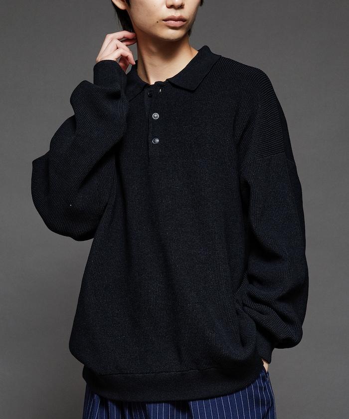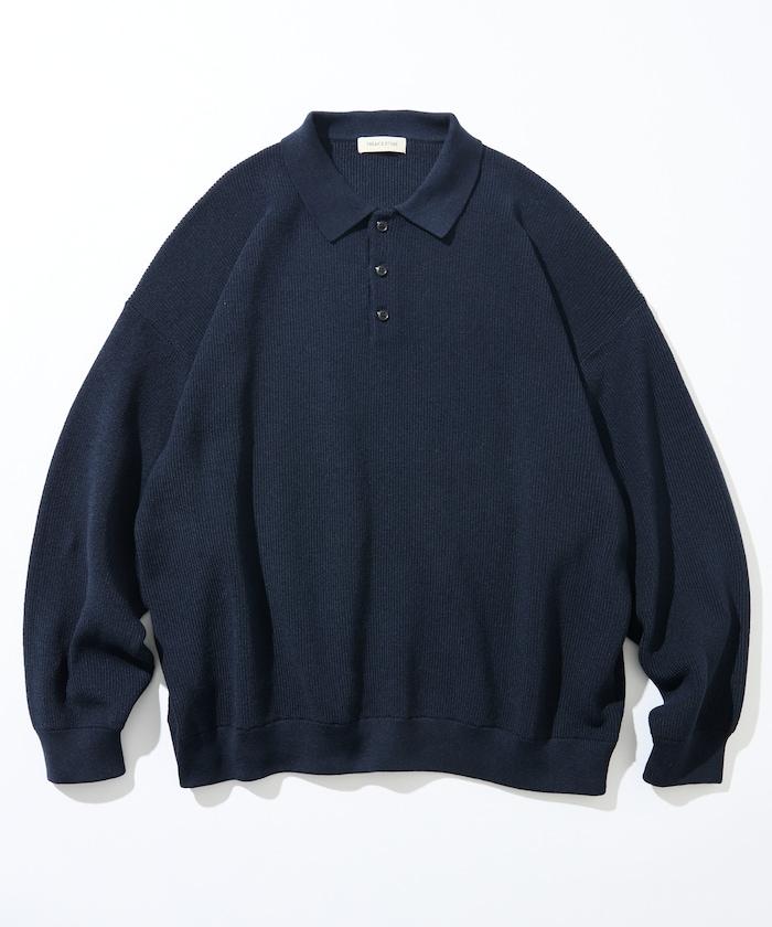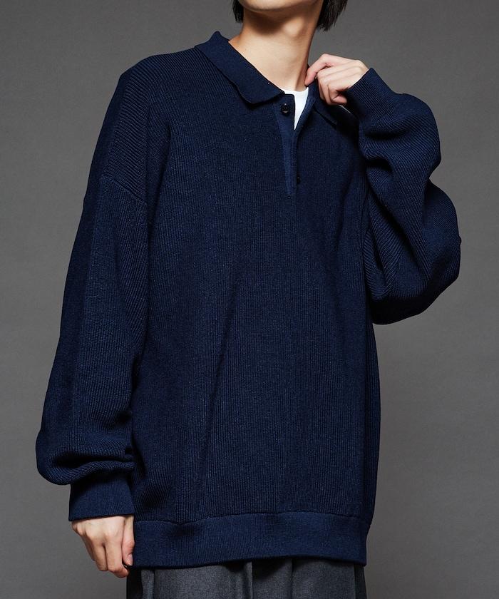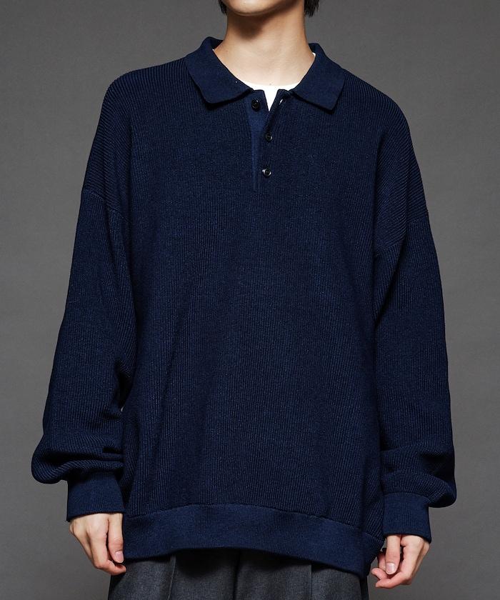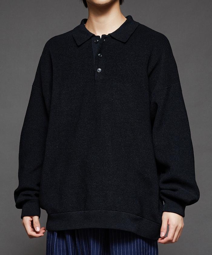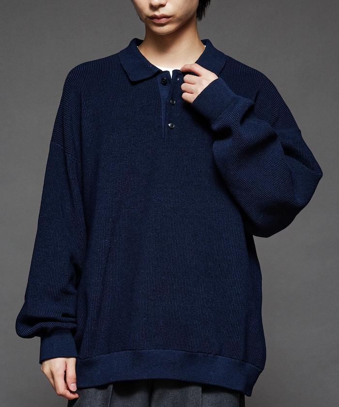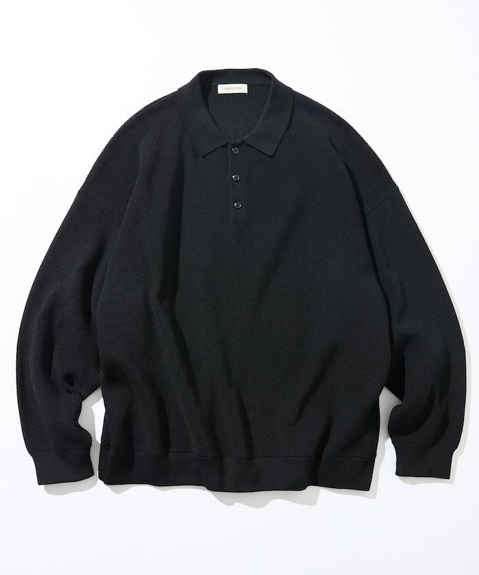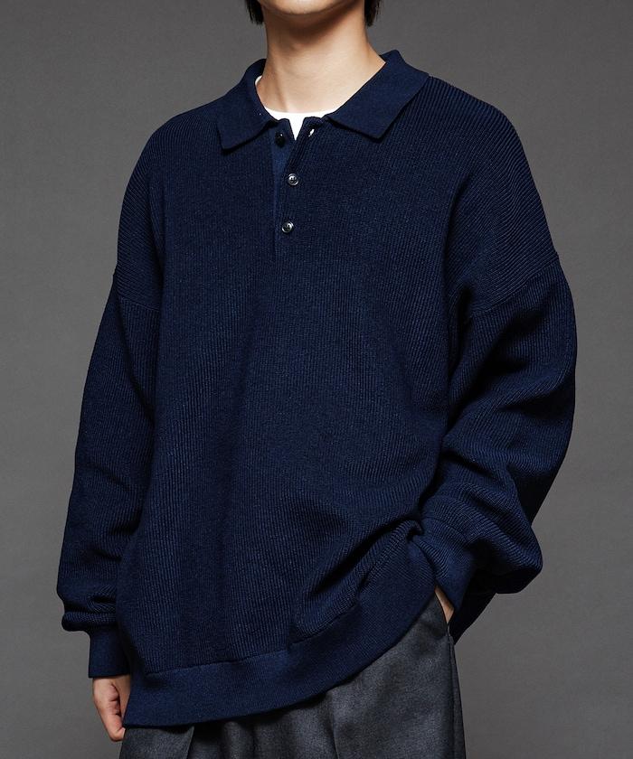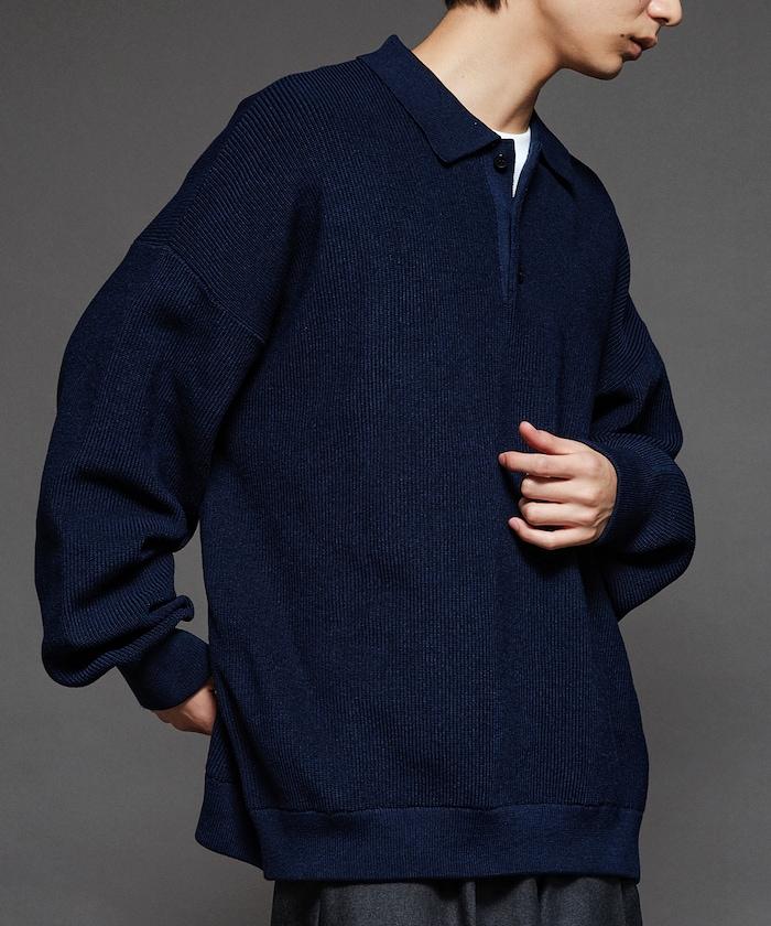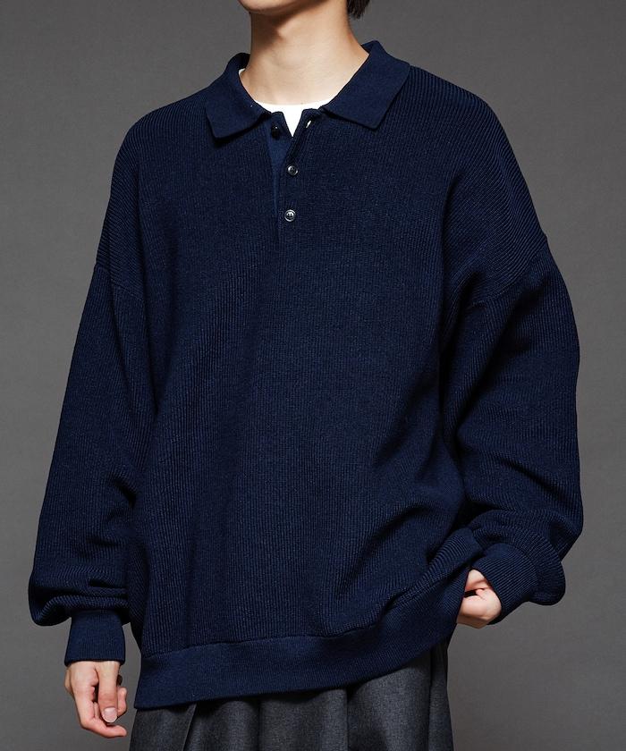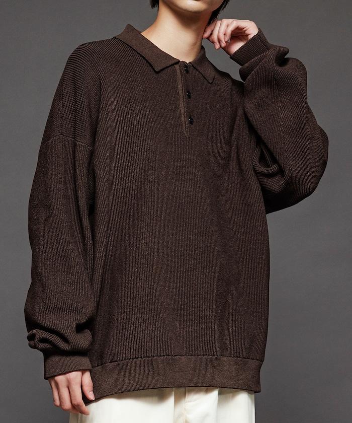 寬鬆版型 單面羅紋編織 POLO領 針織衫