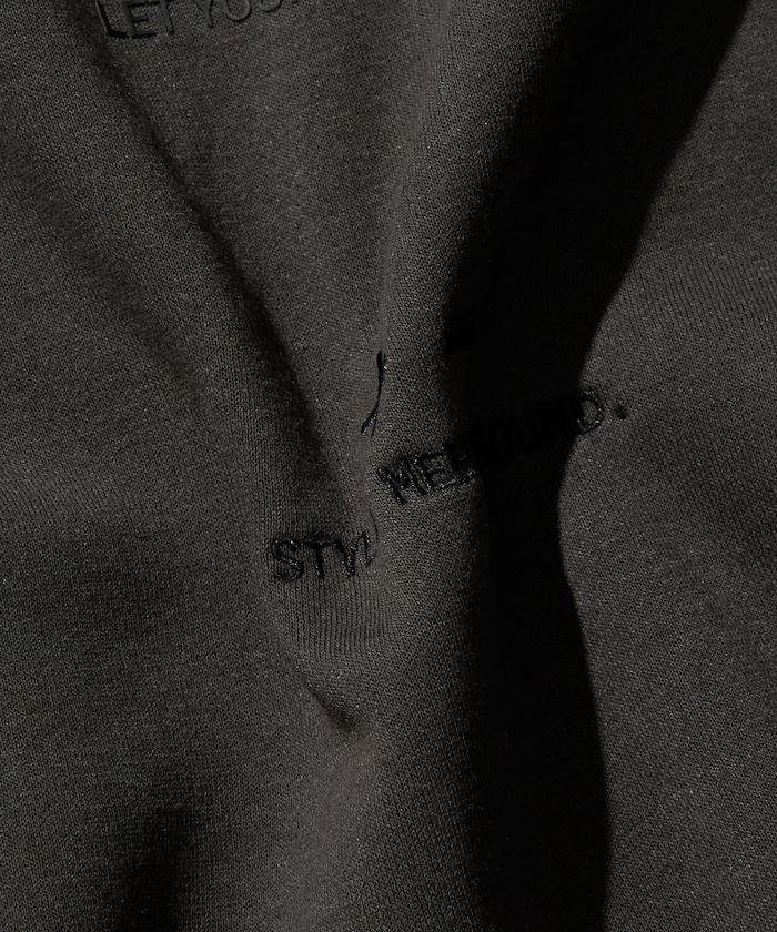 寬鬆版型 單點刺繡 後背印花 下襬抽繩 圓領衛衣