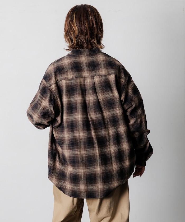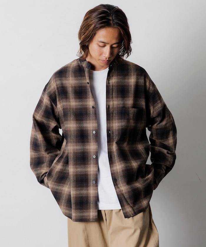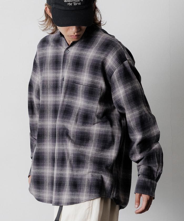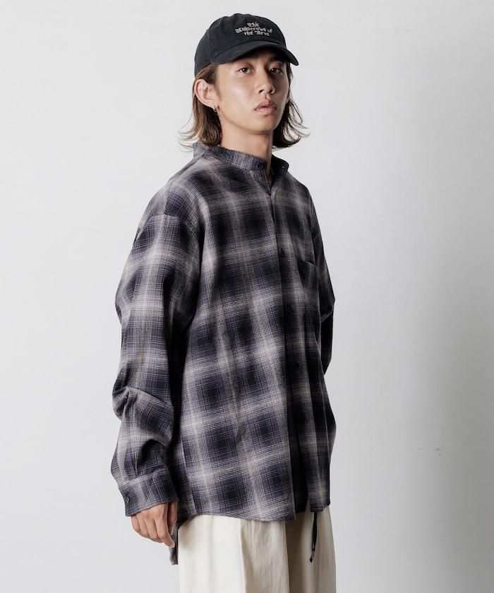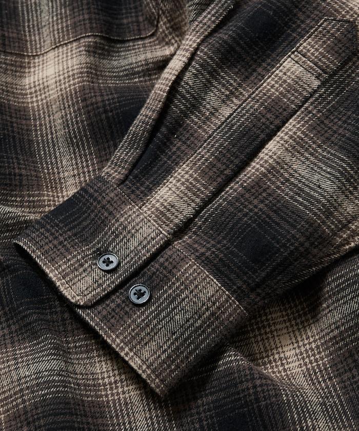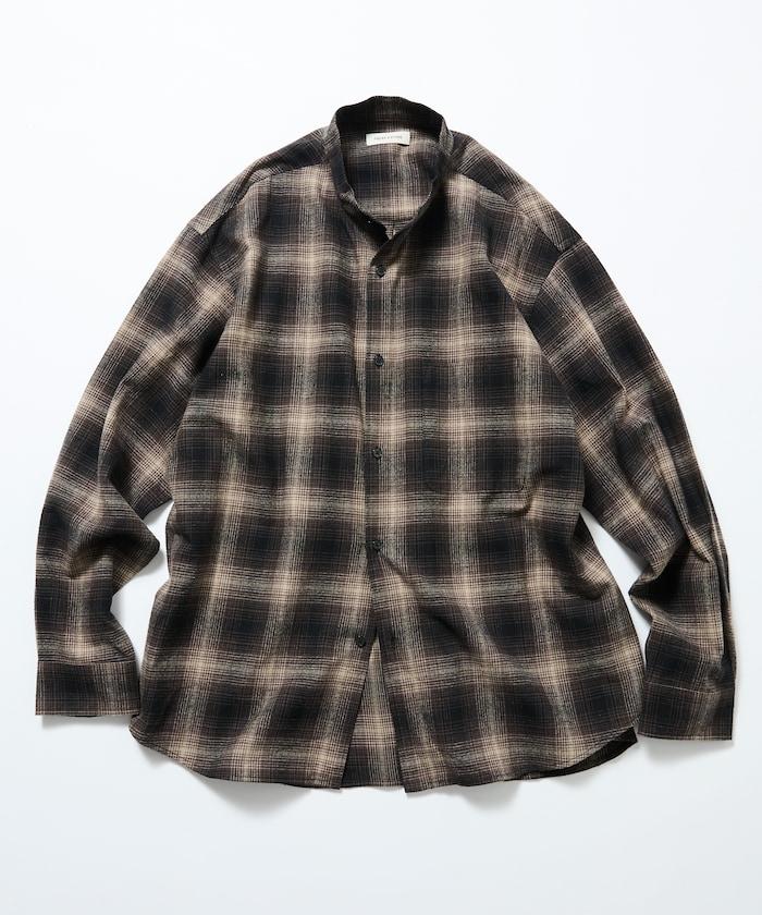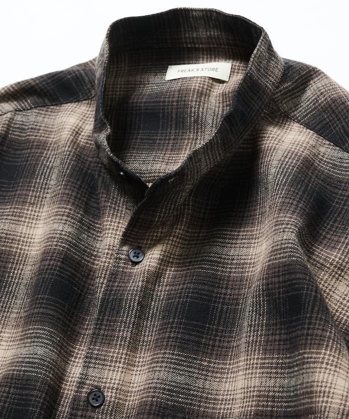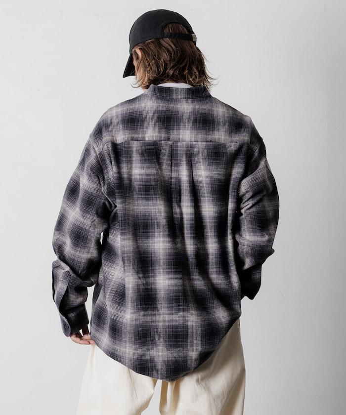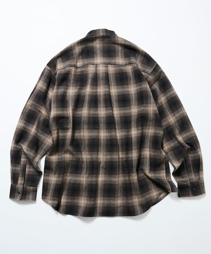 寬鬆版型 漸變格紋 立領法蘭絨襯衫