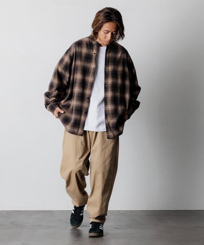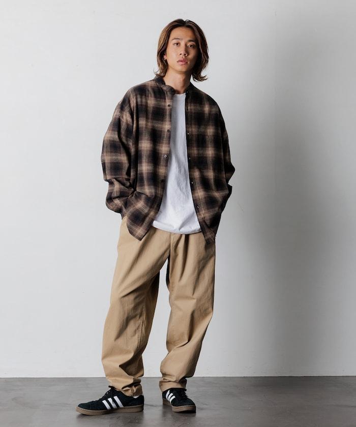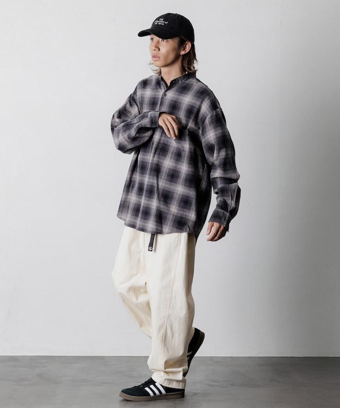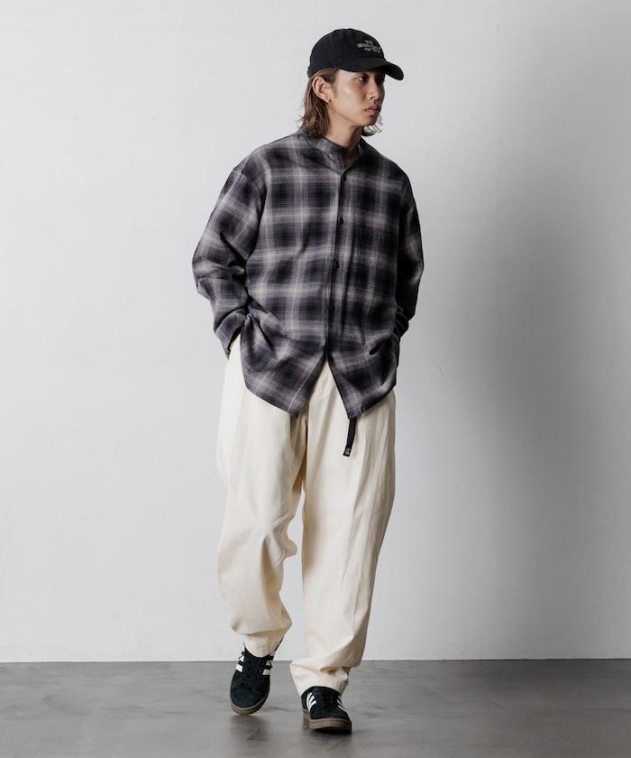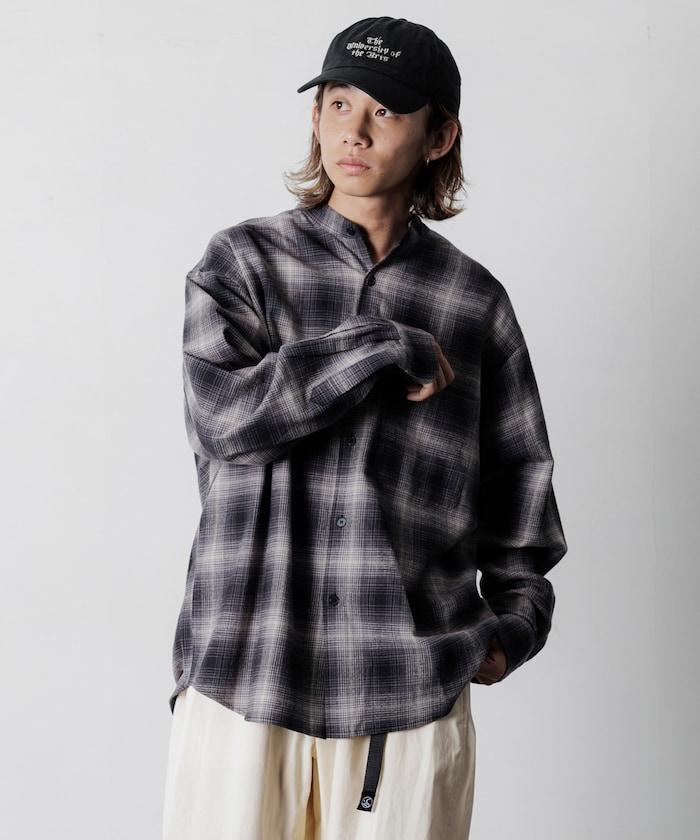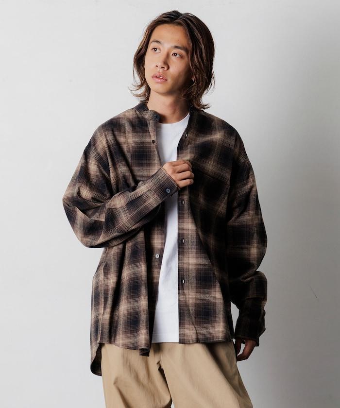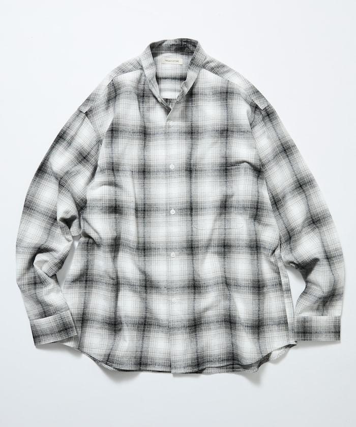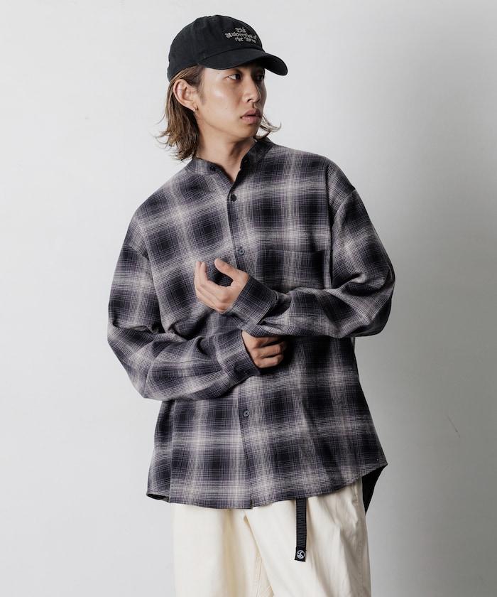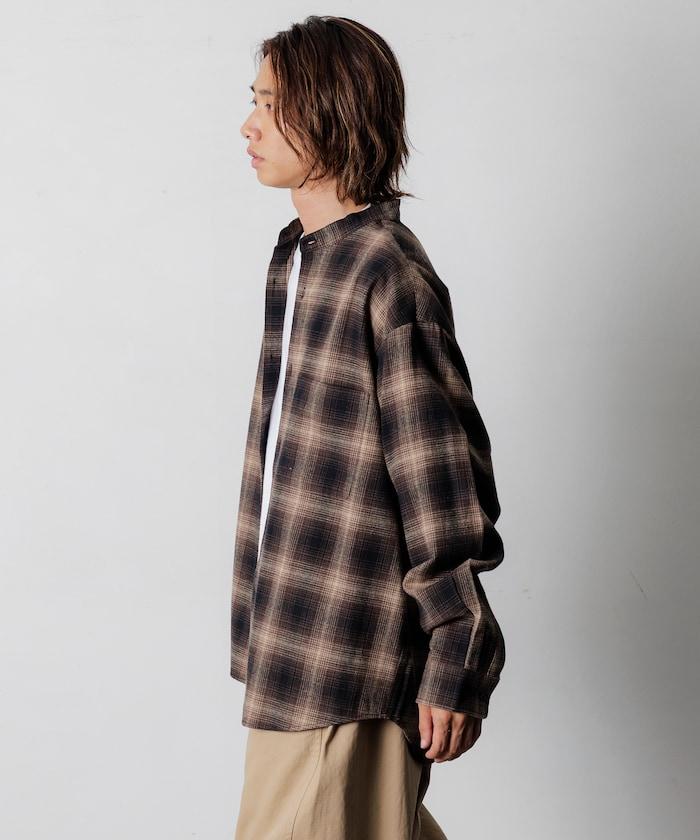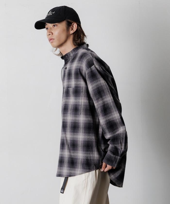 寬鬆版型 漸變格紋 立領法蘭絨襯衫