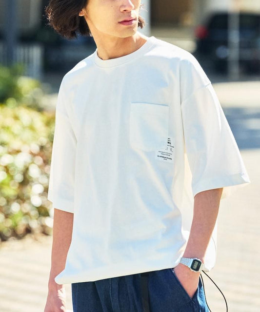 T 恤胸前有簡單的單點刺繡,十分隨意。