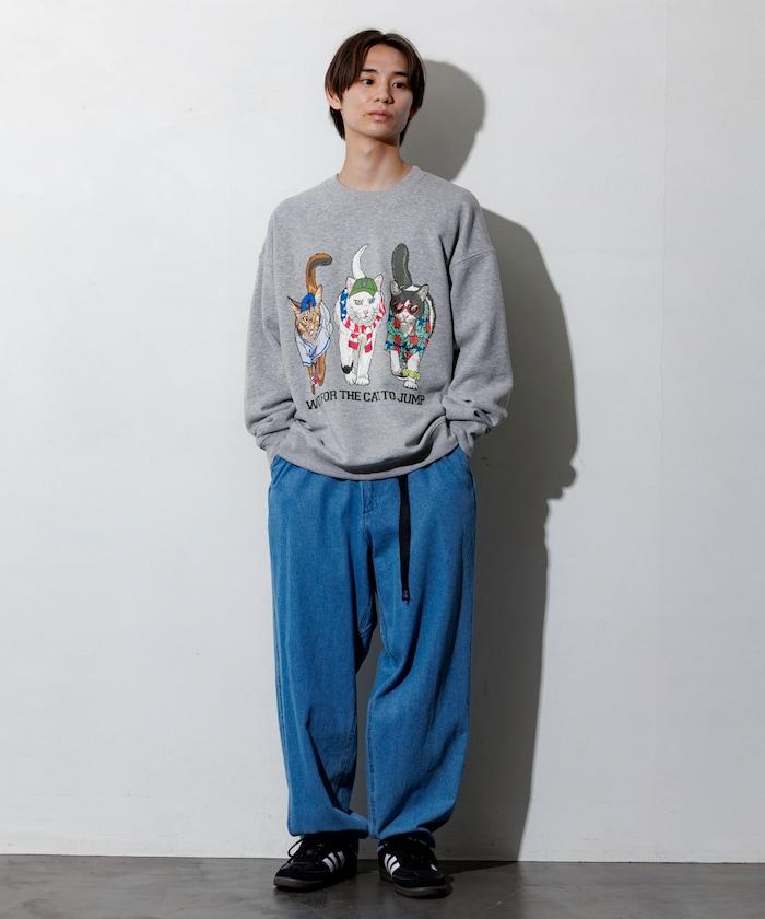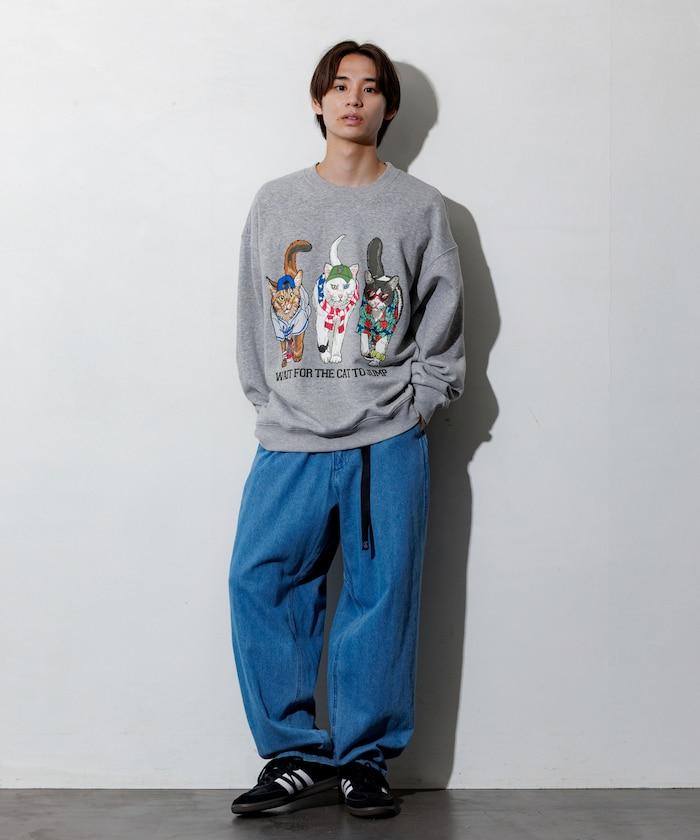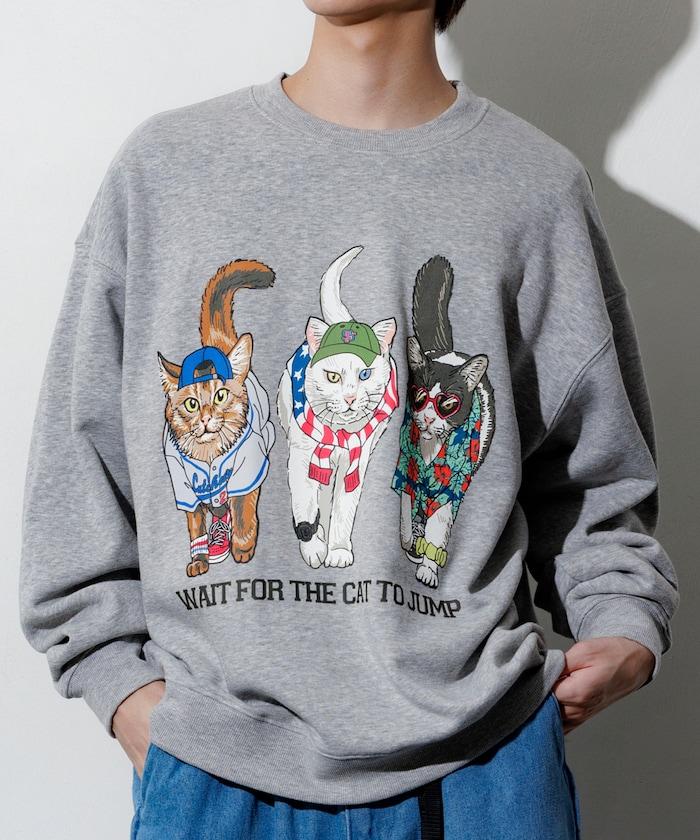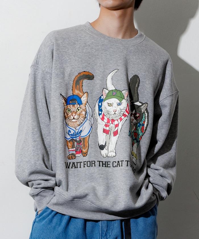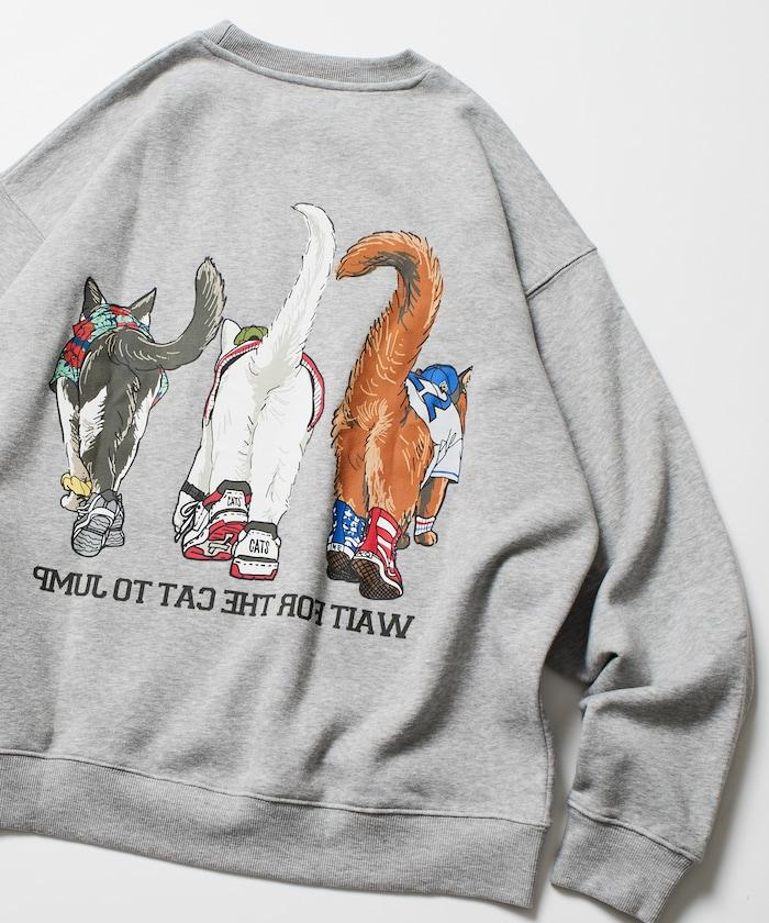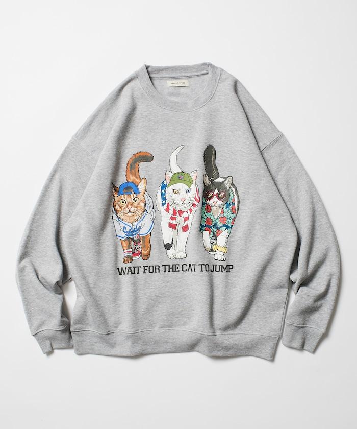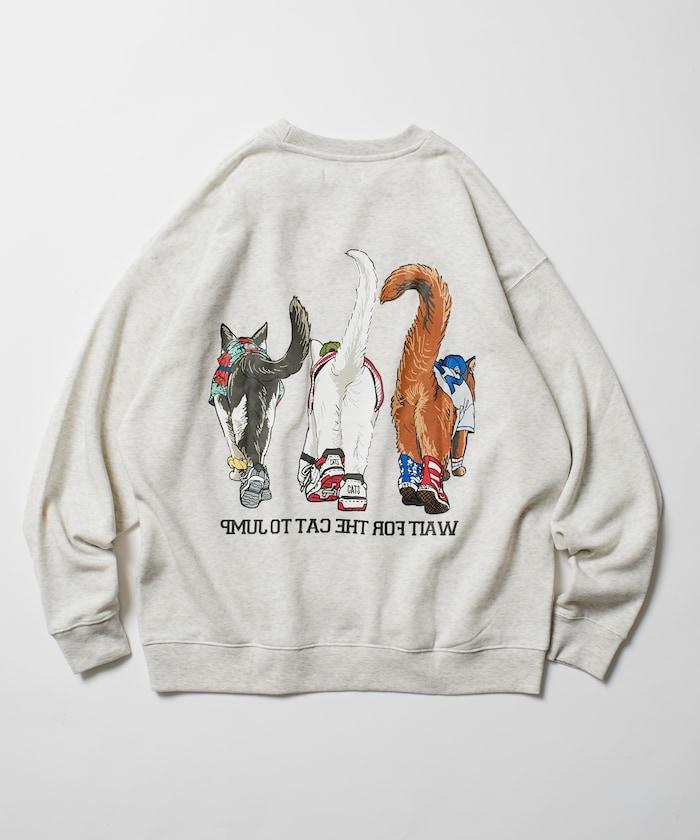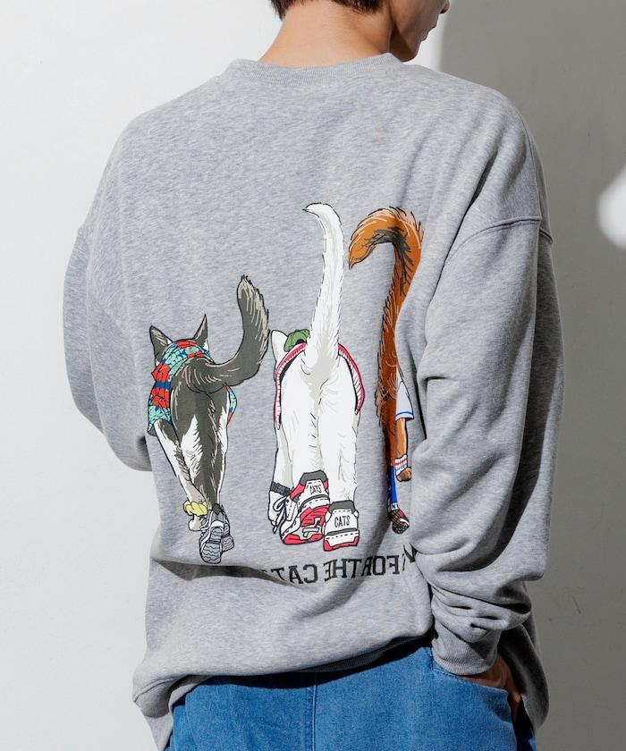 寬鬆版型 雙面印花 圓領衛衣 / THREE CATS
