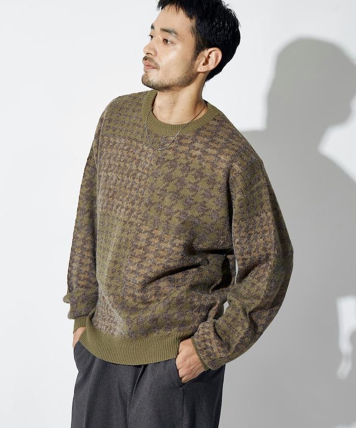 提花針織衫具有強烈的視覺衝擊力,採用拼接風格的格倫格紋圖案。