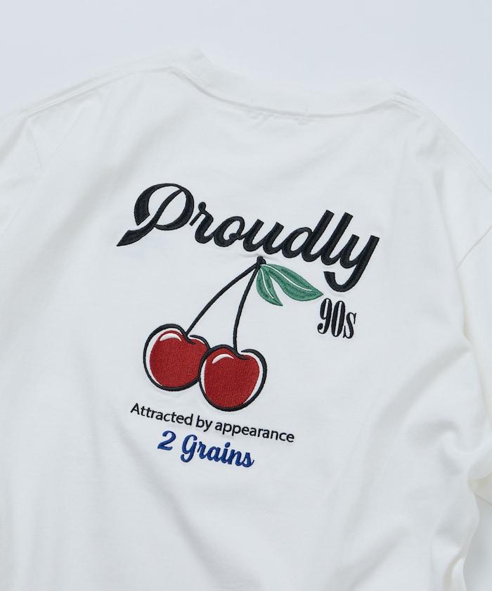 寬鬆版 後背刺繡 Cherry ringer 設計 圓領 T恤