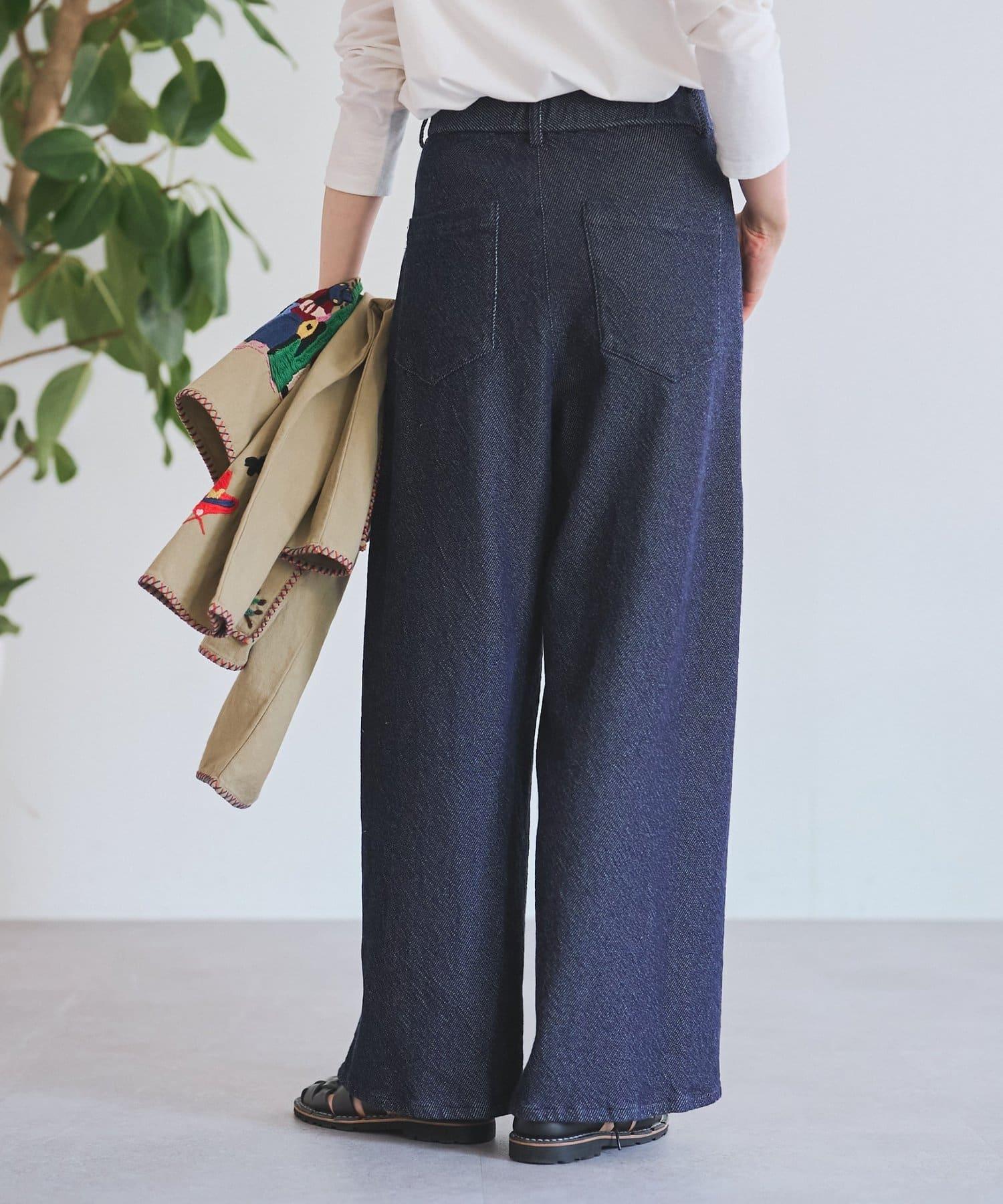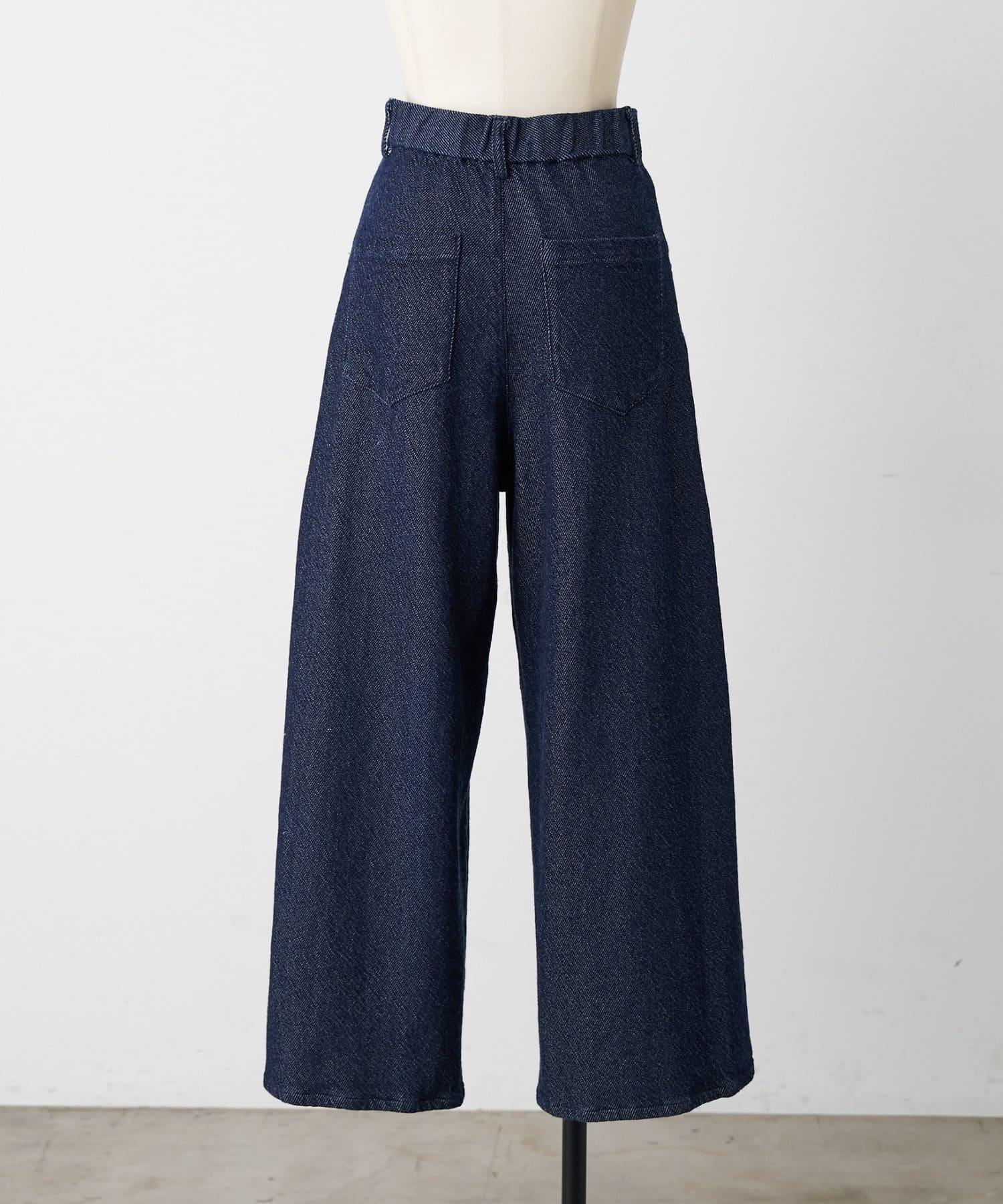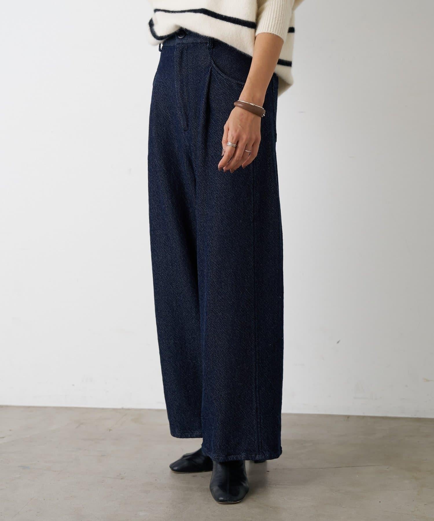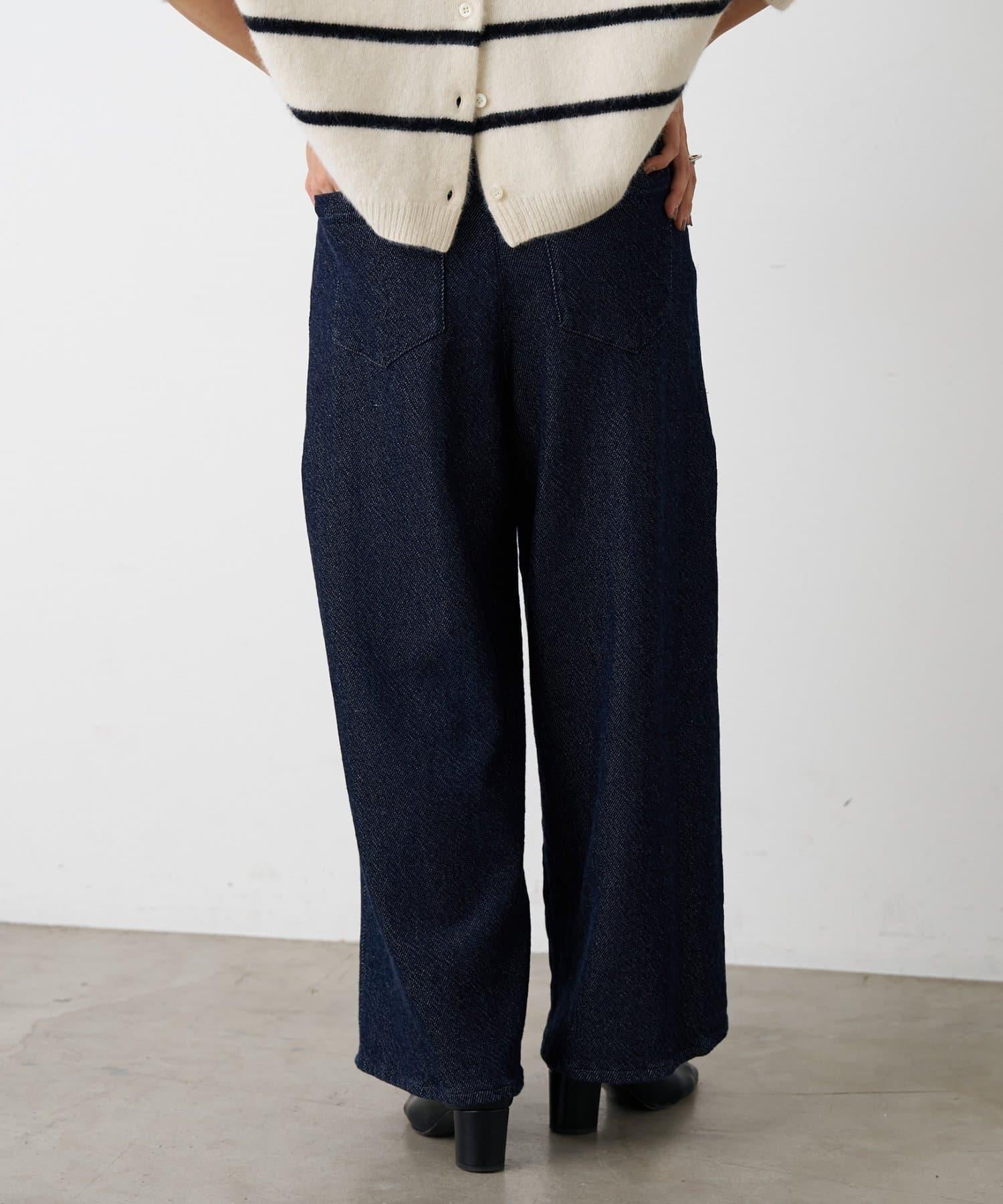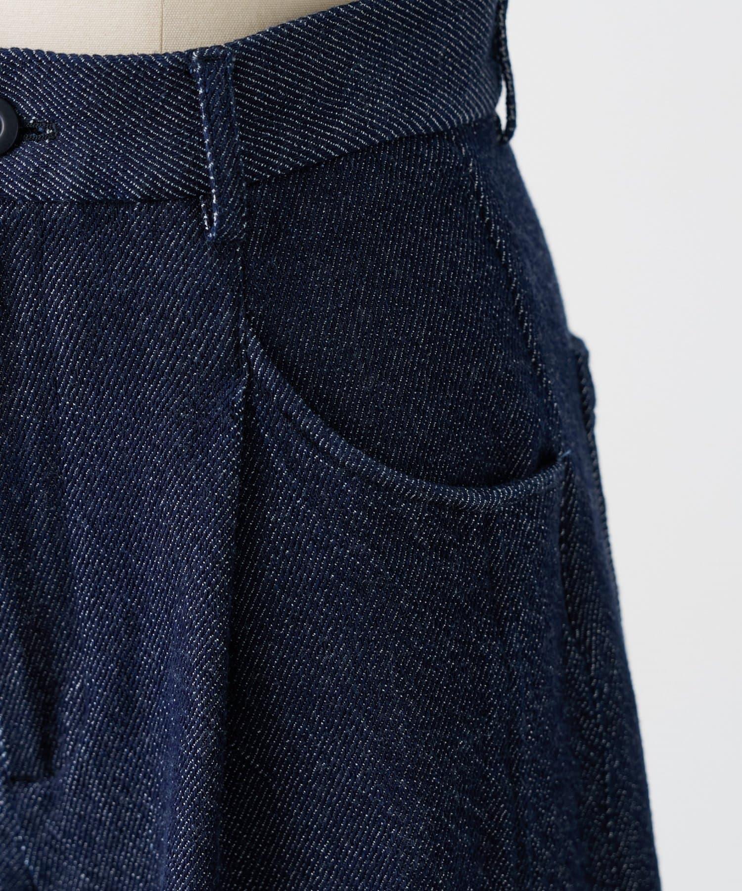 靛藍 "具有獨特的牛仔布質感,表面漂浮著一絲絲白線。深邃的色彩賦予了這款褲子精緻的外觀。