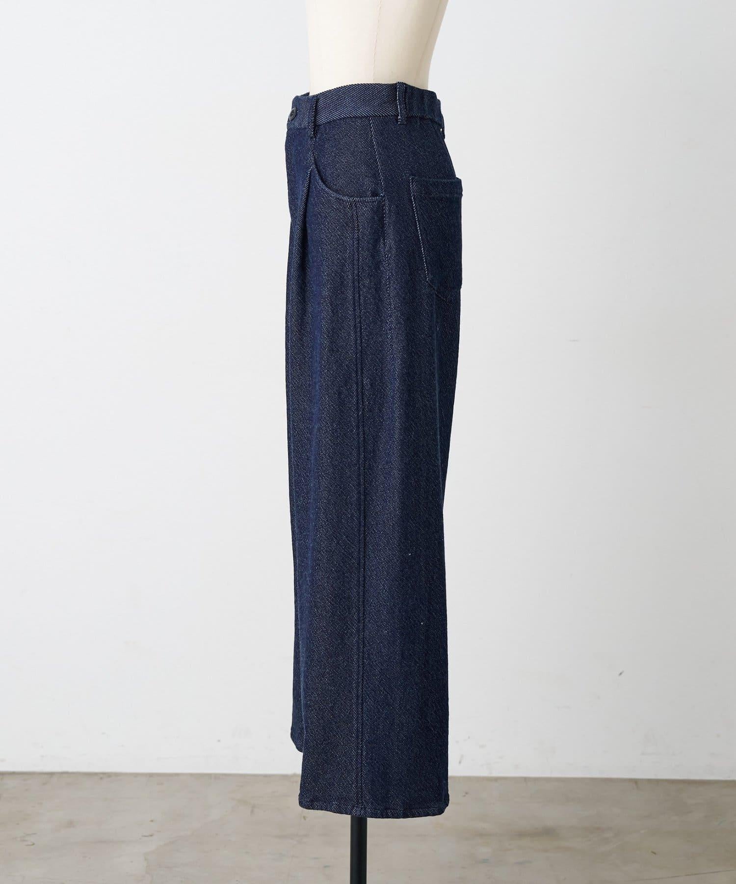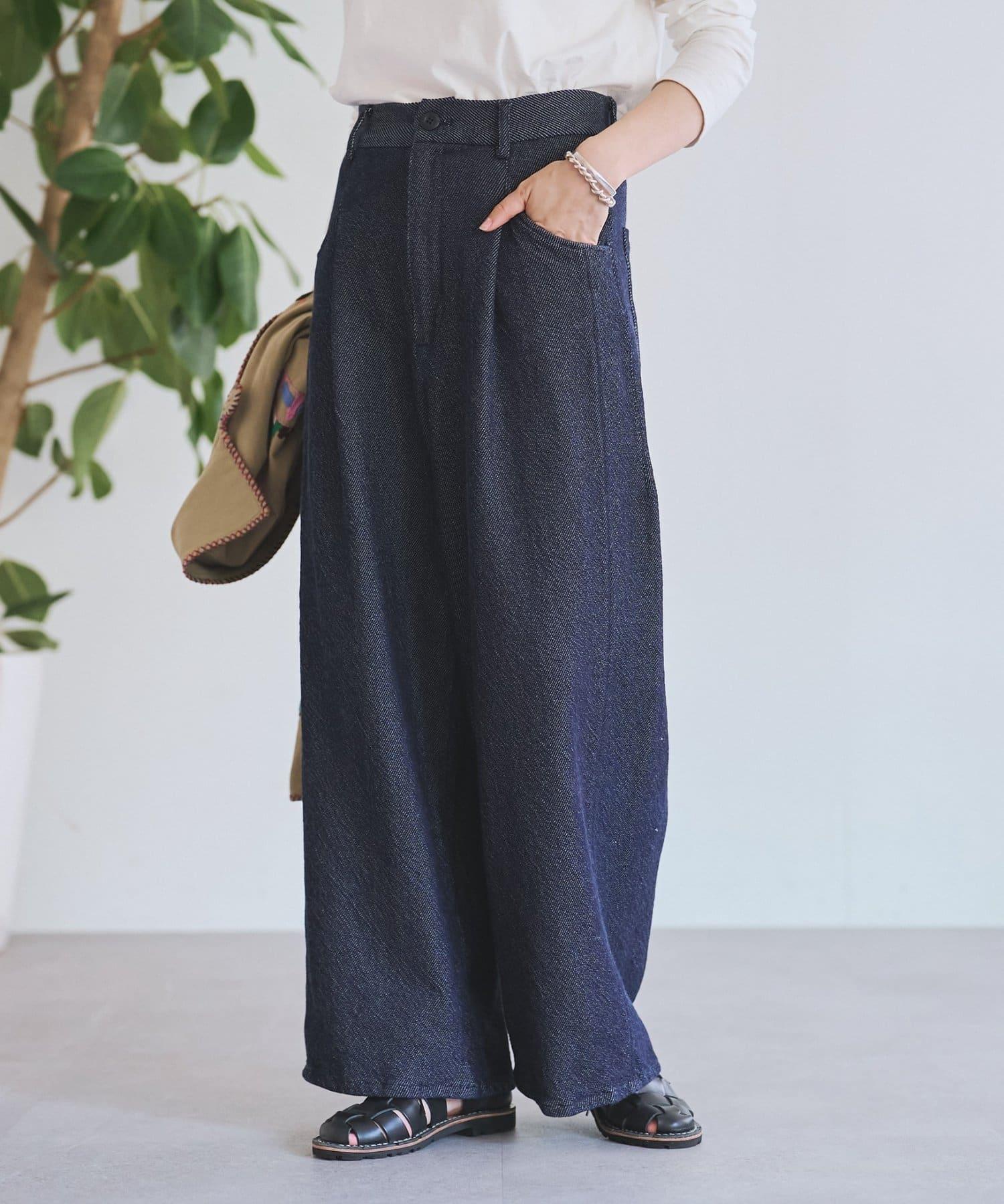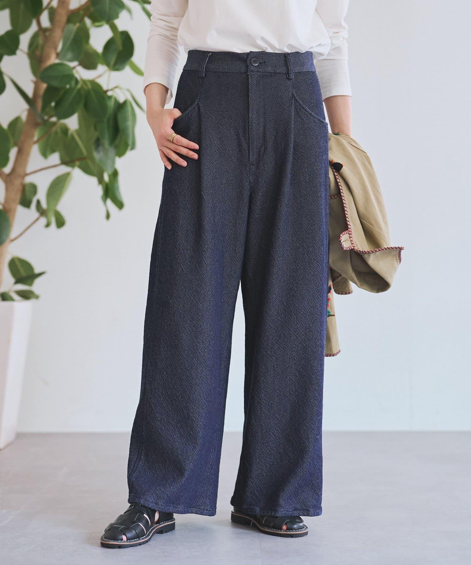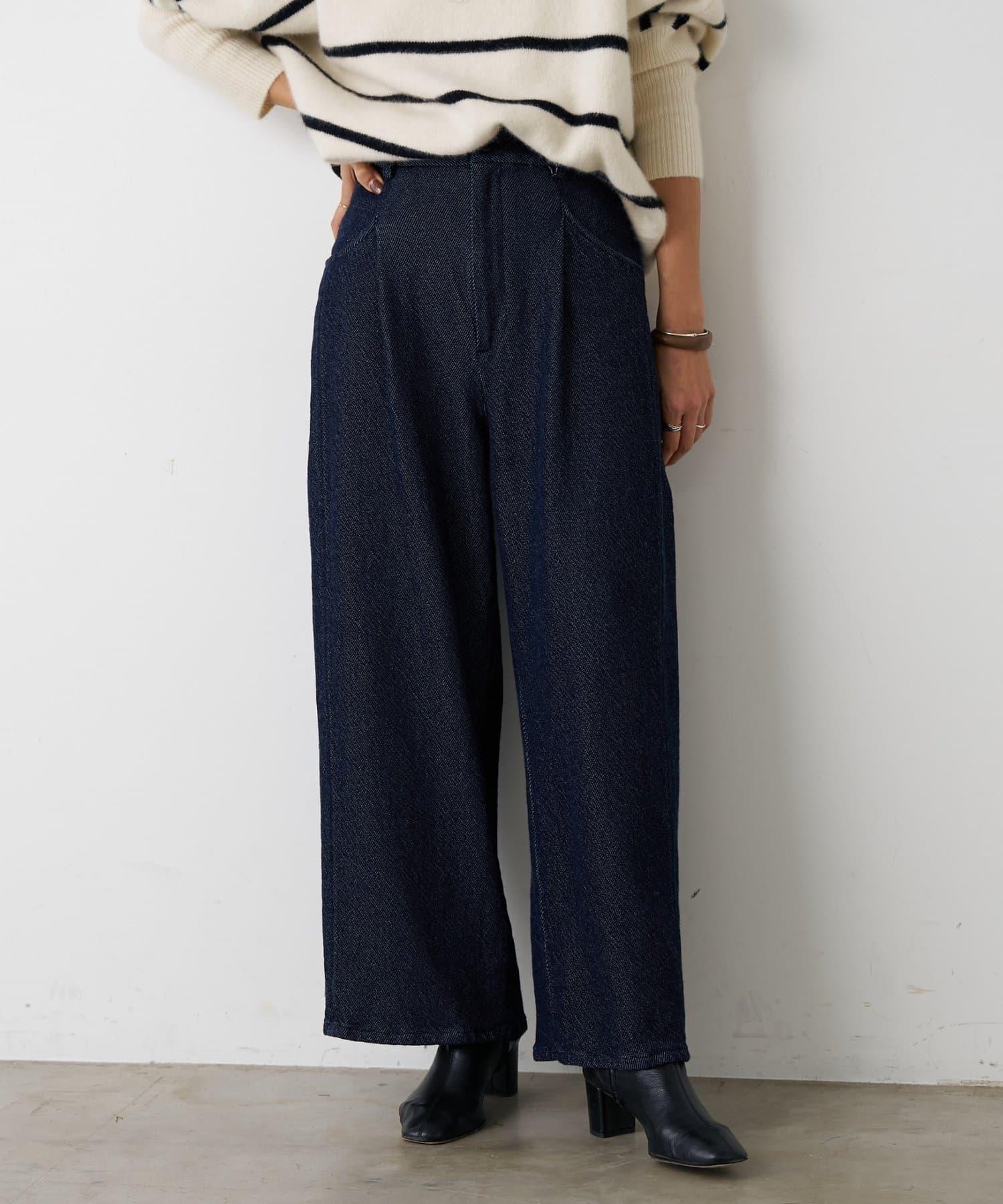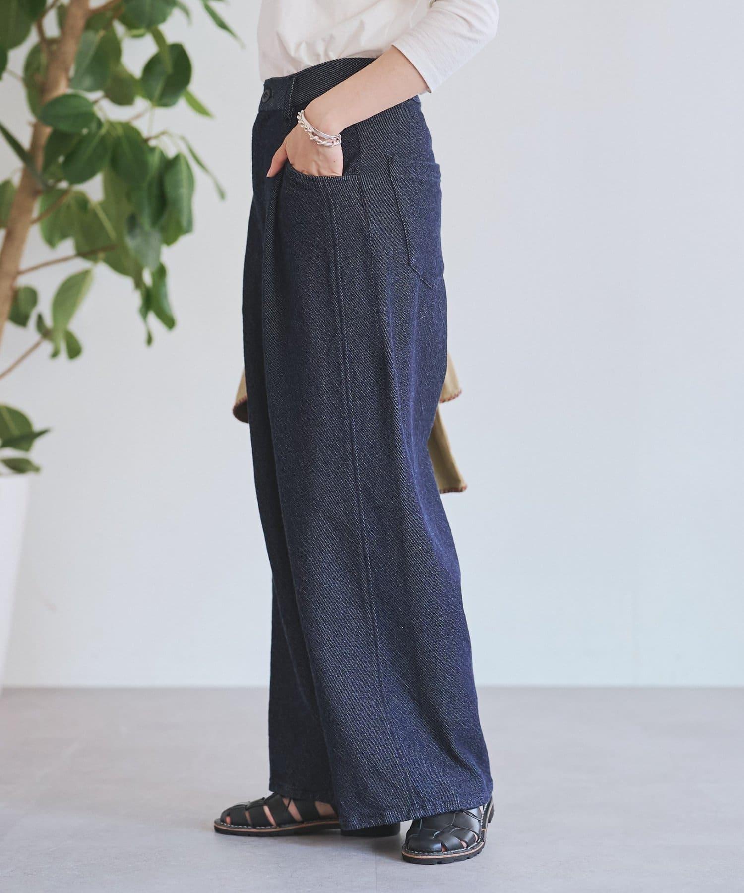 靛藍 "具有獨特的牛仔布質感,表面漂浮著一絲絲白線。深邃的色彩賦予了這款褲子精緻的外觀。