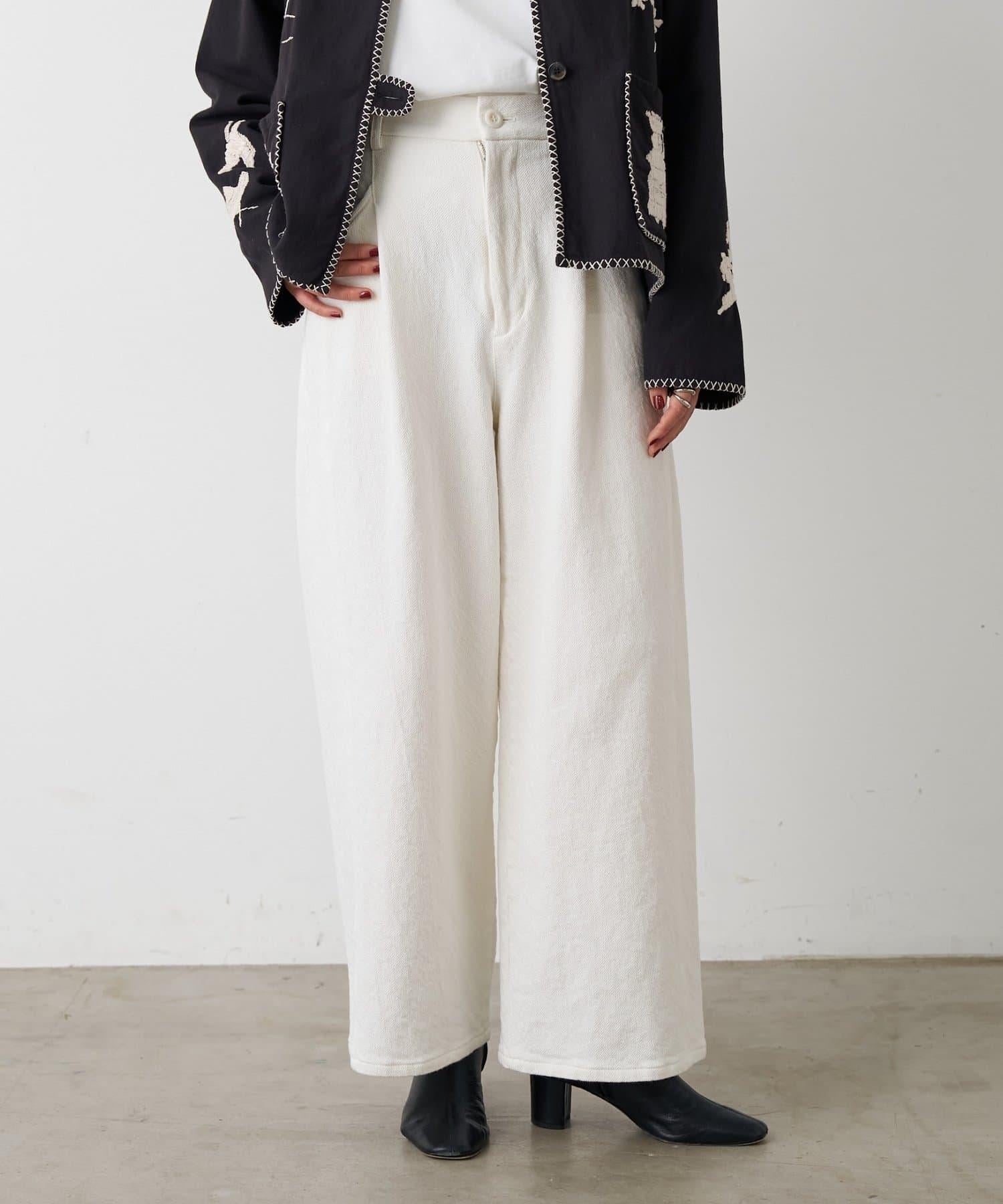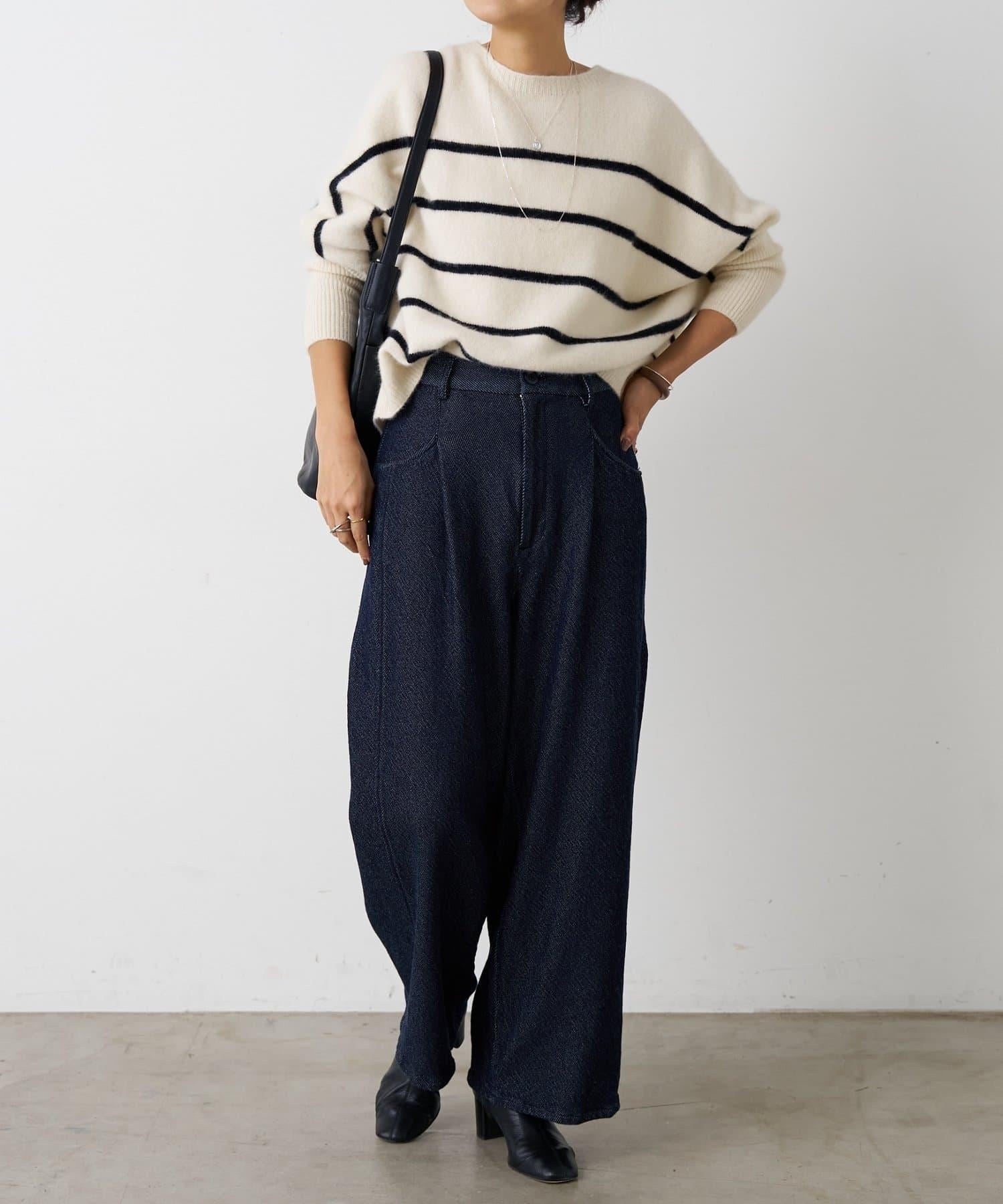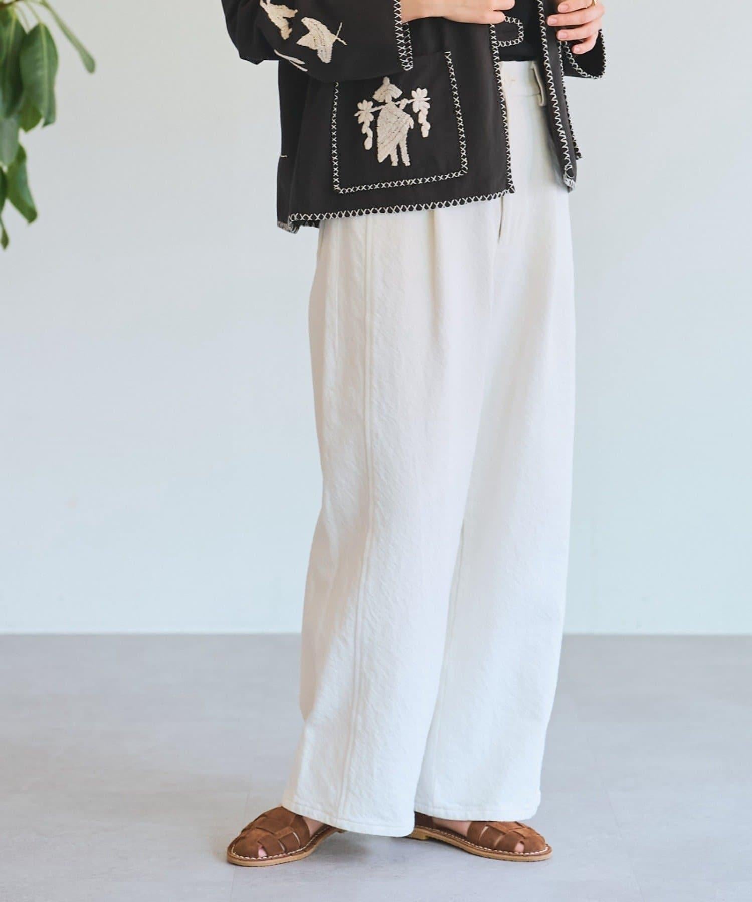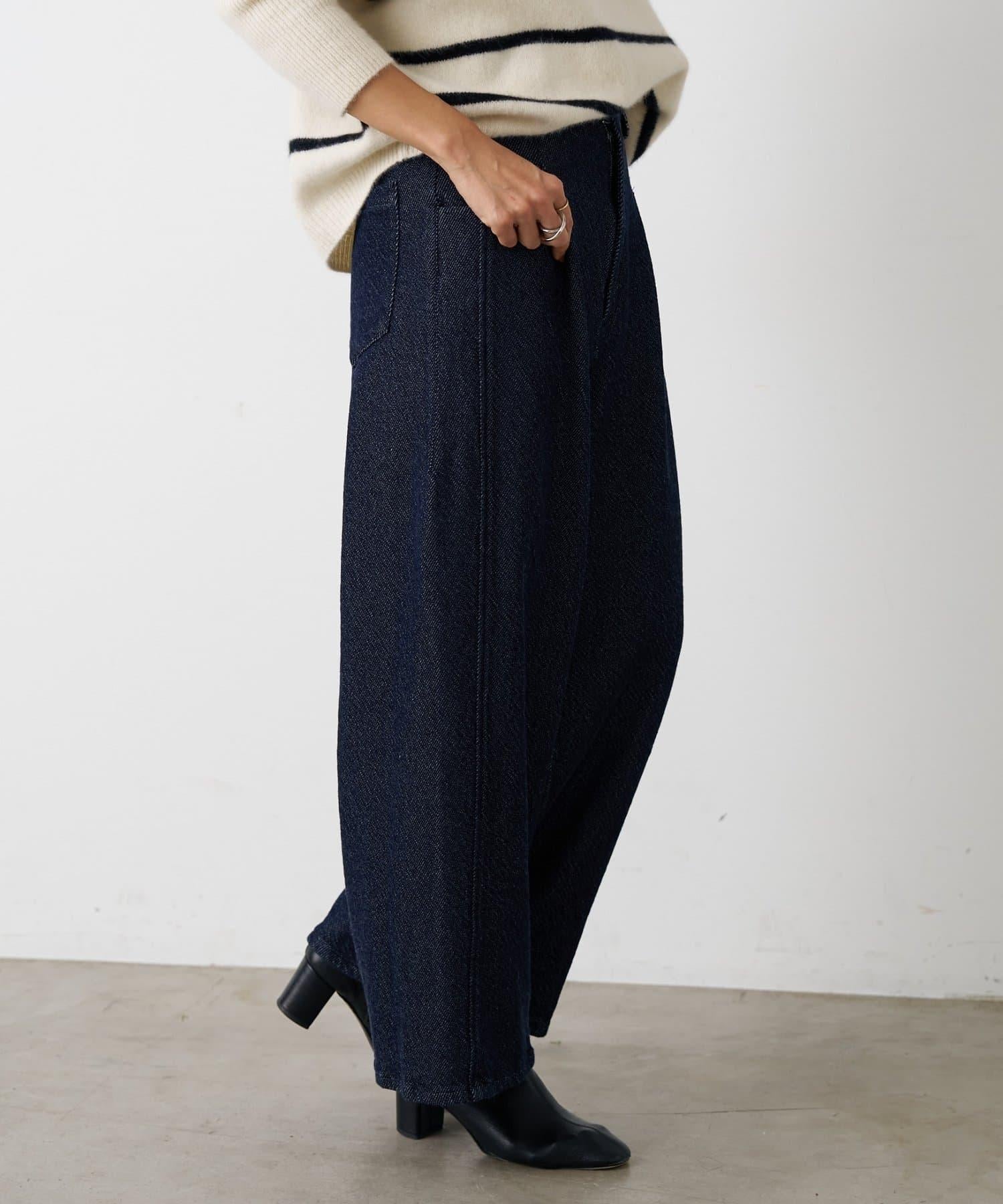 前襟的收腰設計和前側的縫線突出了寬大廓形的垂直線條,使雙腿看起來更加筆直修長。