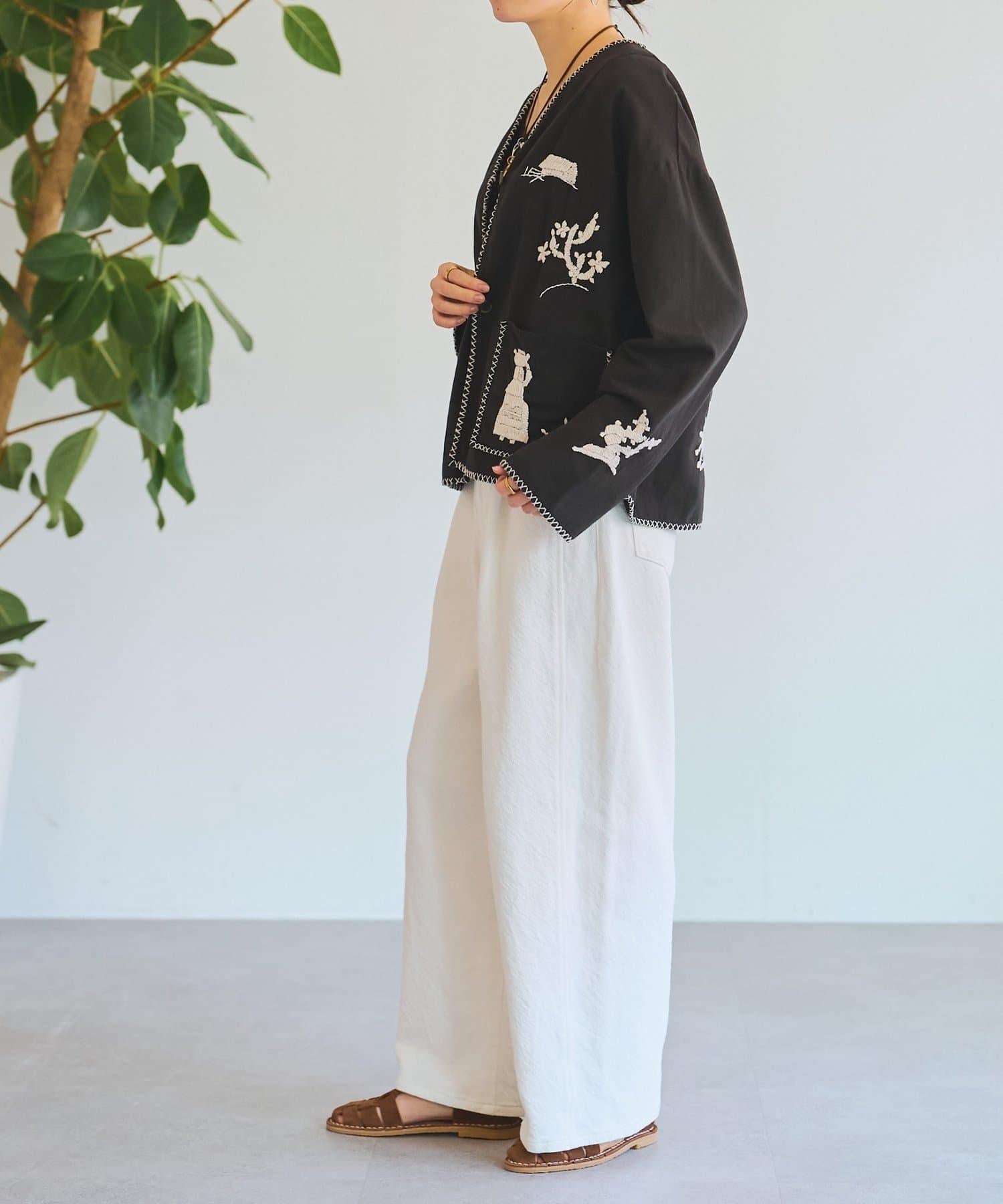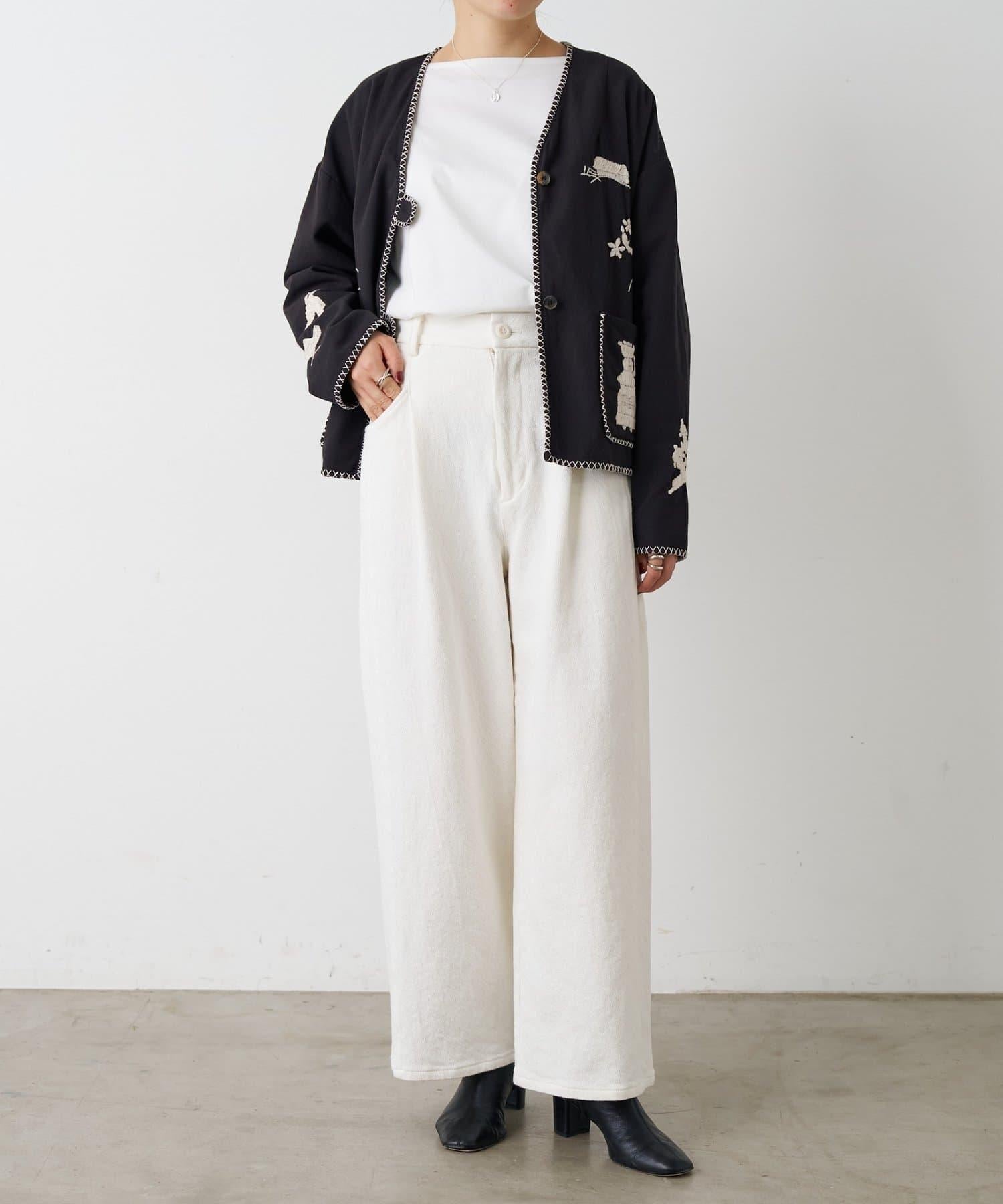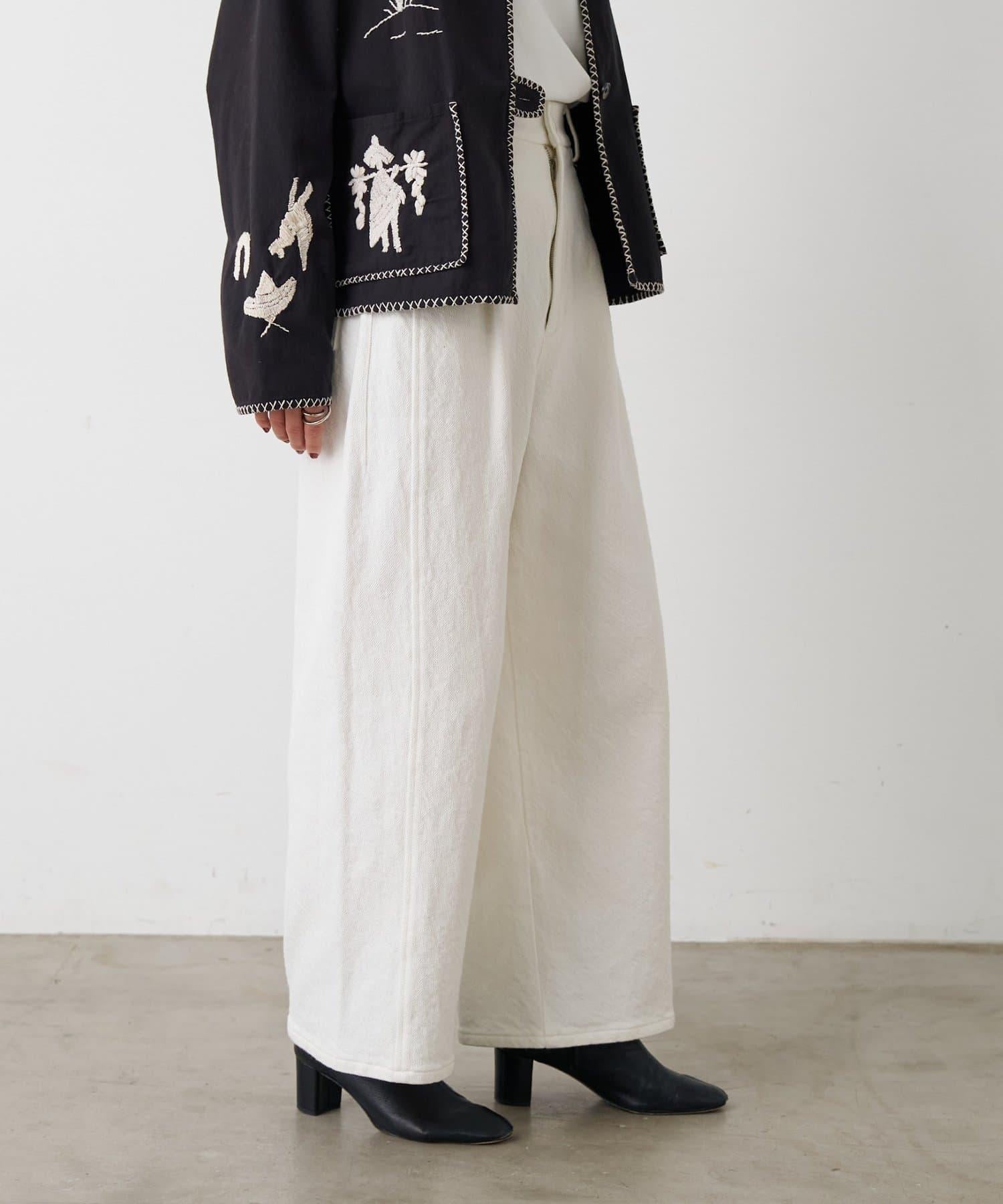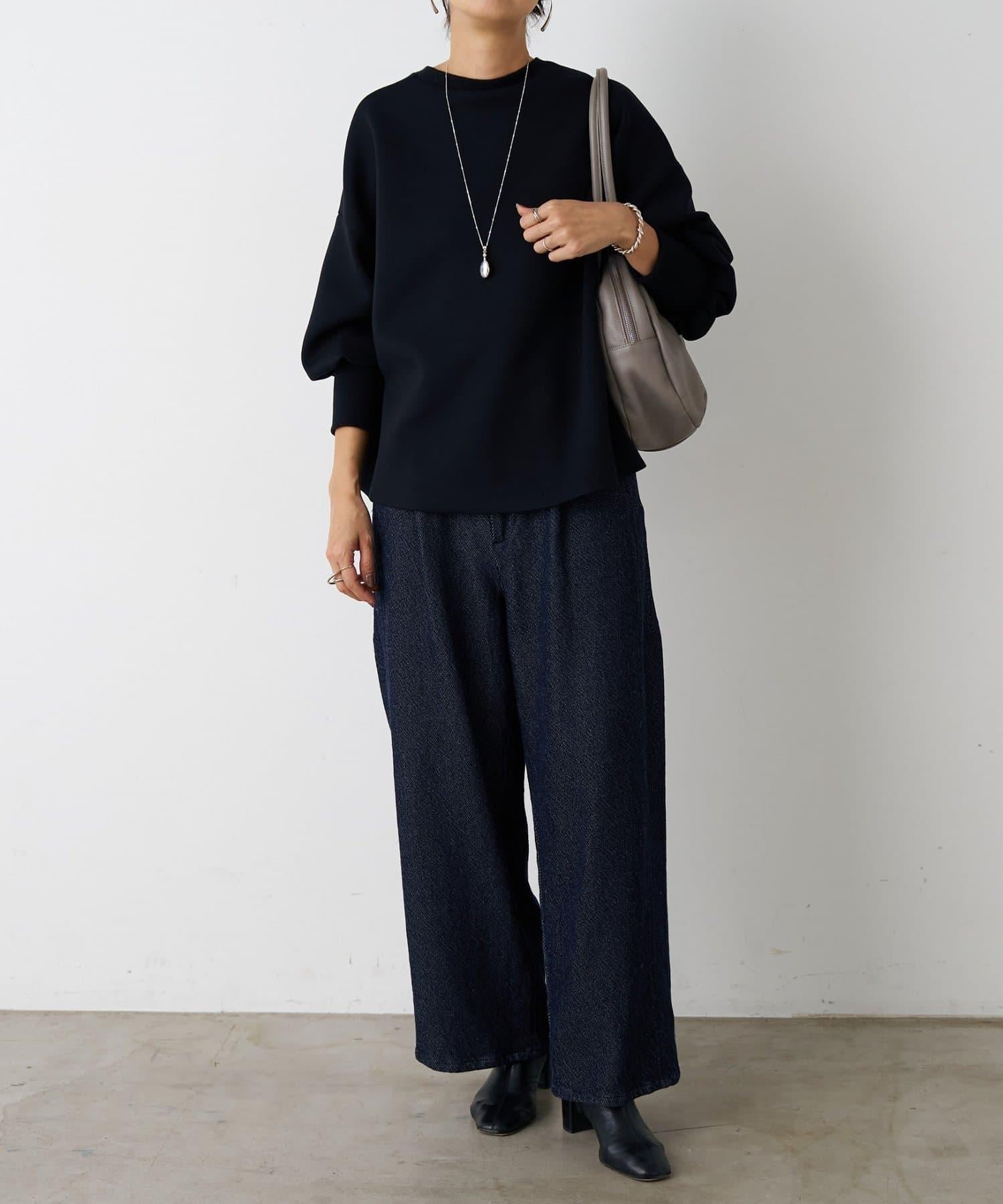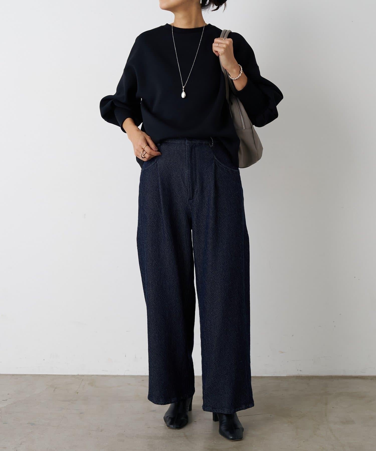 前襟的收腰設計和前側的縫線突出了寬大廓形的垂直線條,使雙腿看起來更加筆直修長。