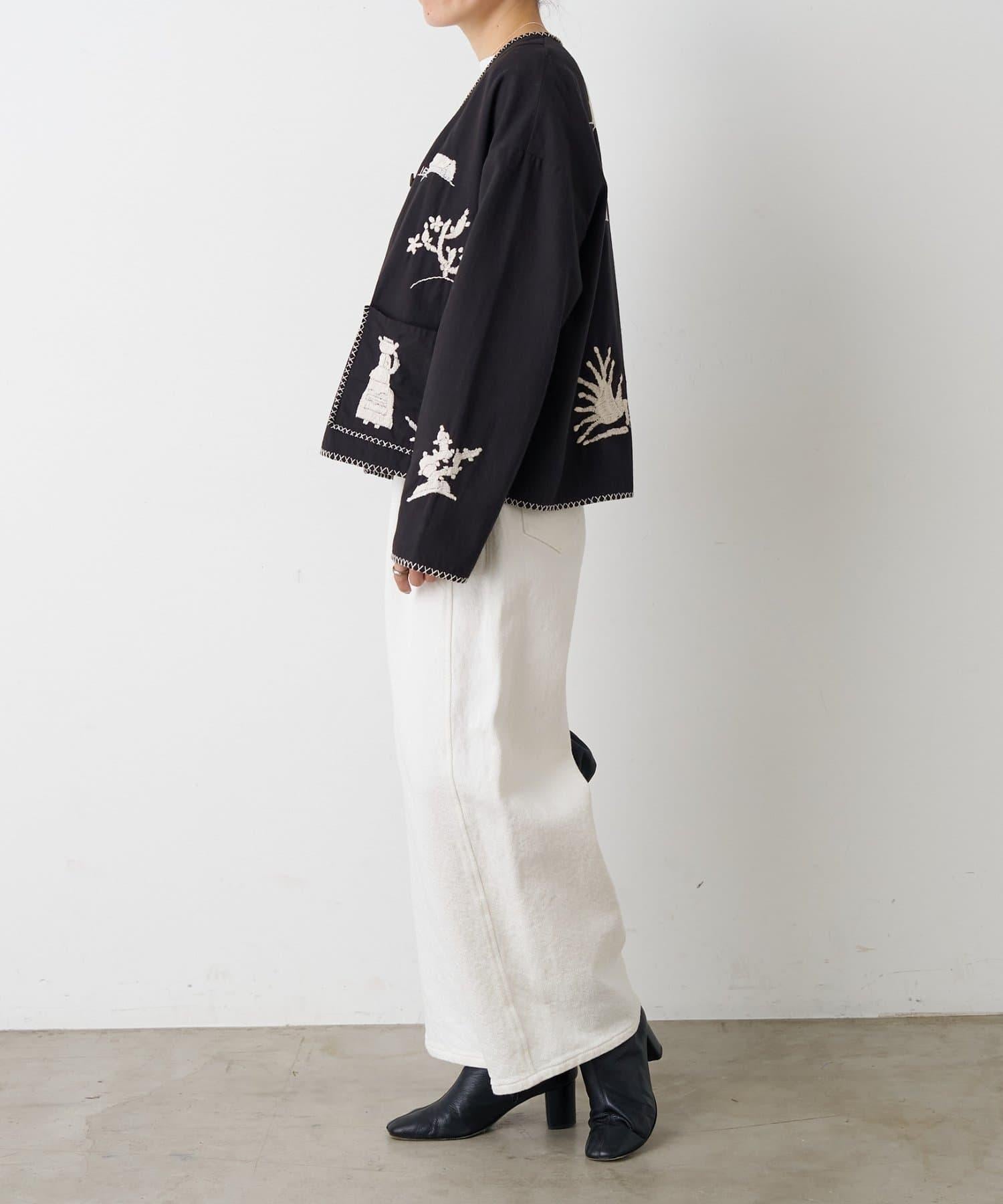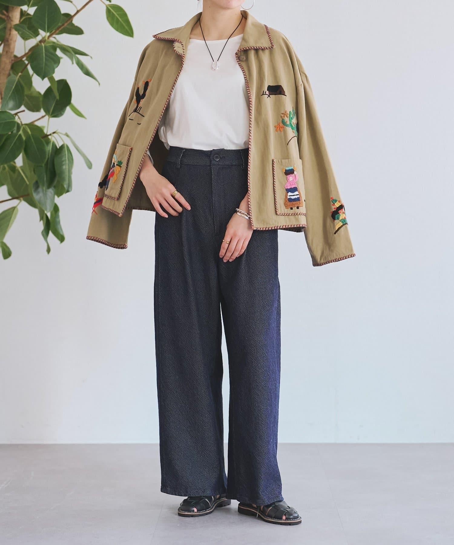 面料採用厚斜紋牛仔布製成。牛仔布獨特的粗糙質感很吸引人,雖然有彈性,但不會太挑身體線條,穿起來很方便。