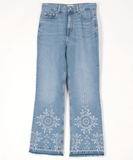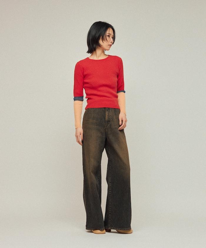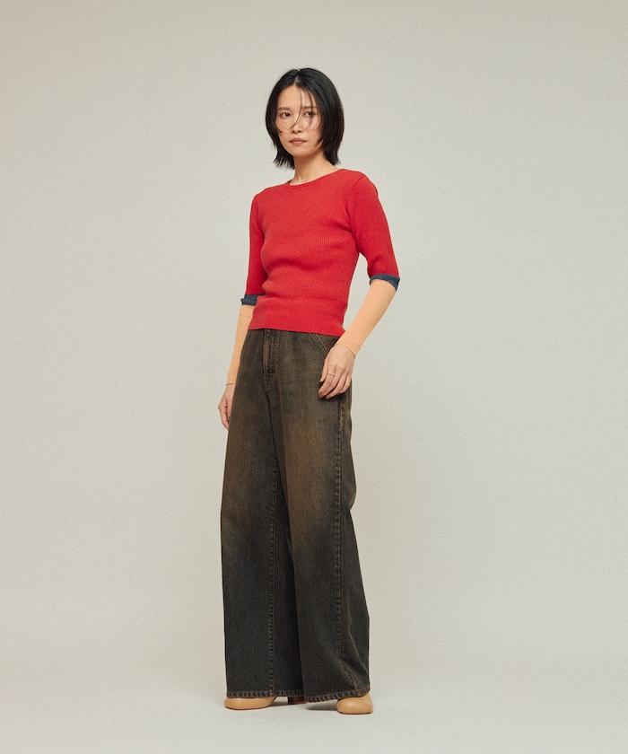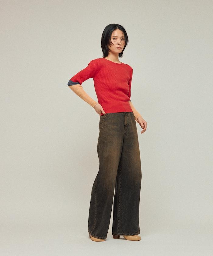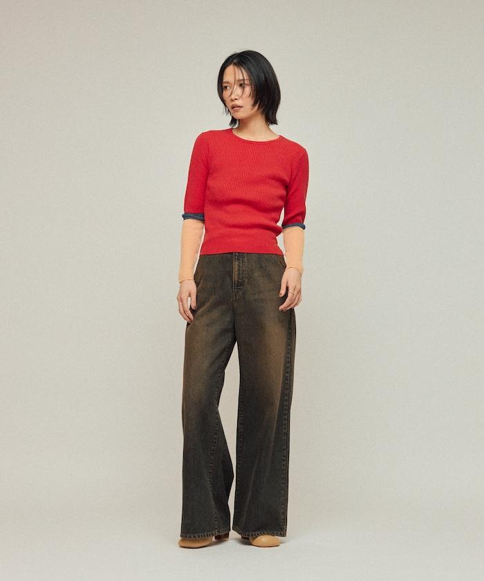 粉末漂白工藝使褲子呈現出凹凸有致的精緻效果。