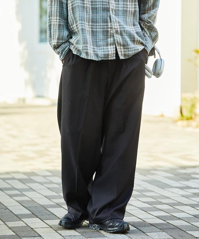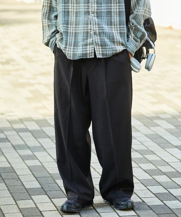 寬鬆直筒一褶西裝長褲