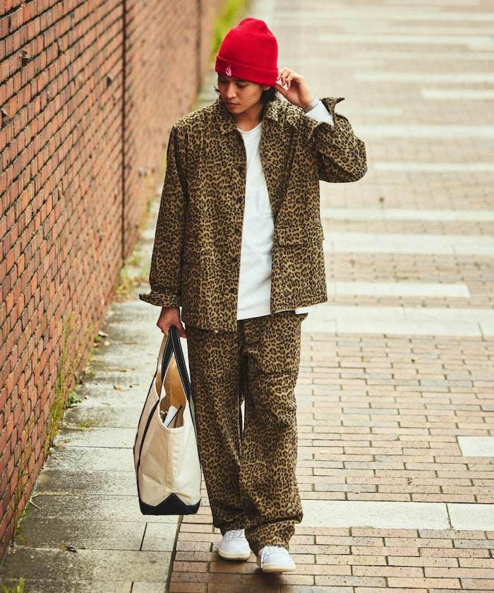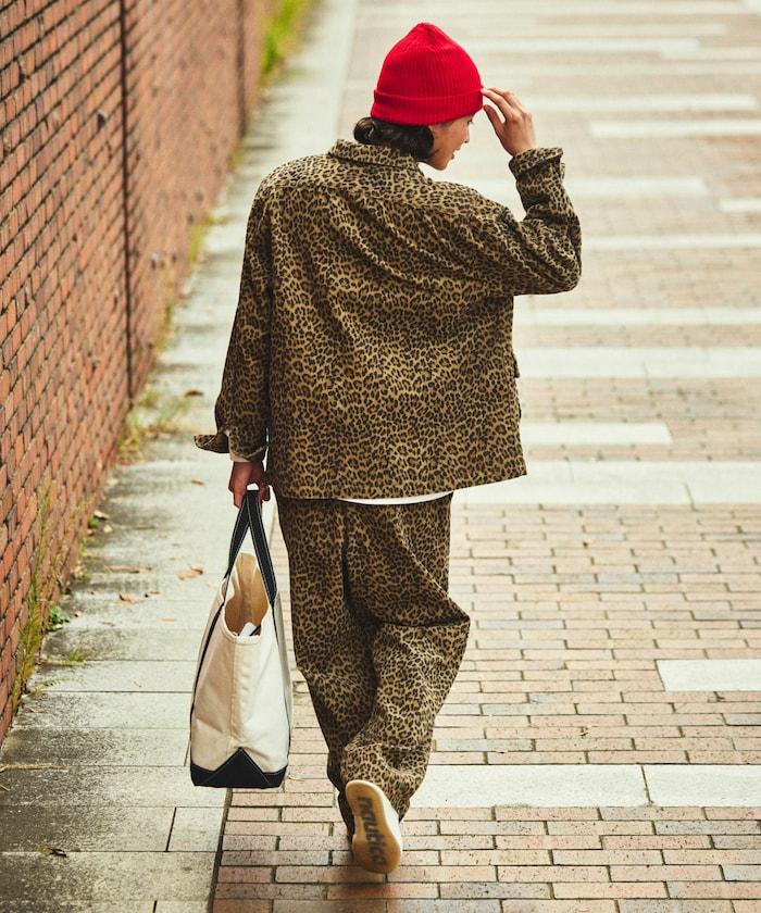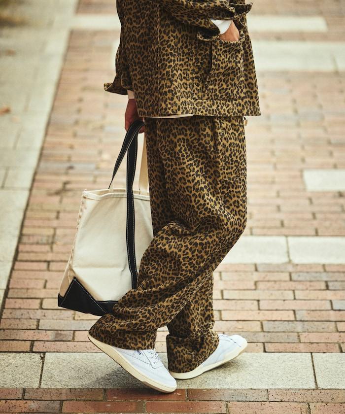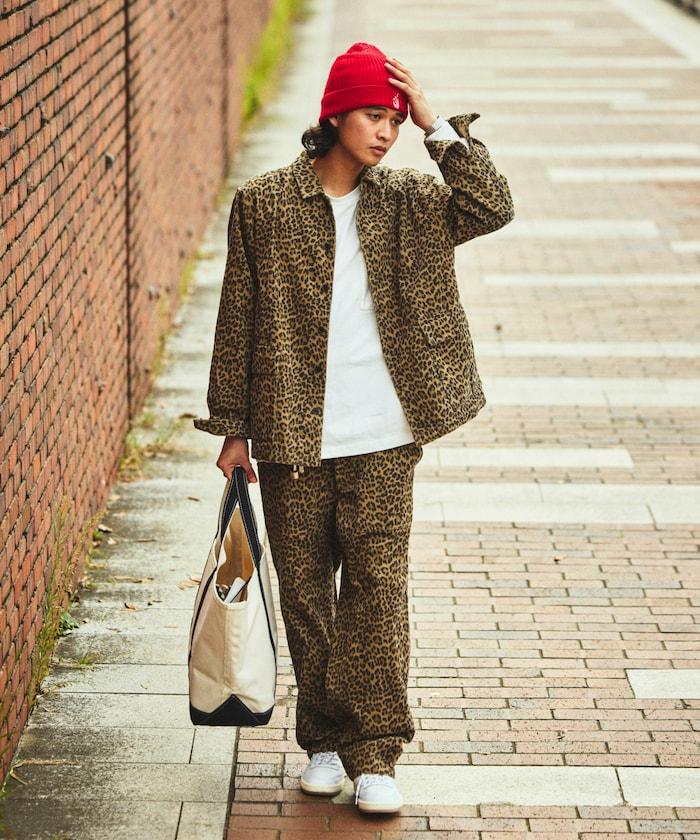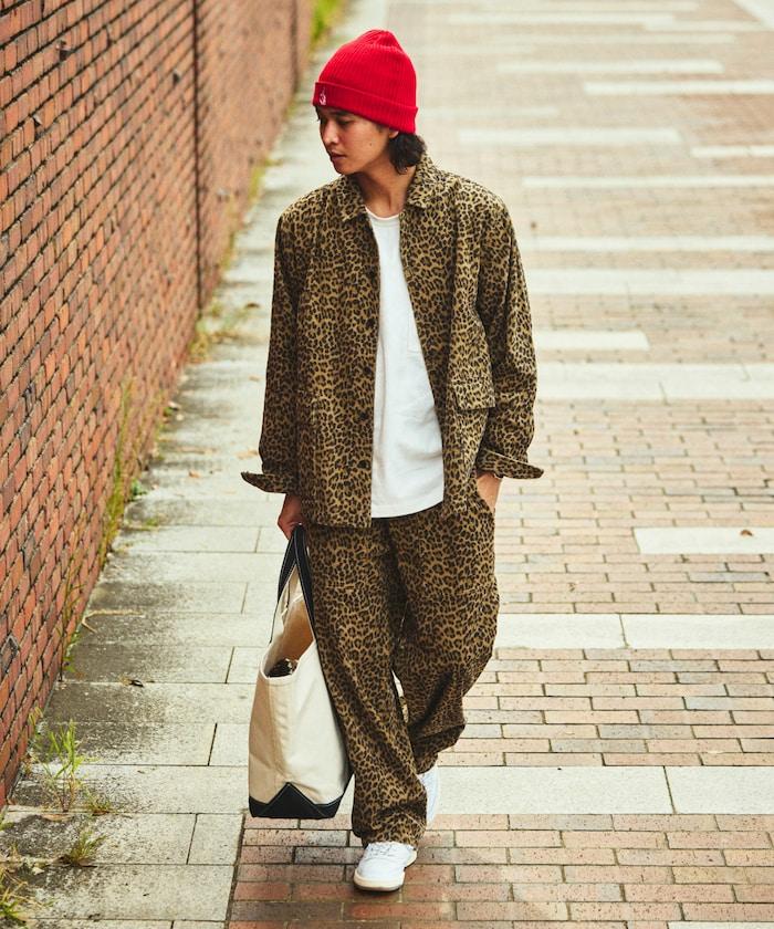 復古風情的全花紋燈芯絨長褲,氣場十足。