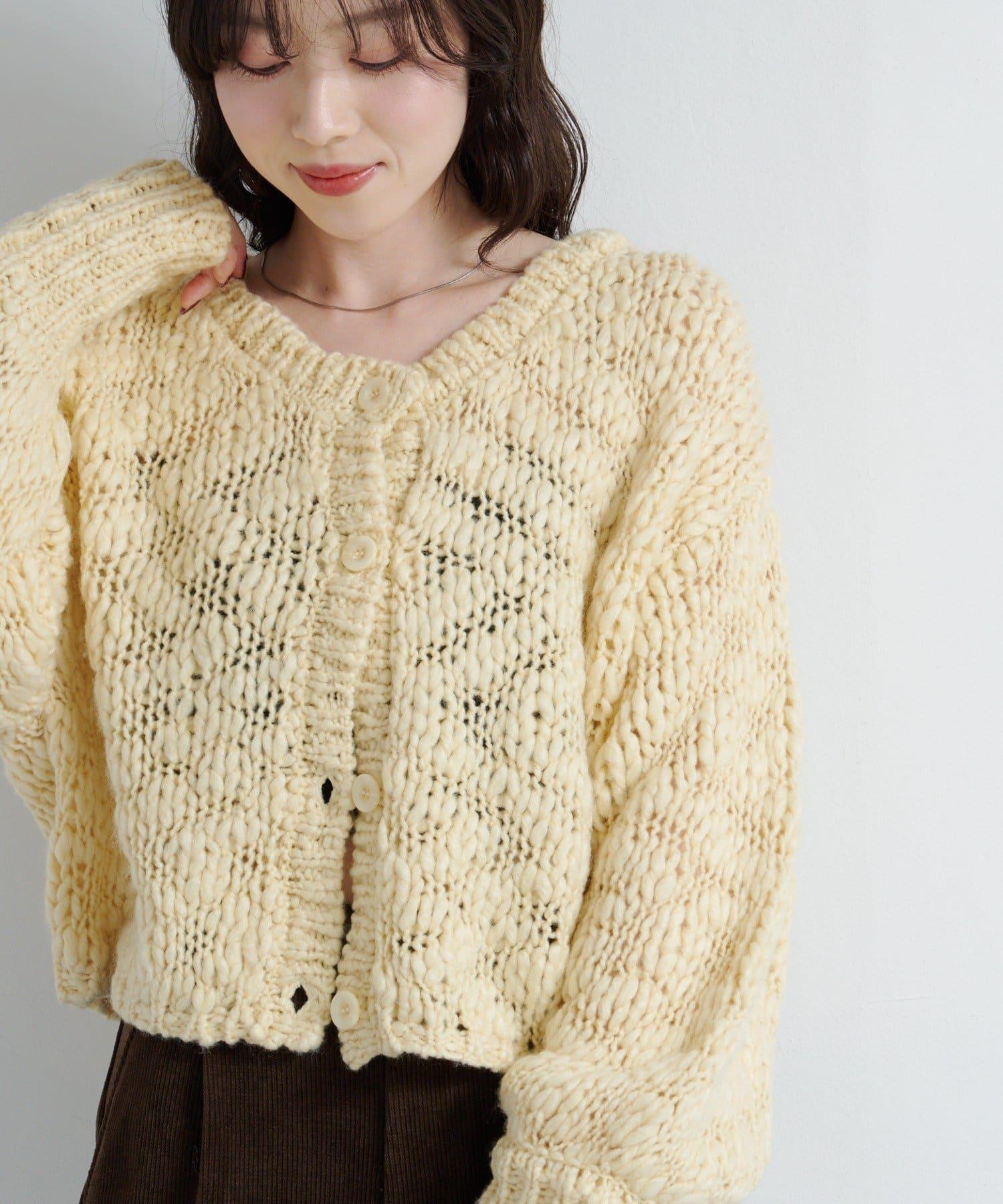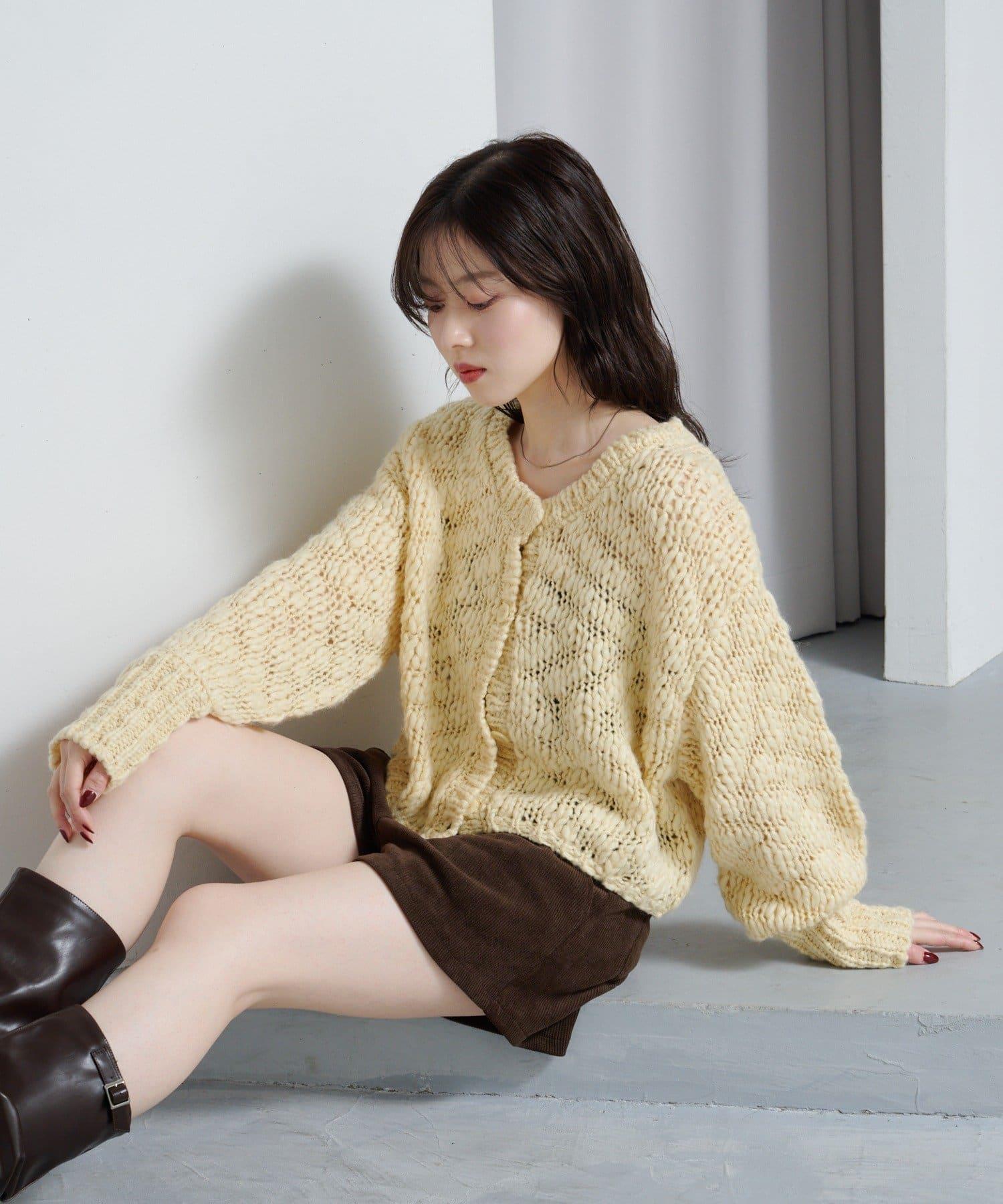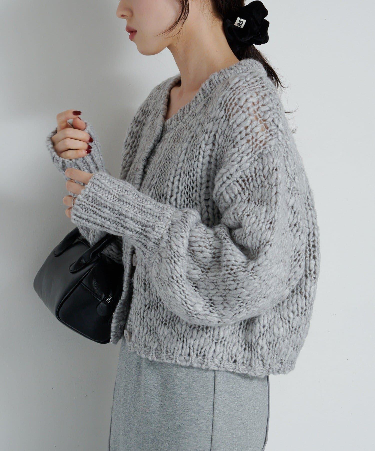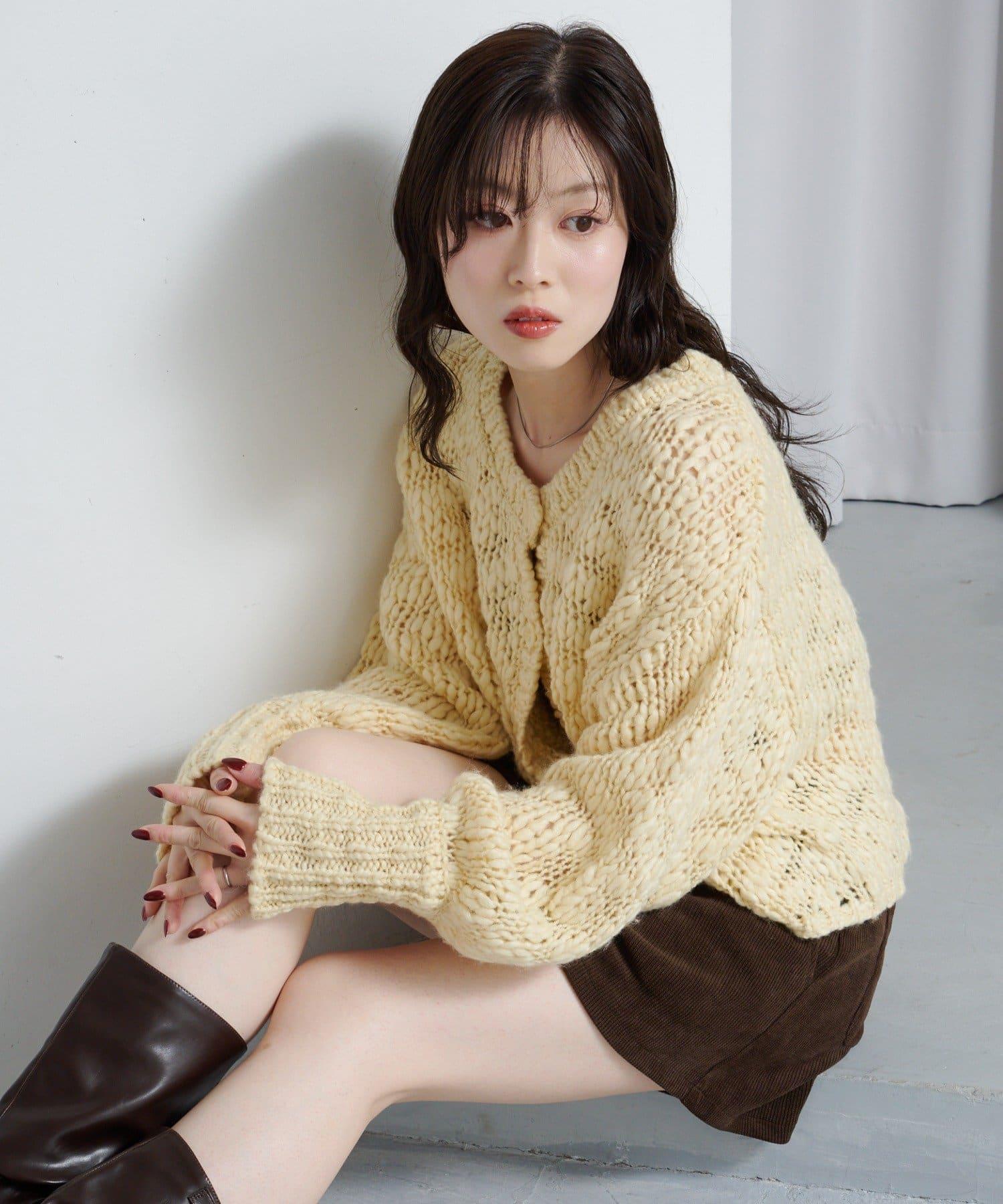 採用粗細不均的紗線編織而成,柔軟蓬鬆。