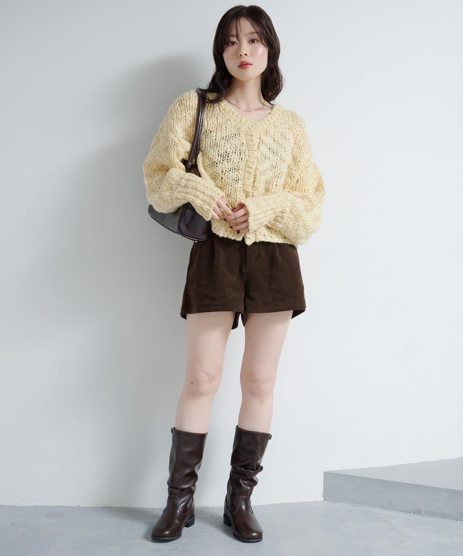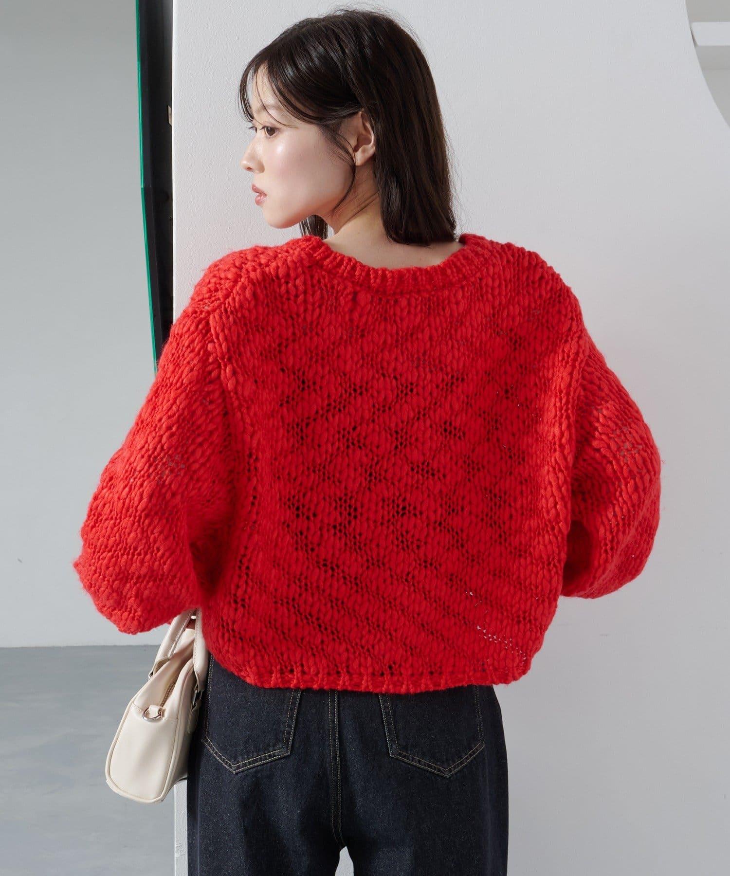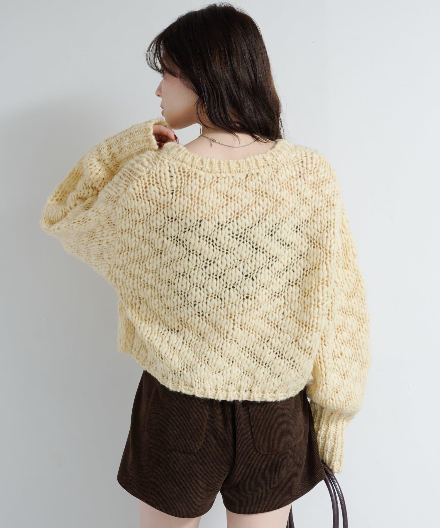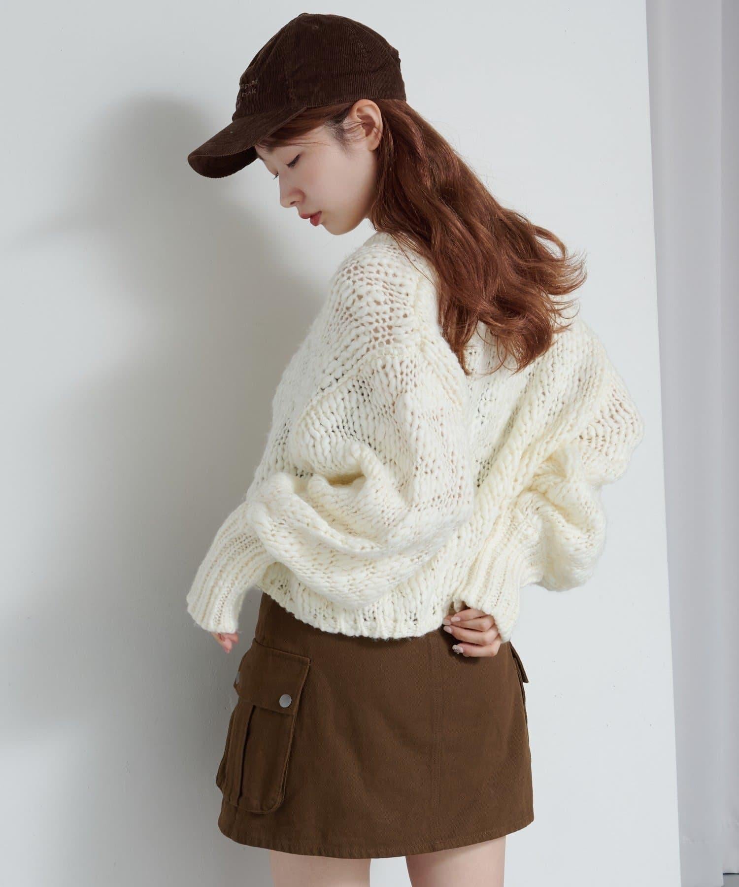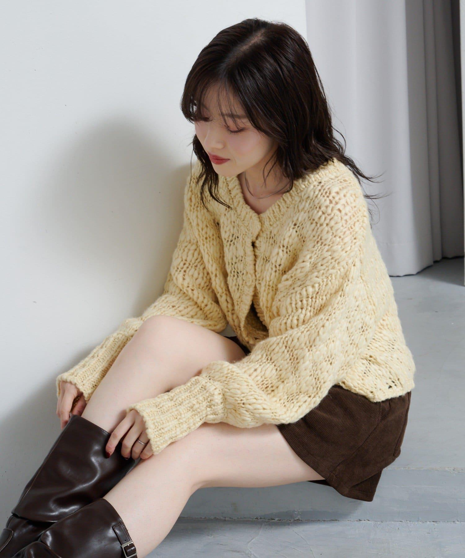 採用粗細不均的紗線編織而成,柔軟蓬鬆。