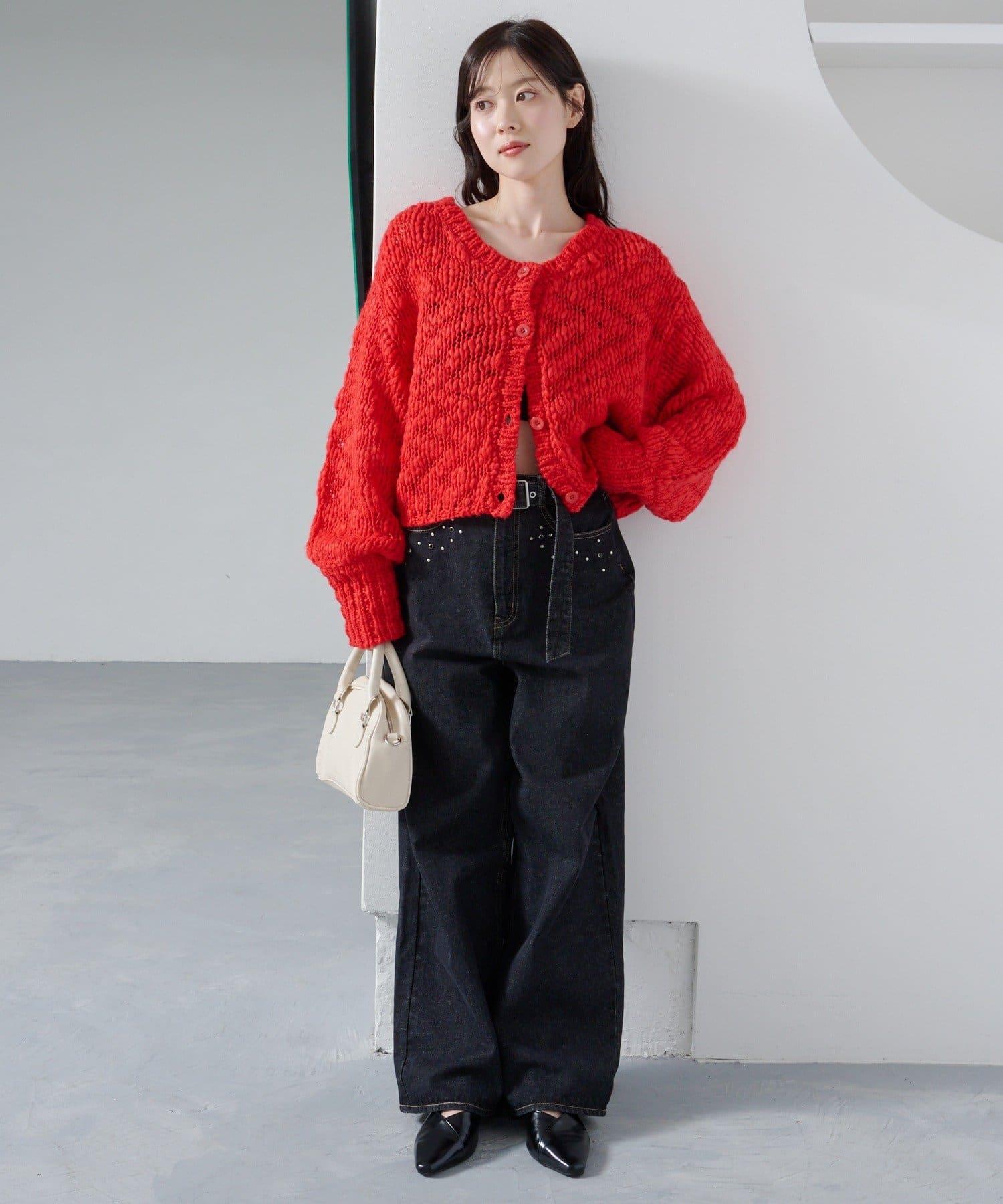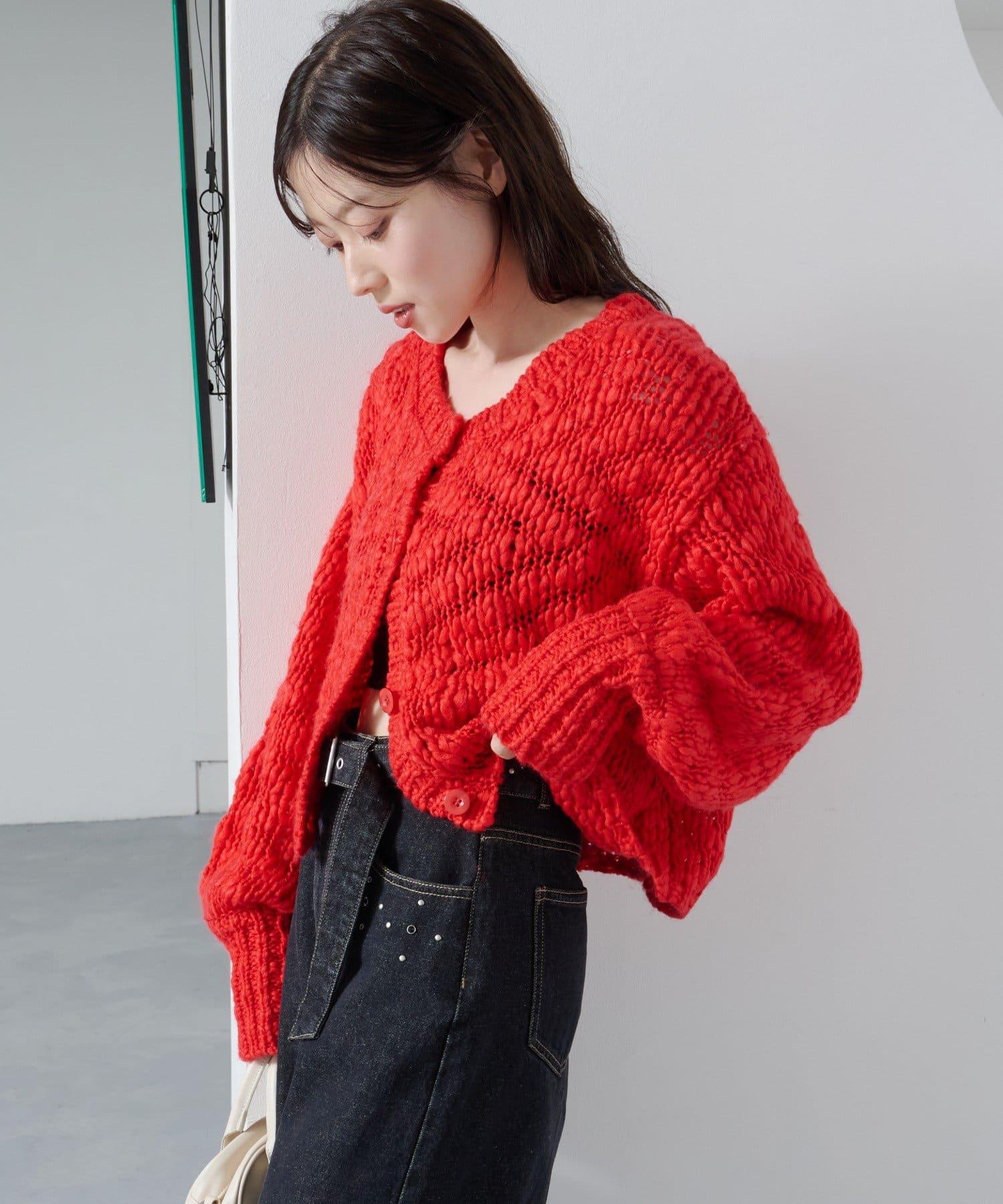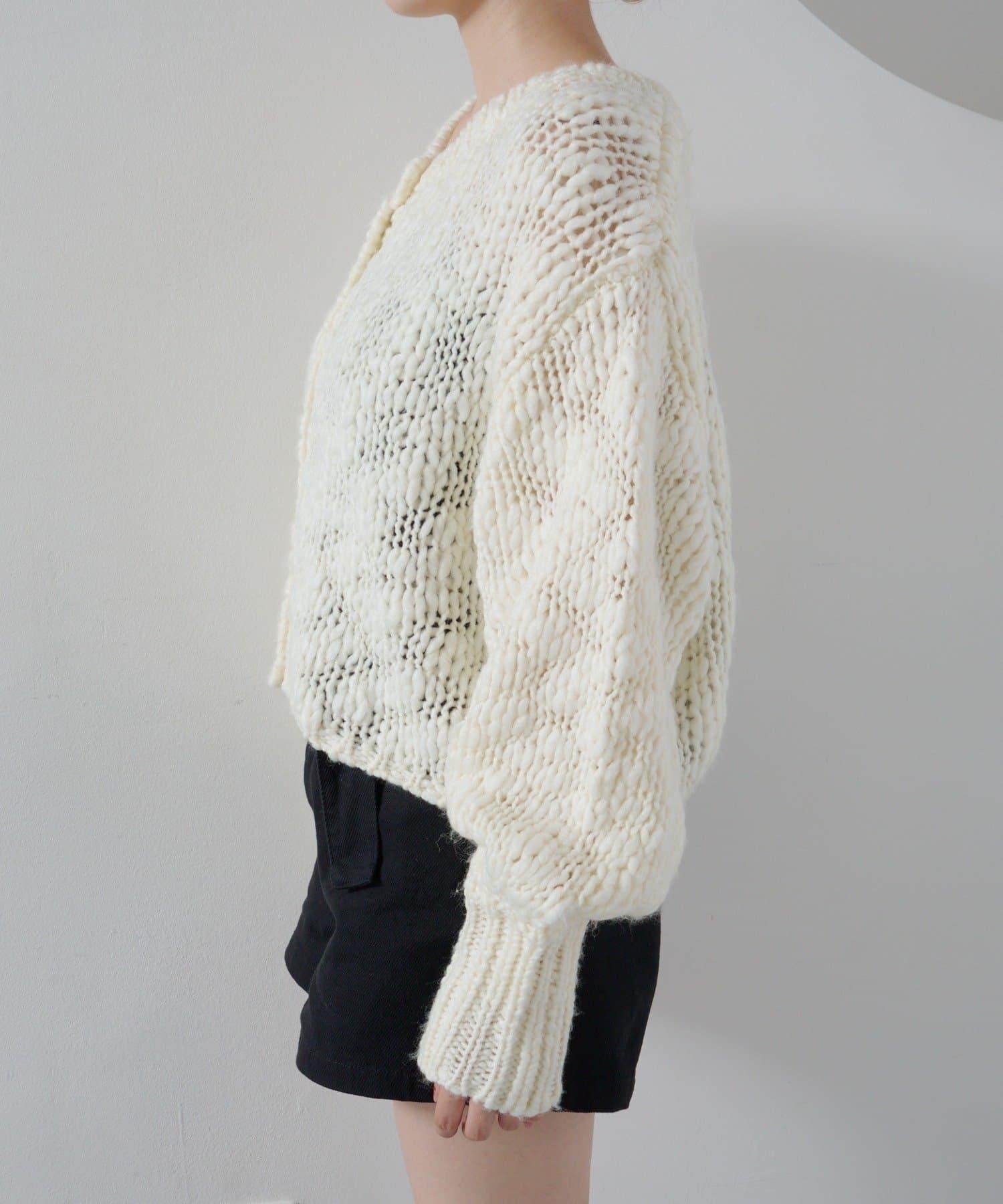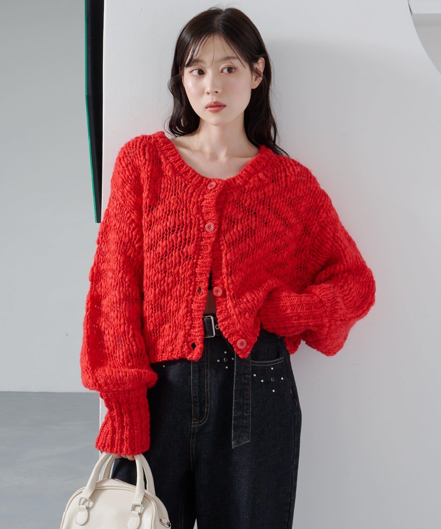 採用粗細不均的紗線編織而成,柔軟蓬鬆。