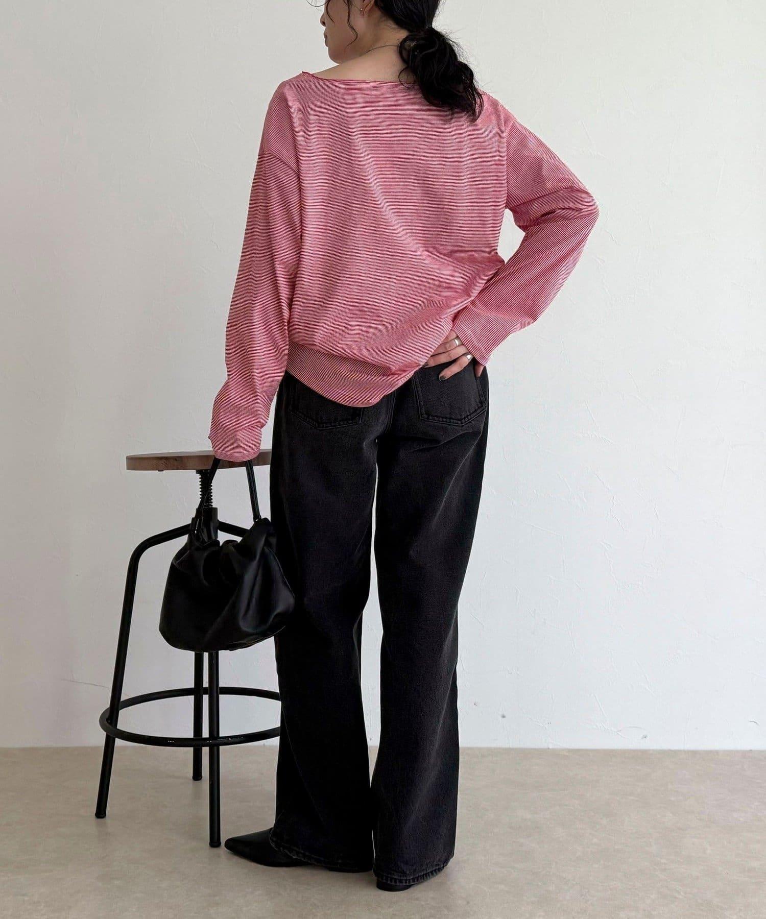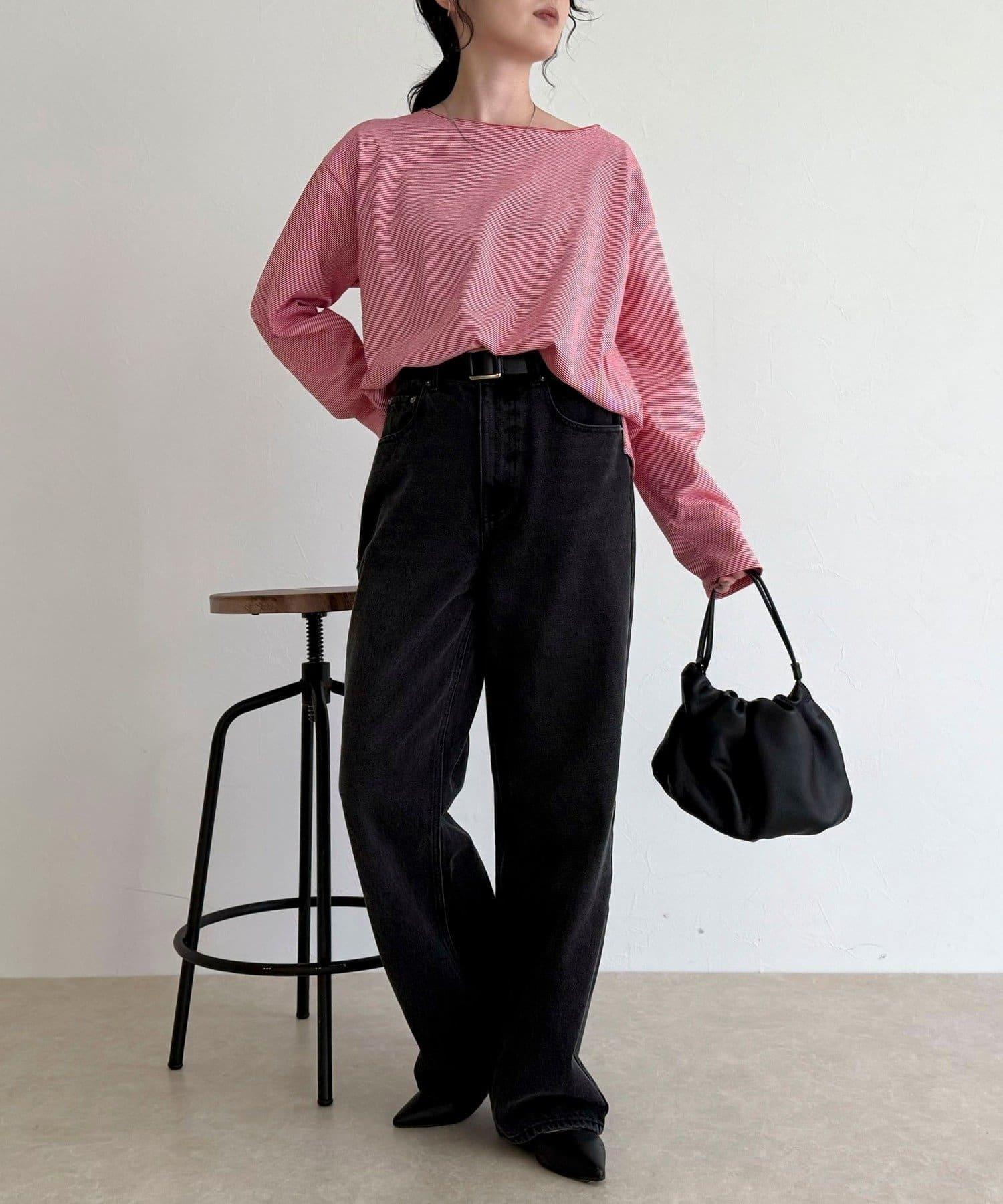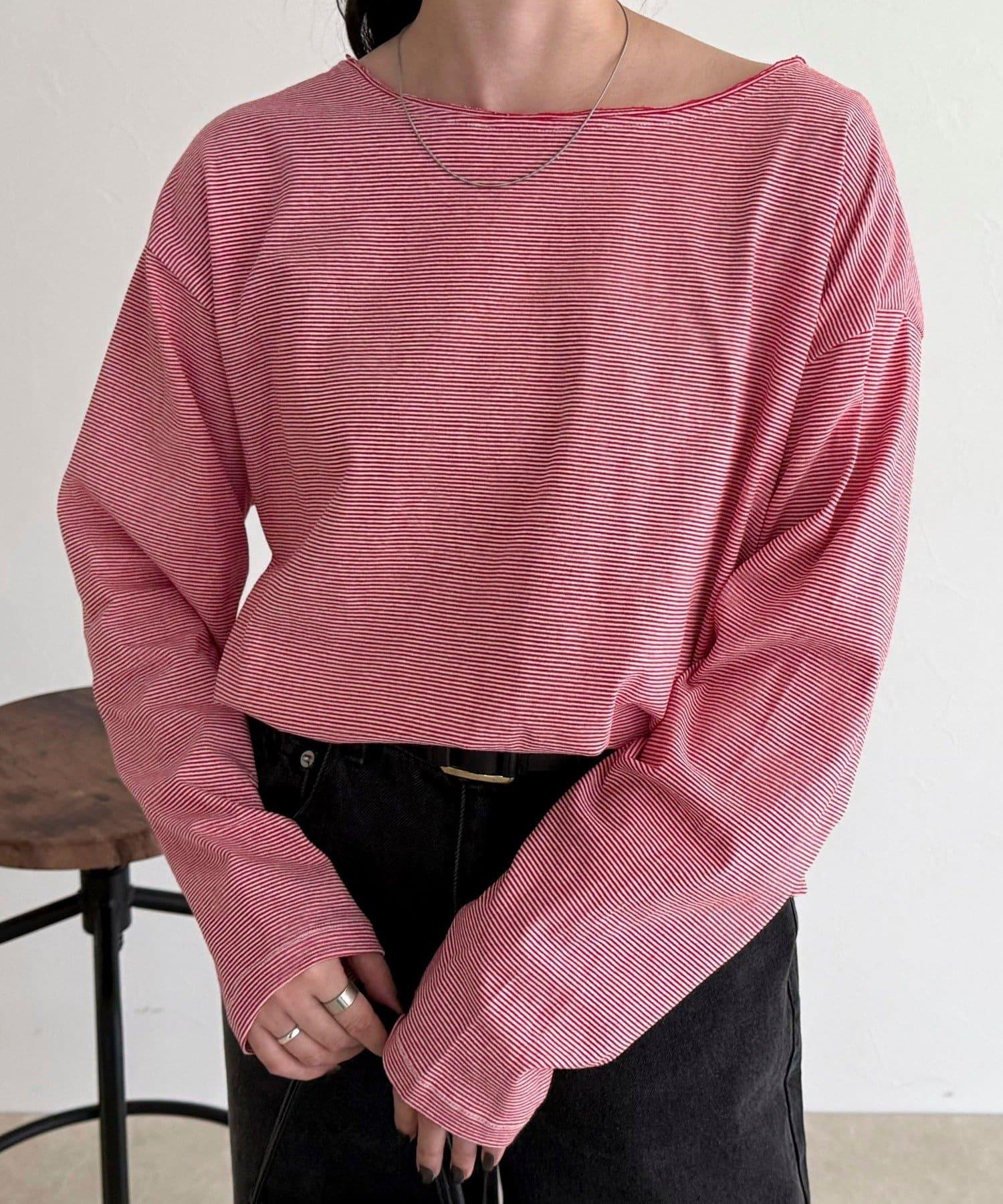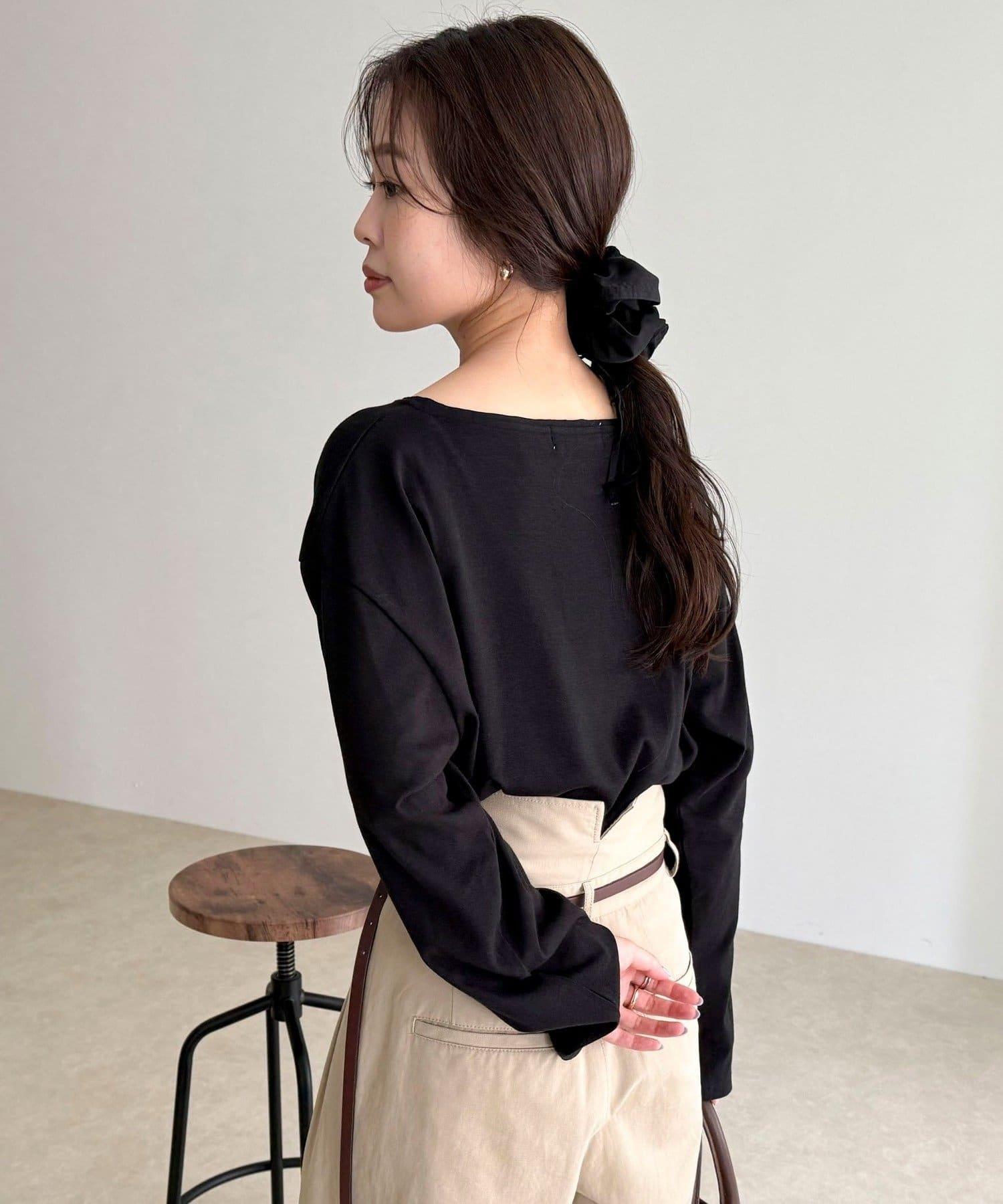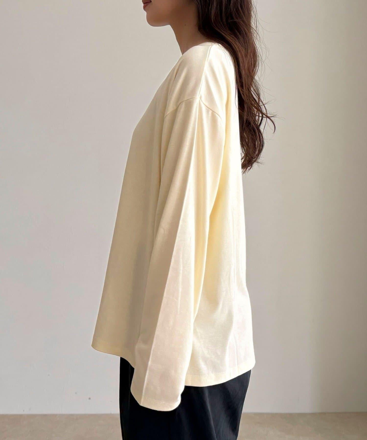 身高 156 厘米的工作人員:長度輕盈地掛在臀部,即使外穿也很整潔!船領設計讓頸部看起來乾淨利落,穿起來輕盈柔軟。它是一件百搭的上衣,還能遮蓋身形。