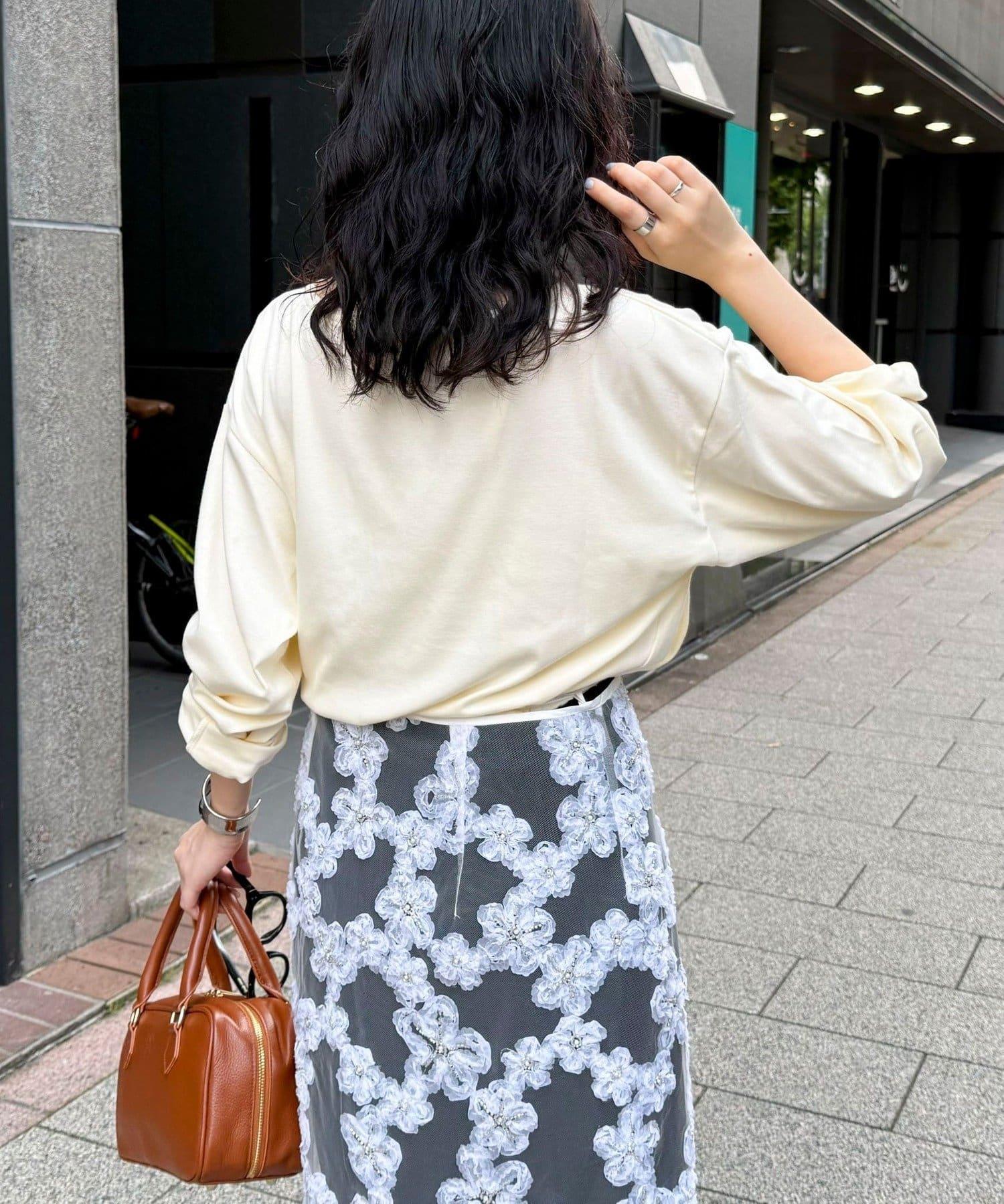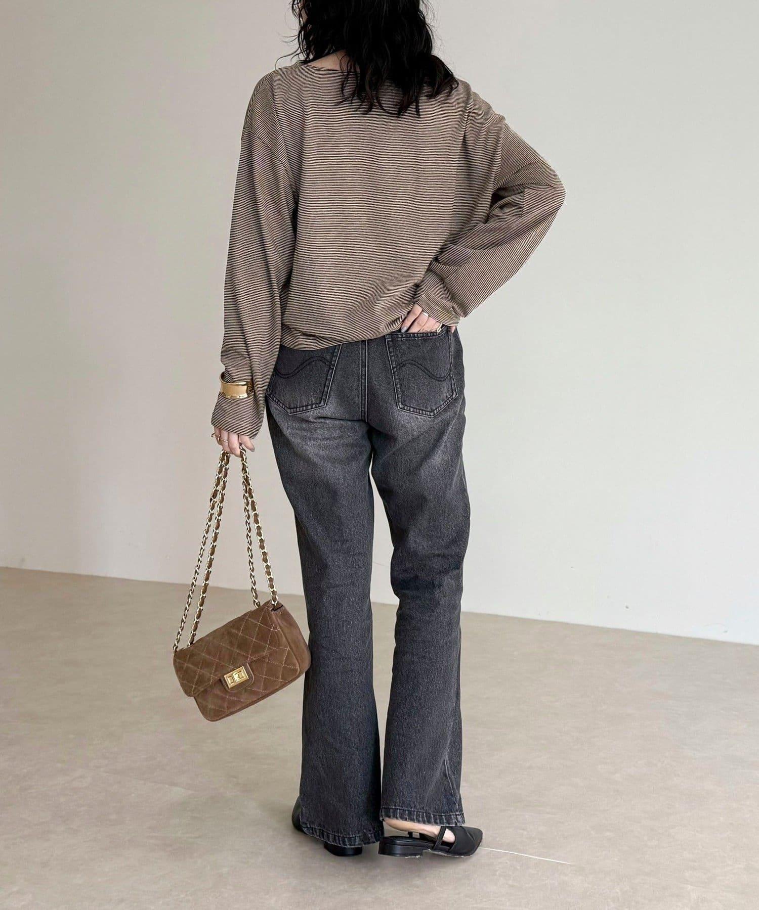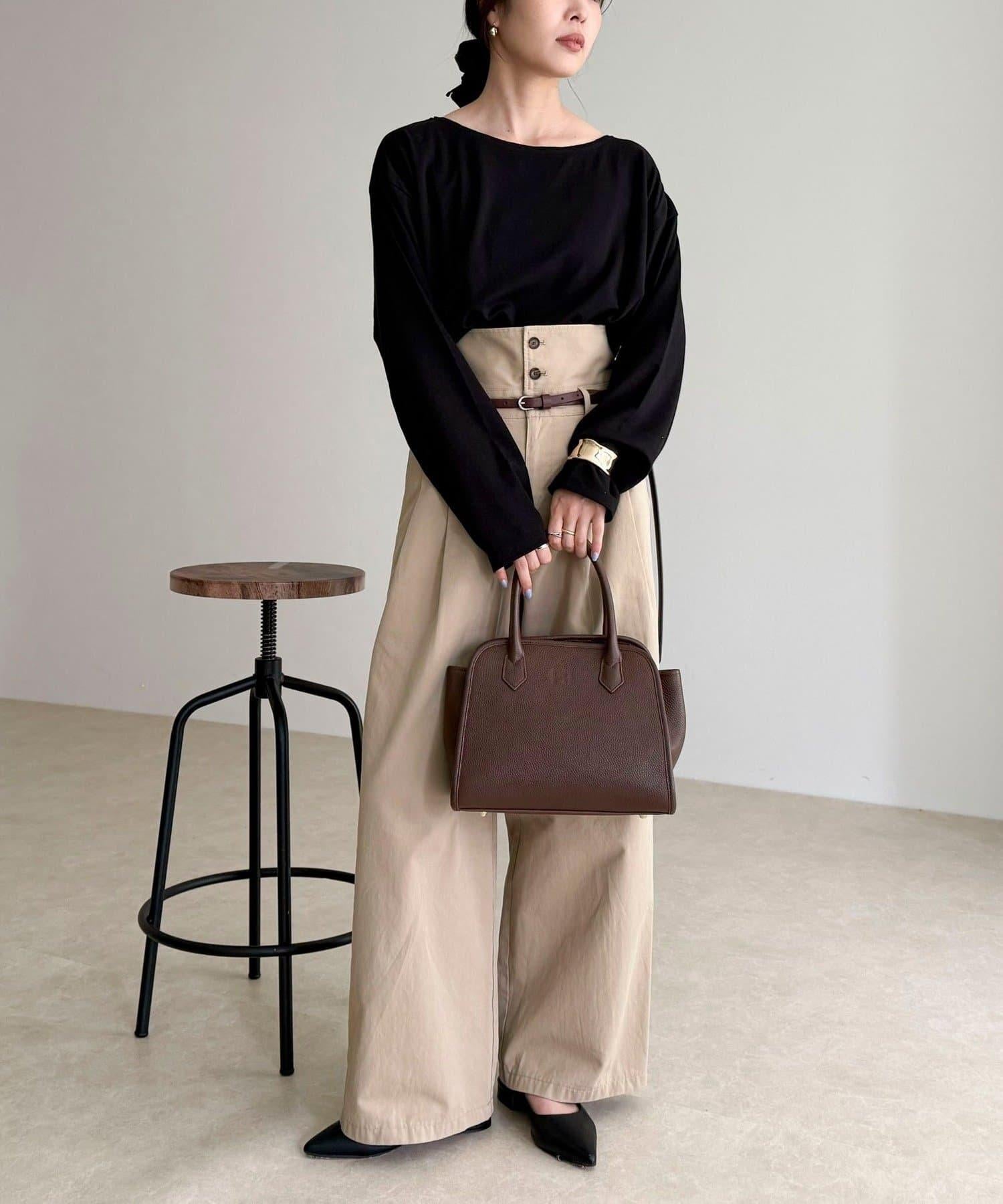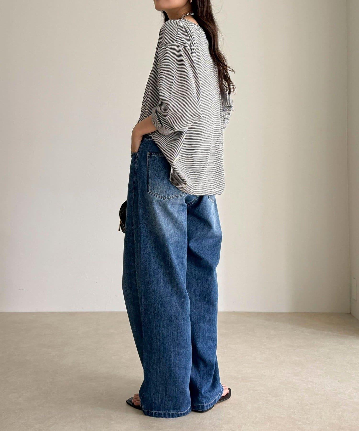 身高 156 厘米的工作人員:長度輕盈地掛在臀部,即使外穿也很整潔!船領設計讓頸部看起來乾淨利落,穿起來輕盈柔軟。它是一件百搭的上衣,還能遮蓋身形。