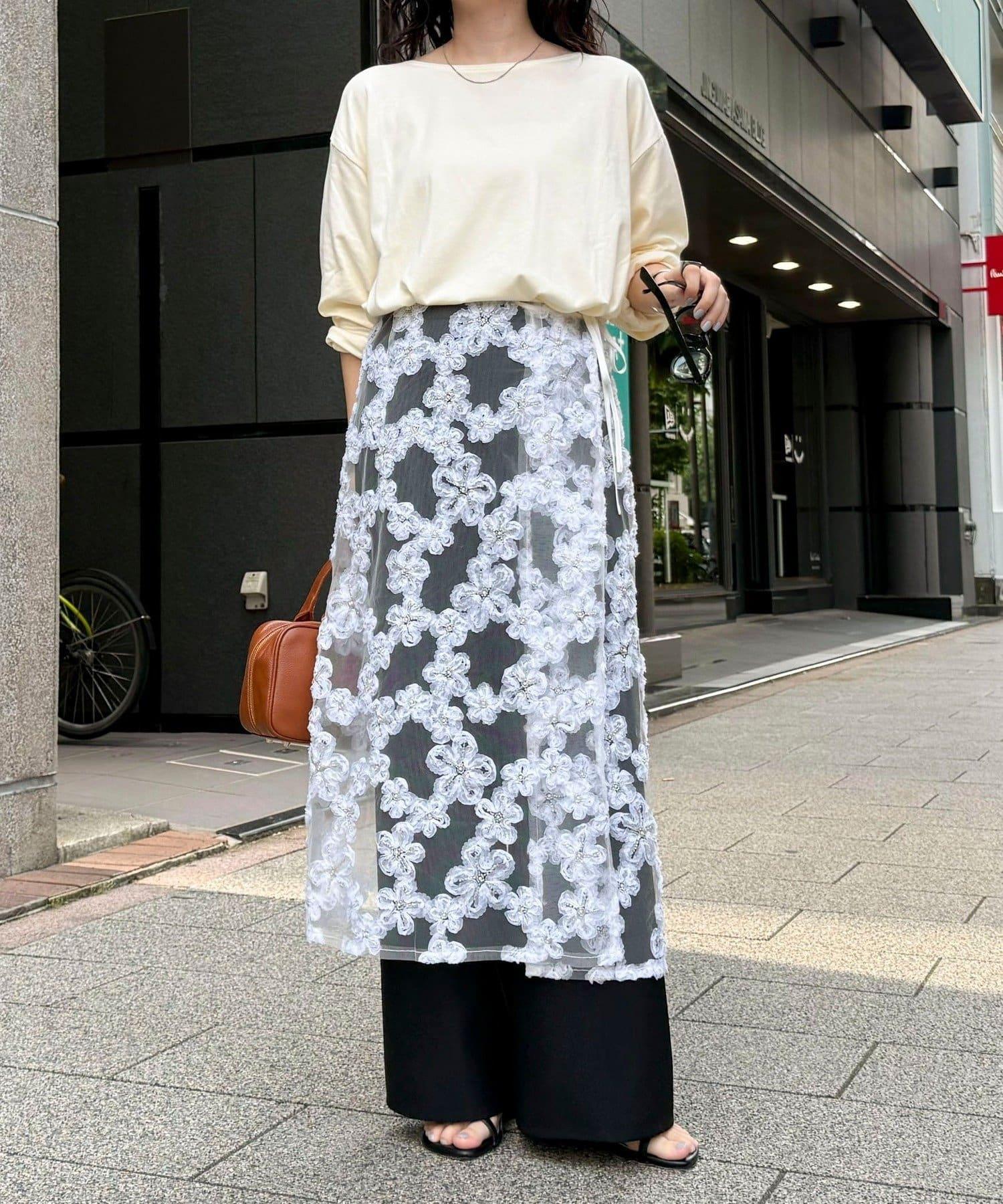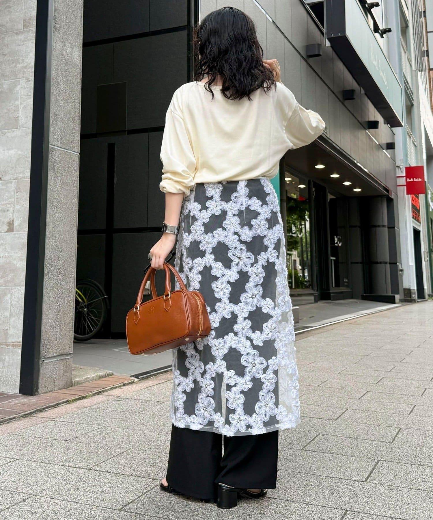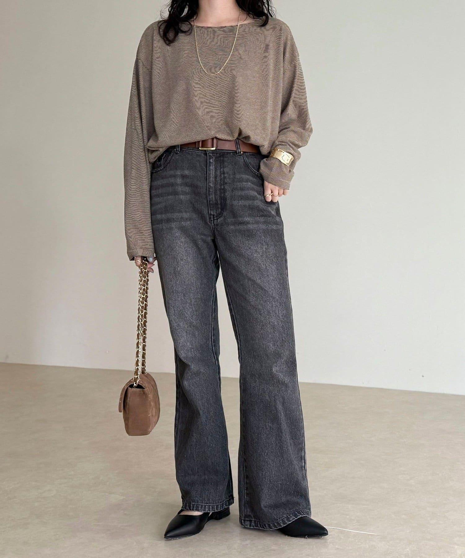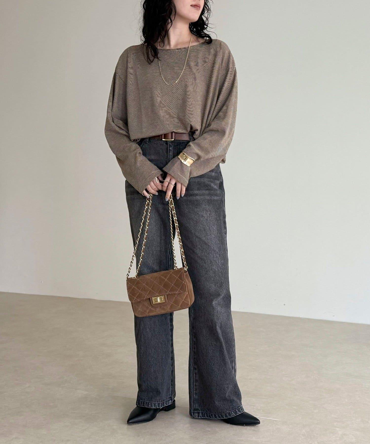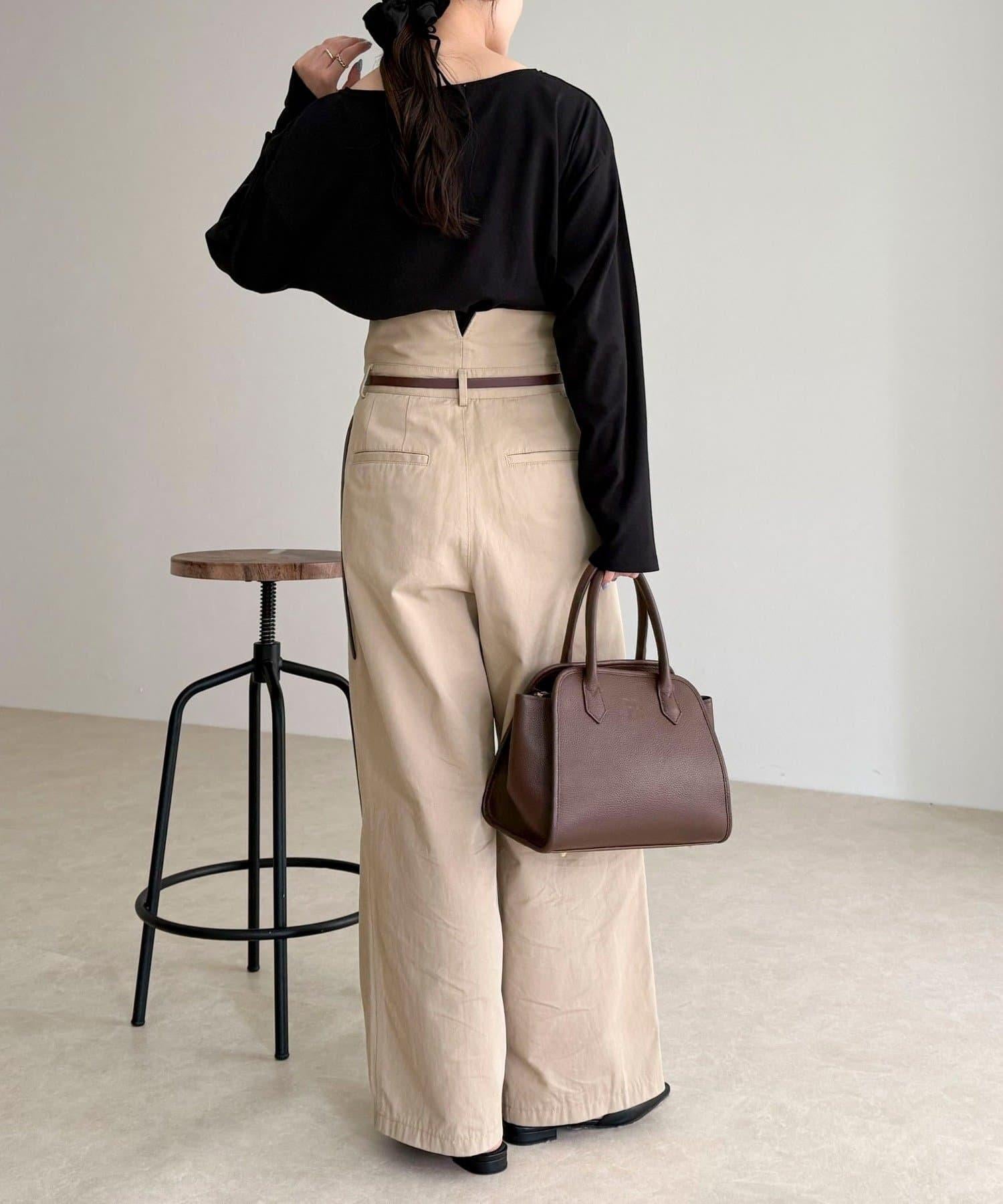 身高 156 厘米的工作人員:長度輕盈地掛在臀部,即使外穿也很整潔!船領設計讓頸部看起來乾淨利落,穿起來輕盈柔軟。它是一件百搭的上衣,還能遮蓋身形。