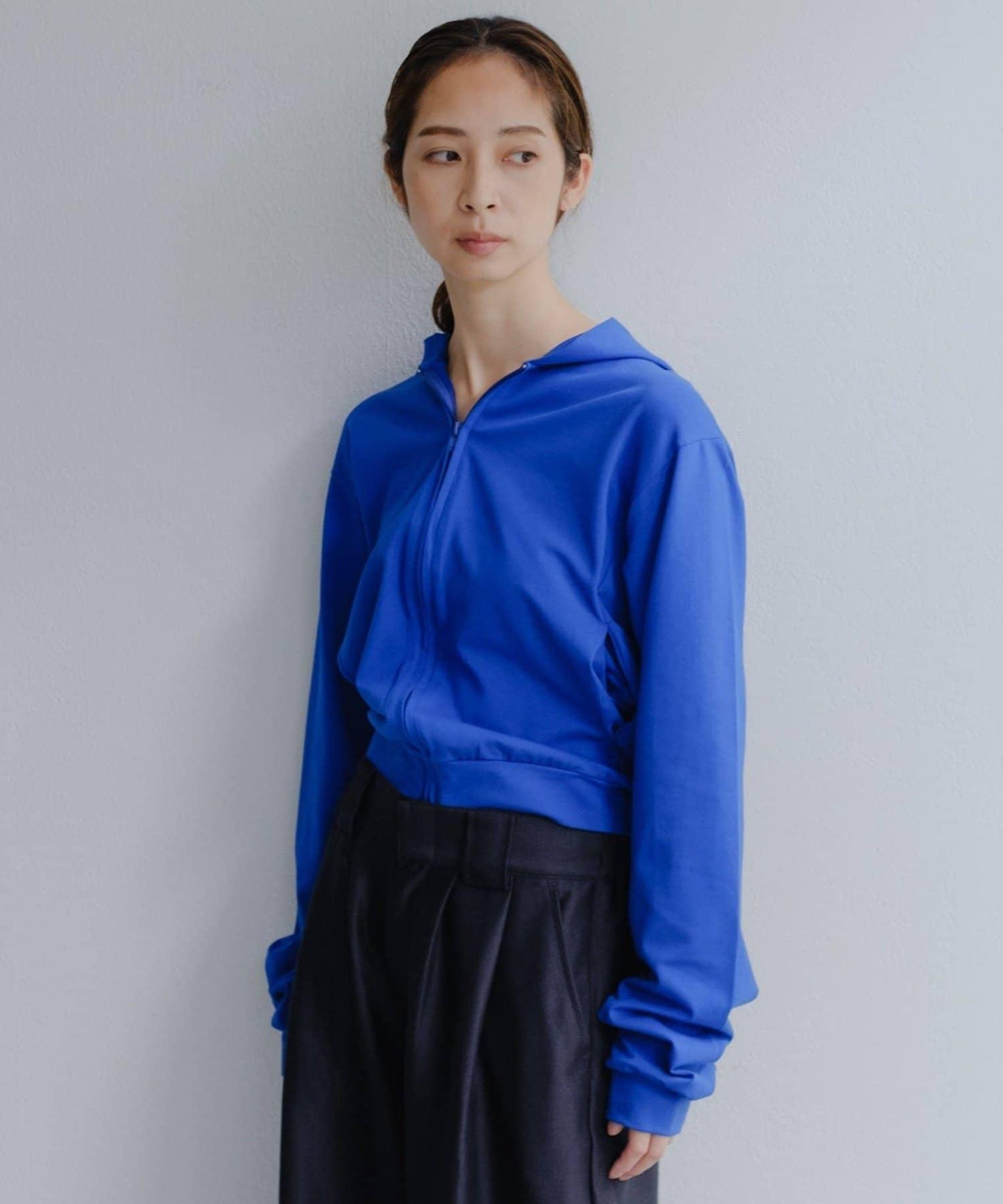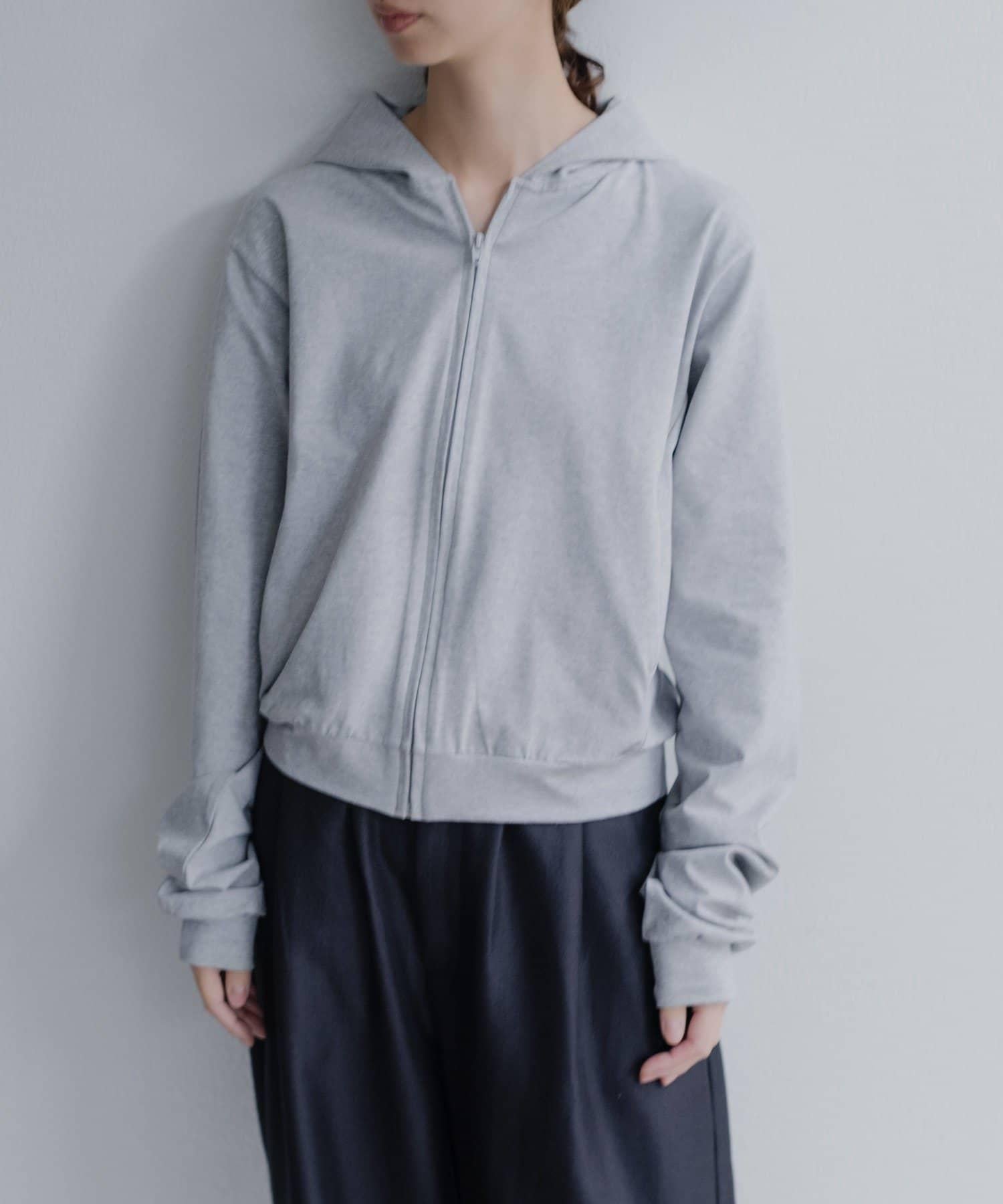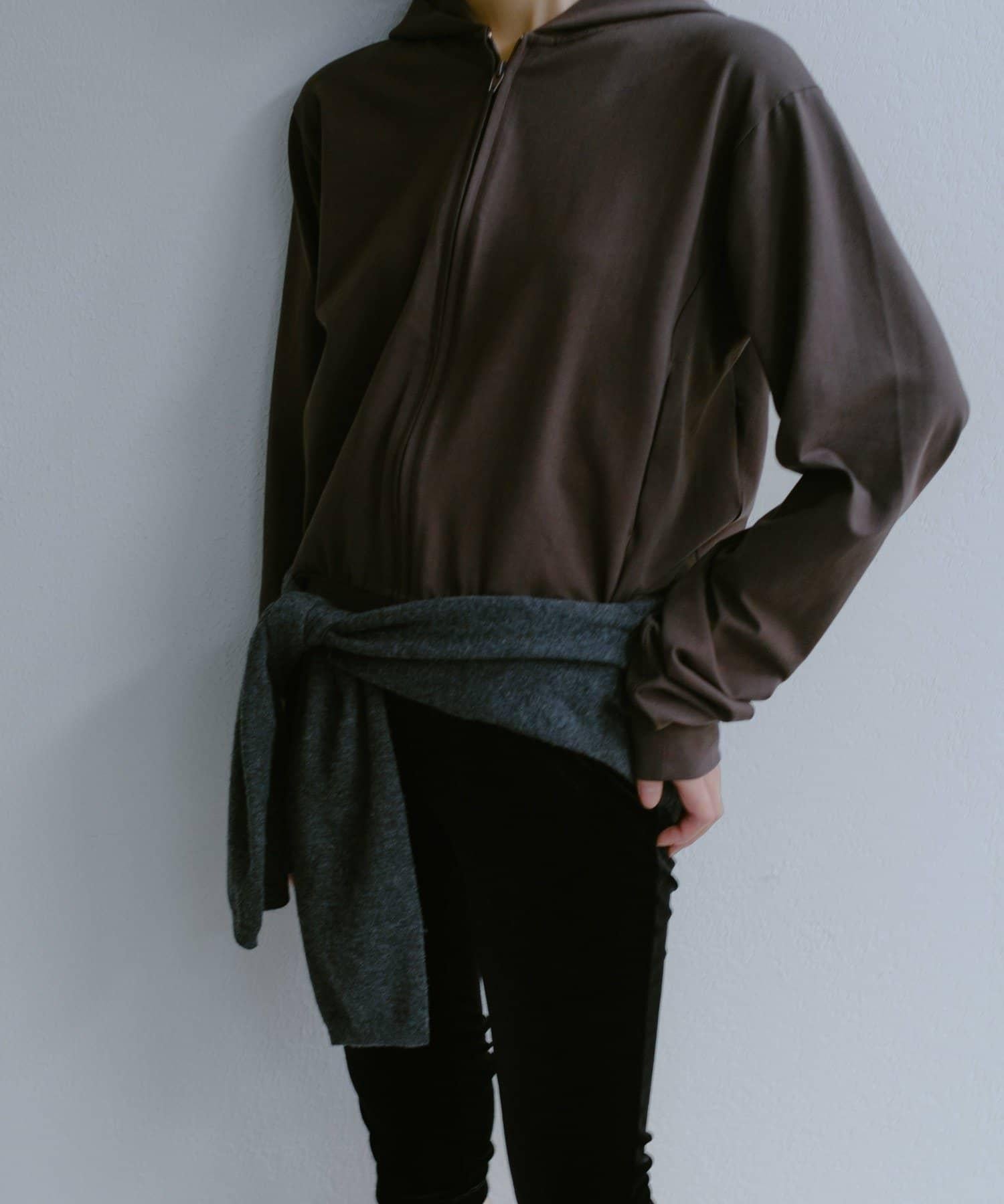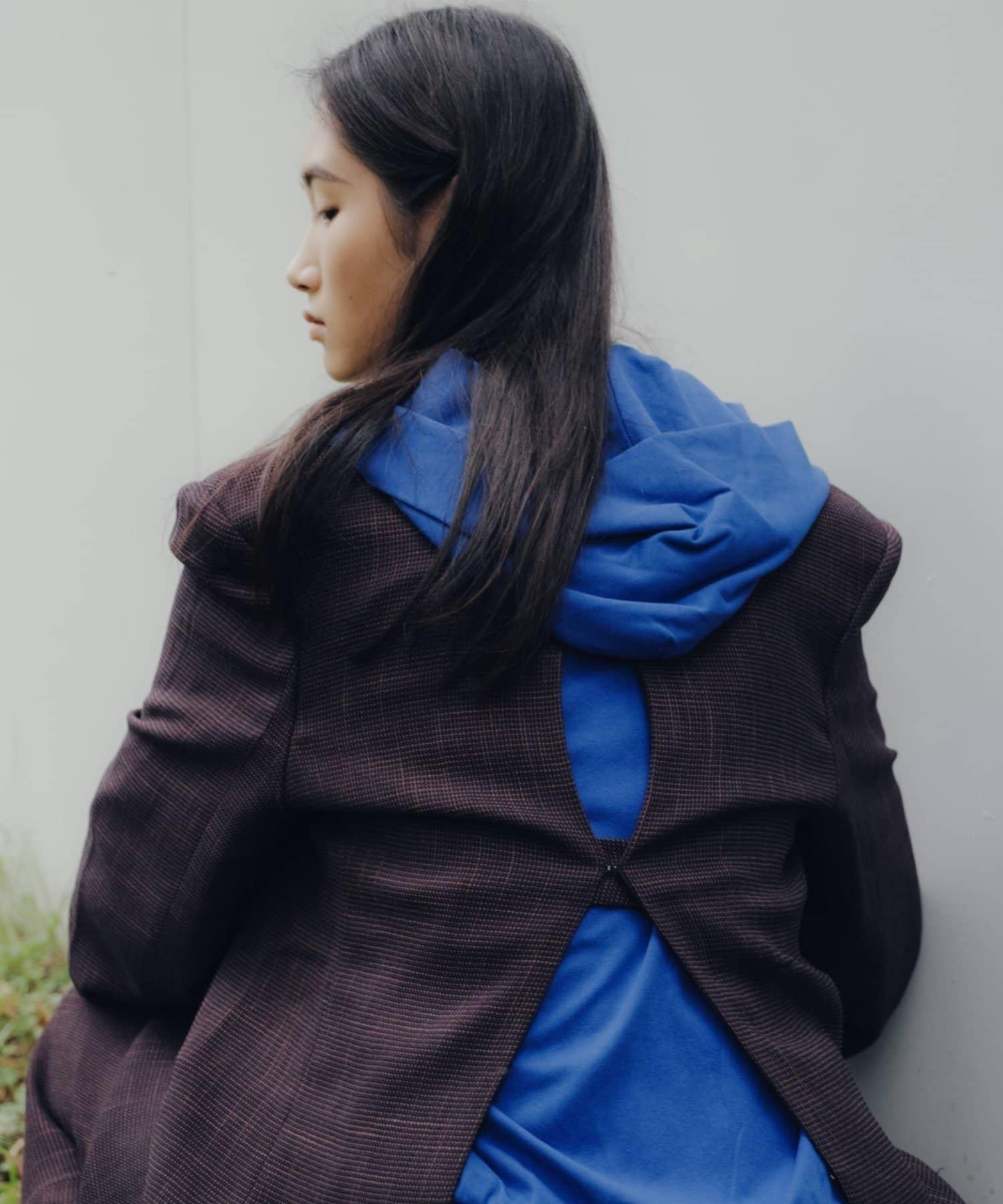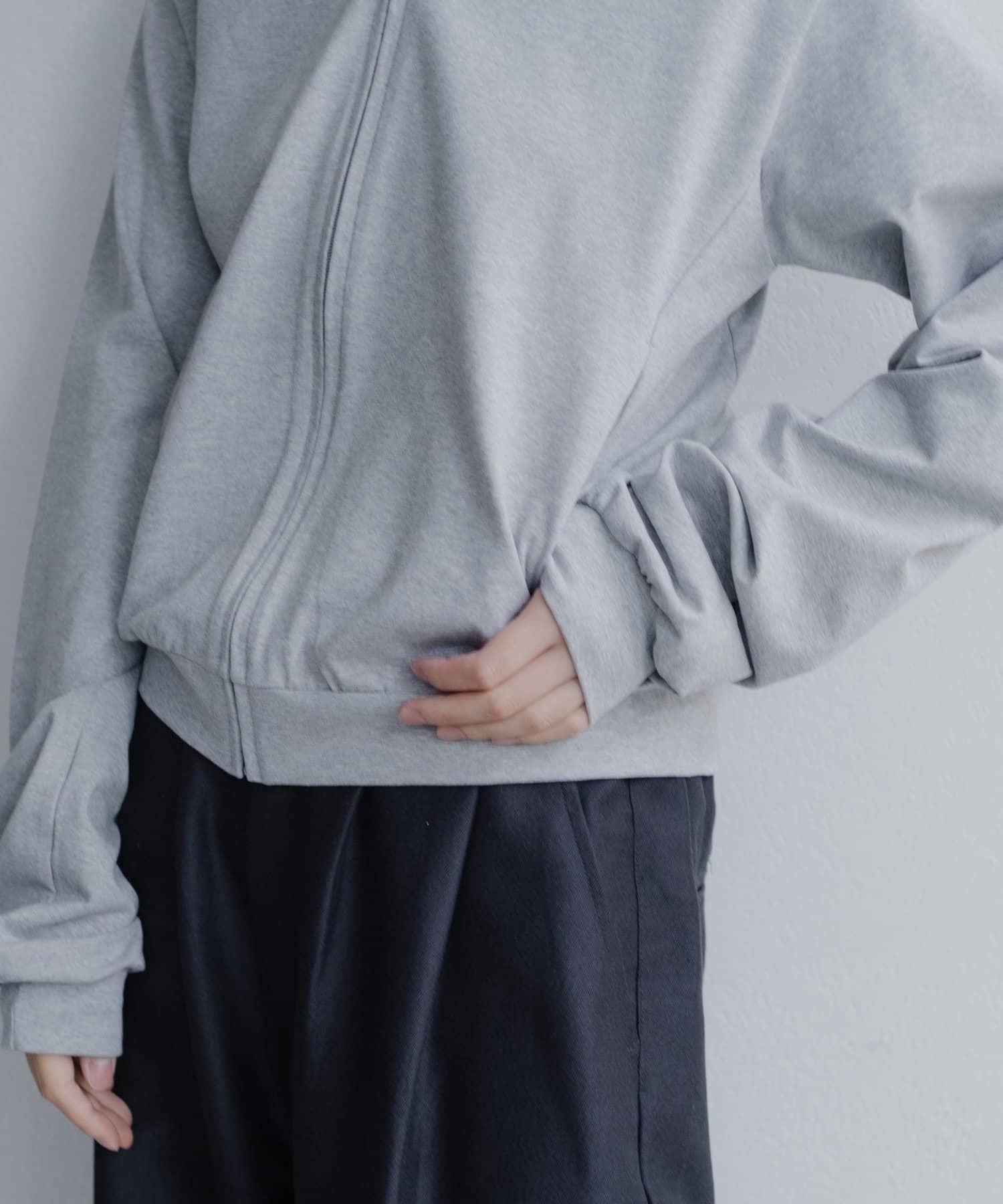 設計要點在於袖子的長度。我們將袖子的長度設置得足夠長,這樣您就可以將它攏在手邊穿著。由於袖子止於腕肋,因此不會礙事。