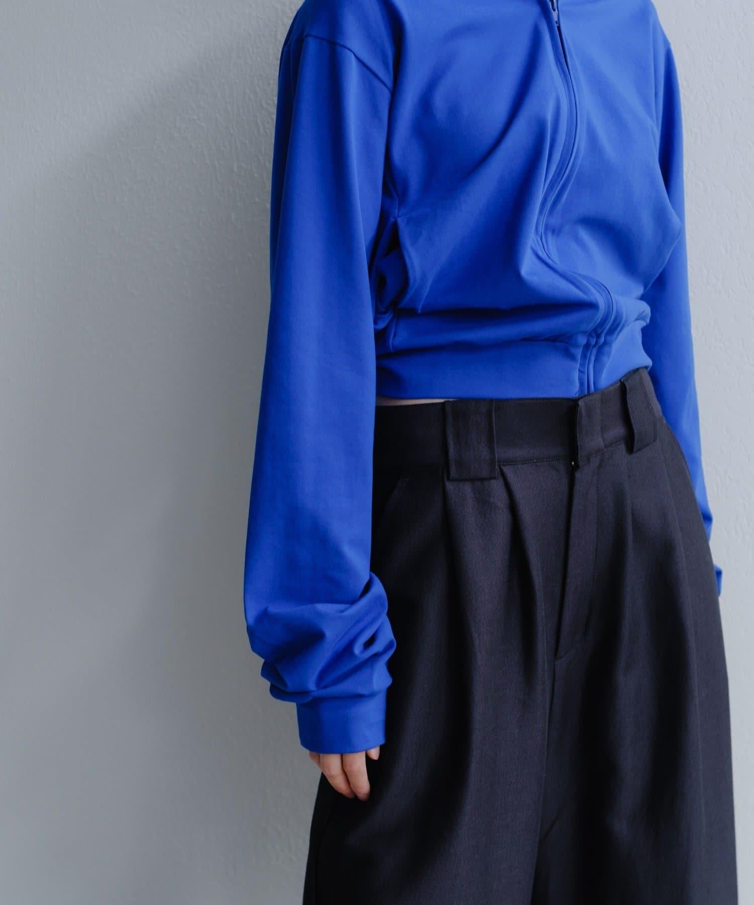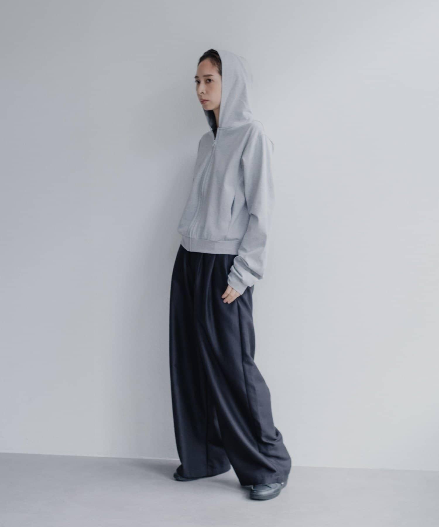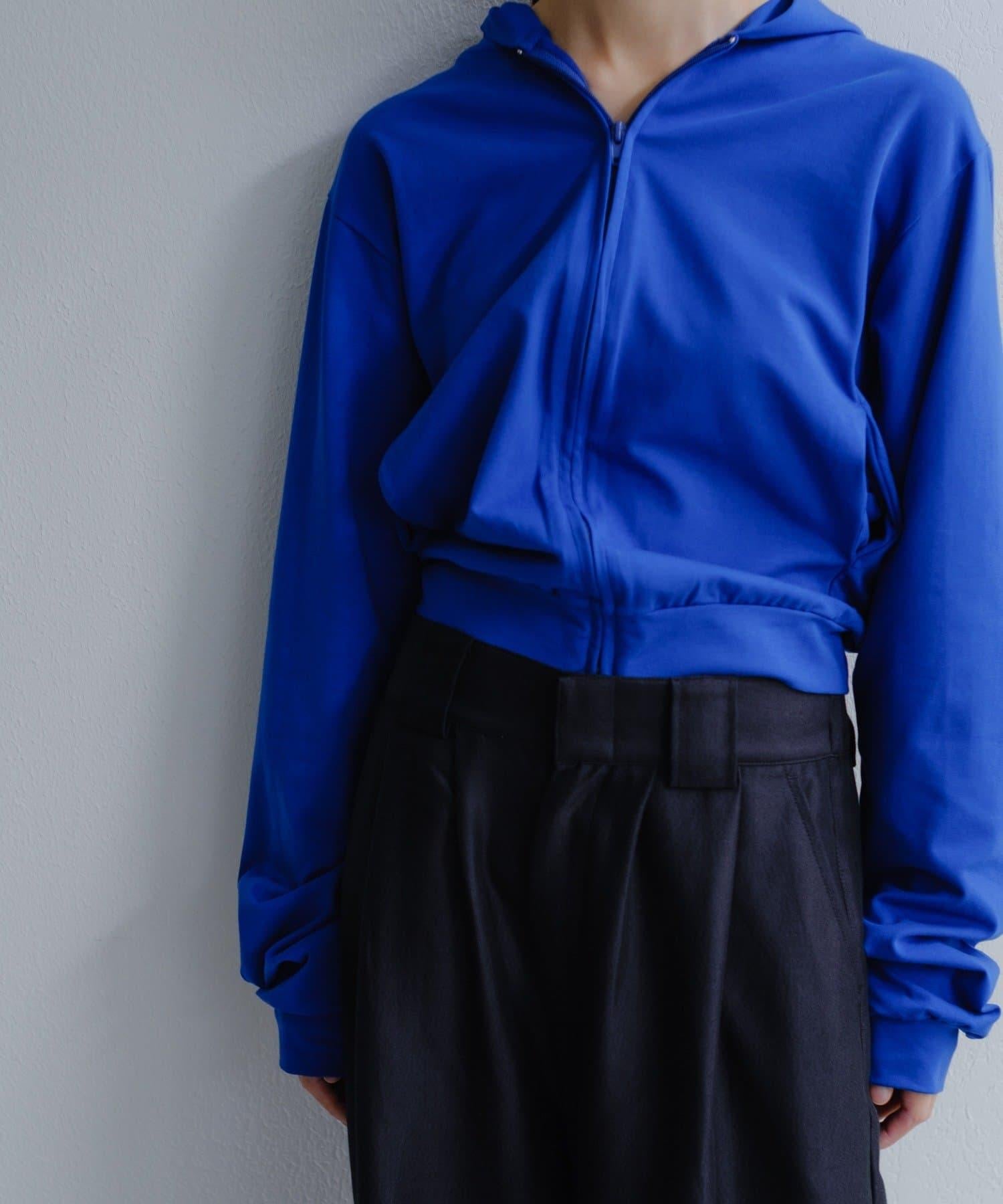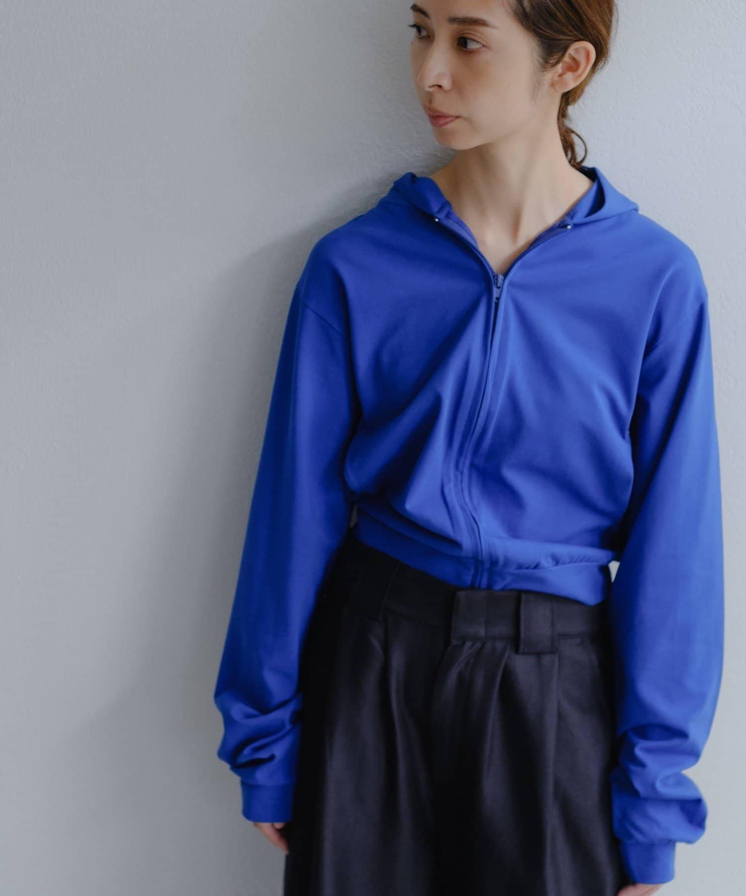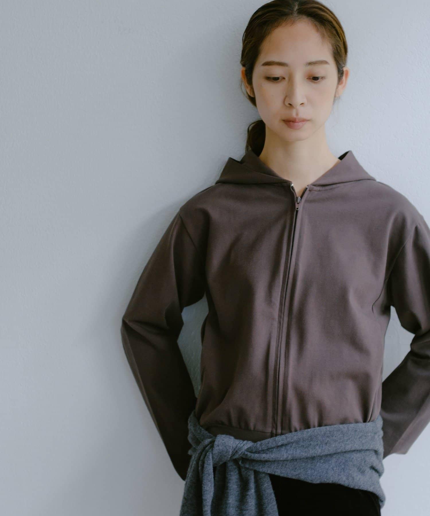 設計要點在於袖子的長度。我們將袖子的長度設置得足夠長,這樣您就可以將它攏在手邊穿著。由於袖子止於腕肋,因此不會礙事。