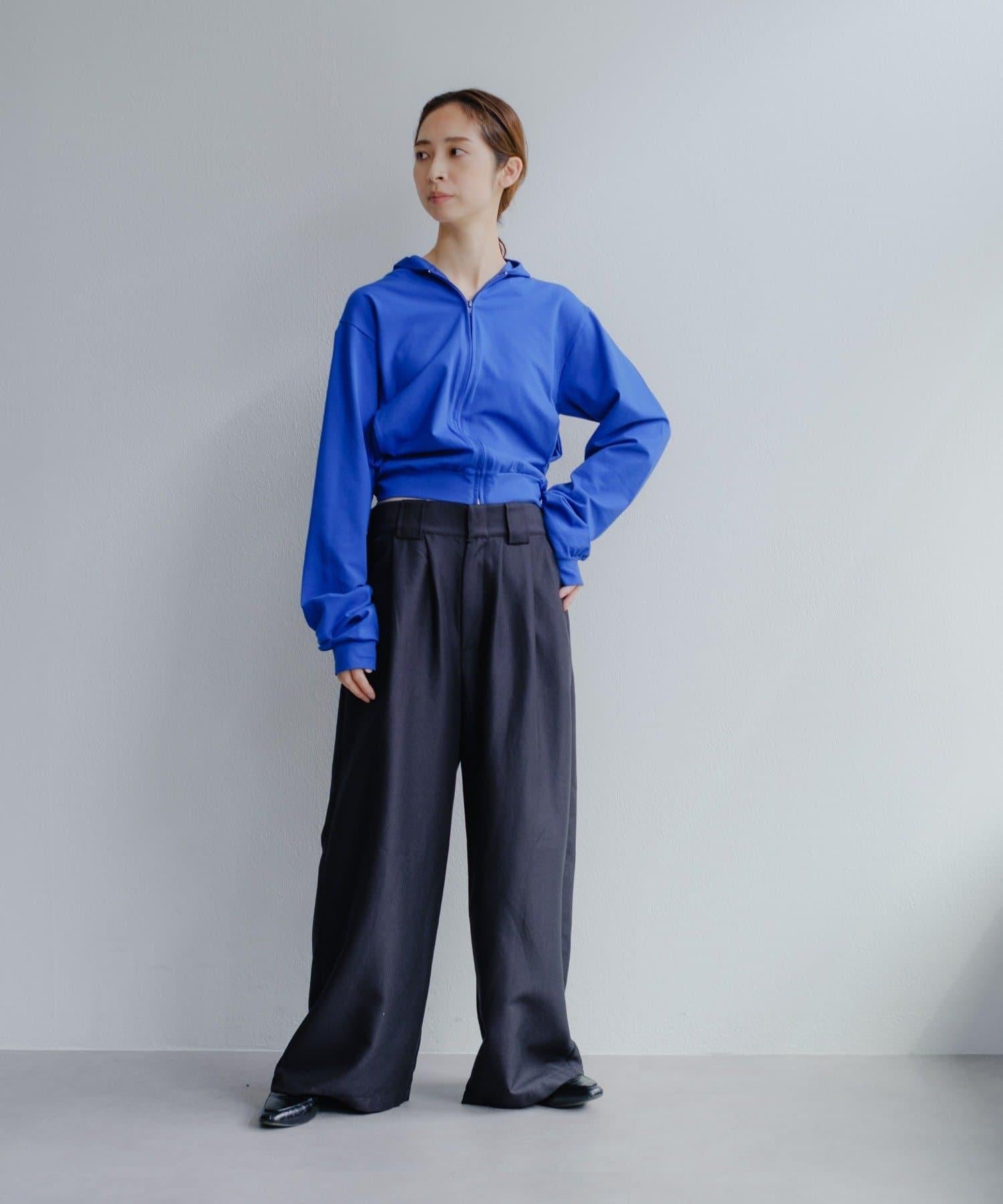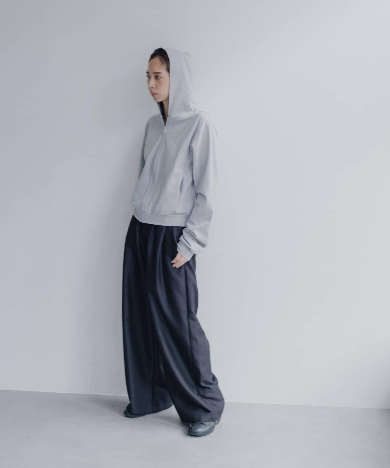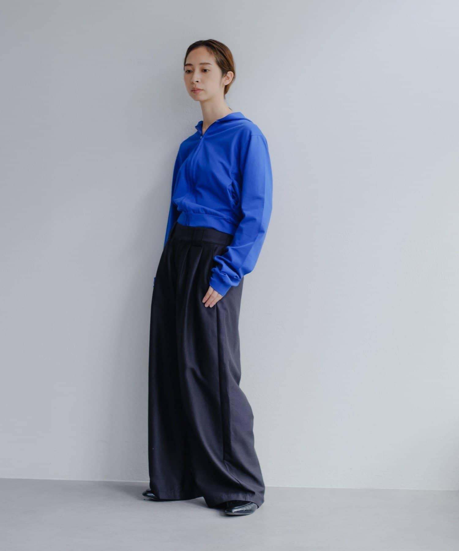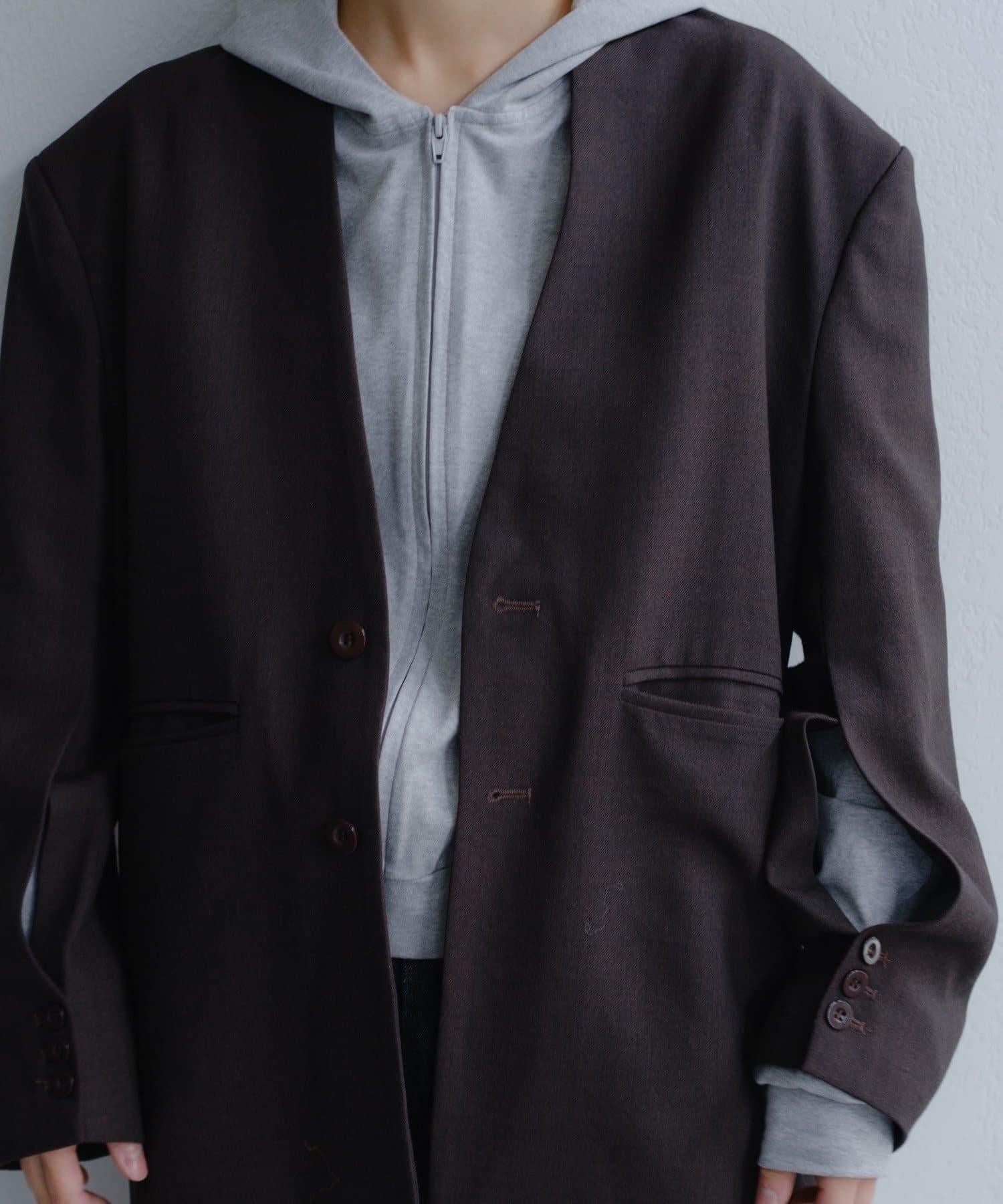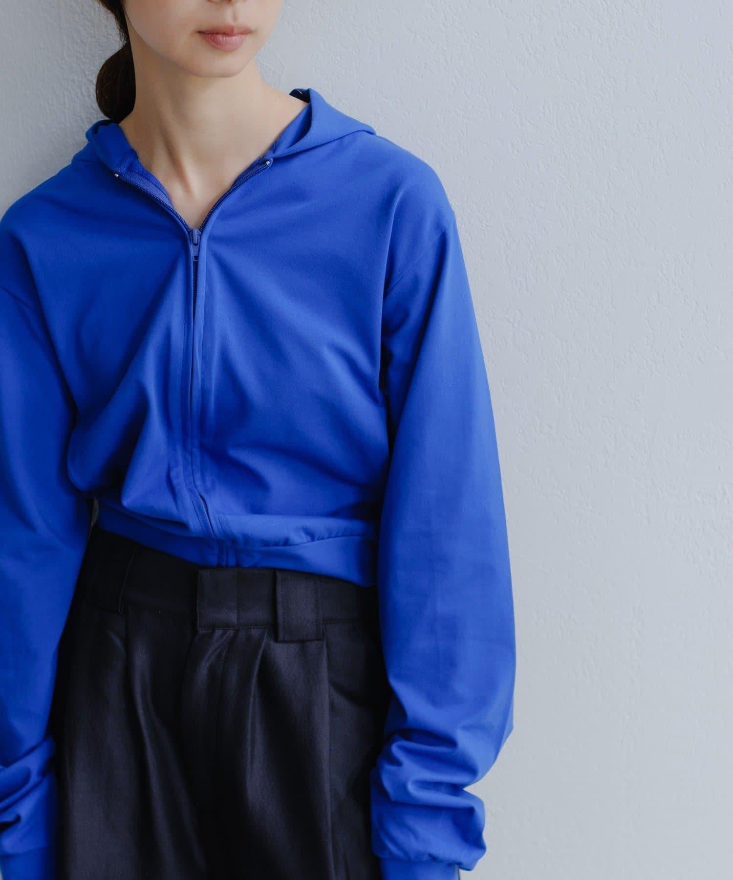 設計要點在於袖子的長度。我們將袖子的長度設置得足夠長,這樣您就可以將它攏在手邊穿著。由於袖子止於腕肋,因此不會礙事。