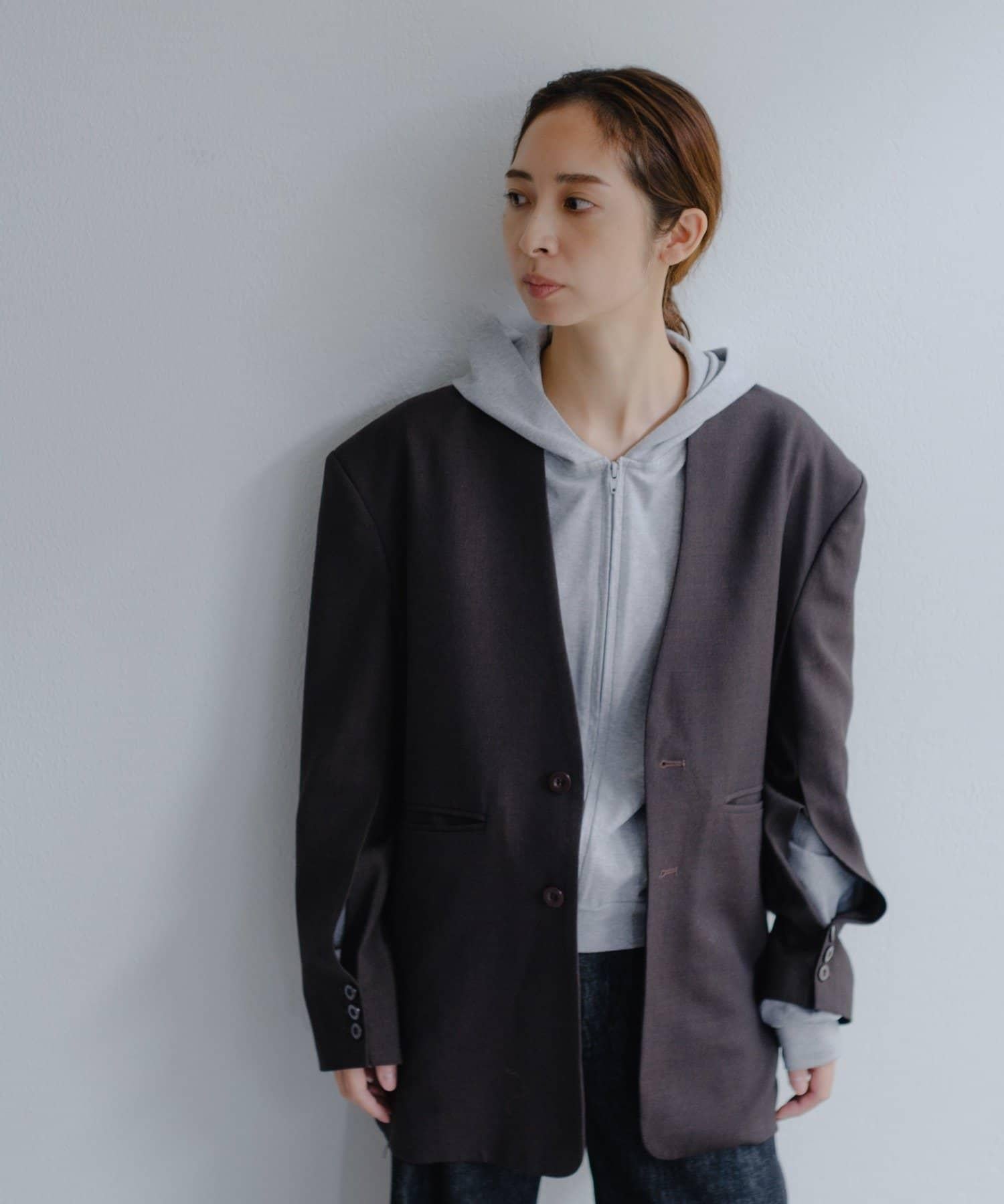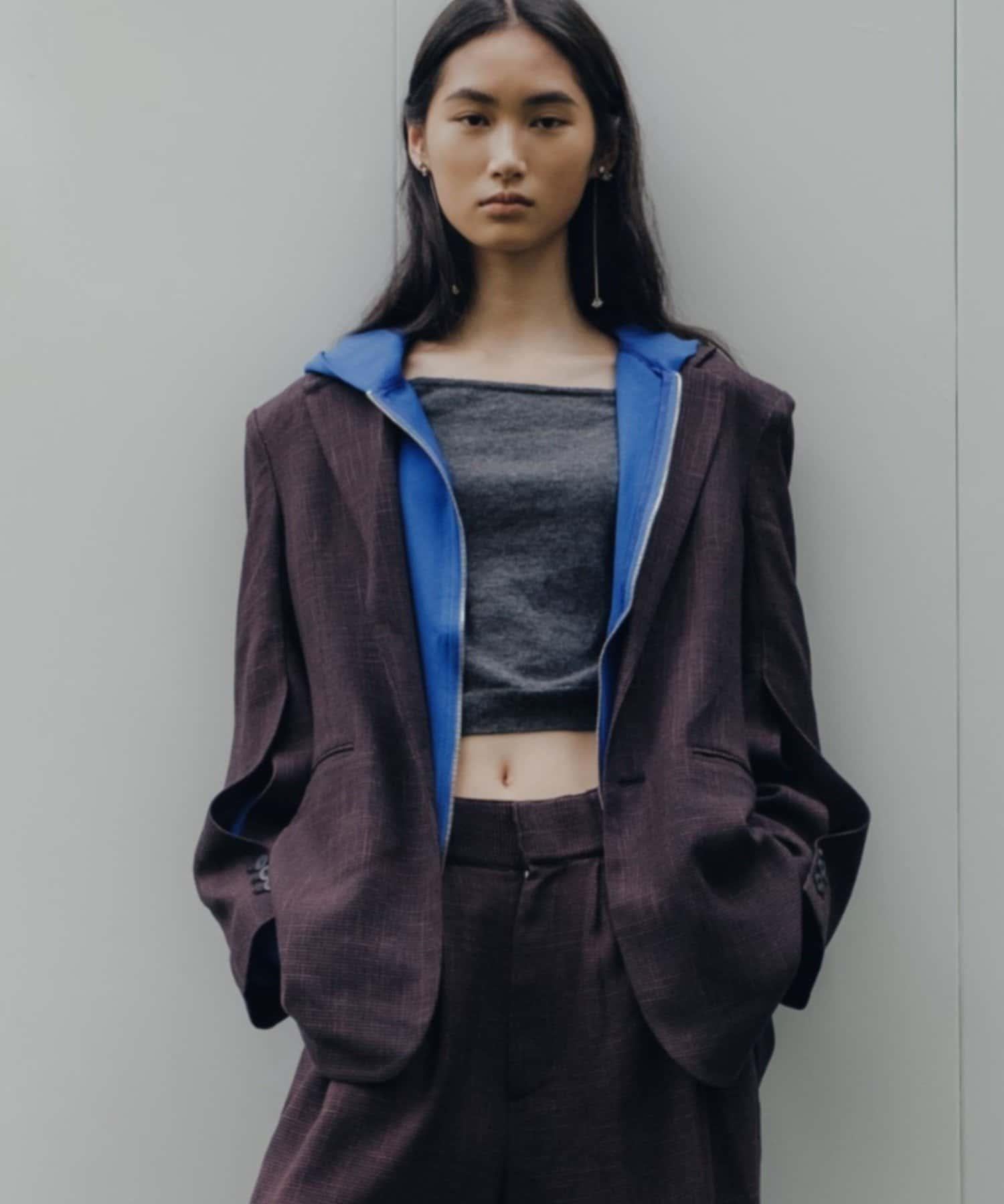 沒有領帶等額外的附件,設計也很簡單,只有兩側的開縫口袋。摒棄了褶皺和圓角設計,使其成為不受潮流和季節影響,可以年復一年使用的單品。