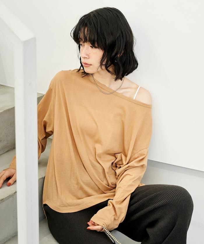 領子寬大,給人一種寬鬆的感覺,也可以露肩穿著,營造女性的寬鬆感。