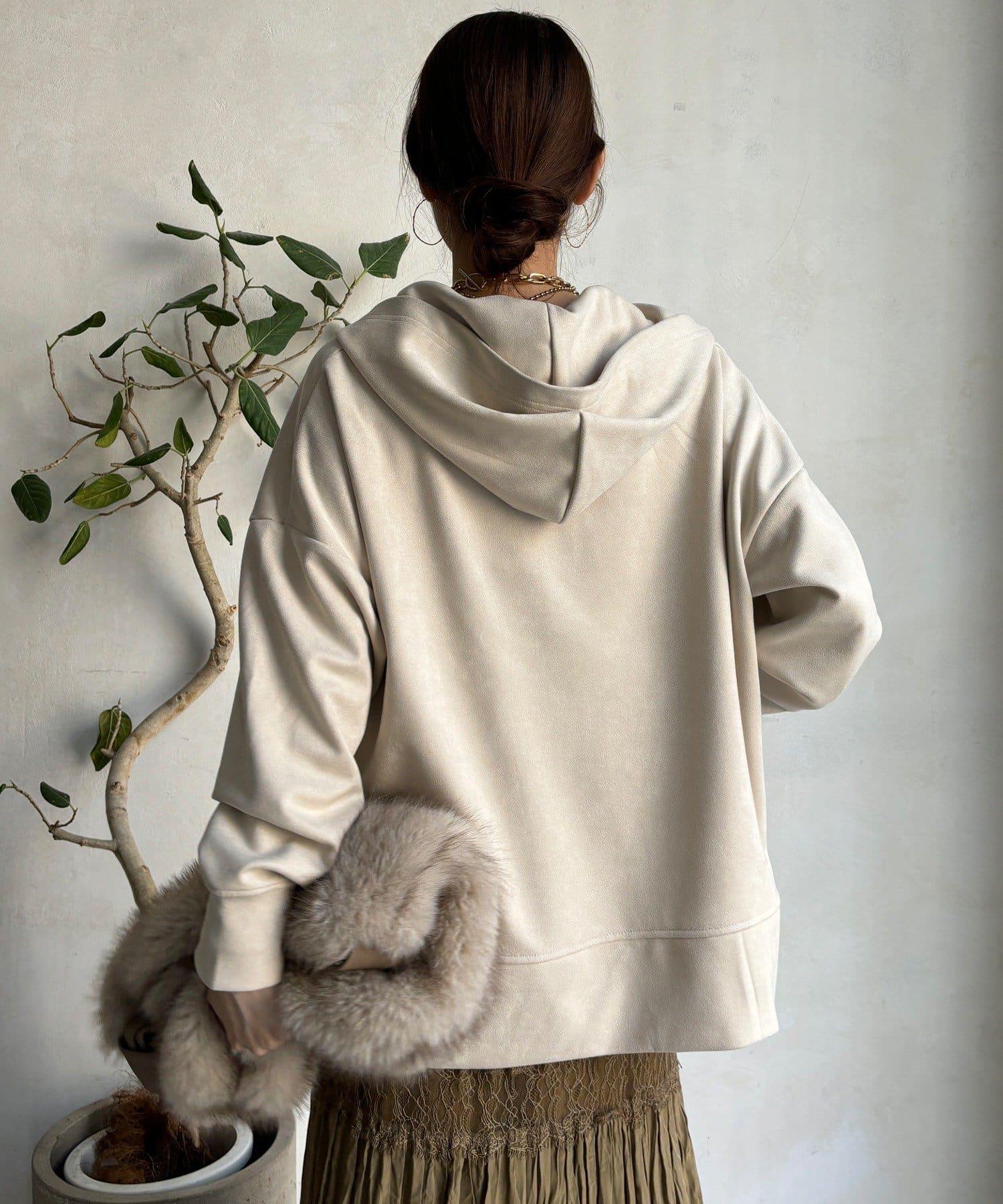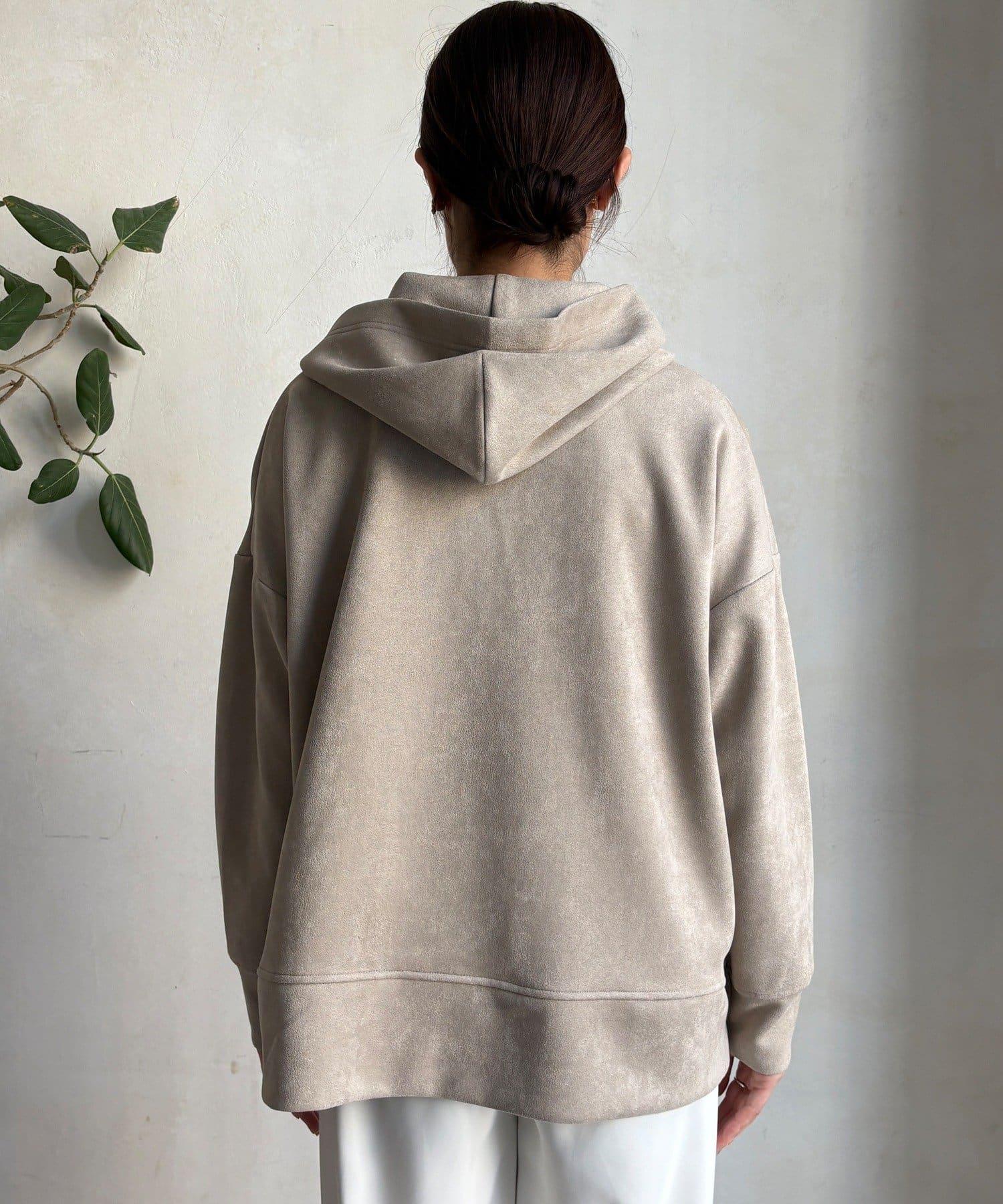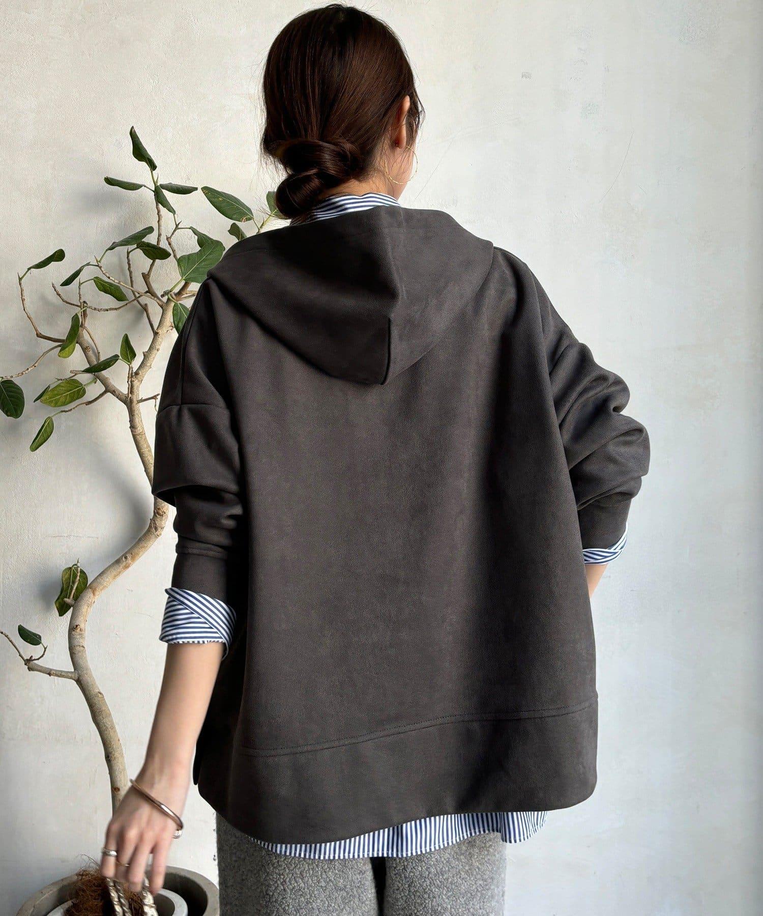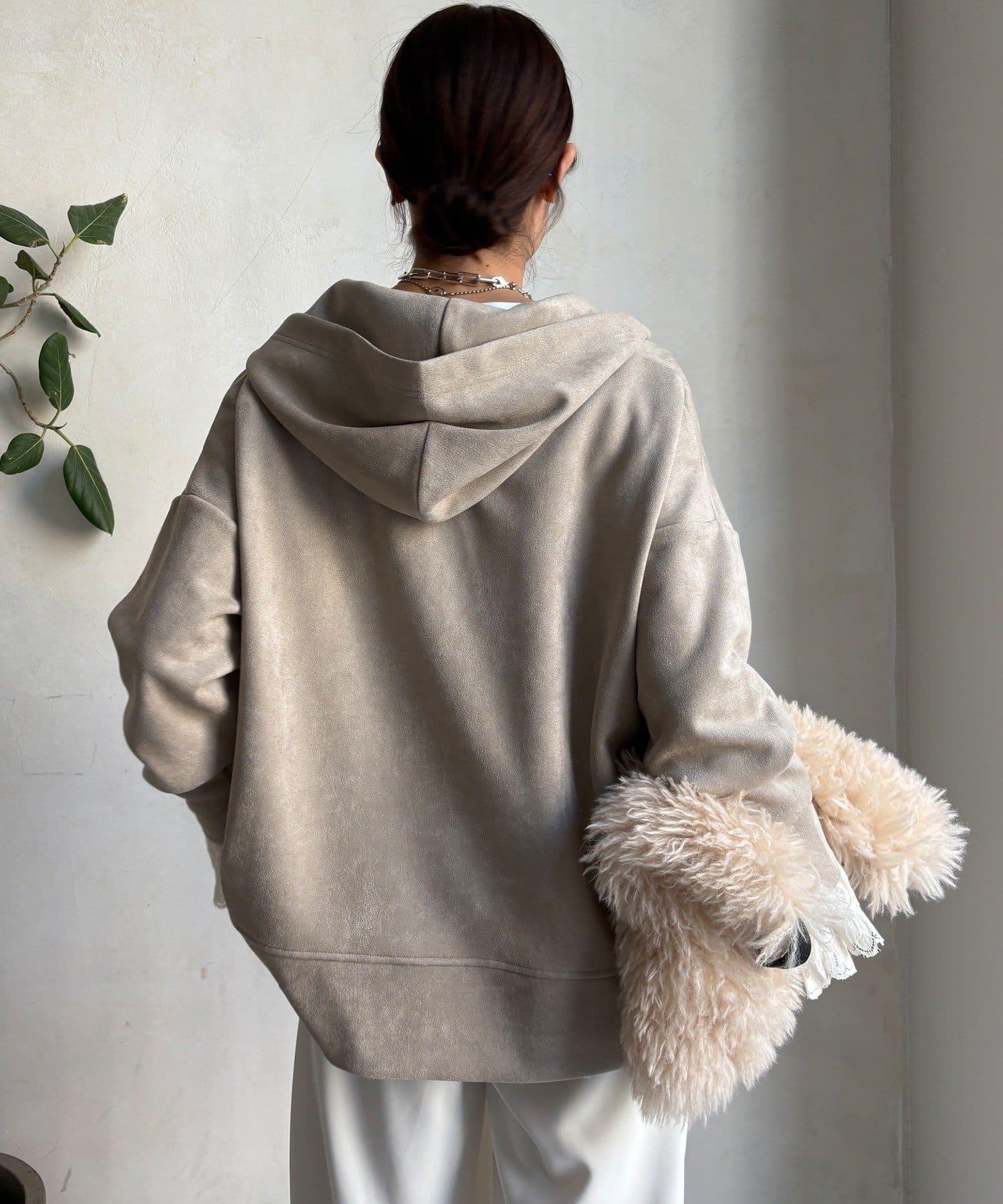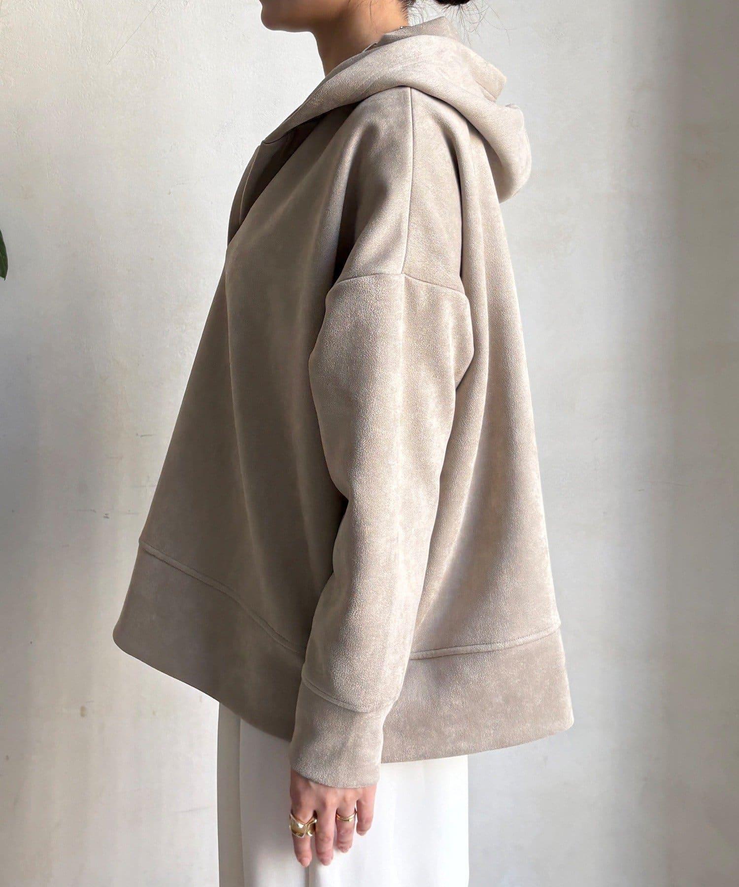 寬鬆廓形麂皮絨連帽衫