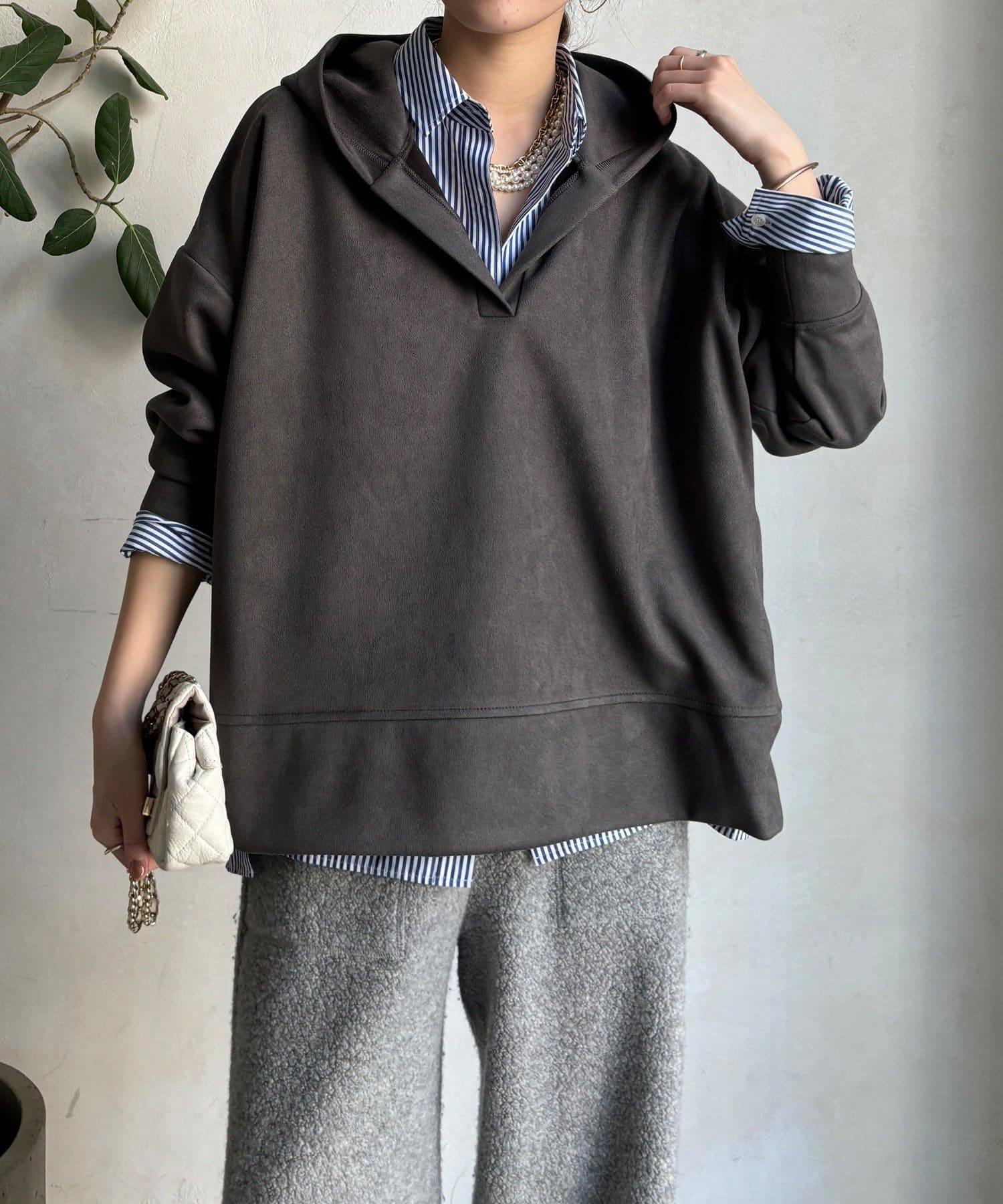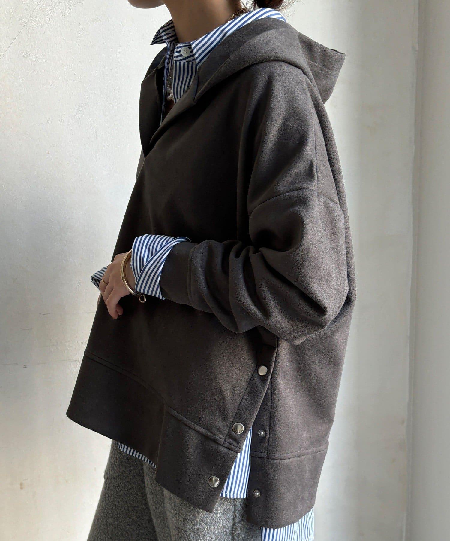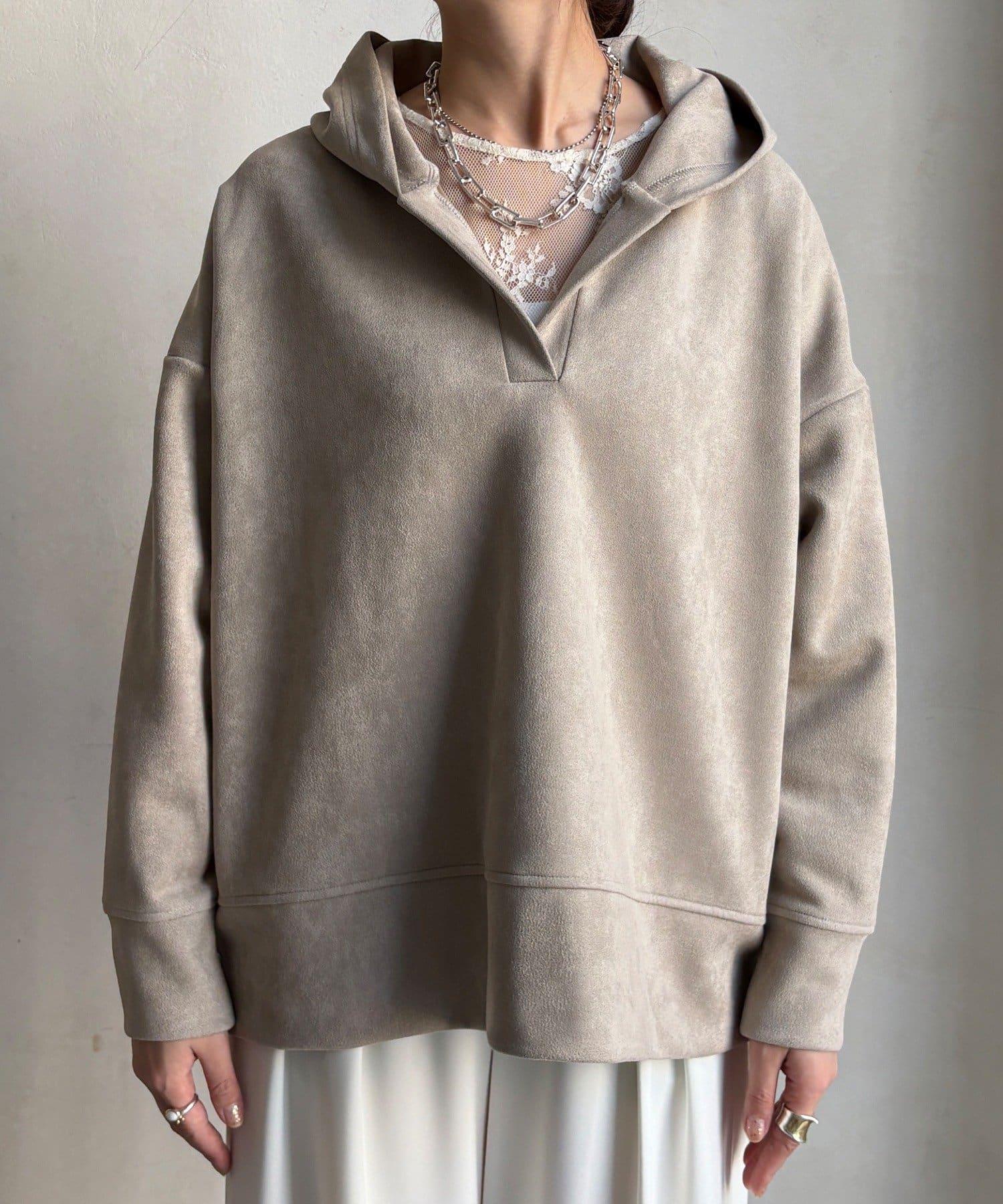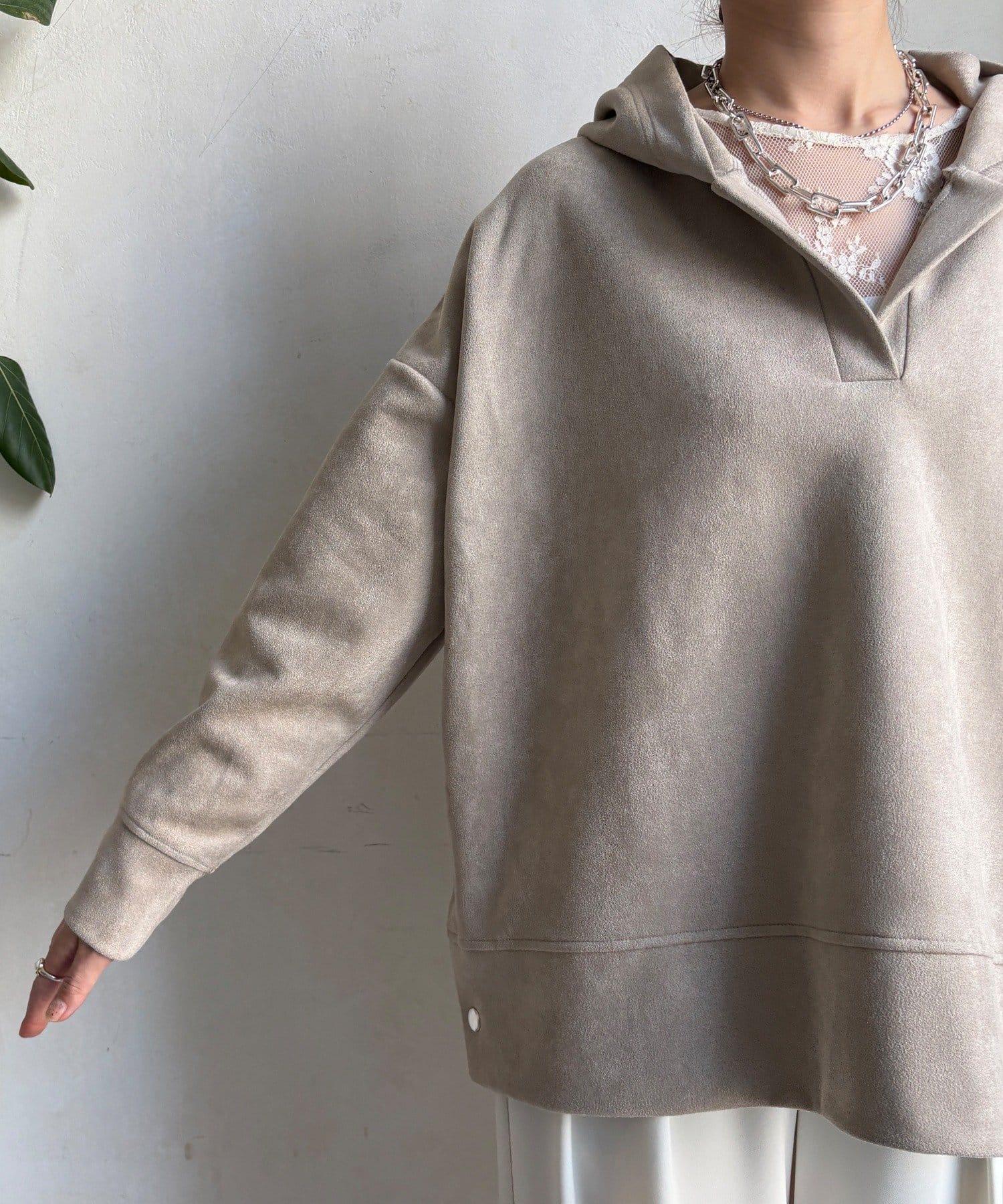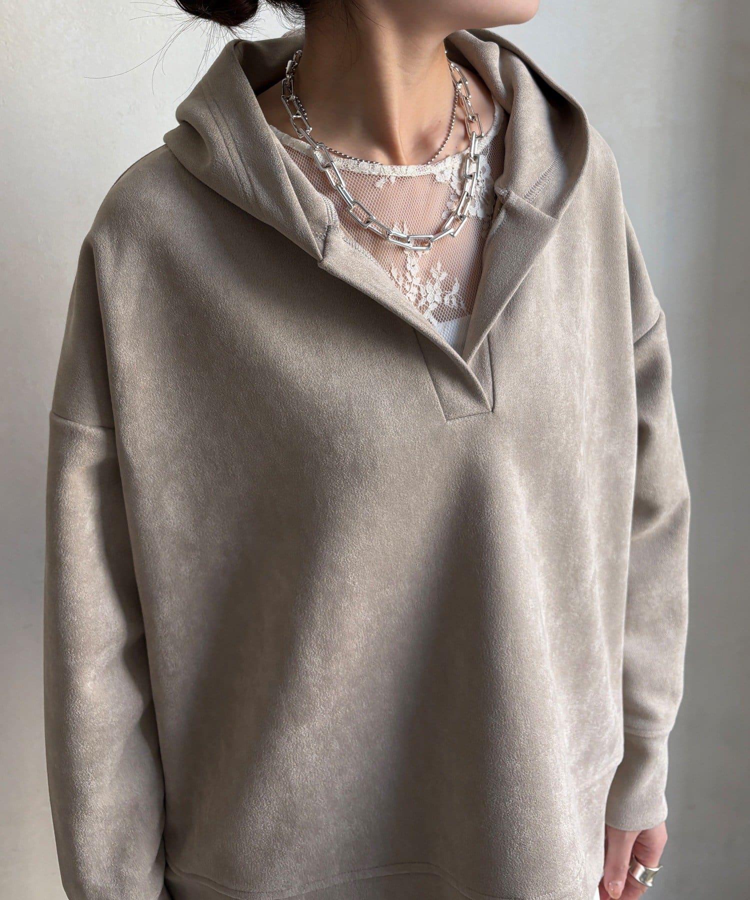 寬鬆廓形麂皮絨連帽衫