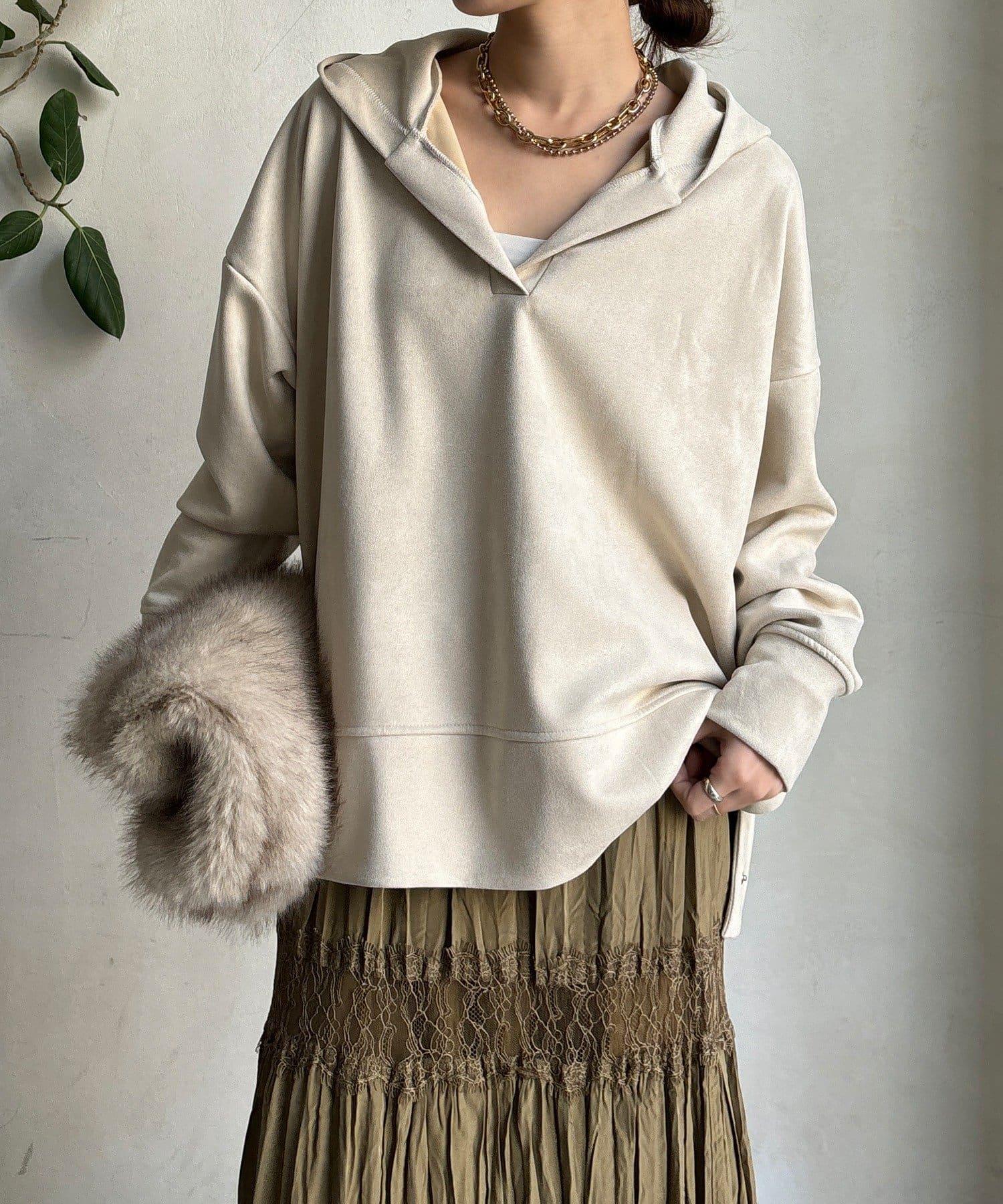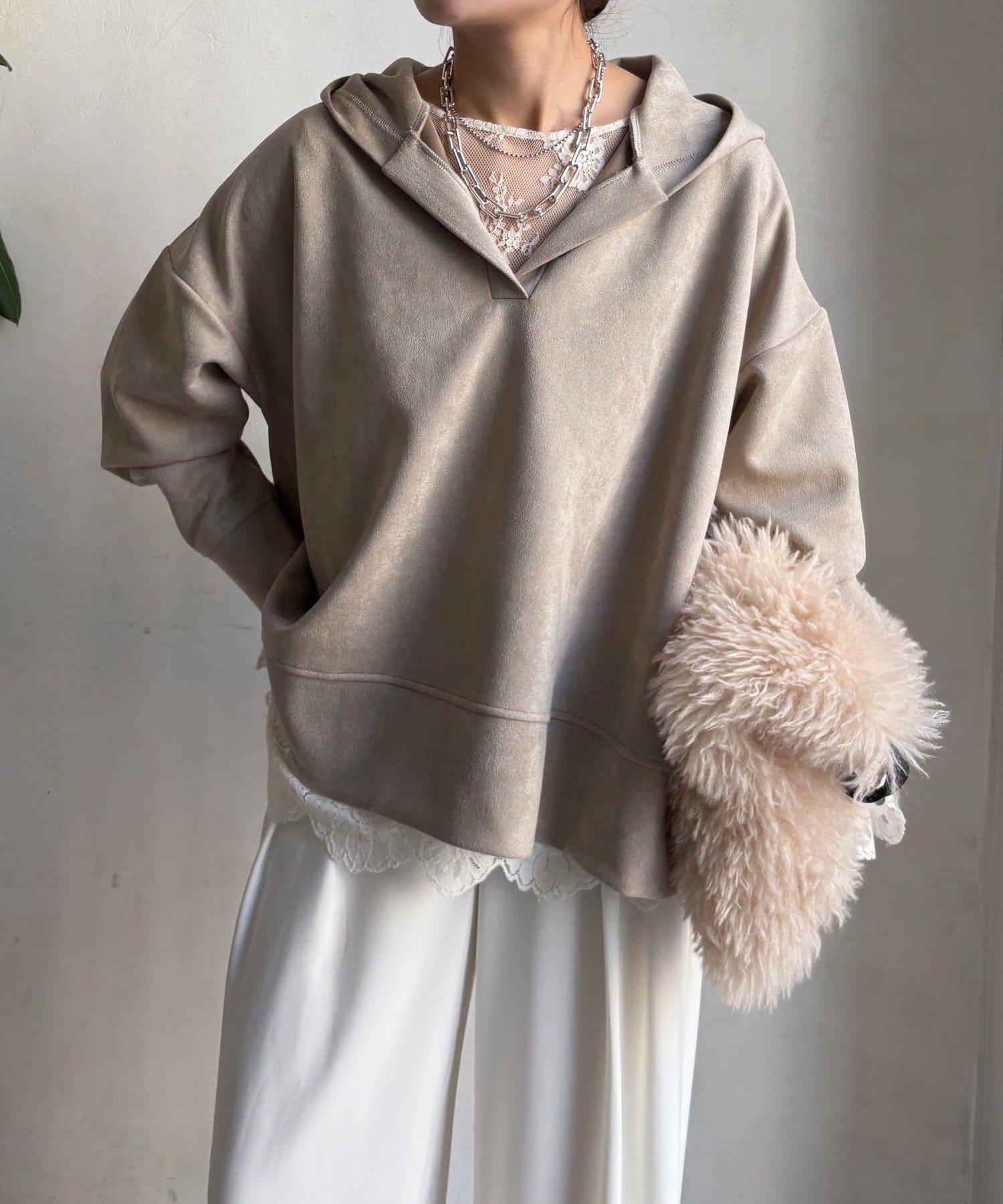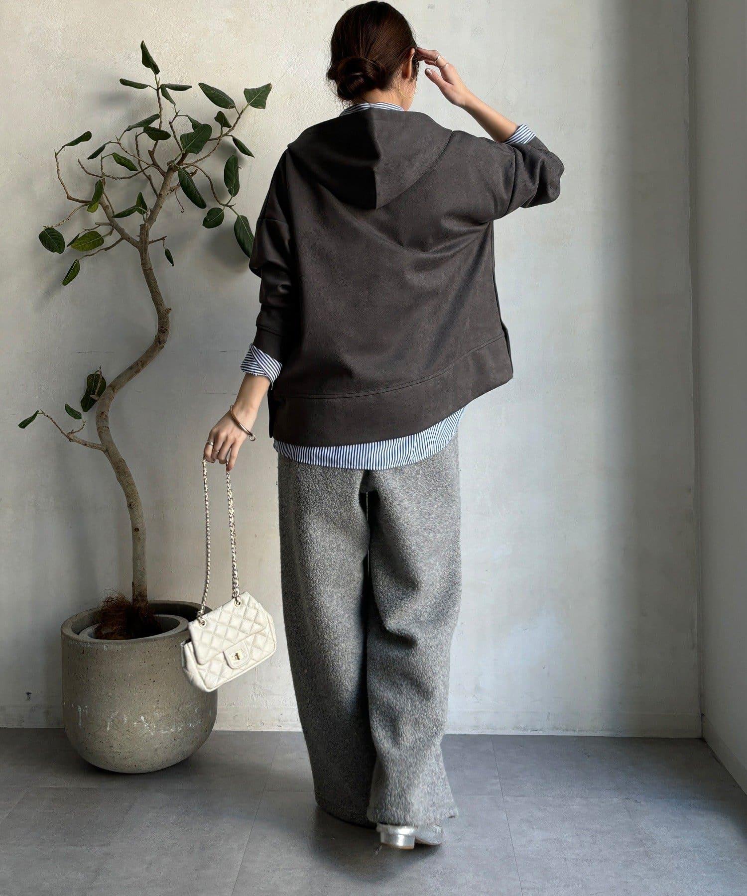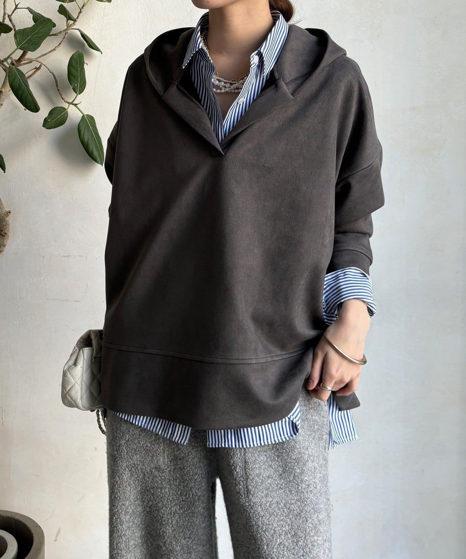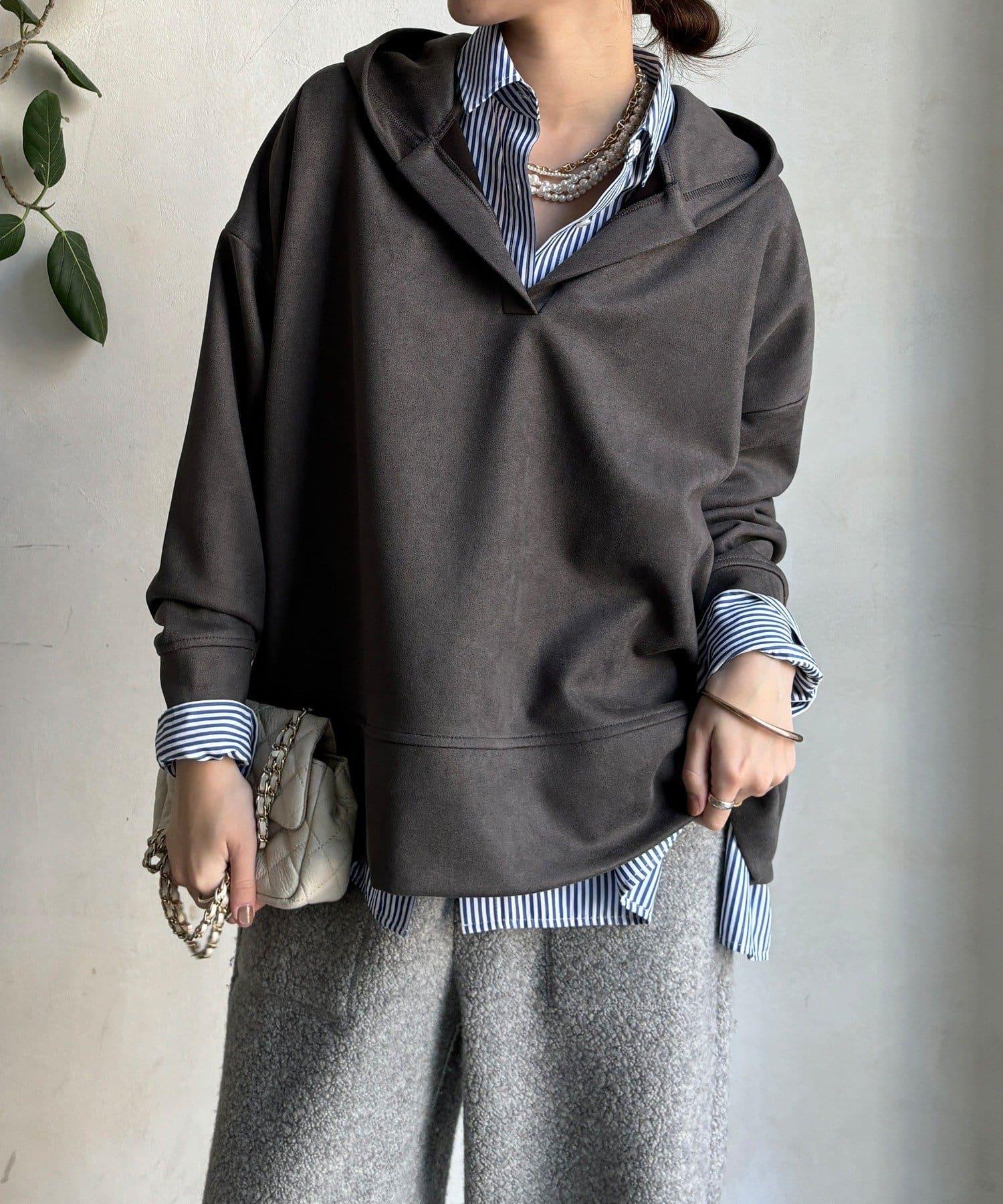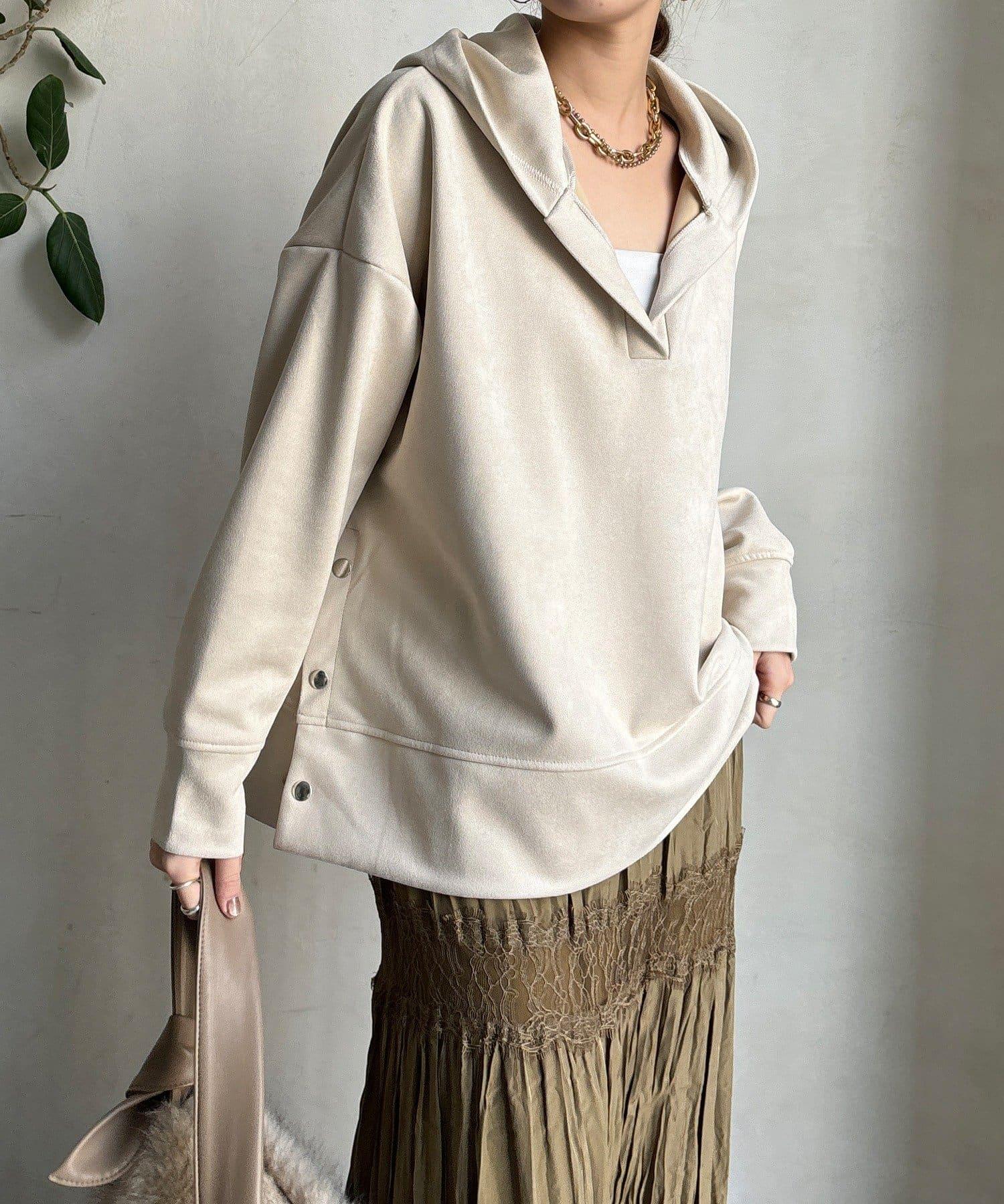 寬鬆廓形麂皮絨連帽衫
