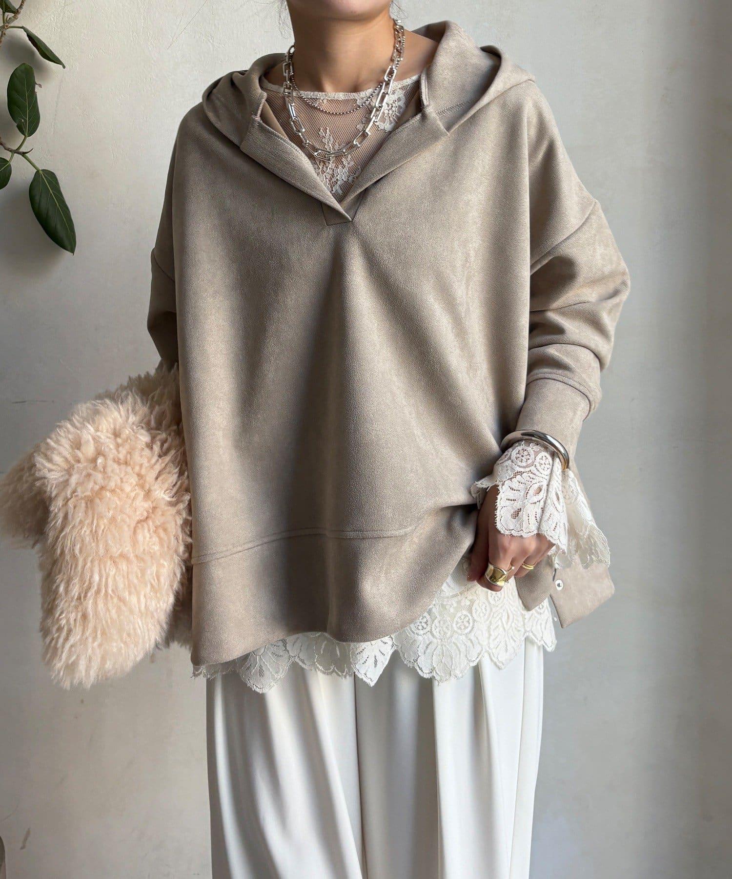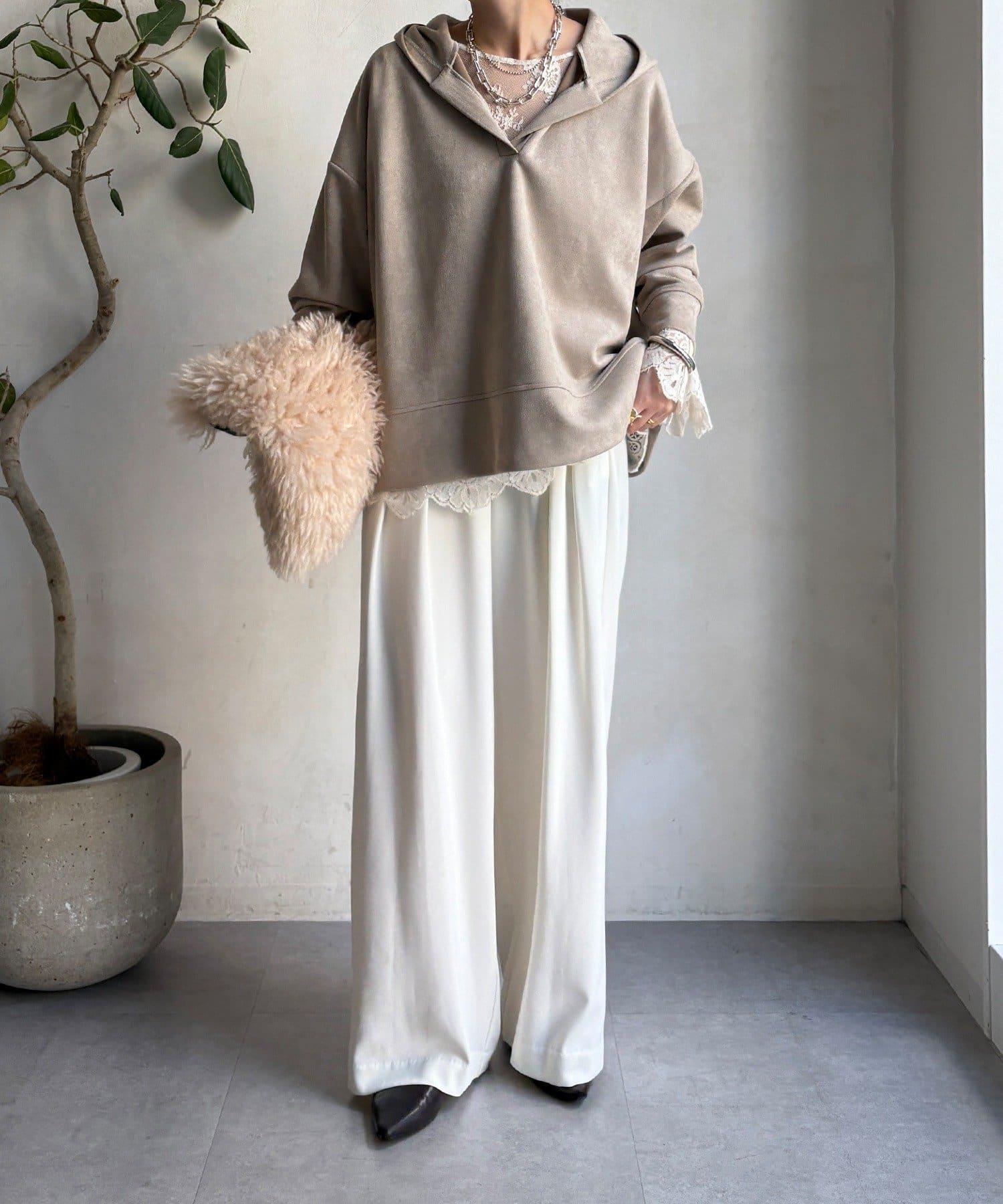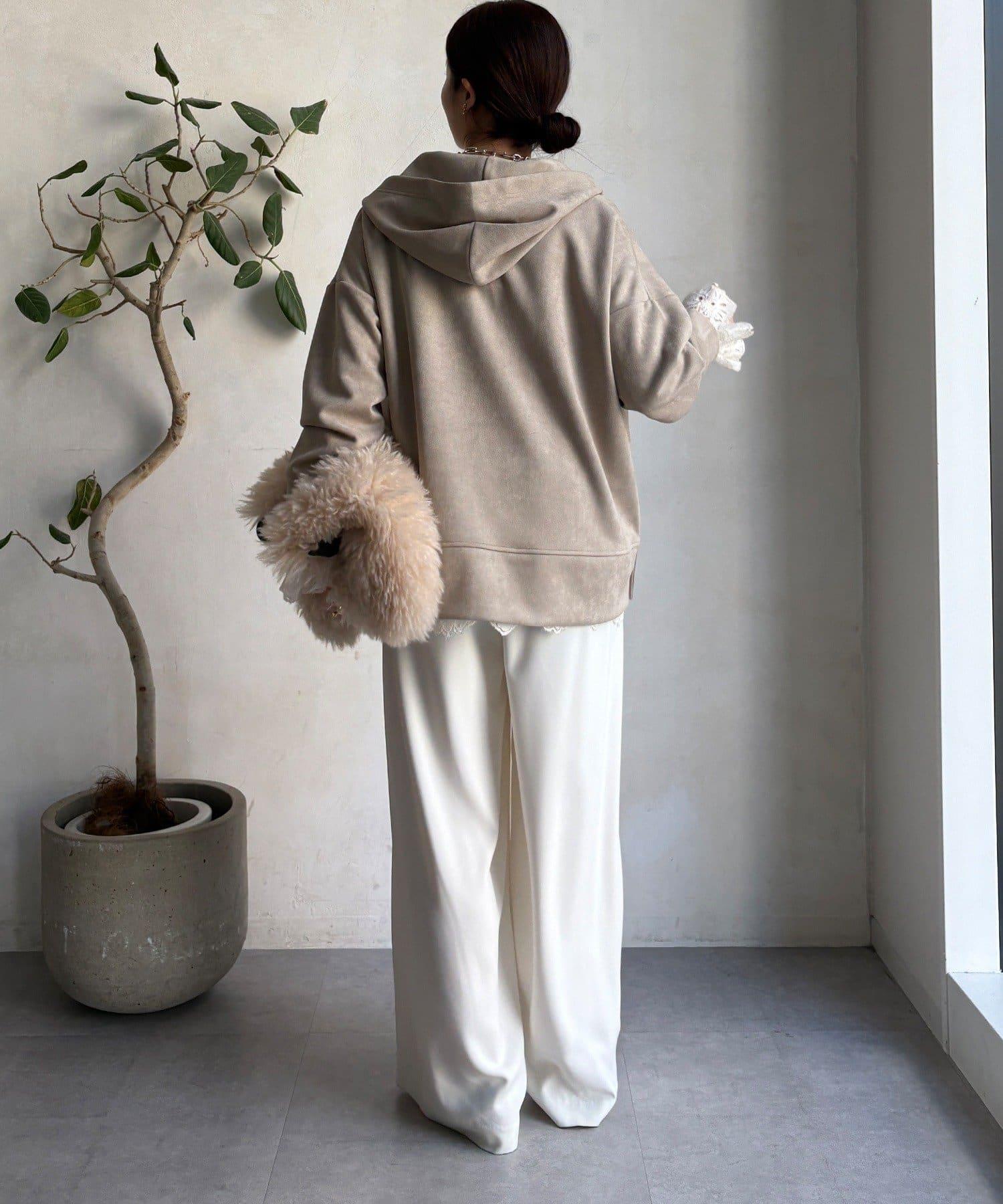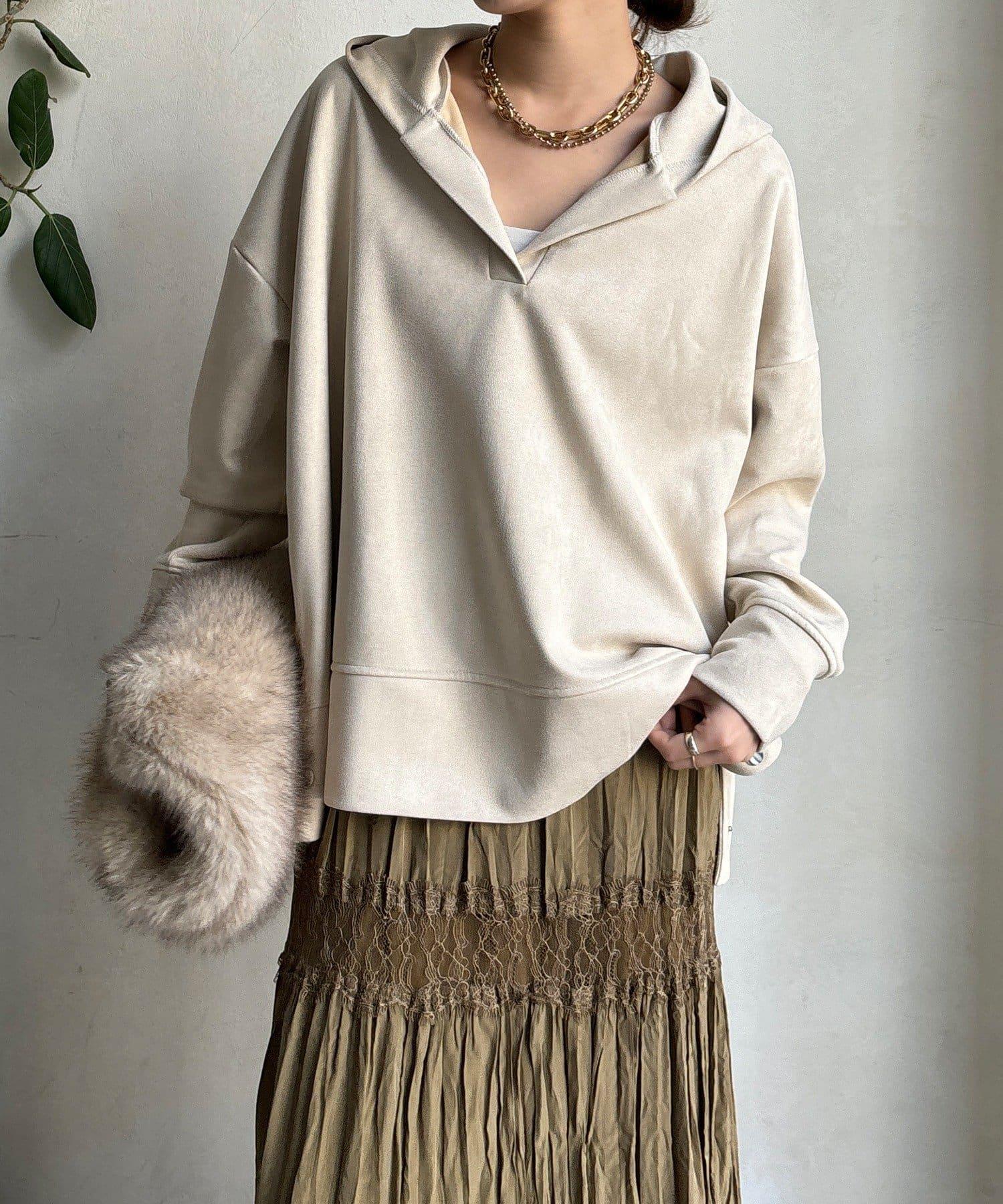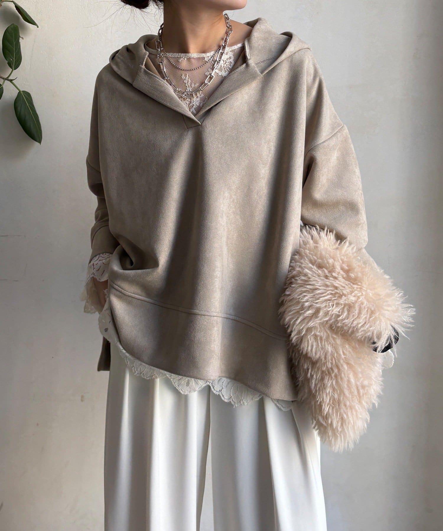 寬鬆廓形麂皮絨連帽衫