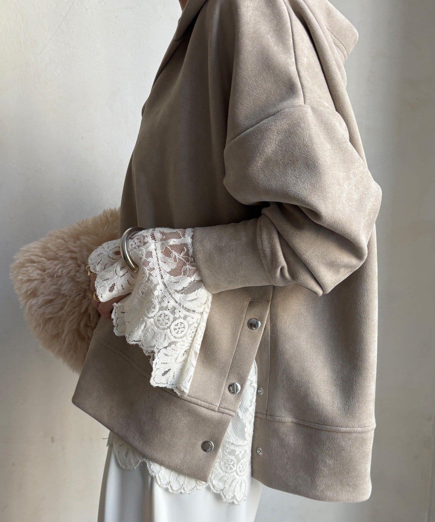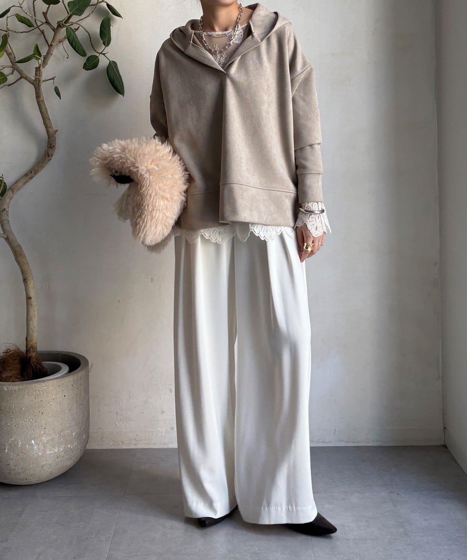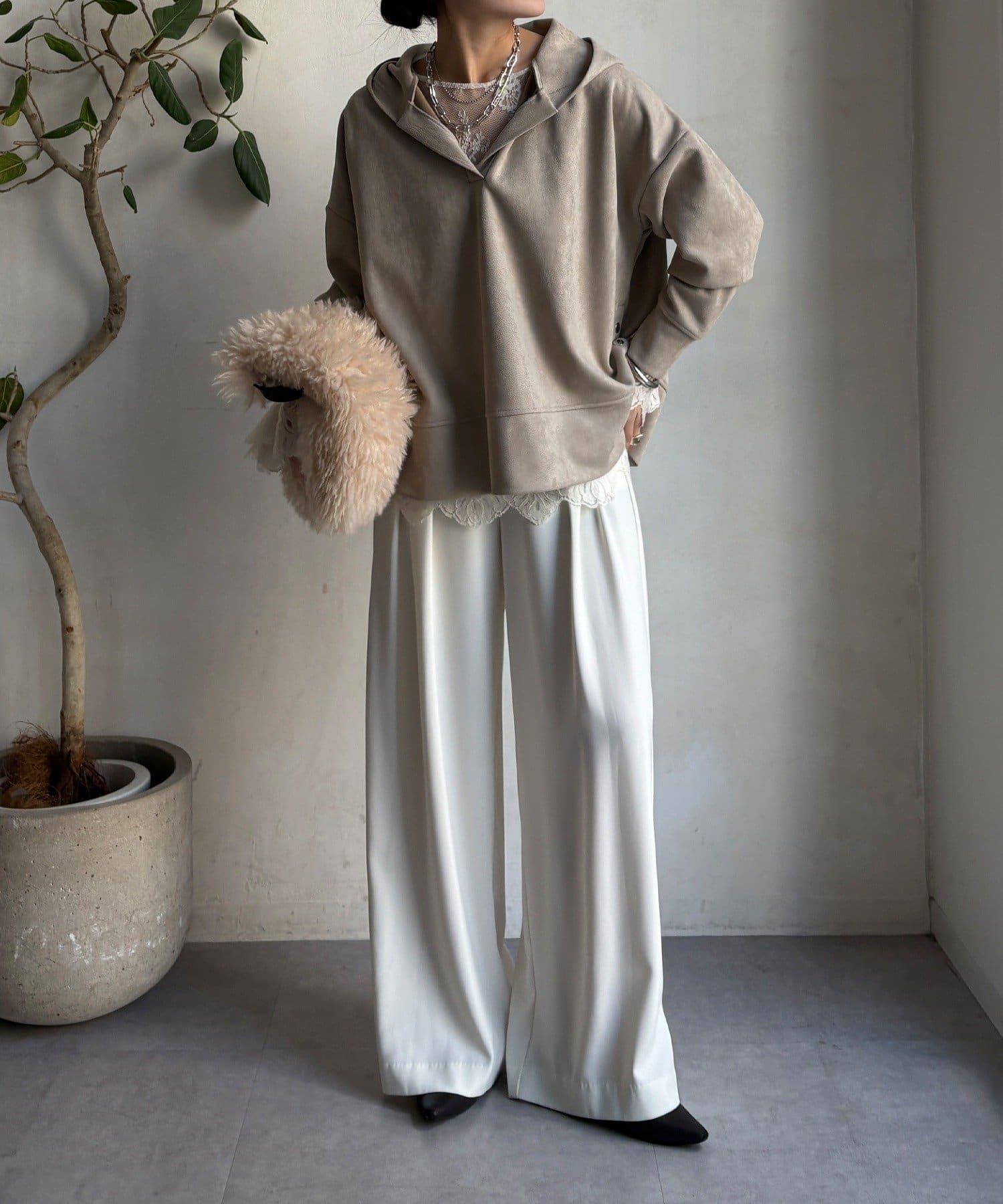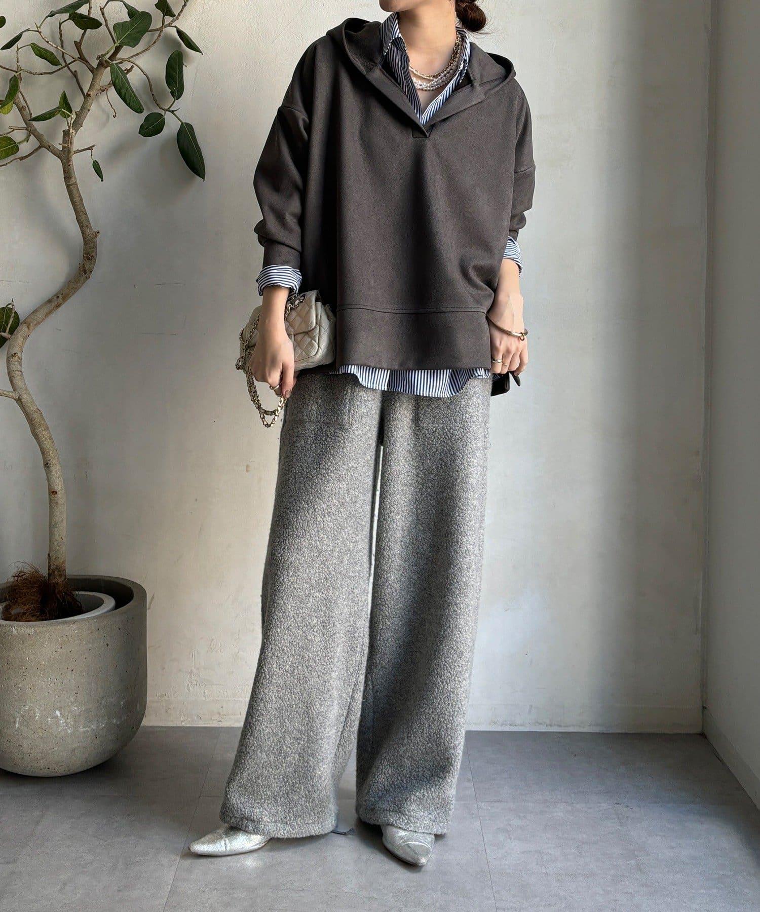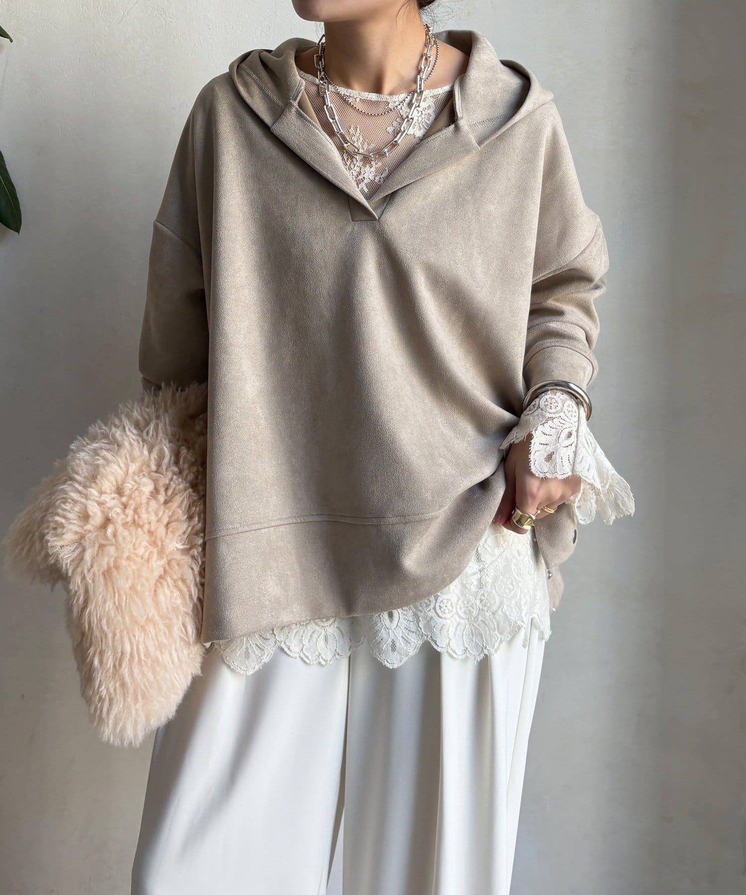 寬鬆廓形麂皮絨連帽衫
