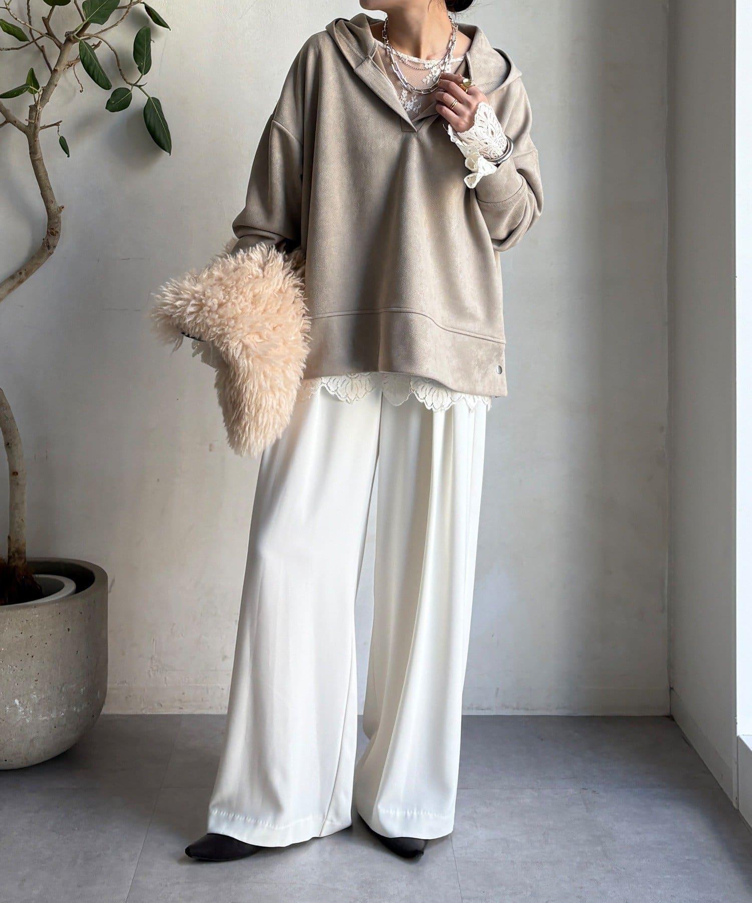 超大號連帽衫,採用柔軟的絨面觸感面料,更顯成熟氣質。