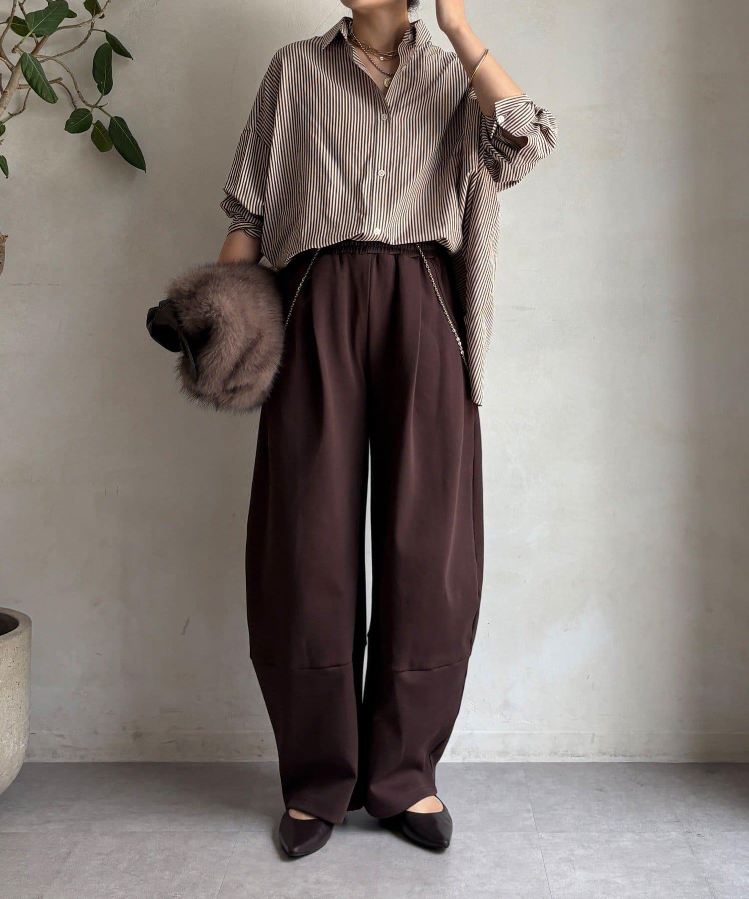 完全鬆緊的腰部設計讓人毫無壓力,可搭配或不搭配上衣,是一款可穿可脫的百搭單品。