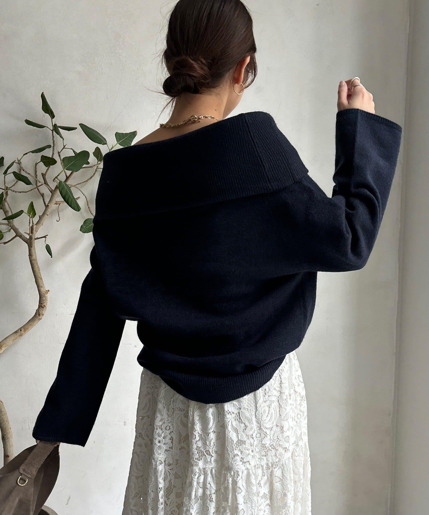 領口的穿著方式不同,針織衫給人的感覺也不同。
