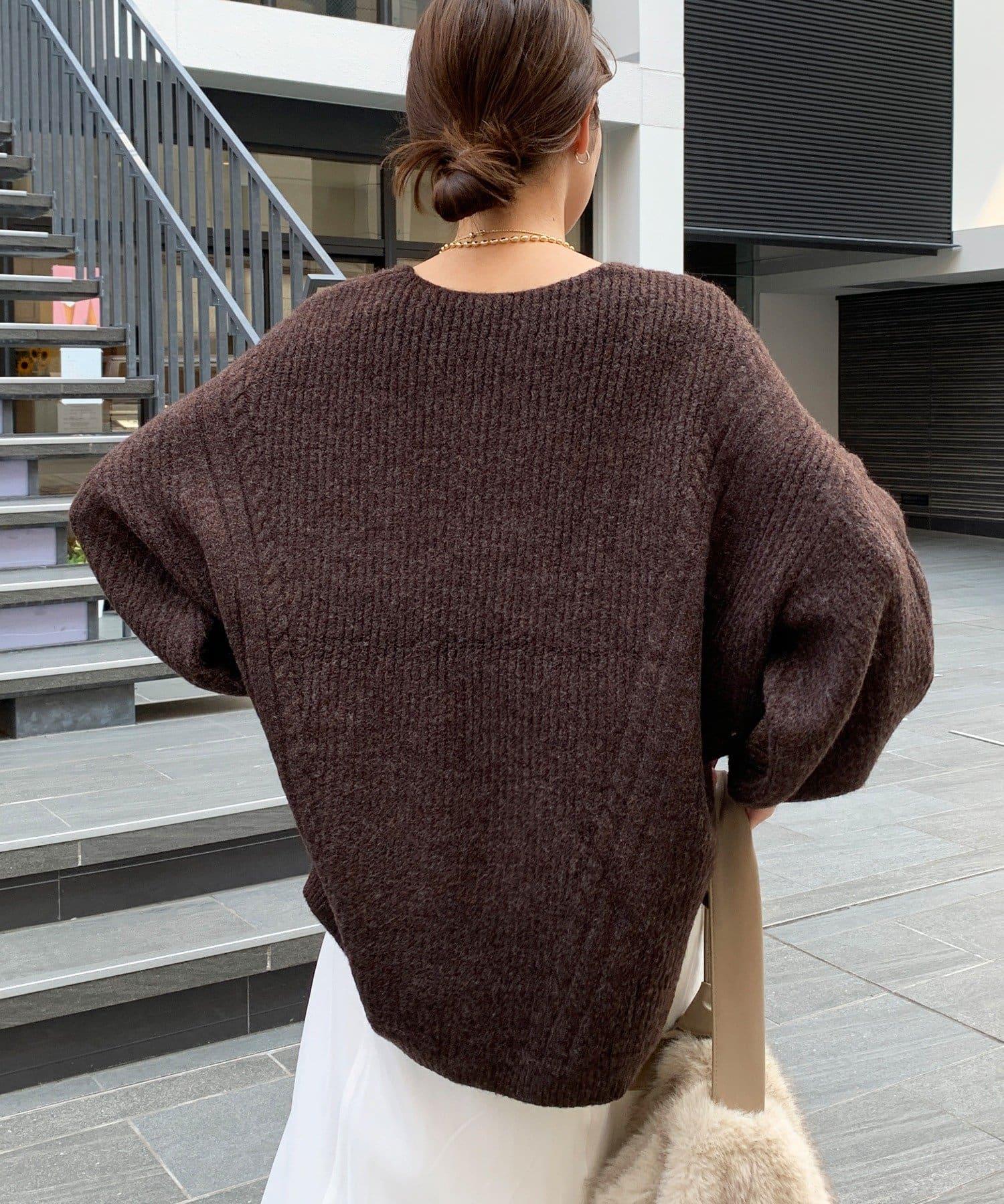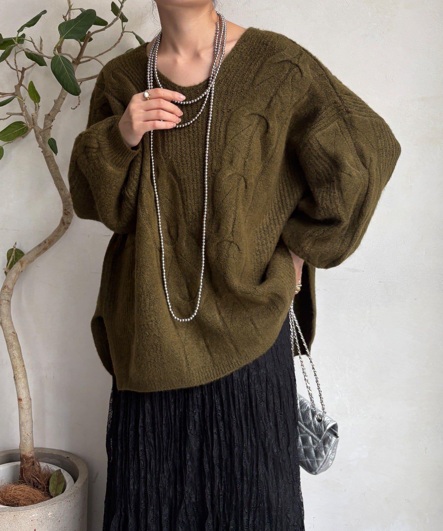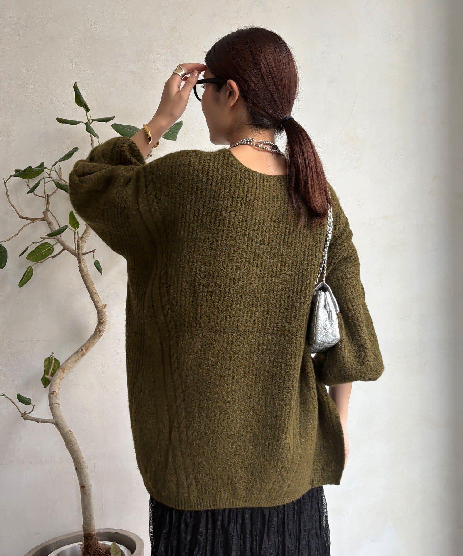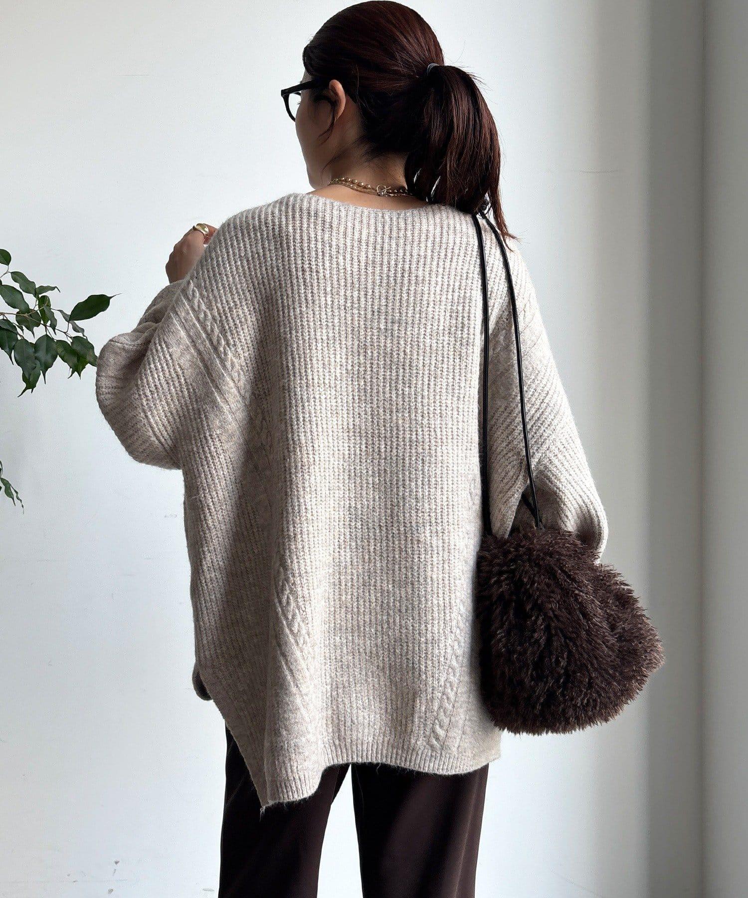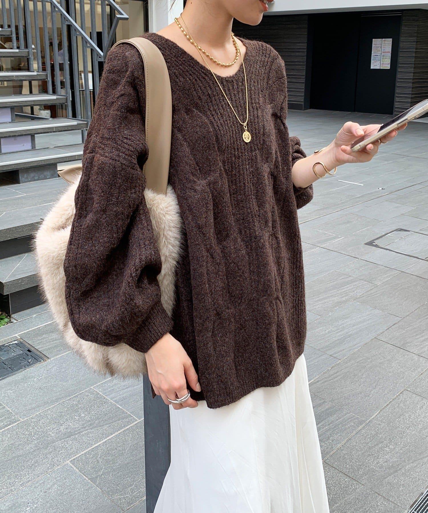這款針織衫採用溫暖的大號線型針織,廓形寬鬆可愛。