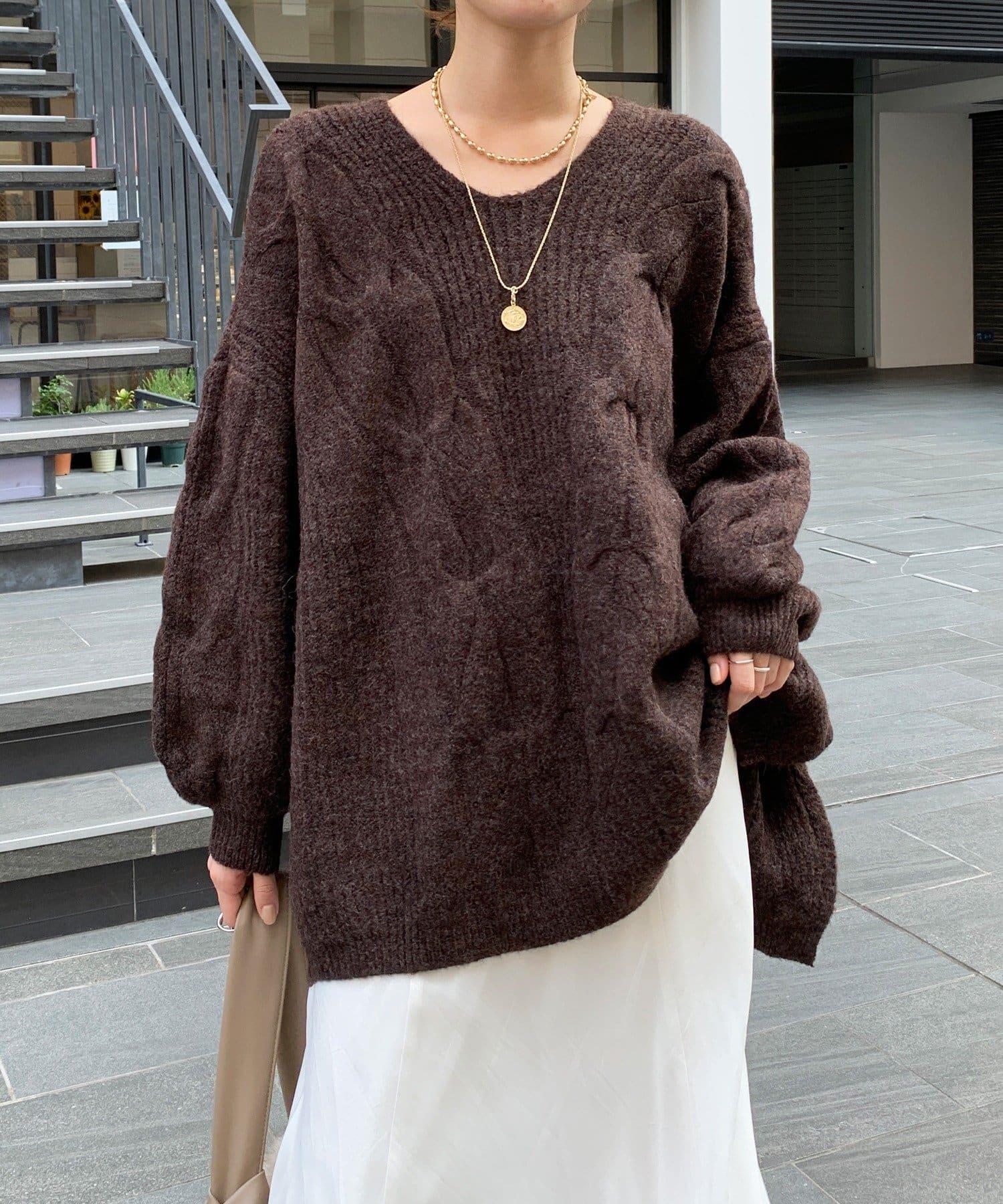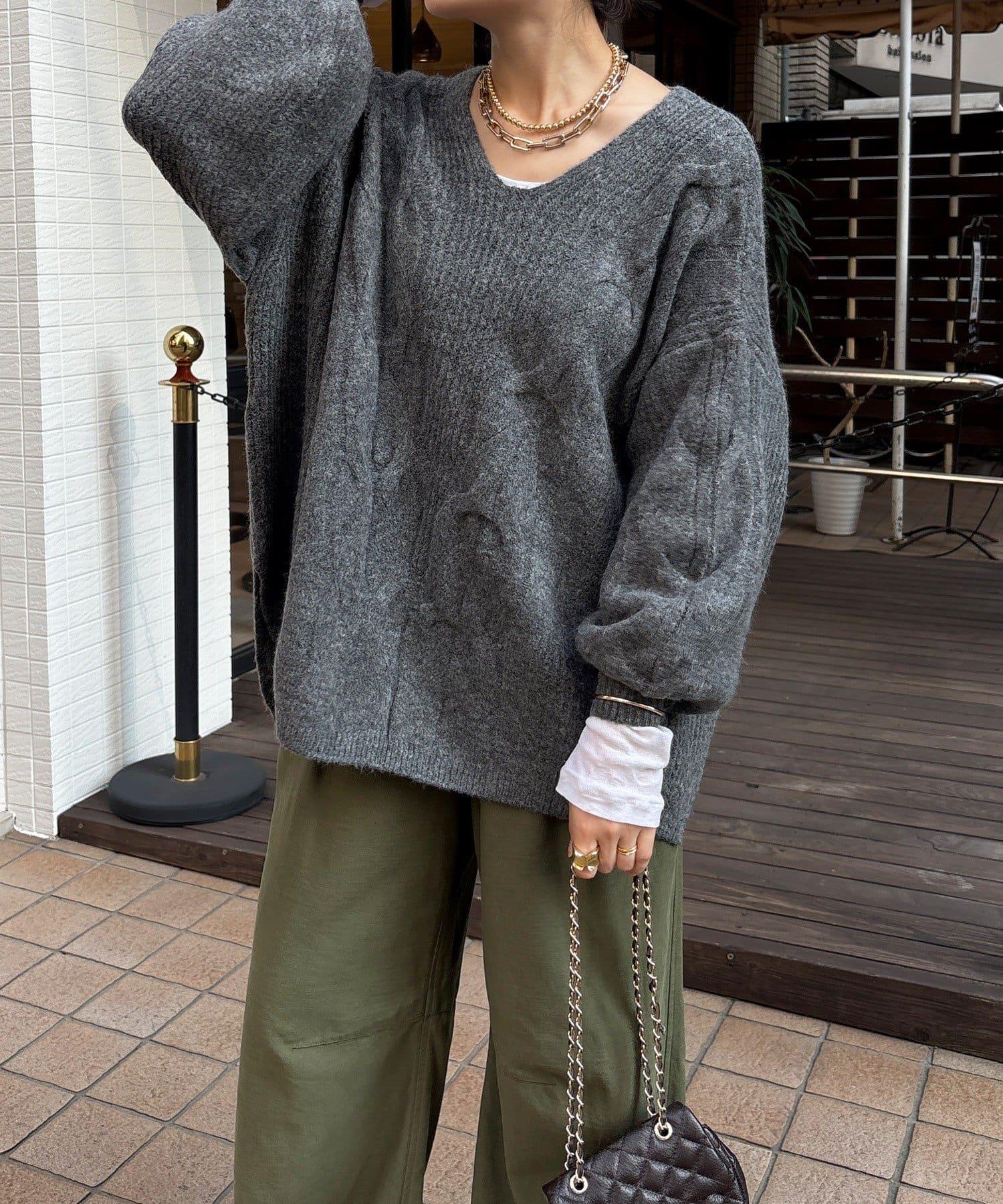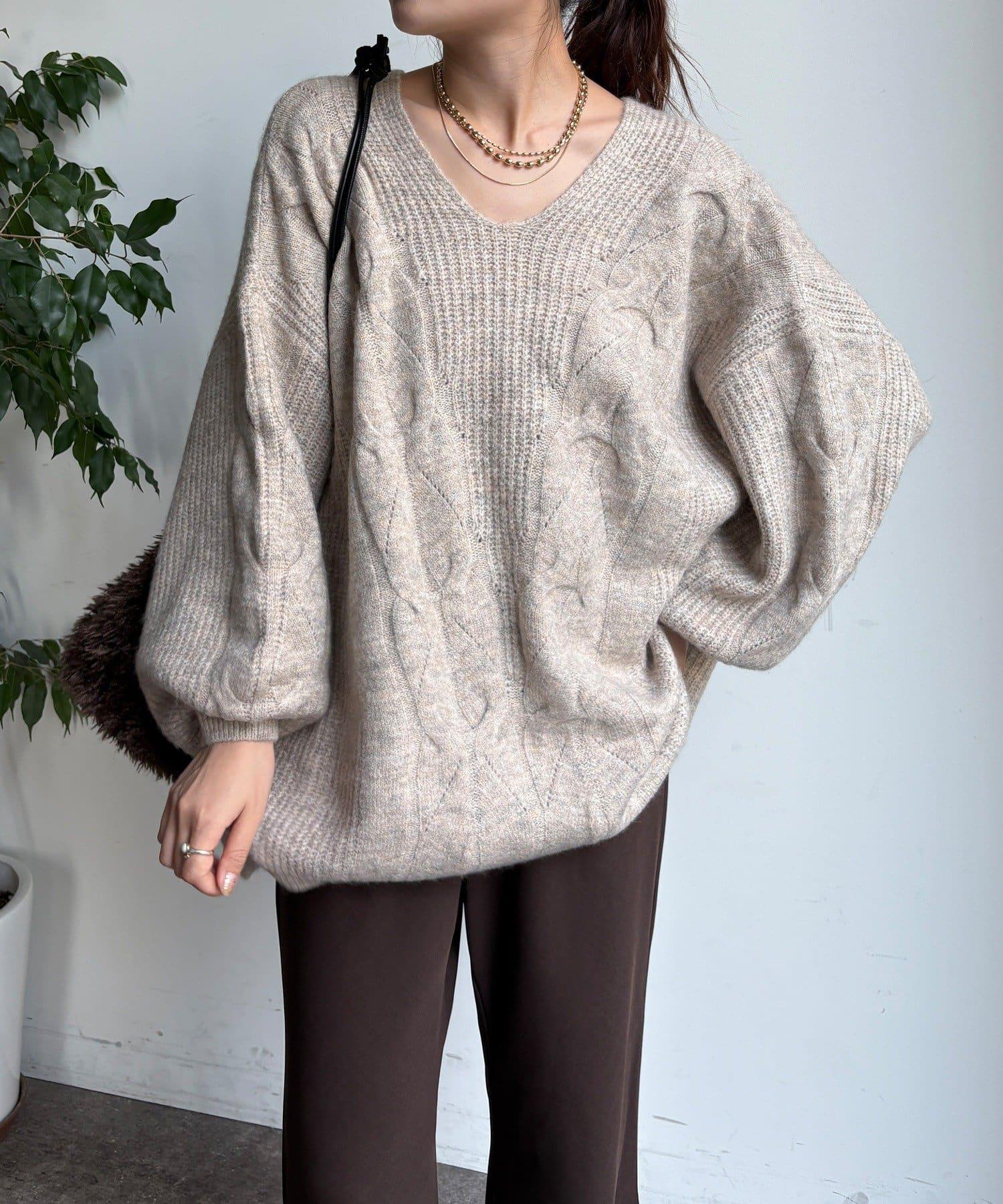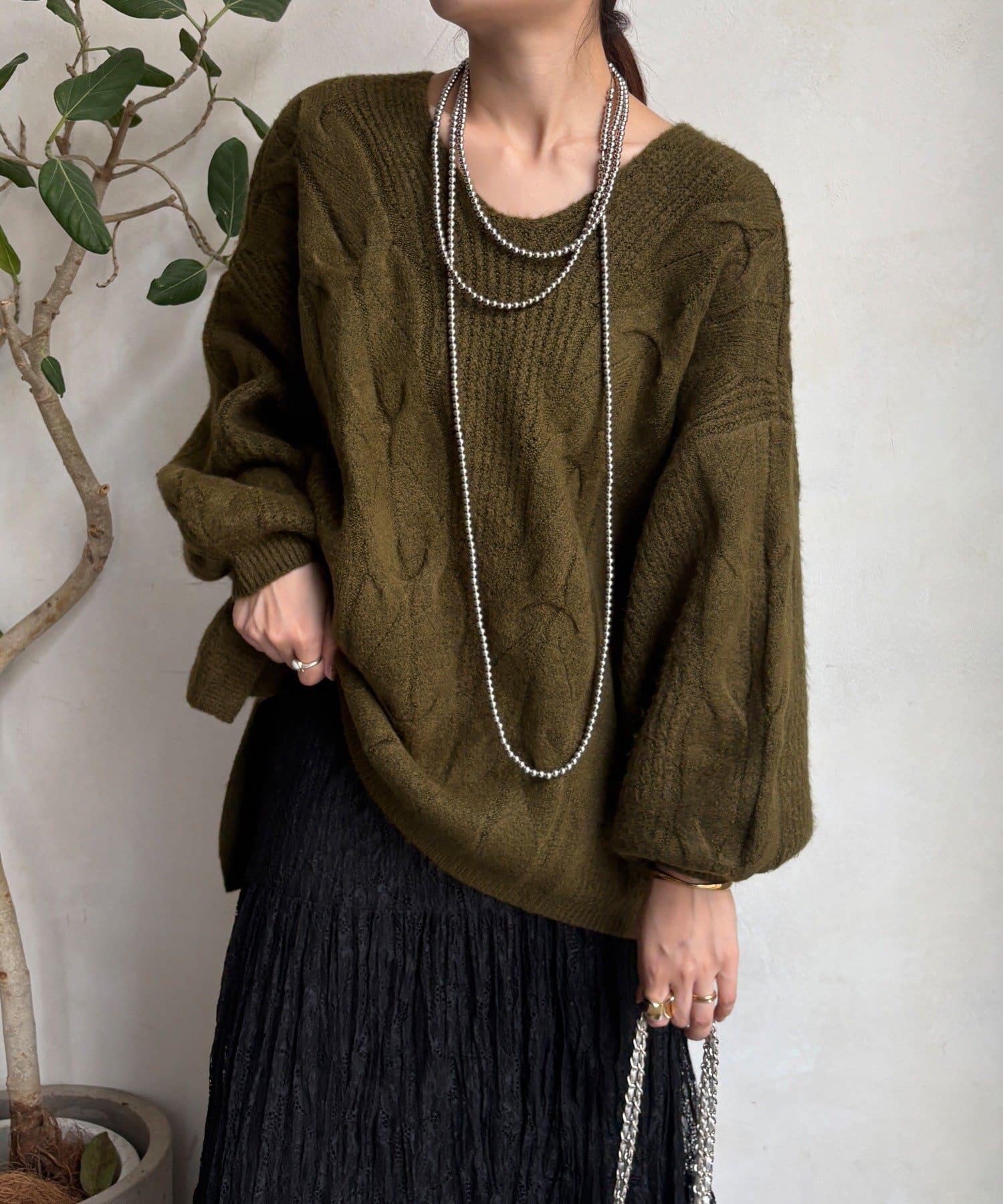 這款針織衫採用溫暖的大號線型針織,廓形寬鬆可愛。