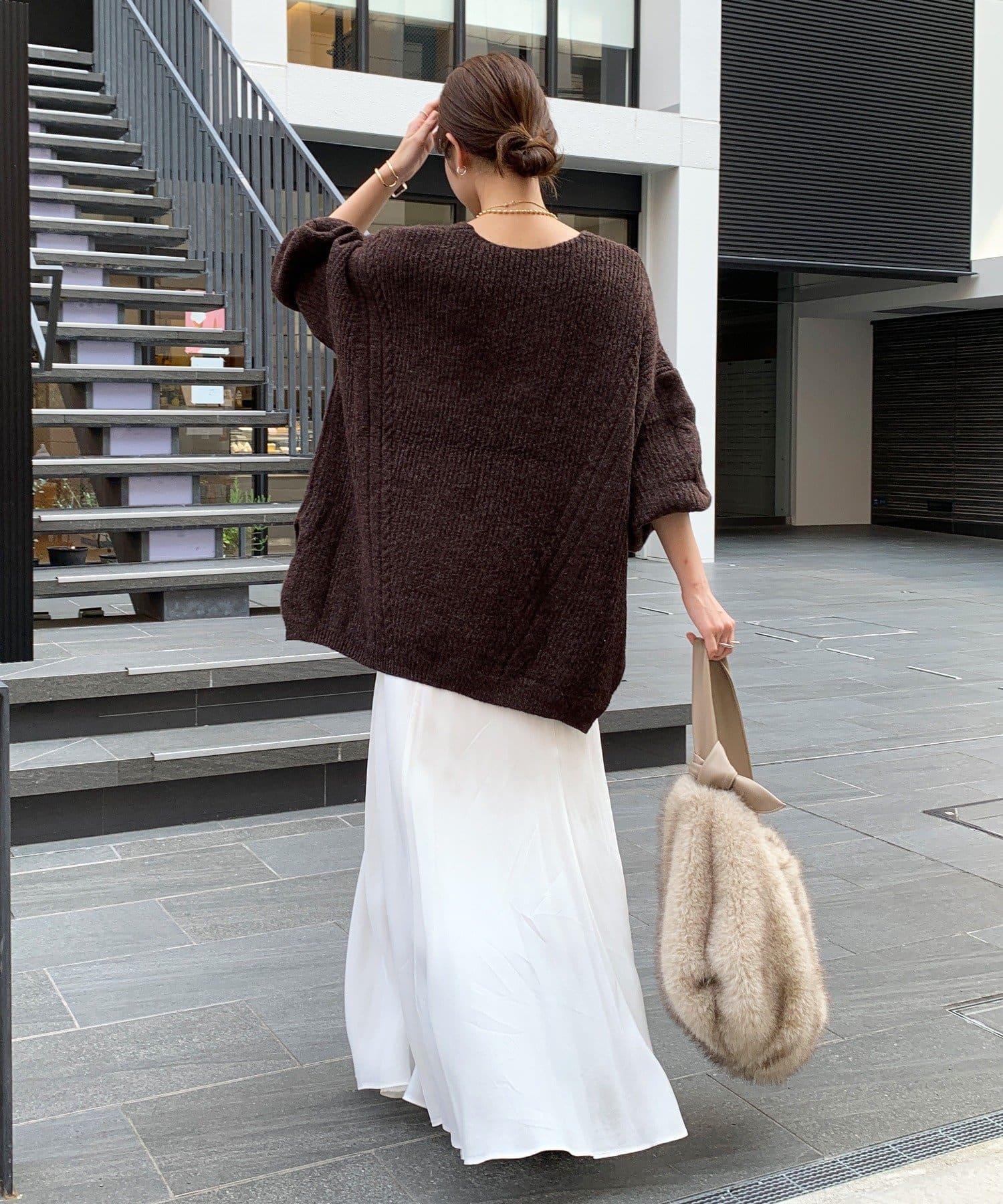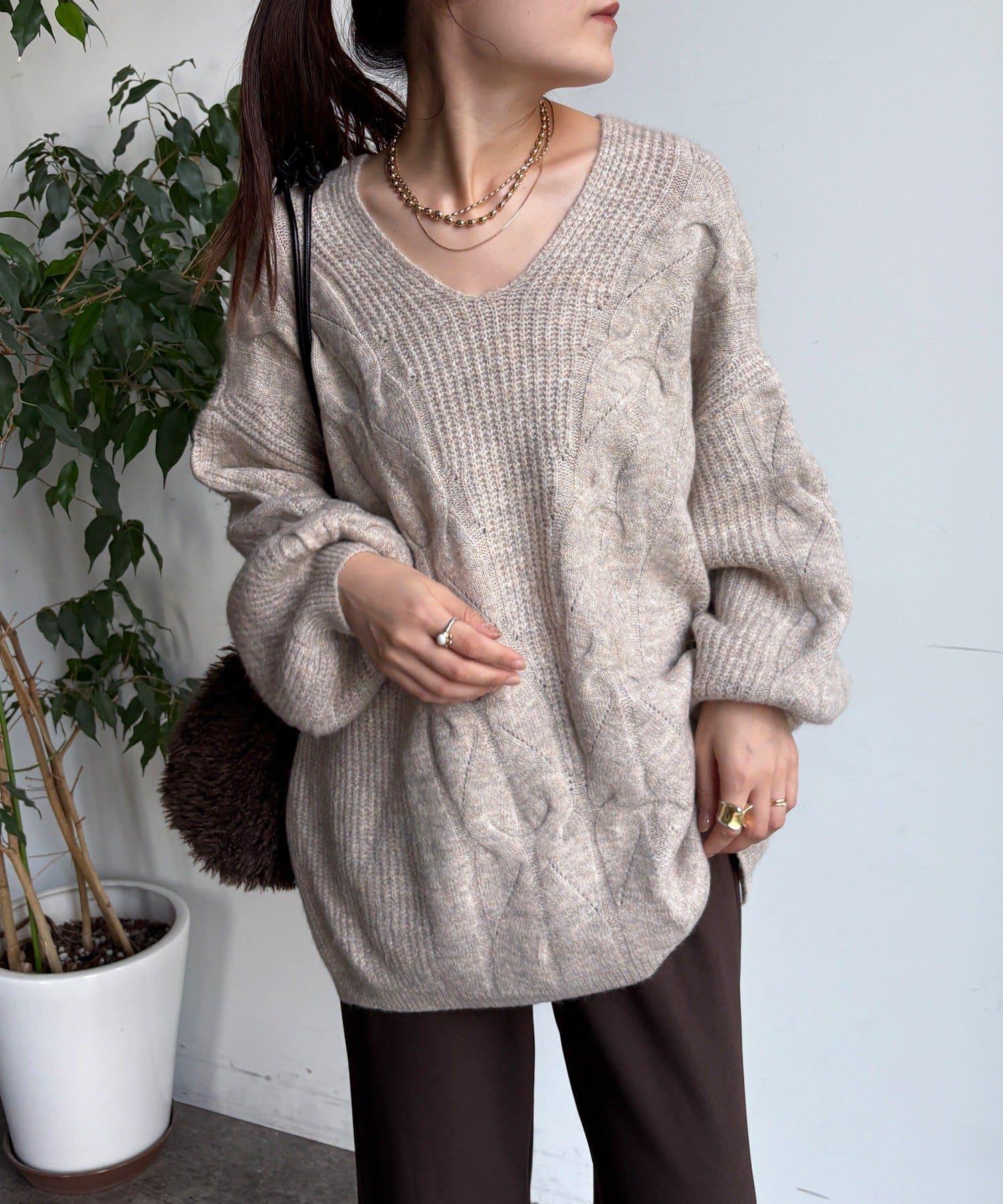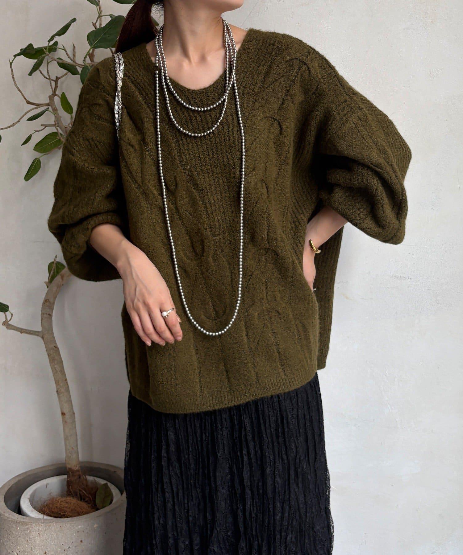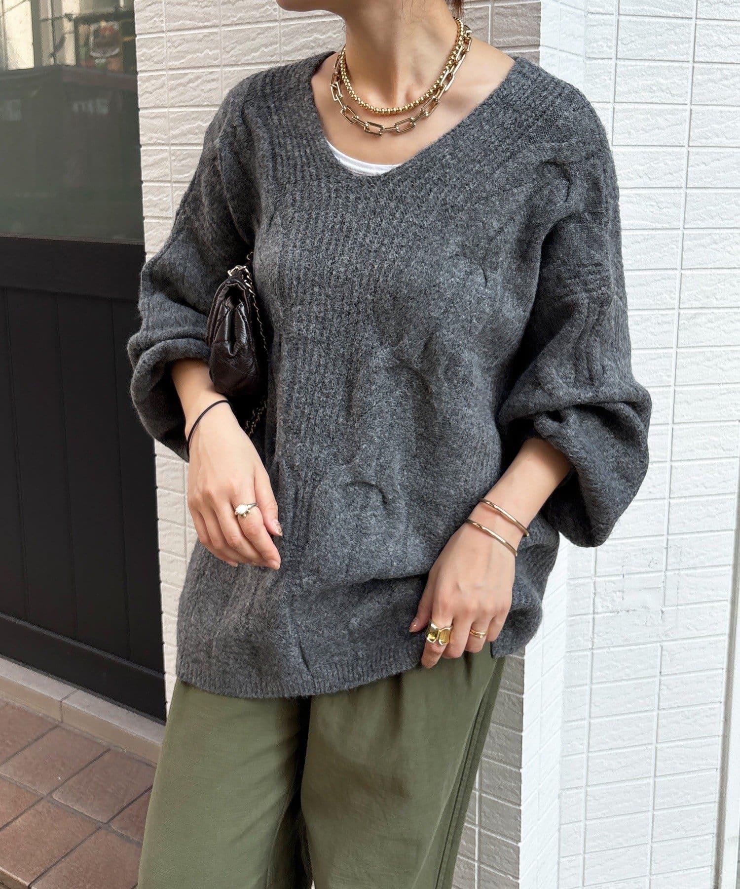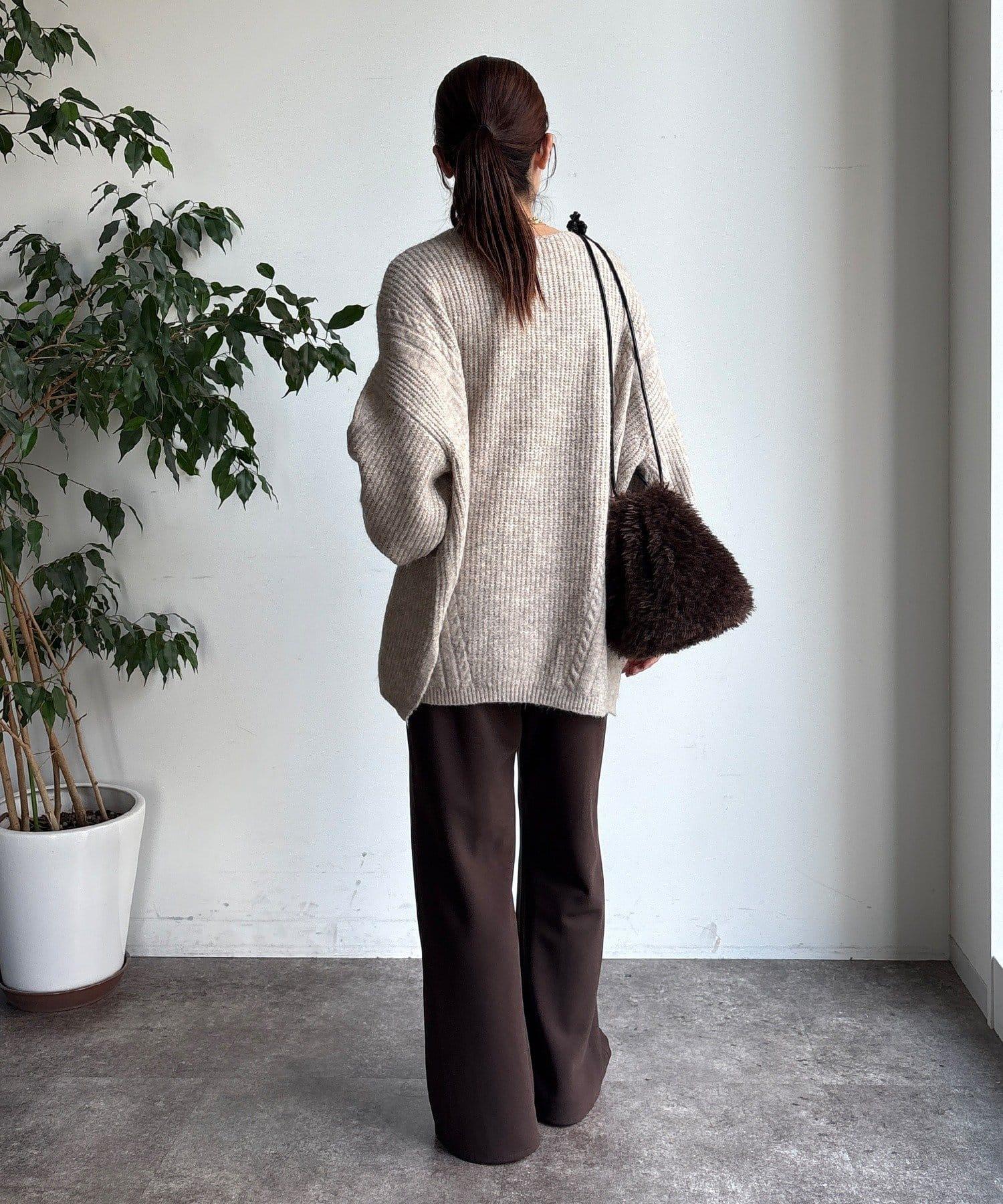 這款針織衫採用溫暖的大號線型針織,廓形寬鬆可愛。