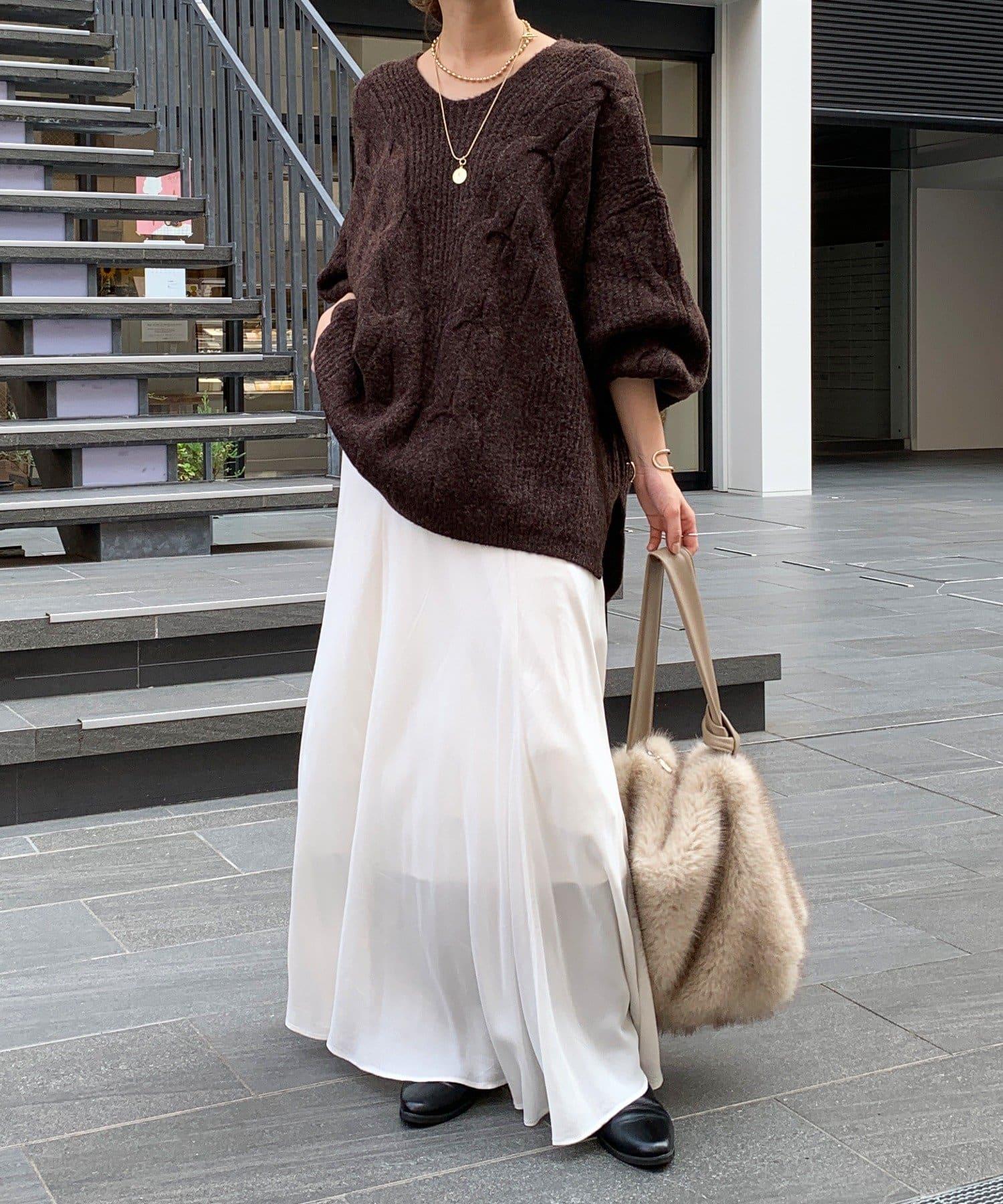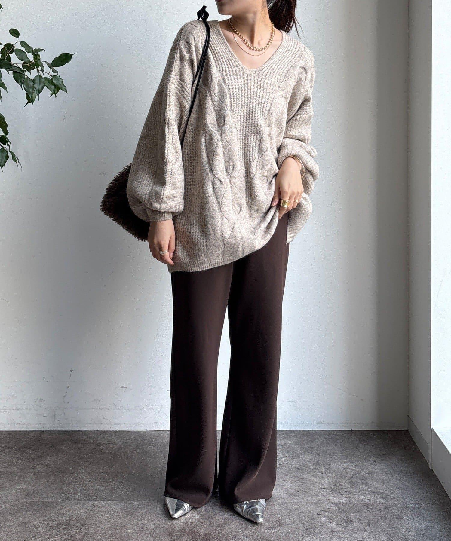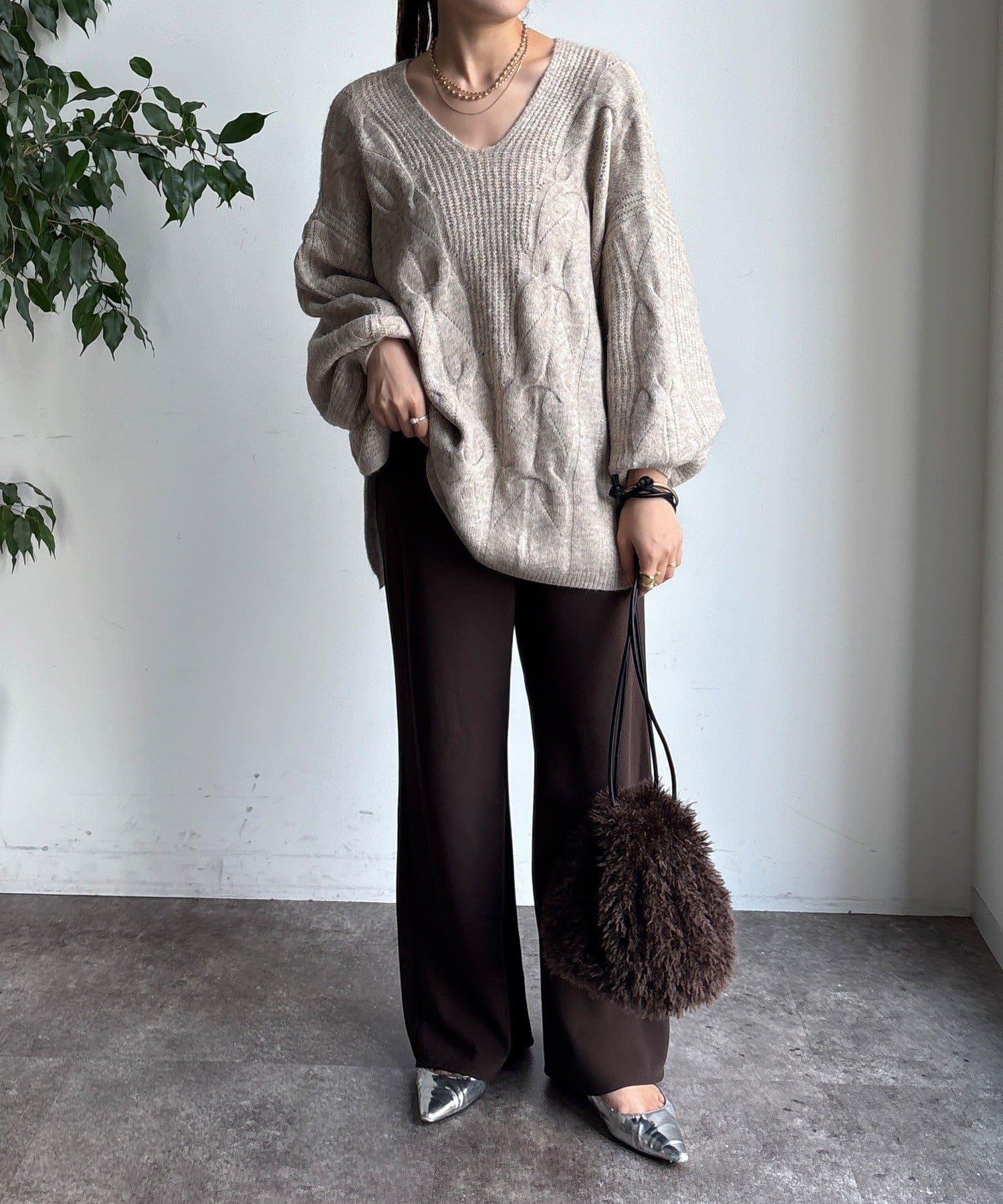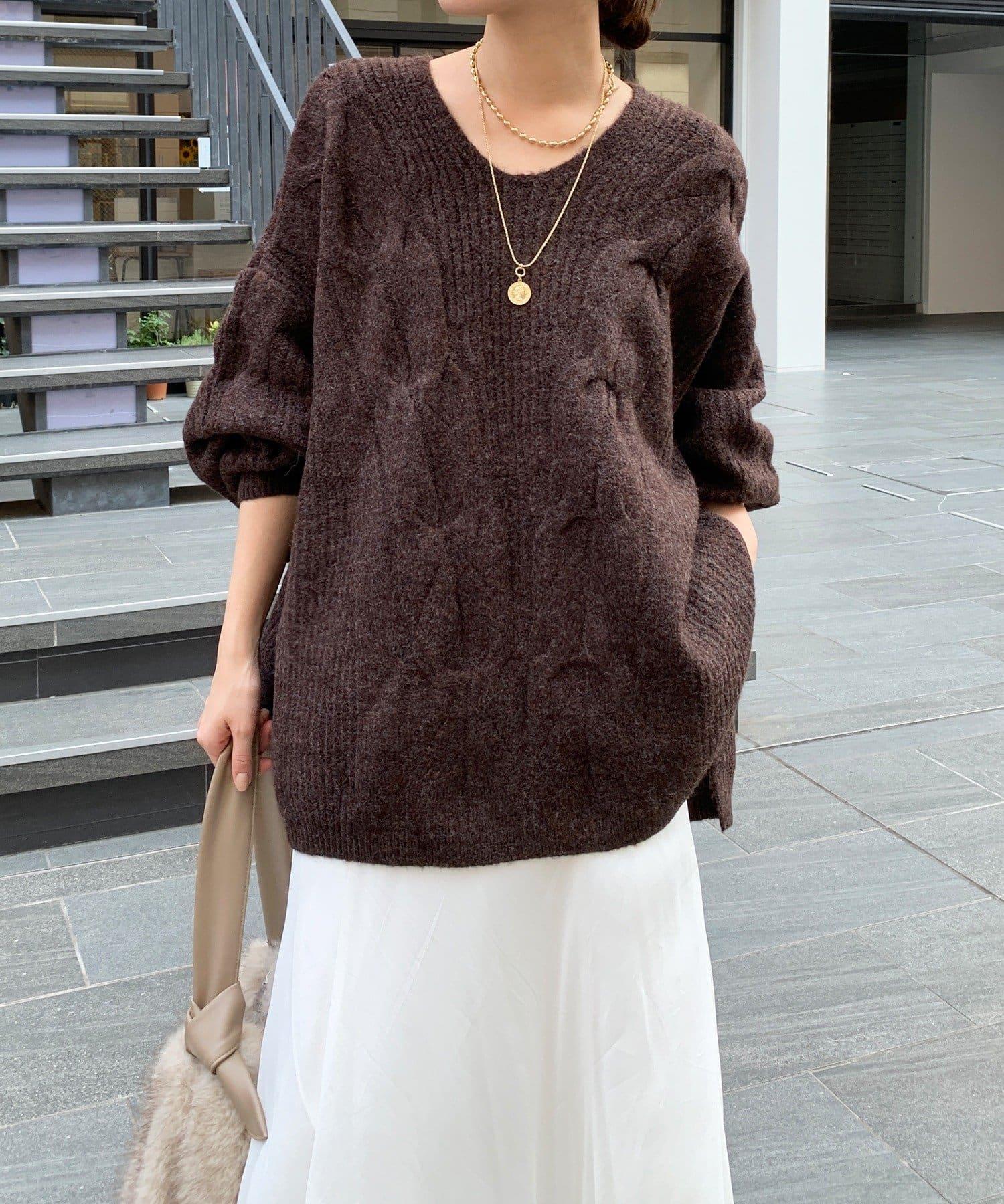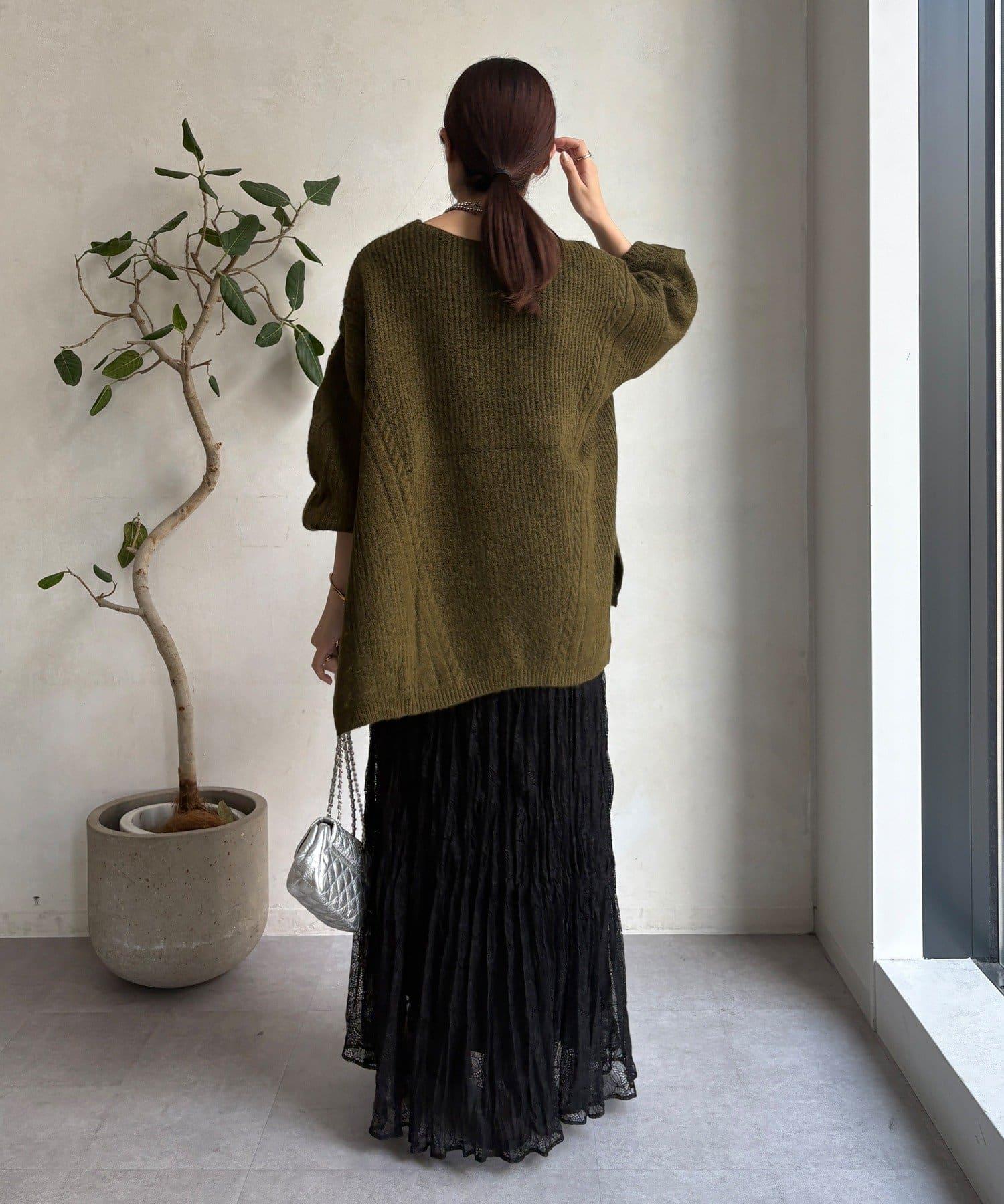 這款針織衫採用溫暖的大號線型針織,廓形寬鬆可愛。