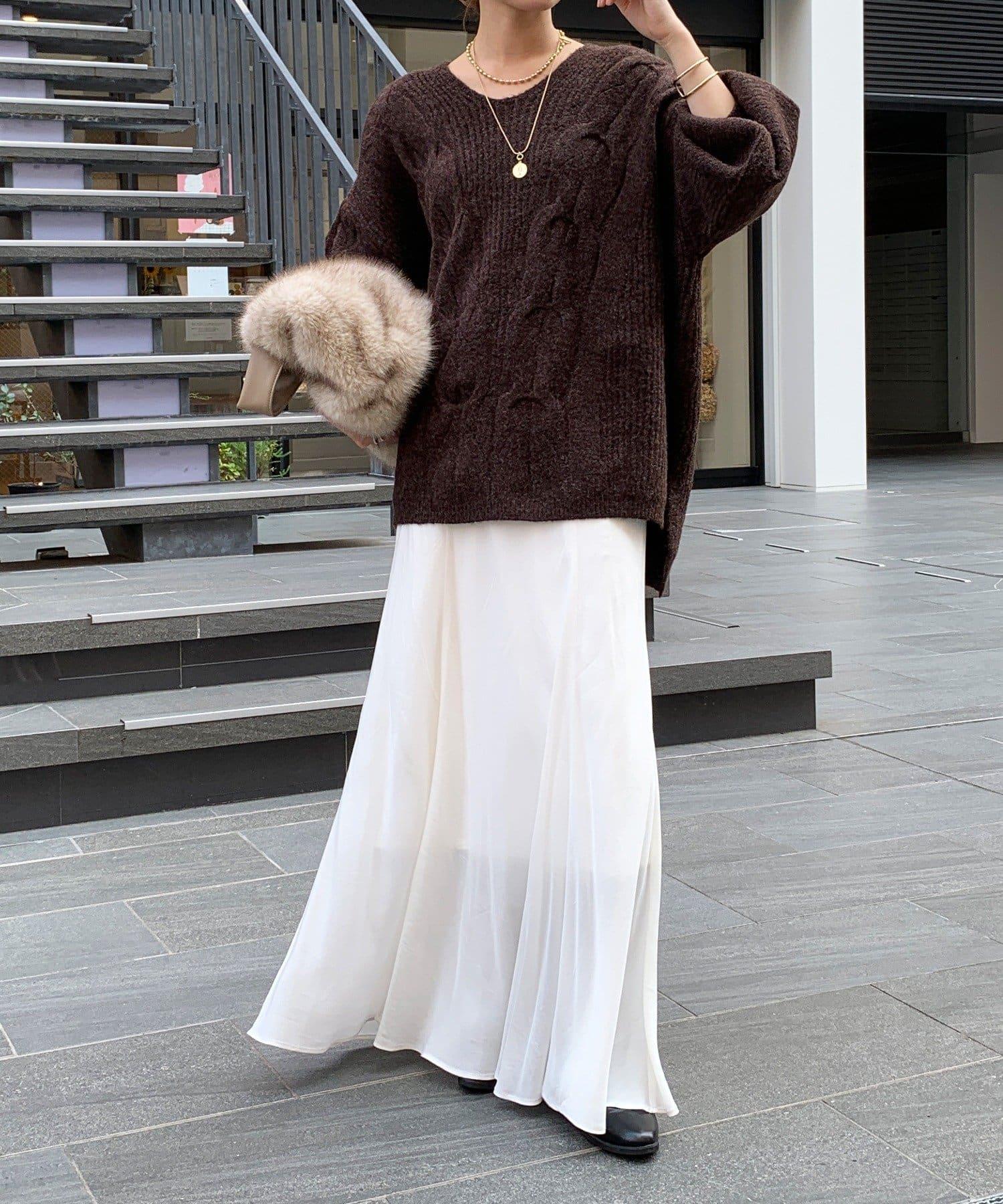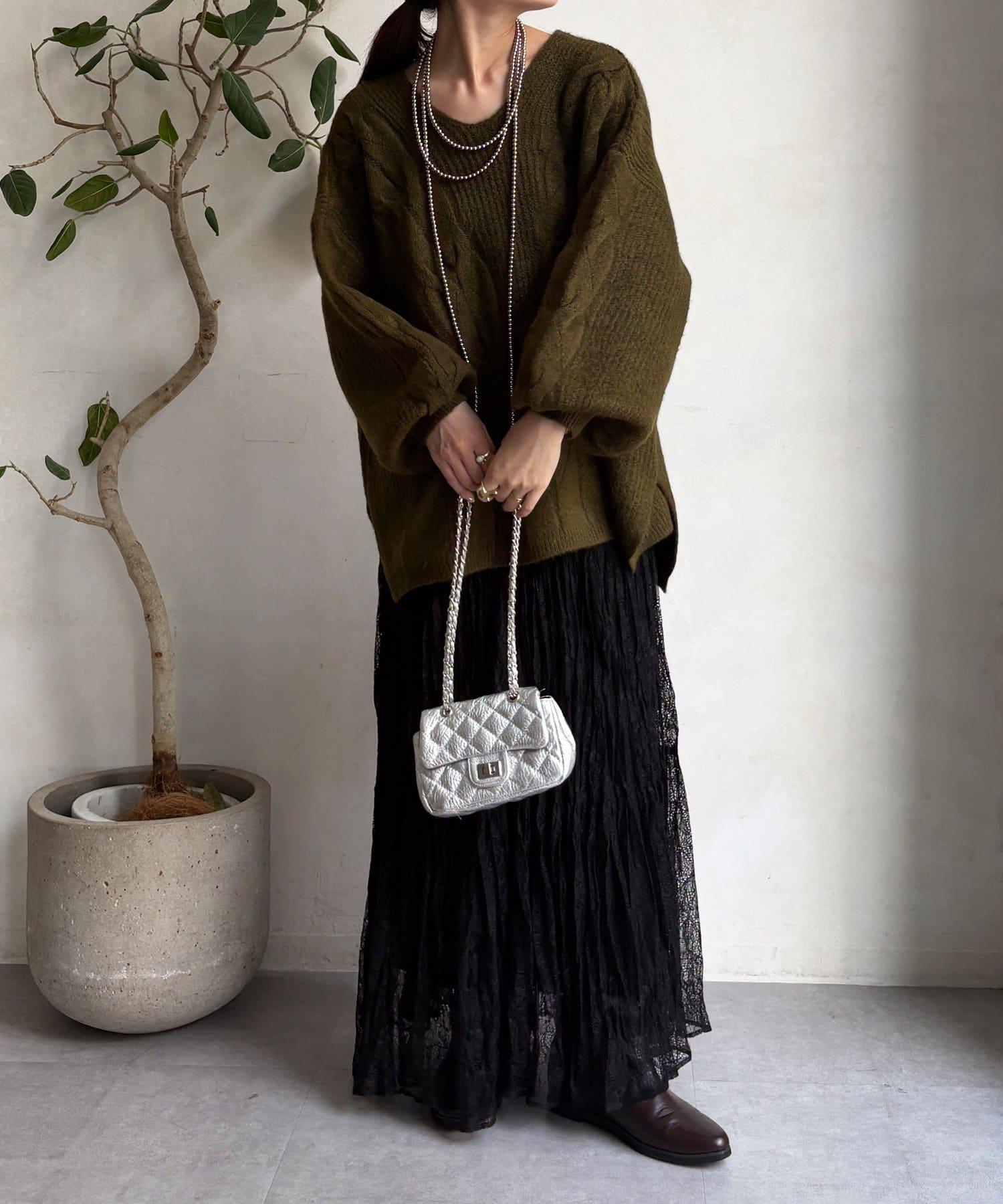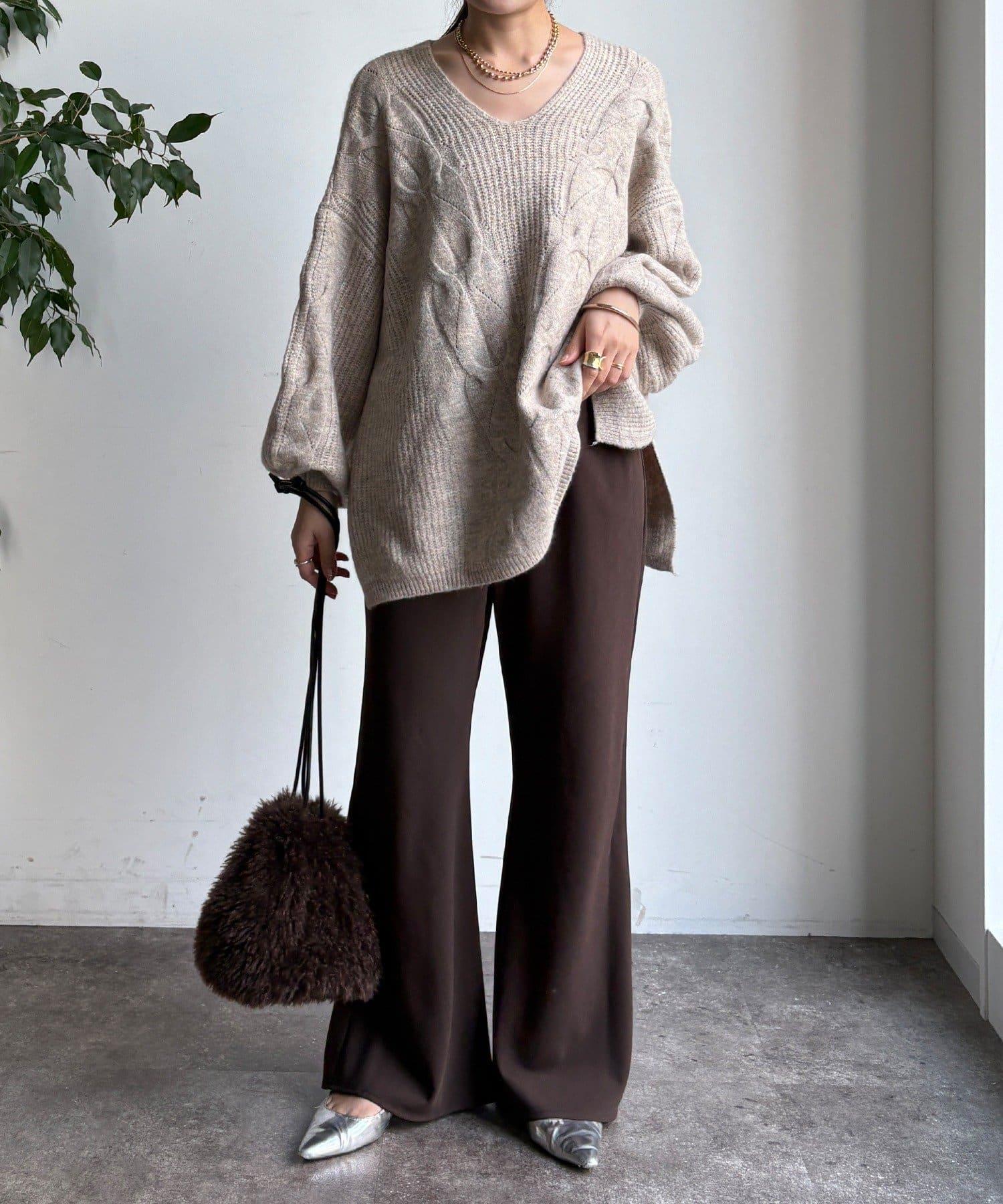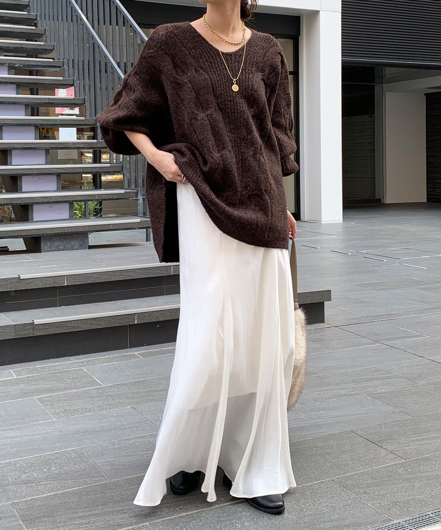 這款針織衫採用溫暖的大號線型針織,廓形寬鬆可愛。
