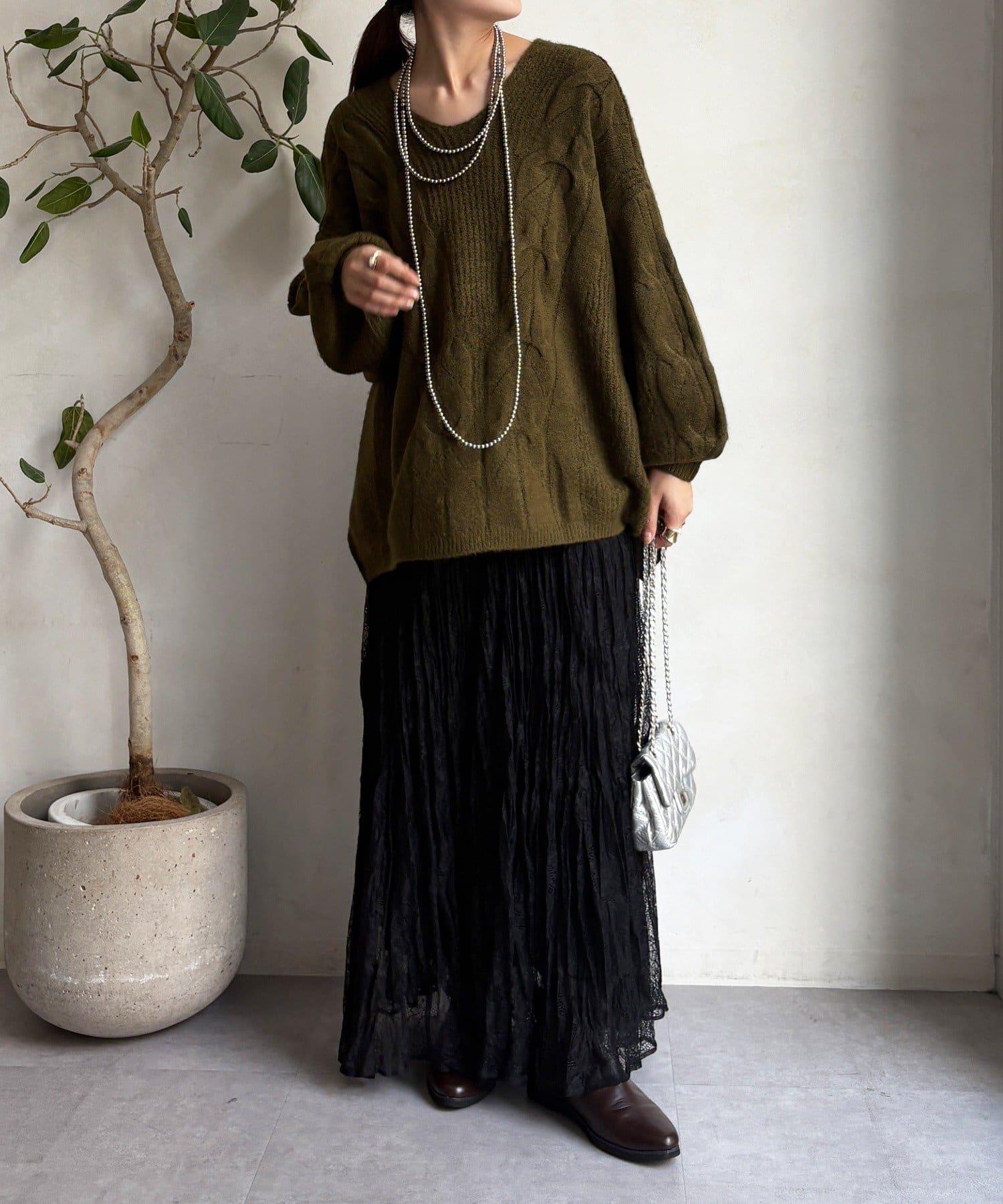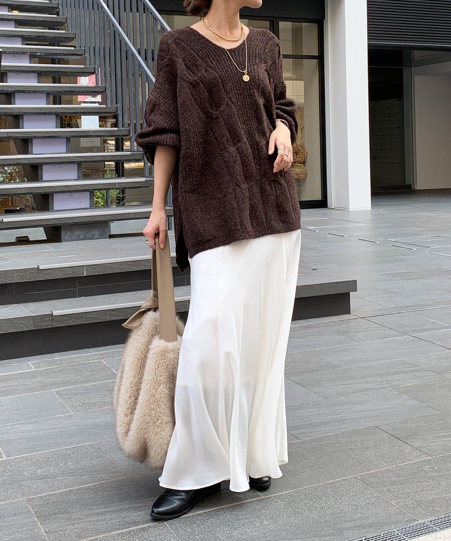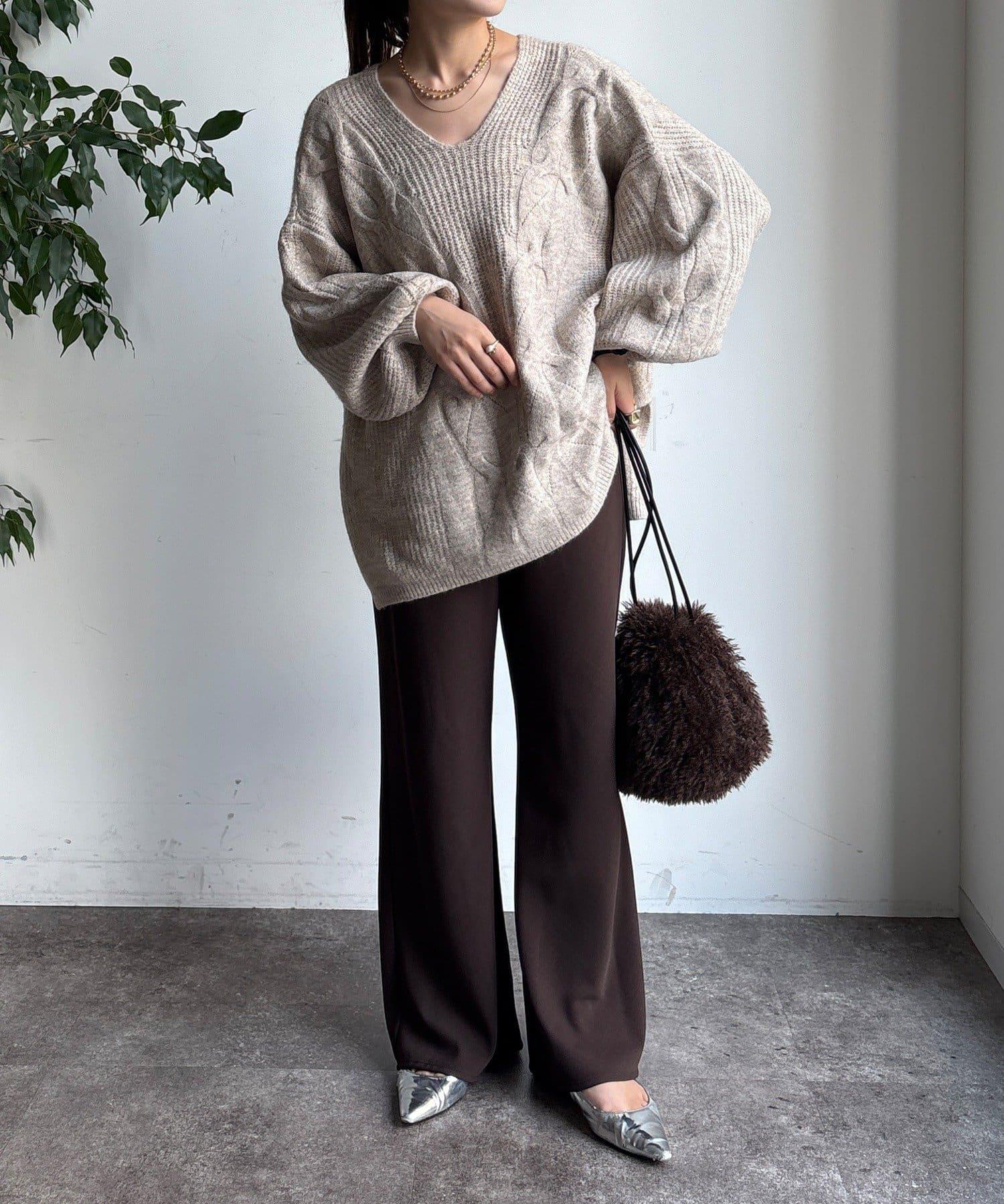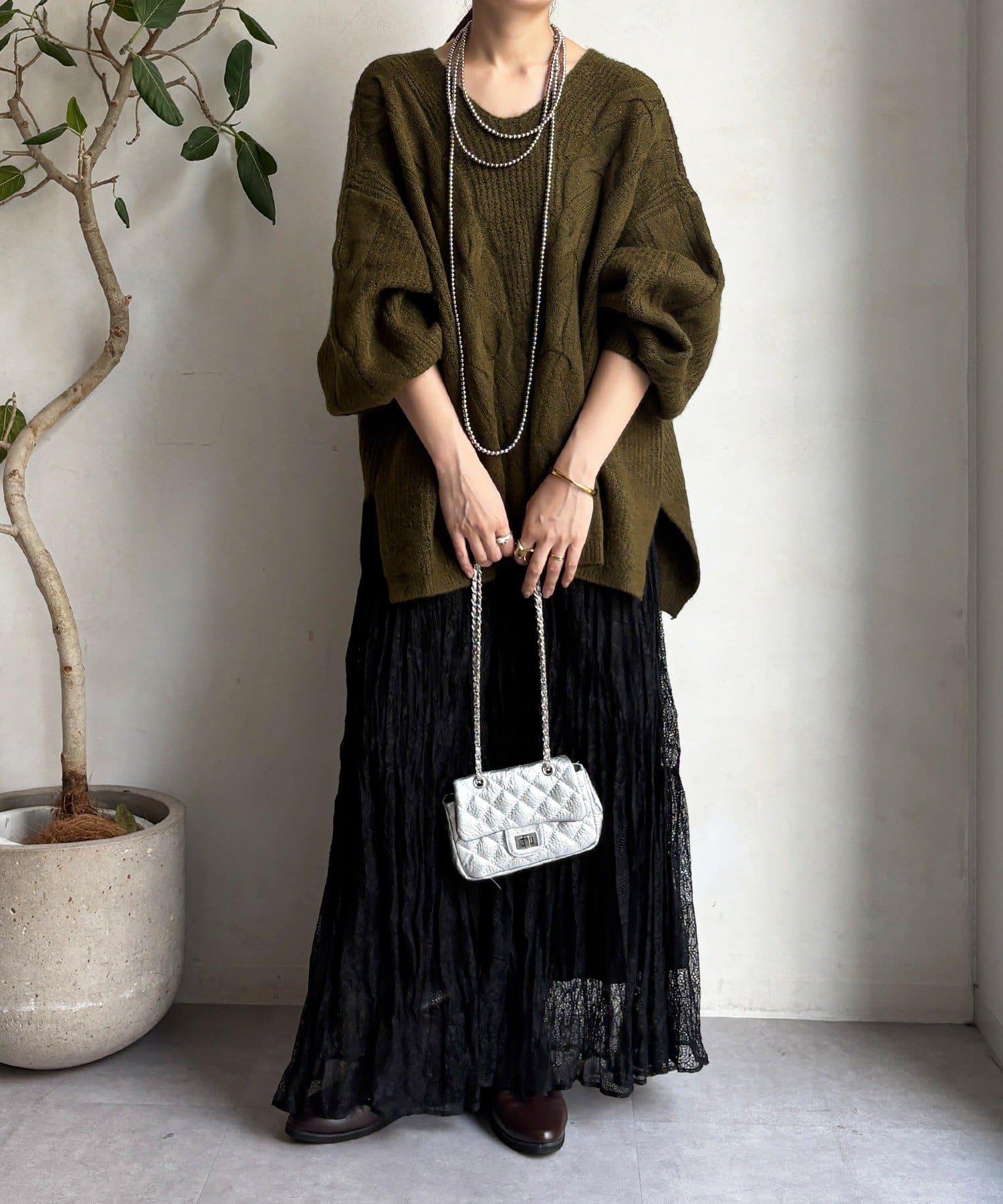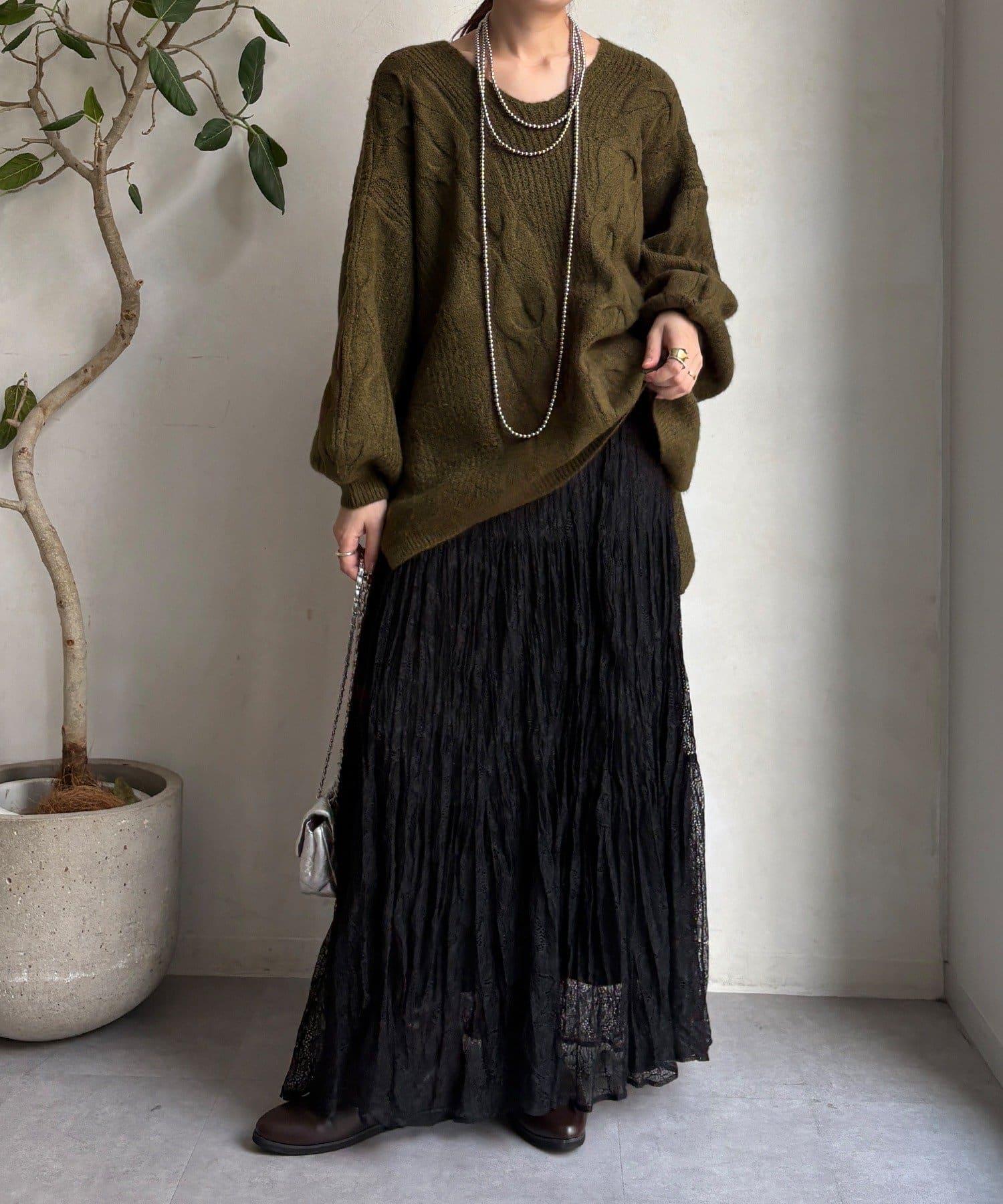 這款針織衫採用溫暖的大號線型針織,廓形寬鬆可愛。