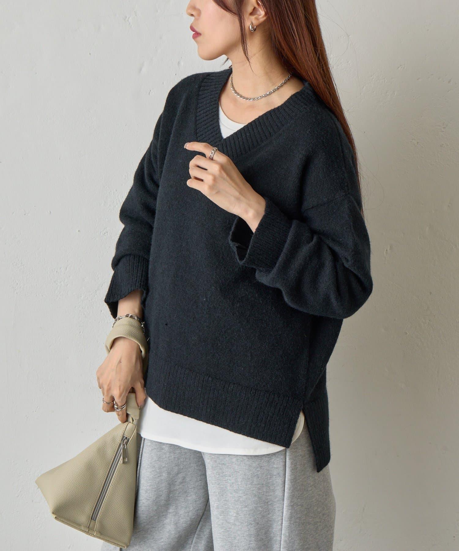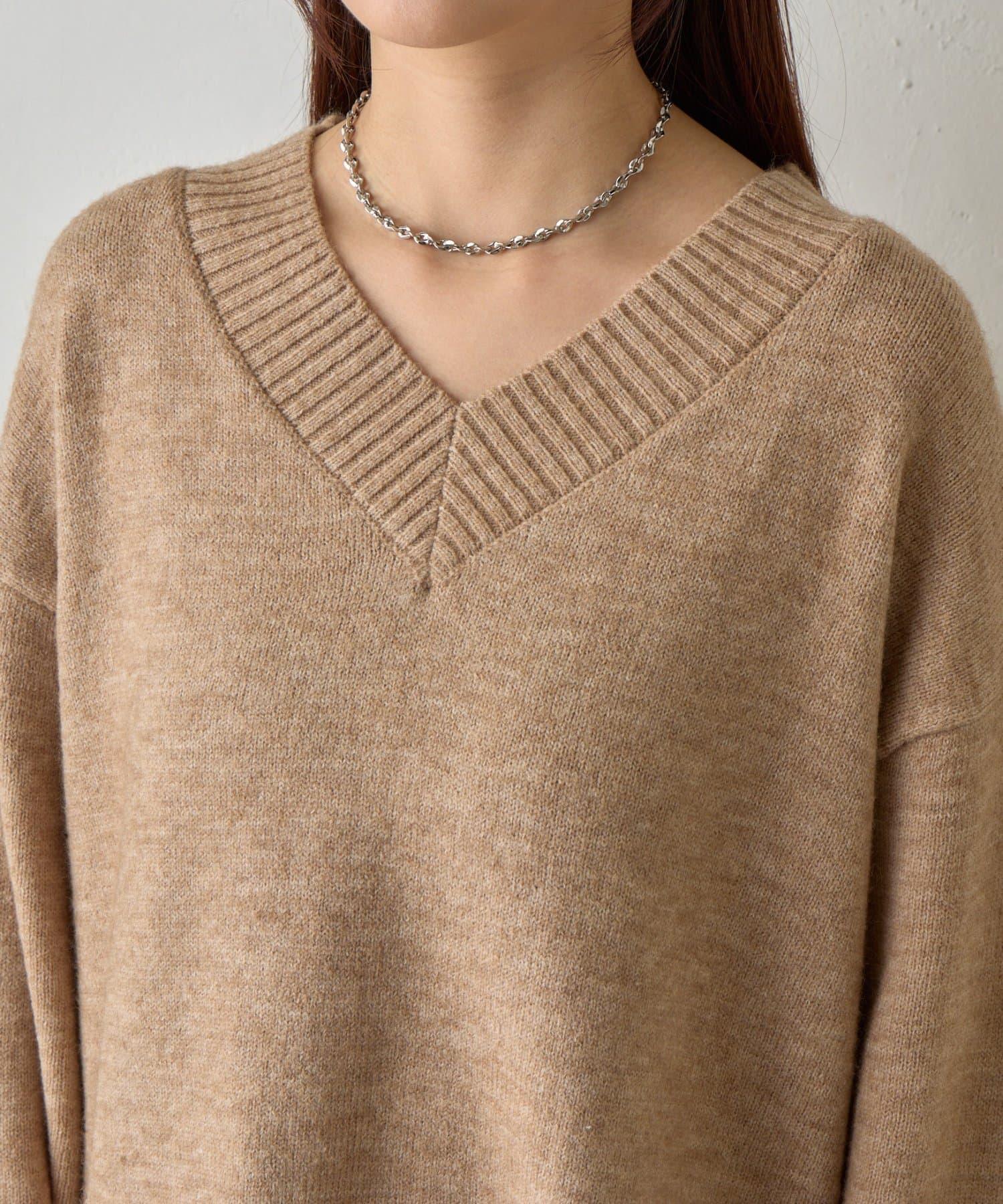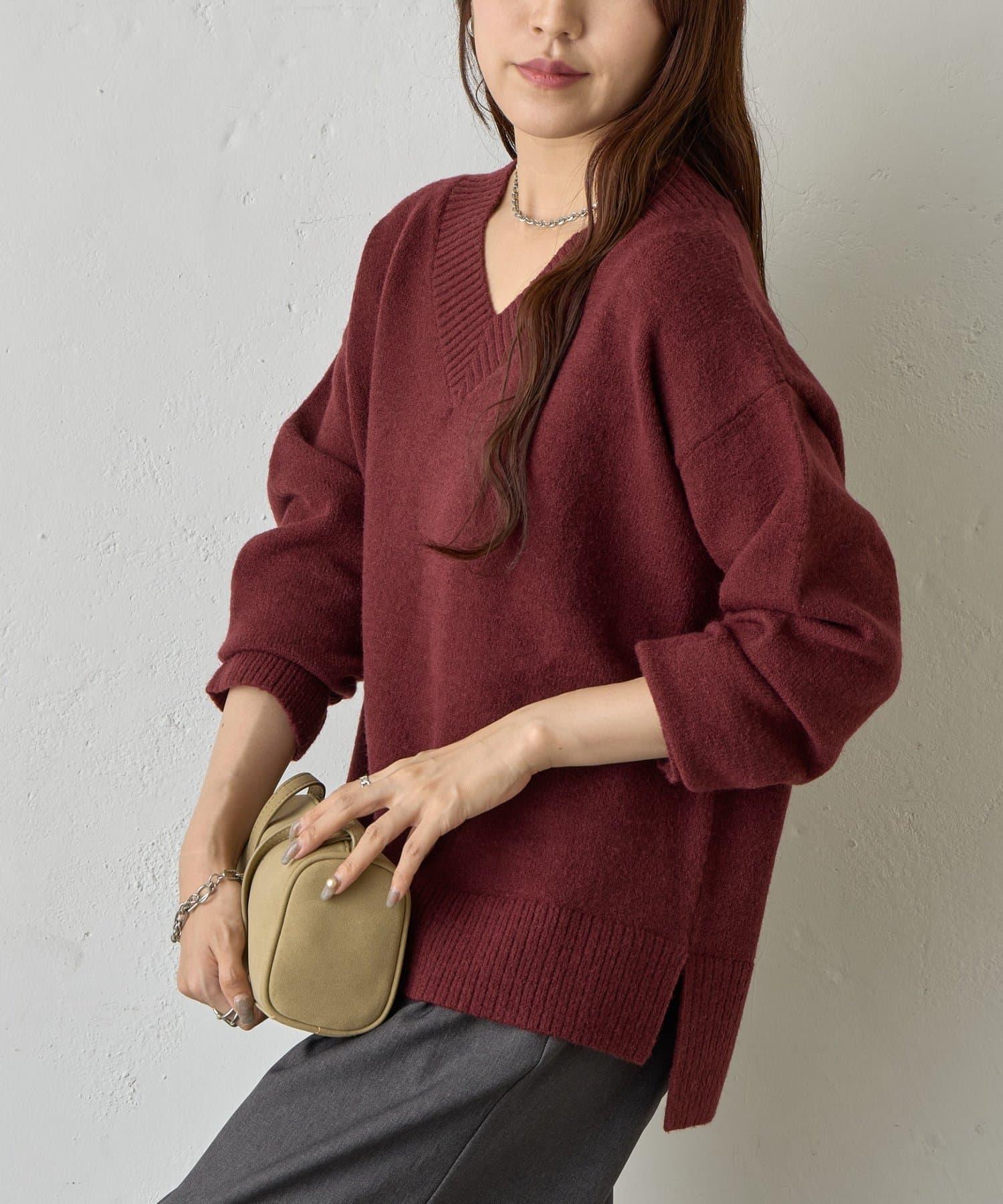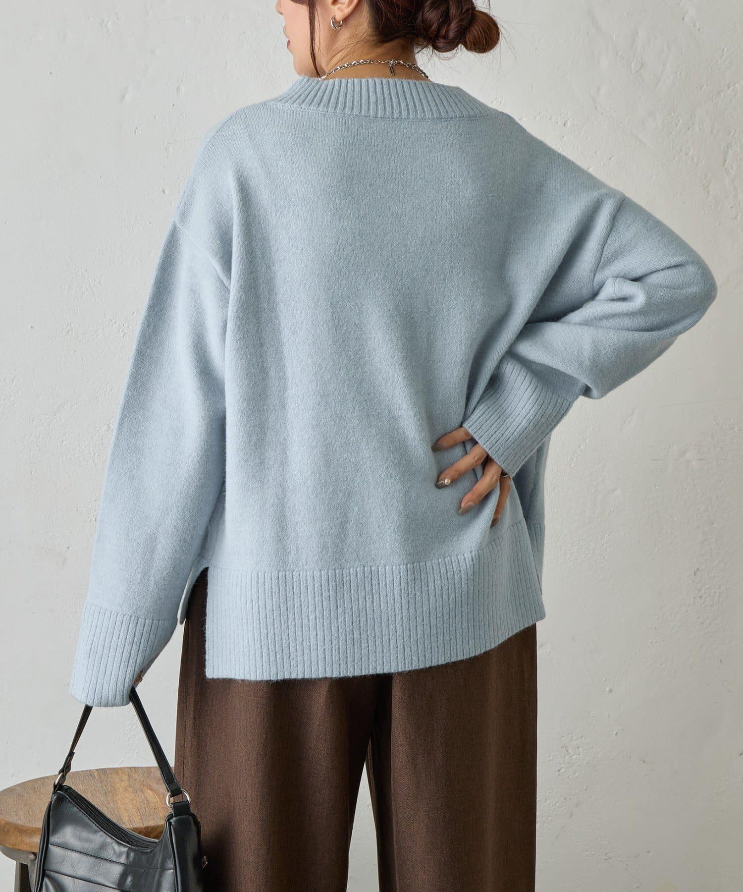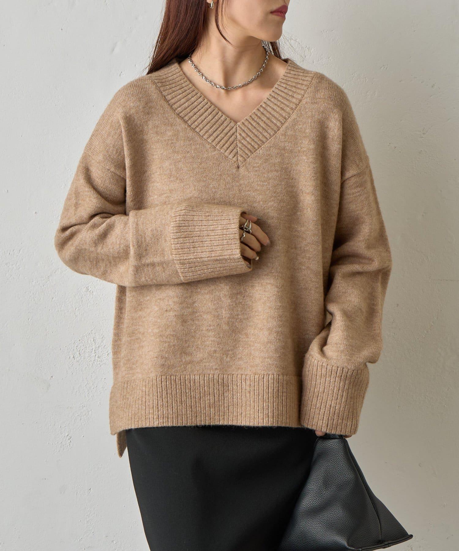 [寬鬆 V 領針織衫,蓬鬆觸感]