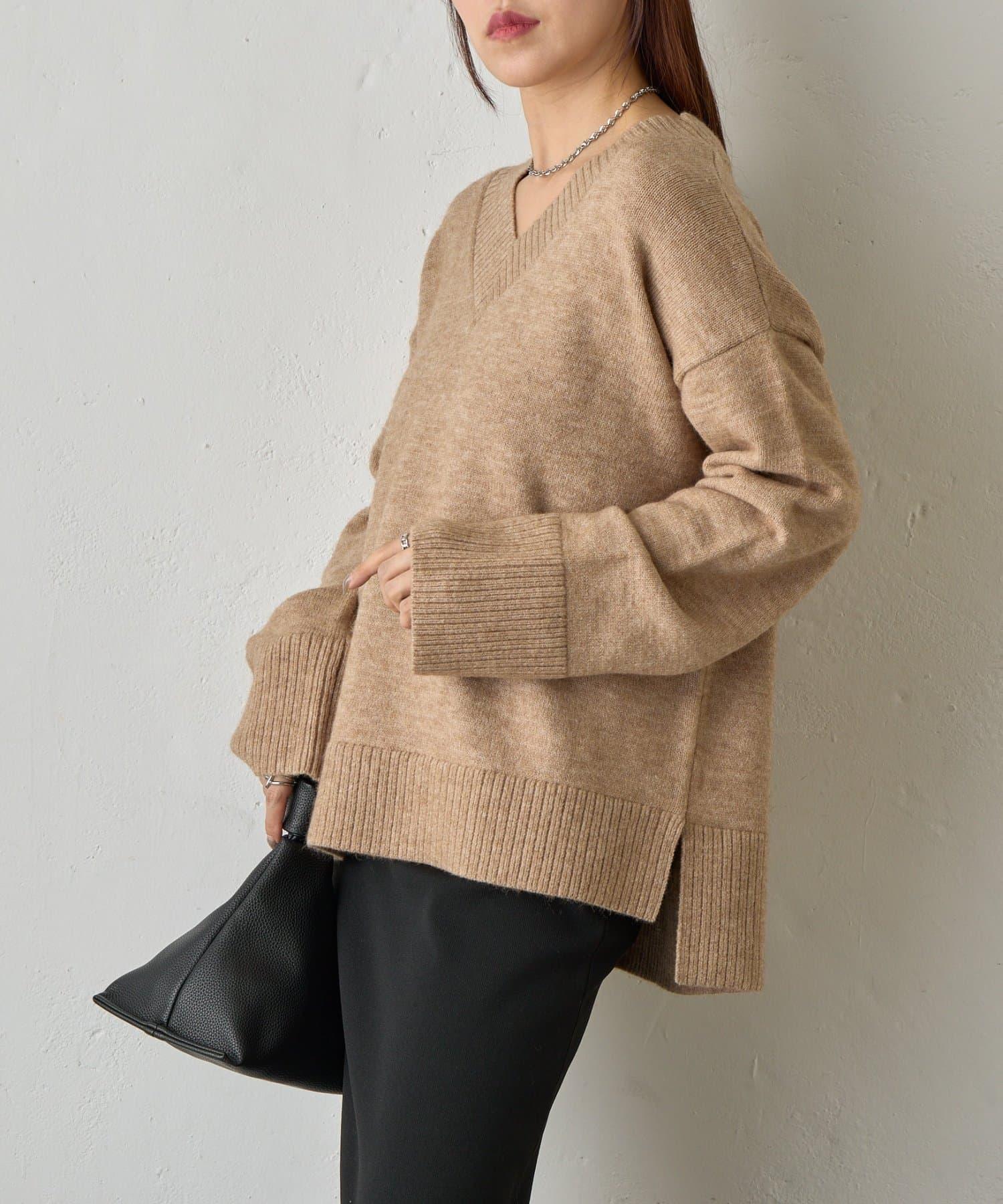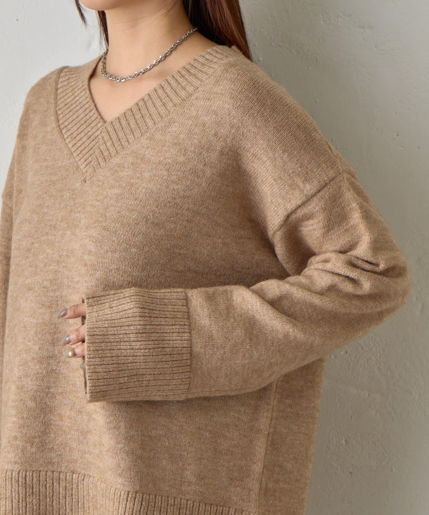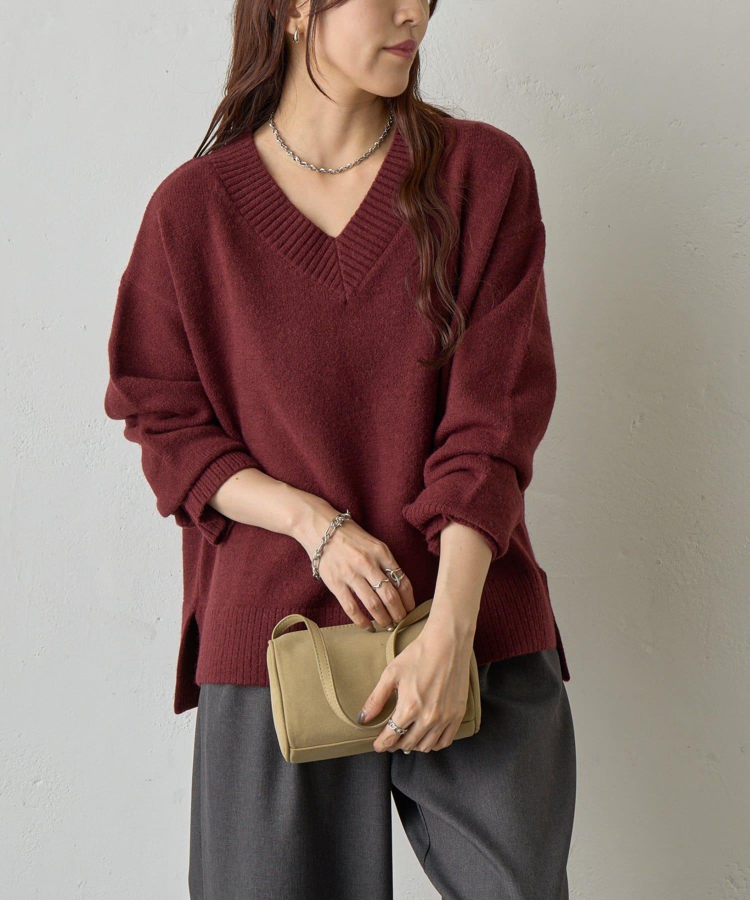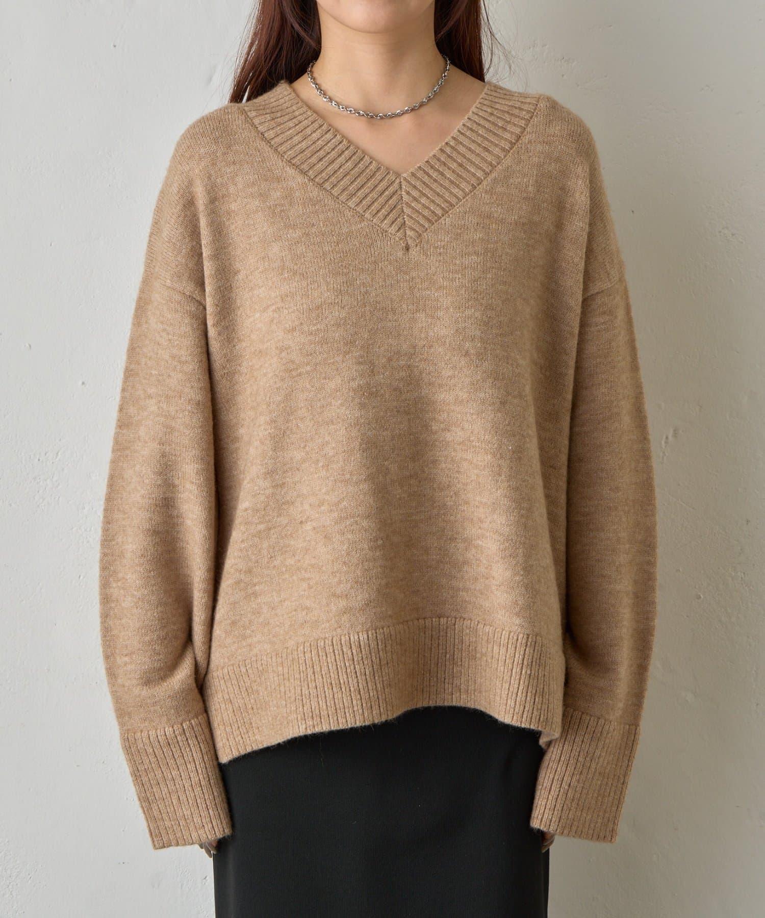 [寬鬆 V 領針織衫,蓬鬆觸感]
