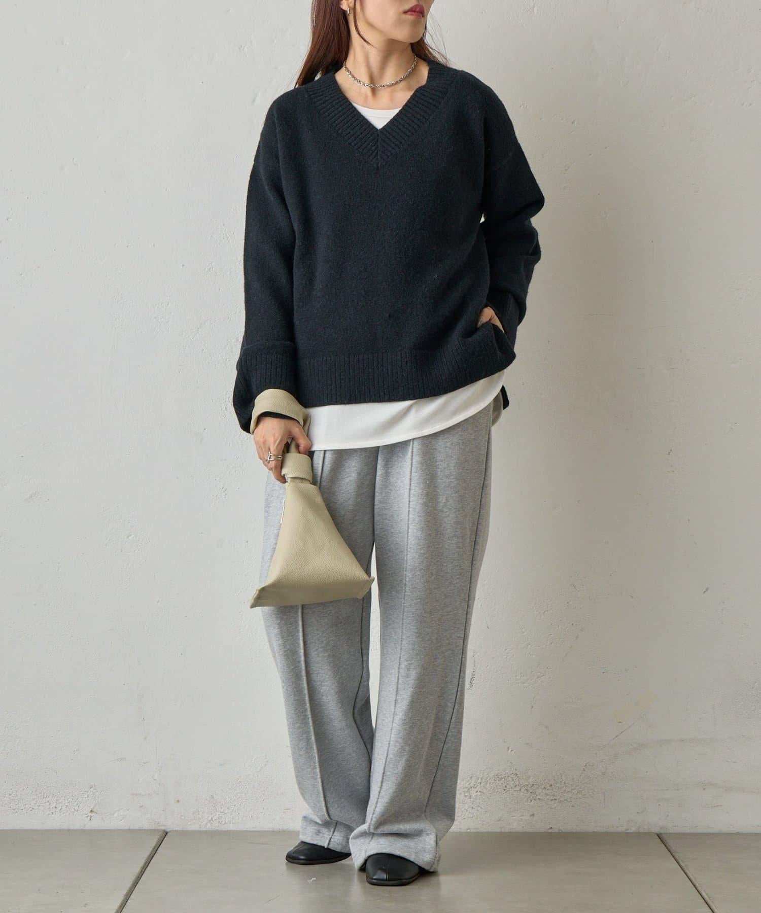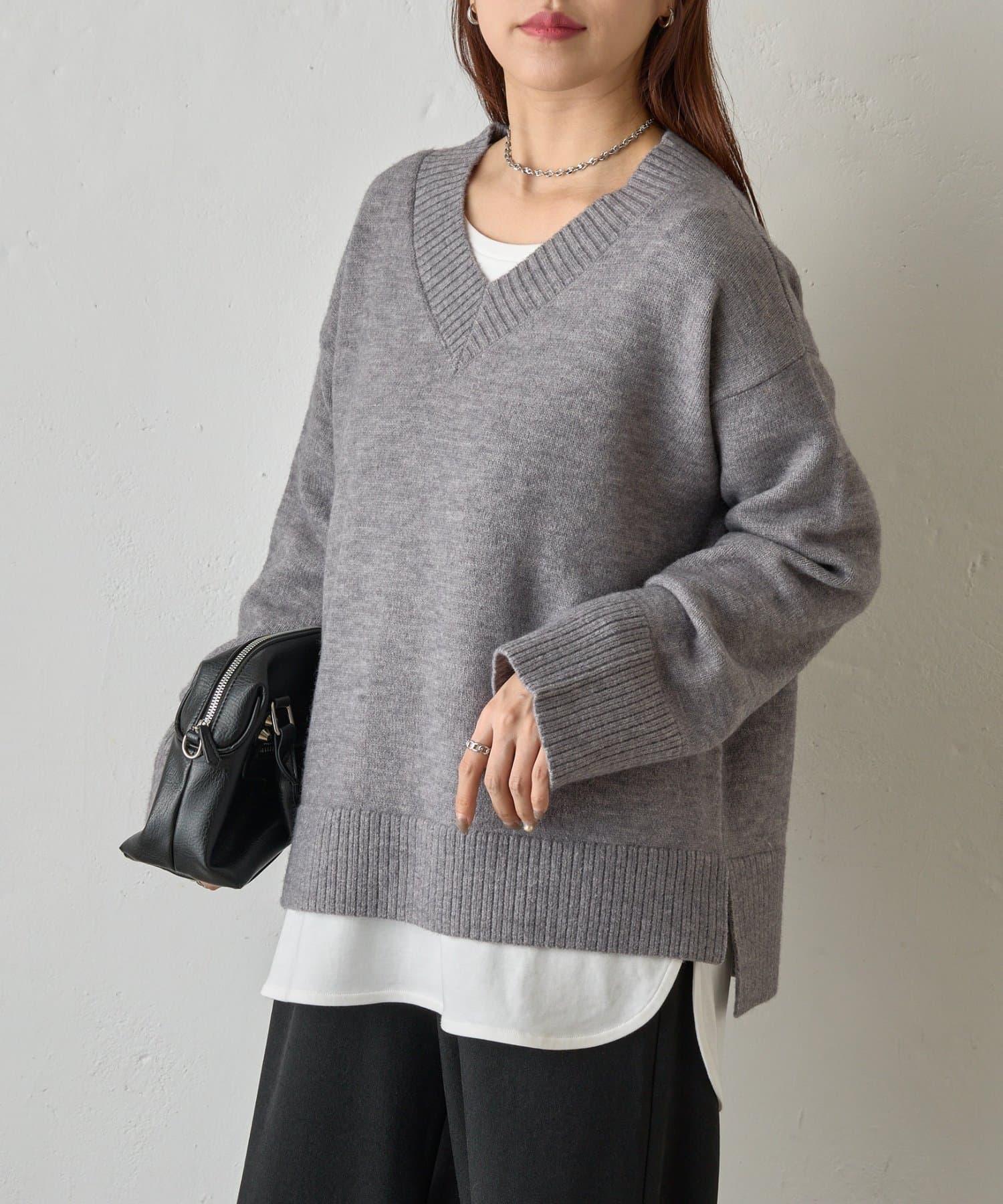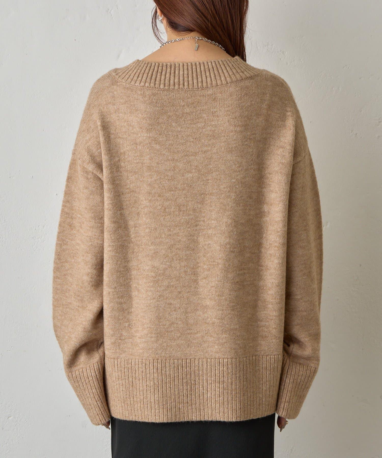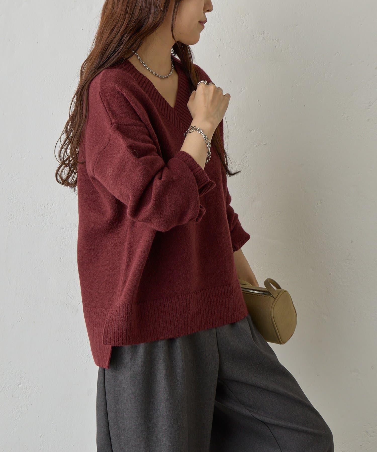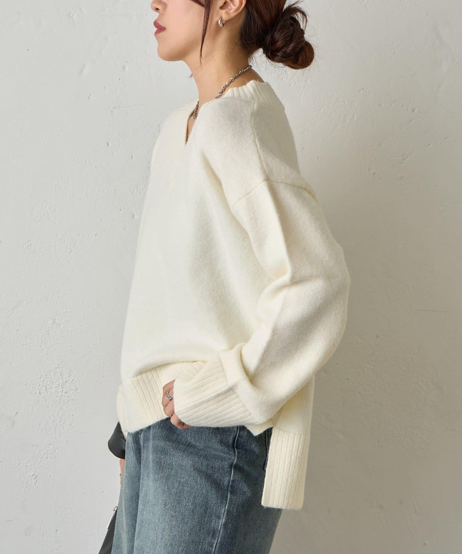[寬鬆 V 領針織衫,蓬鬆觸感]