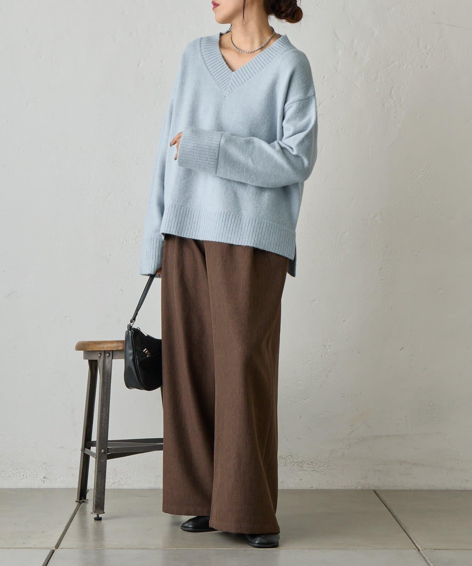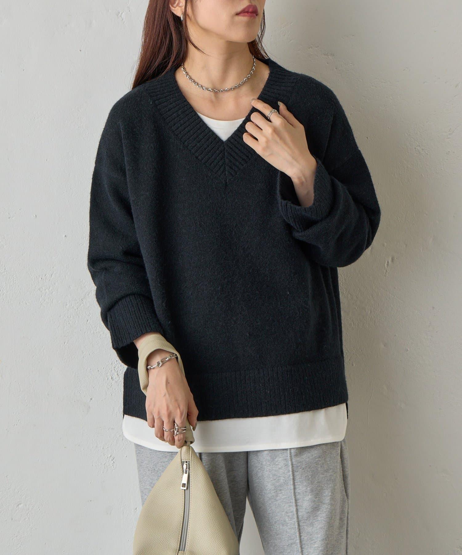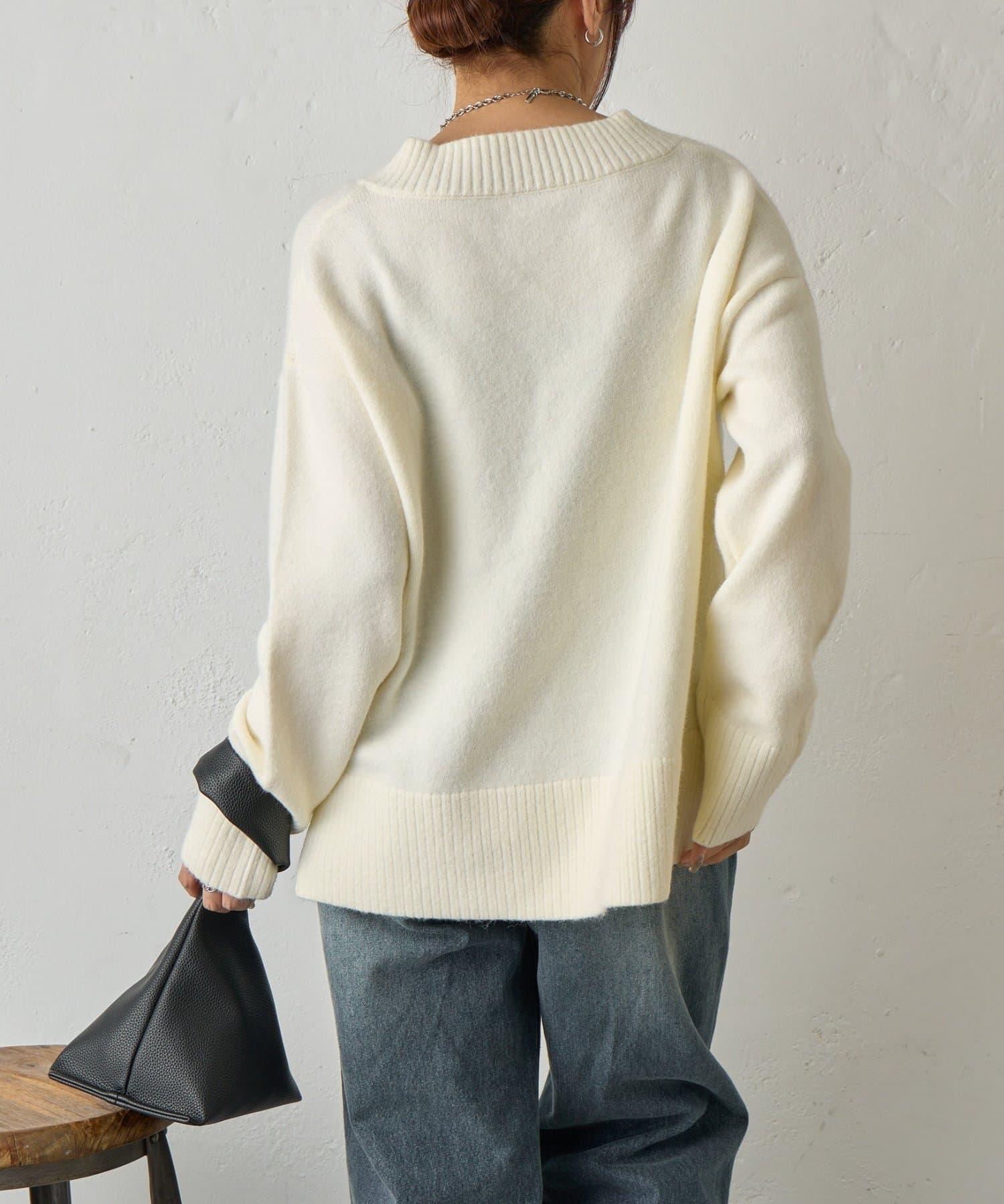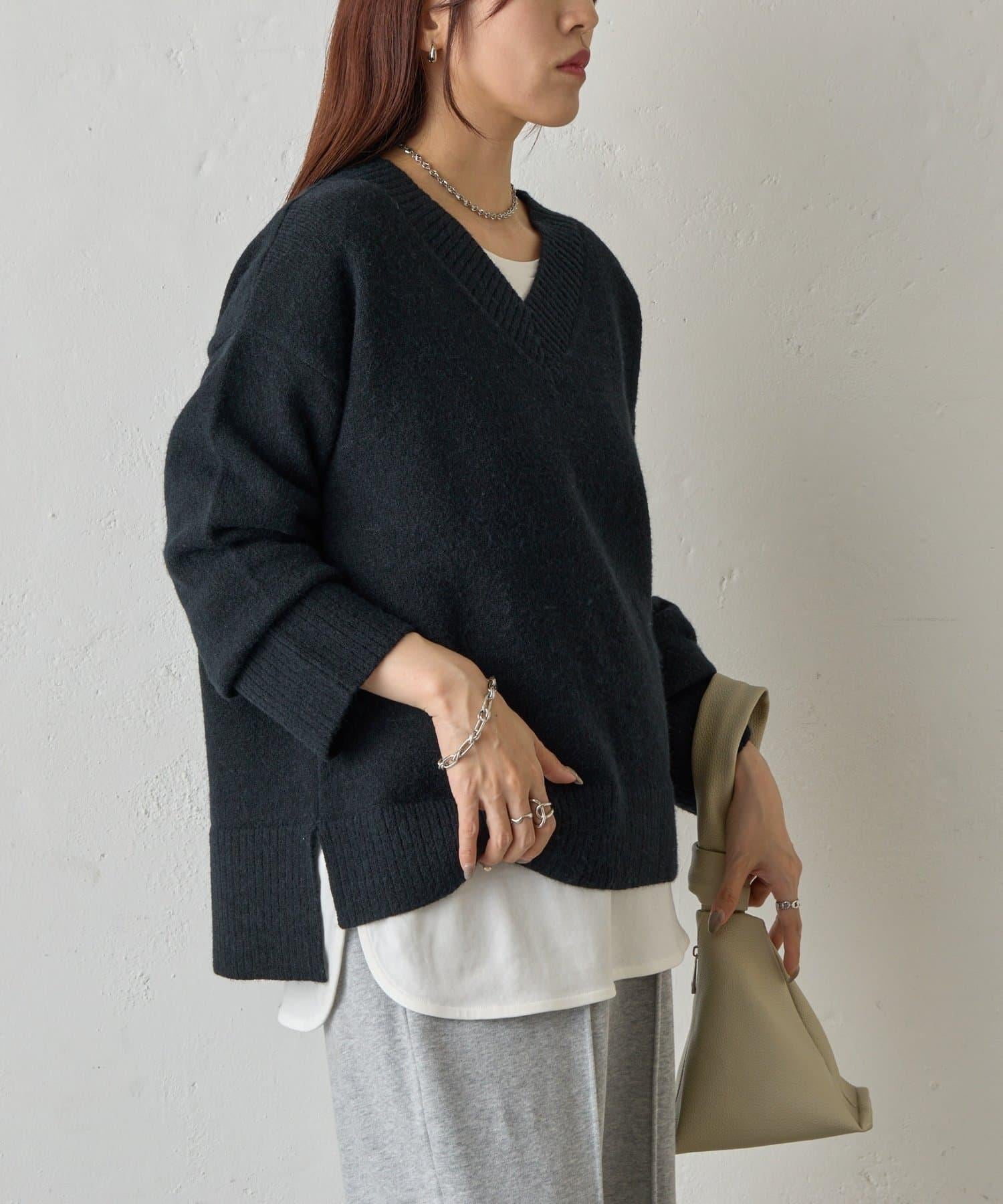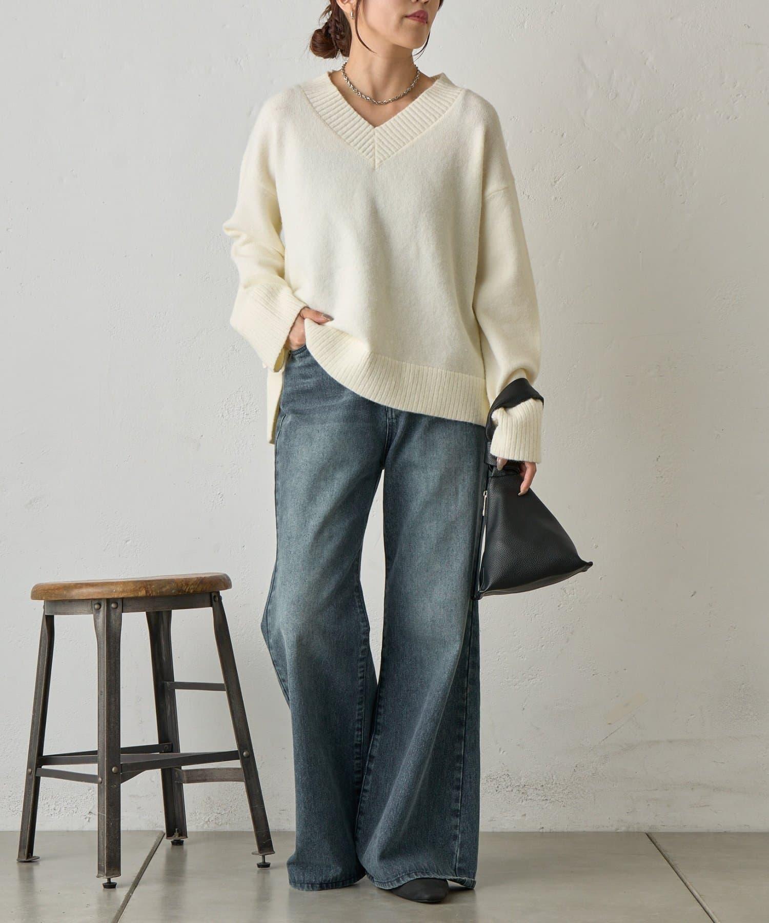 [寬鬆 V 領針織衫,蓬鬆觸感]