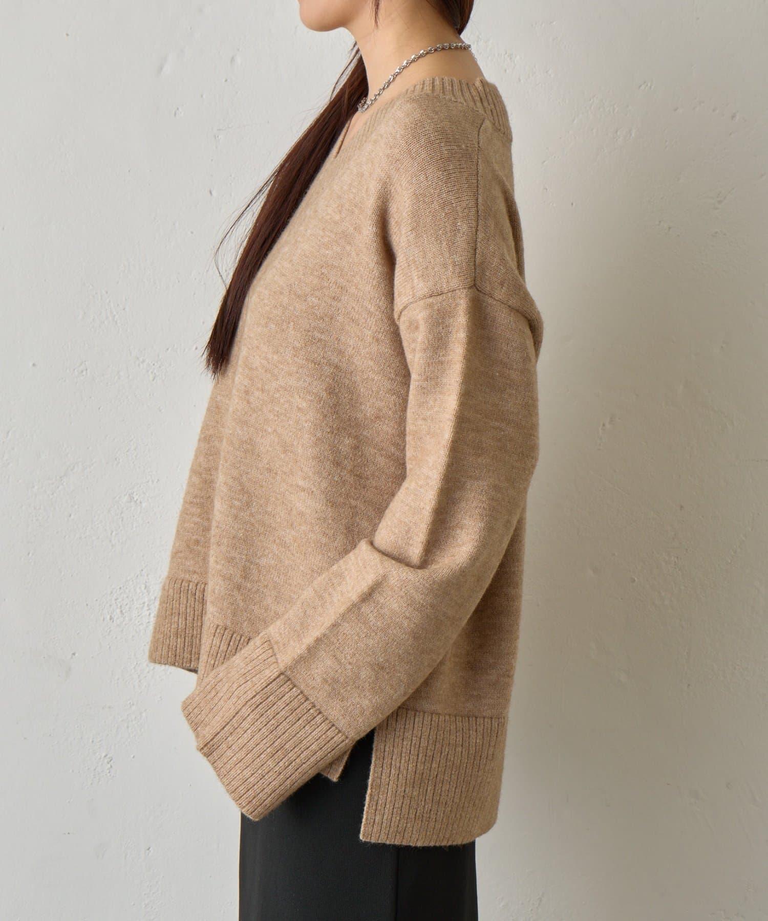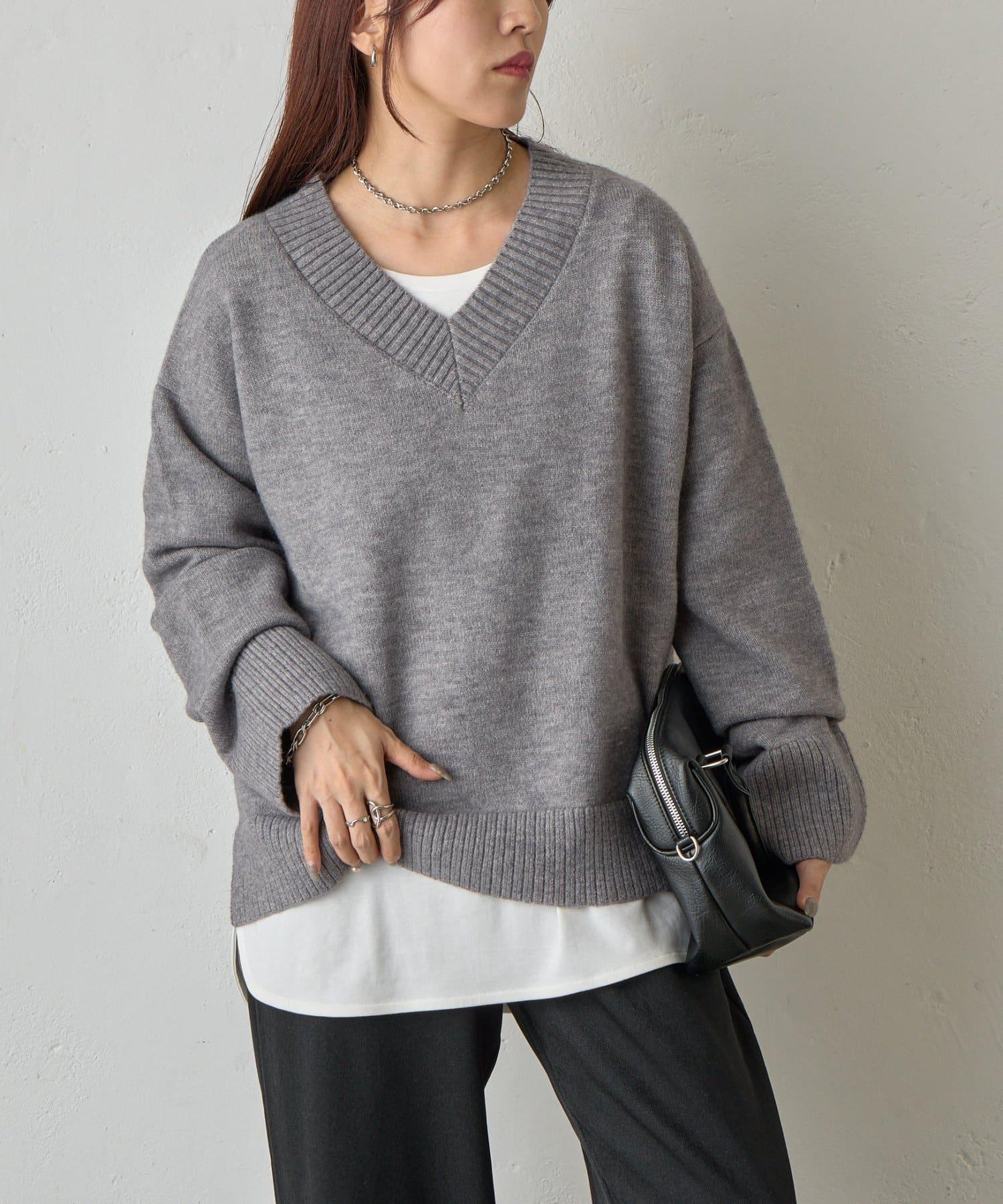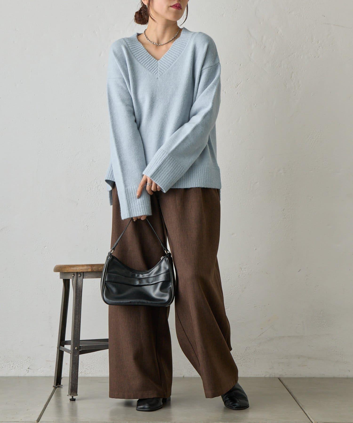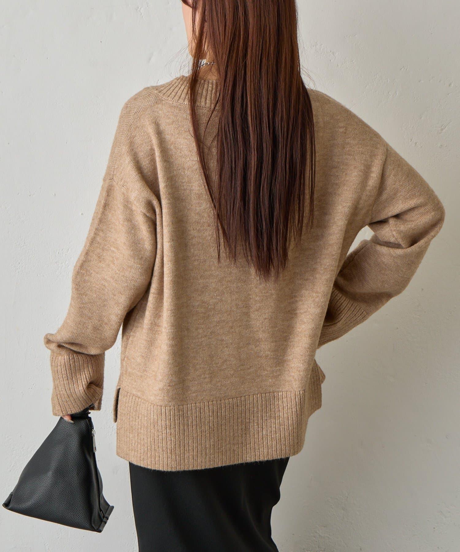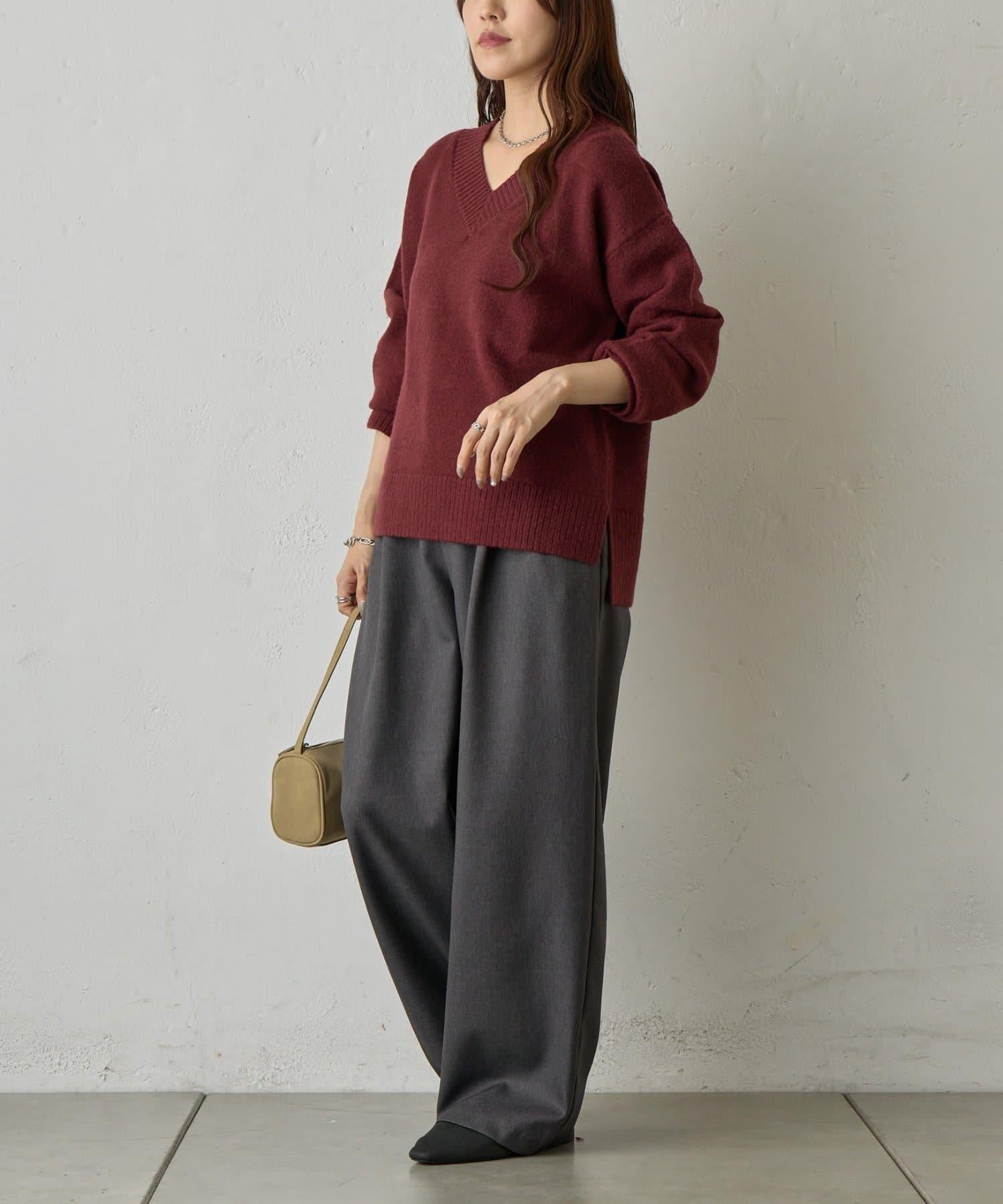 [寬鬆 V 領針織衫,蓬鬆觸感]