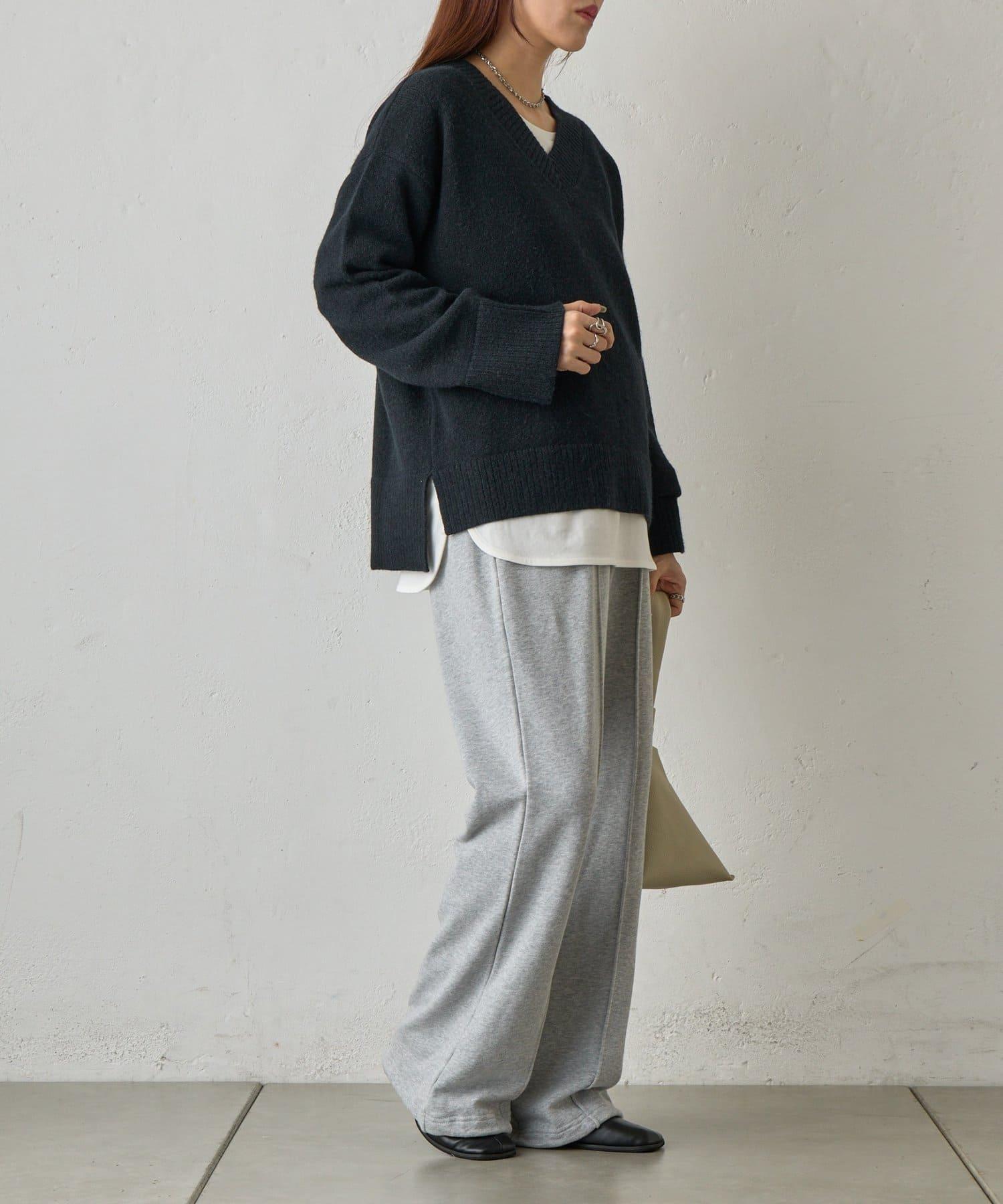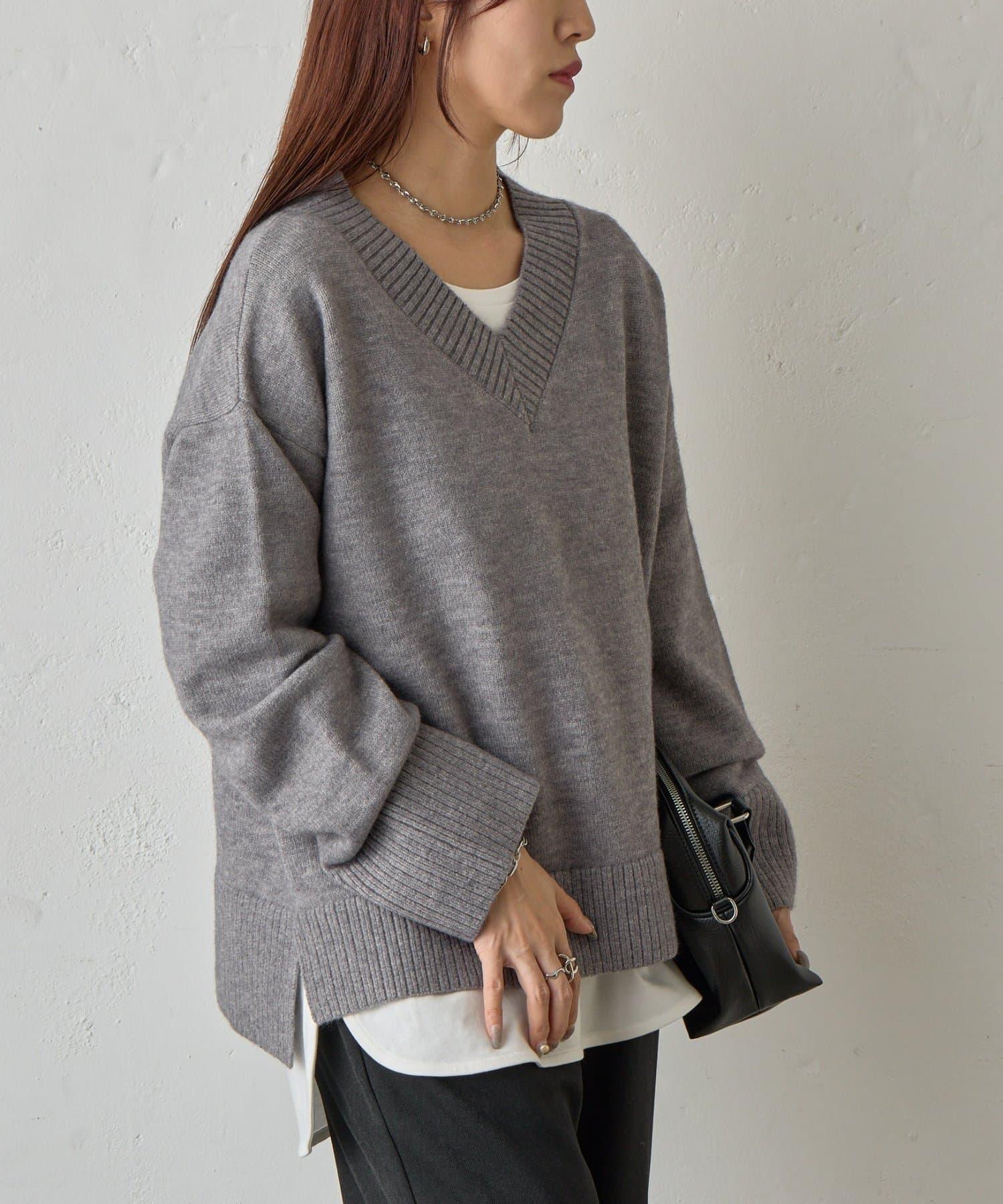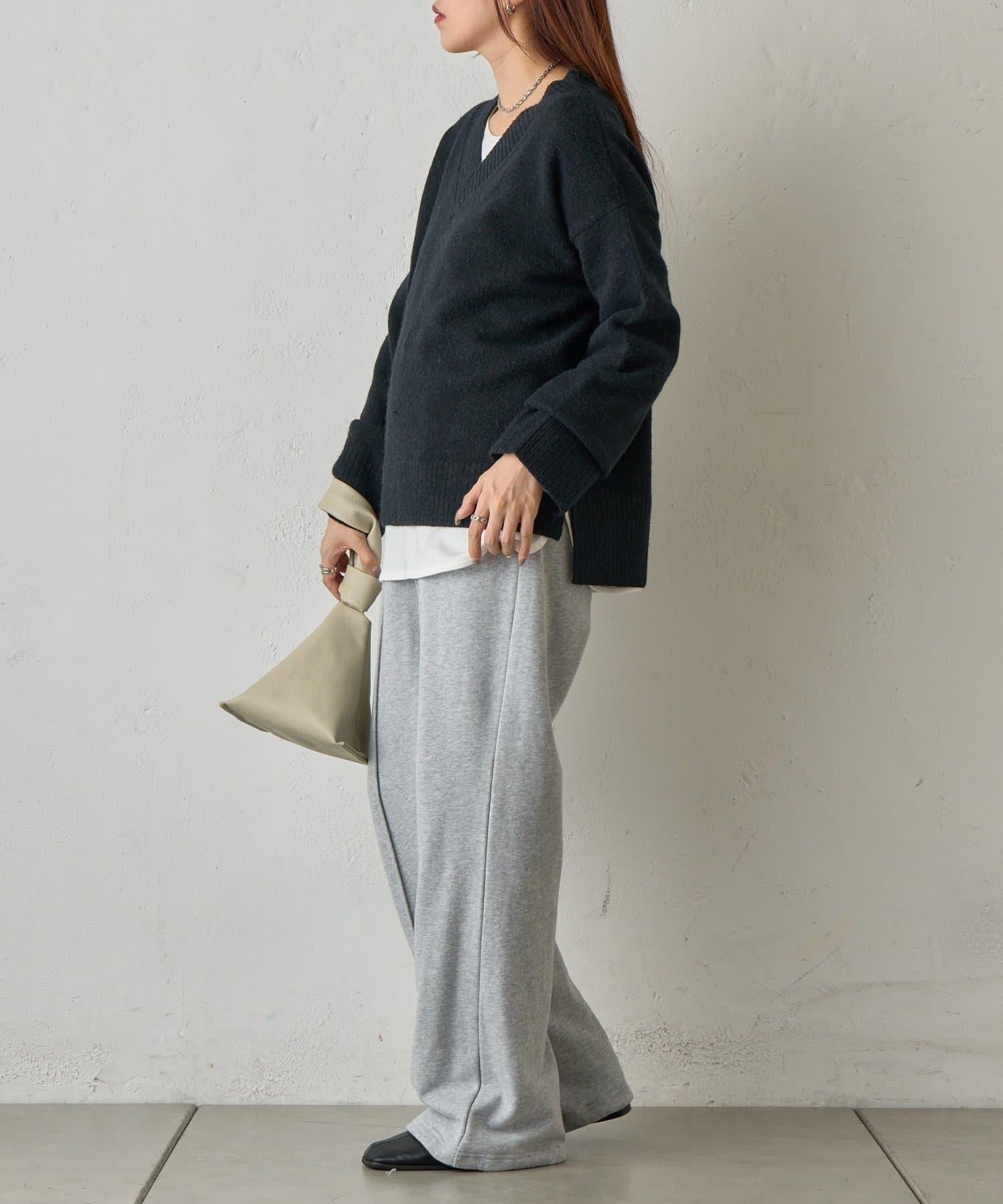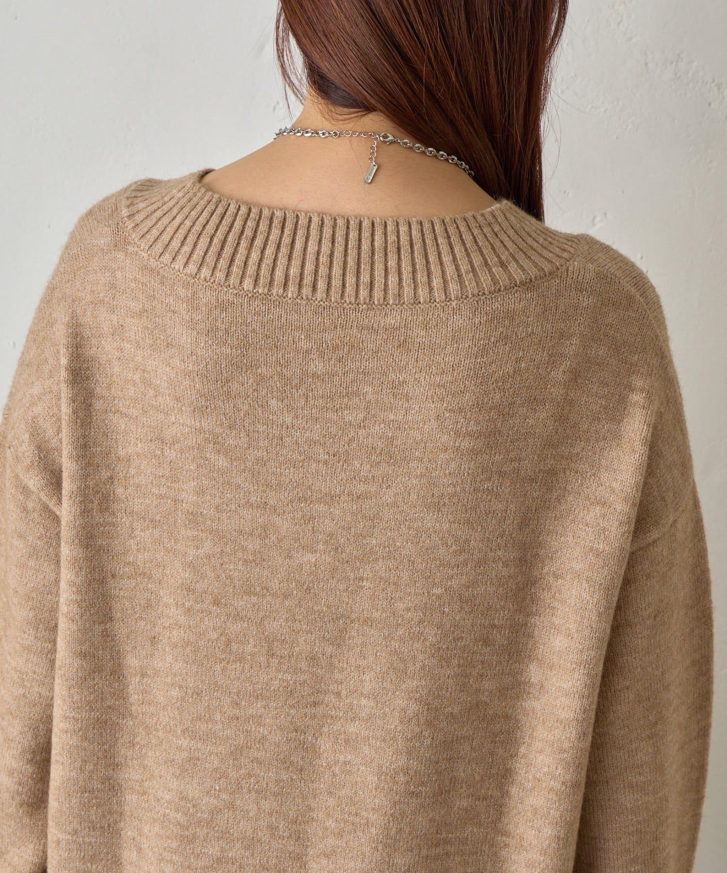 [寬鬆 V 領針織衫,蓬鬆觸感]