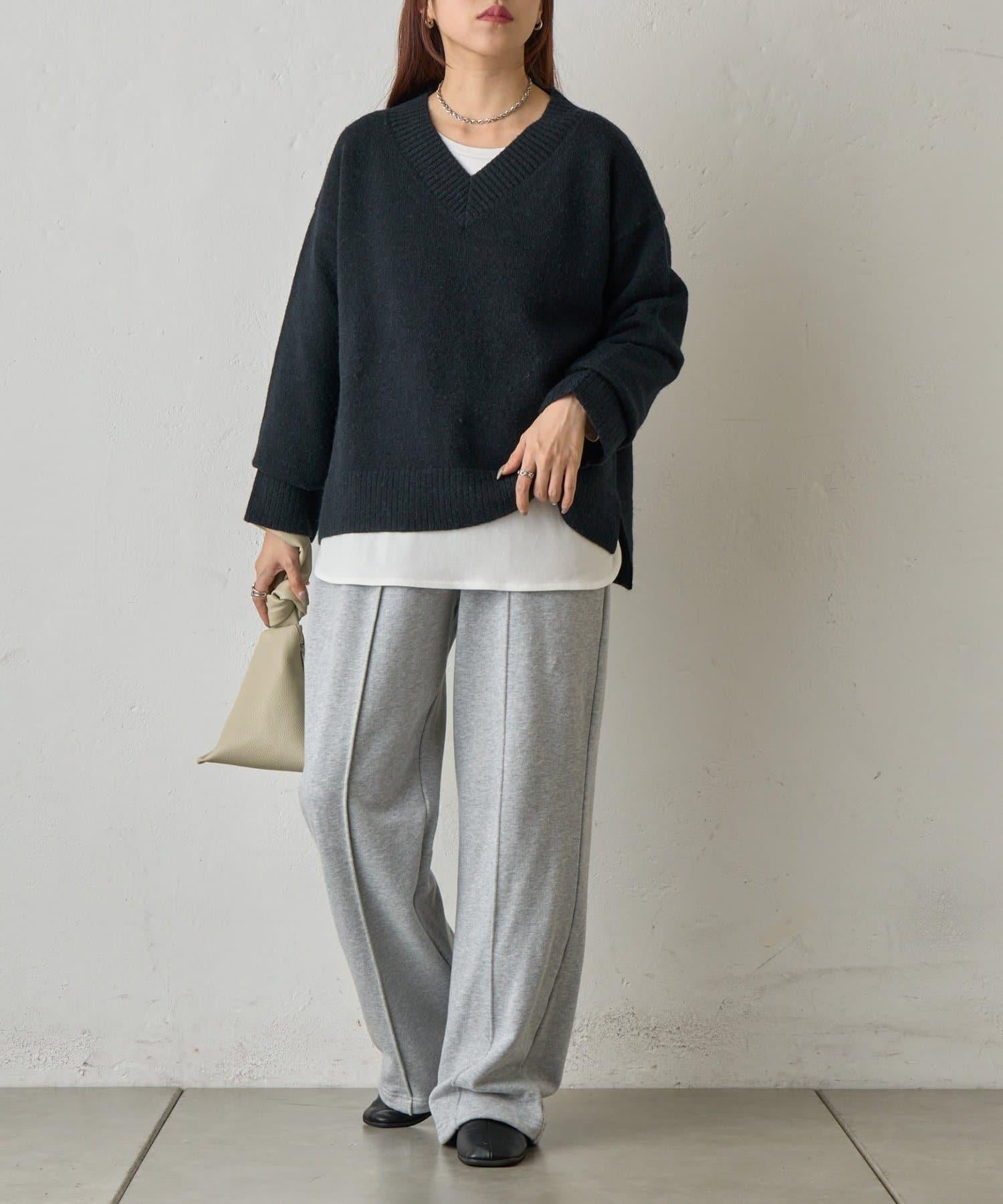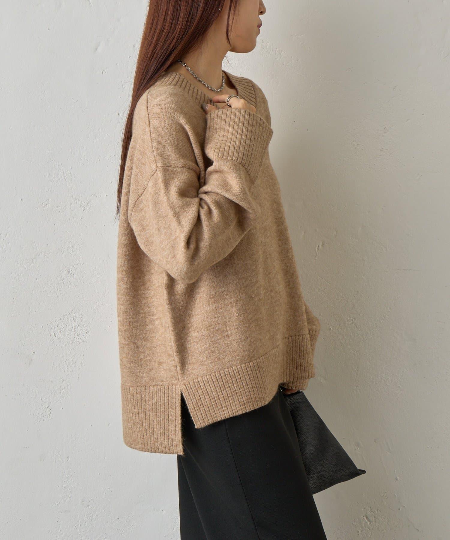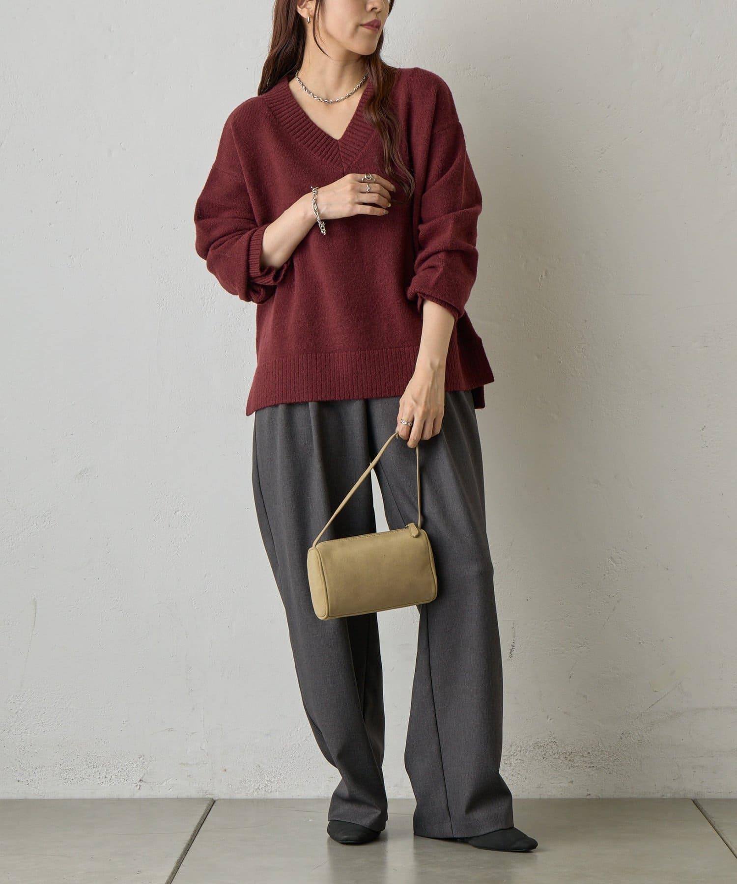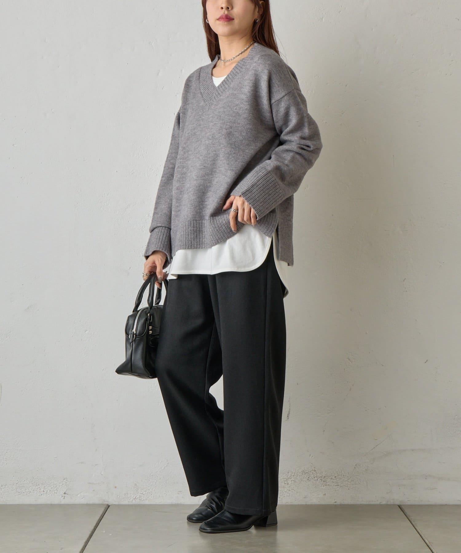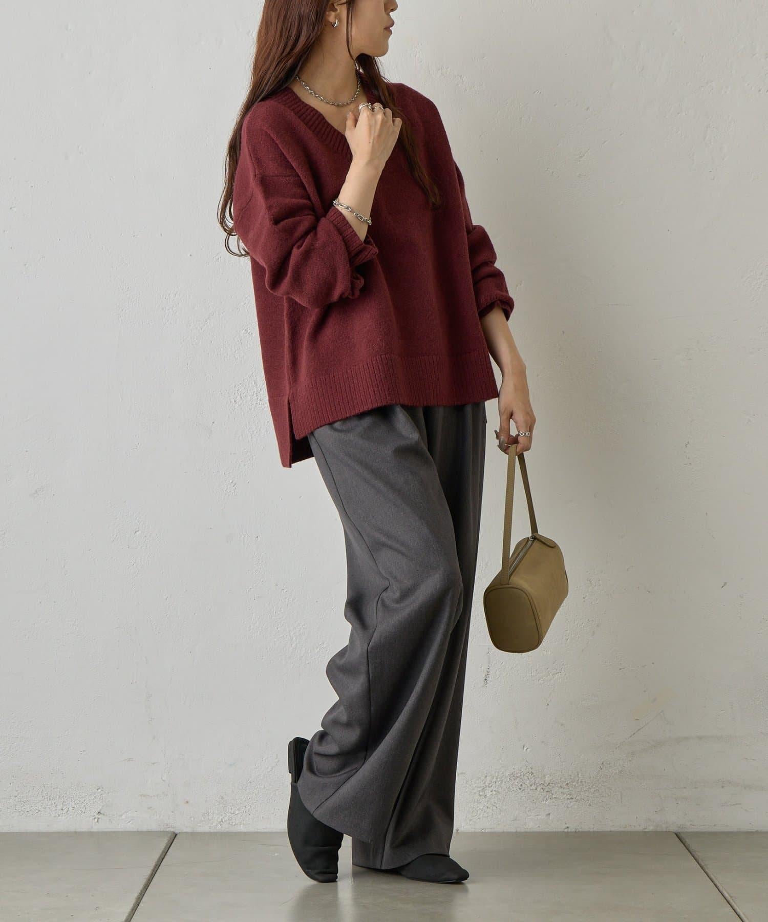 [寬鬆 V 領針織衫,蓬鬆觸感]